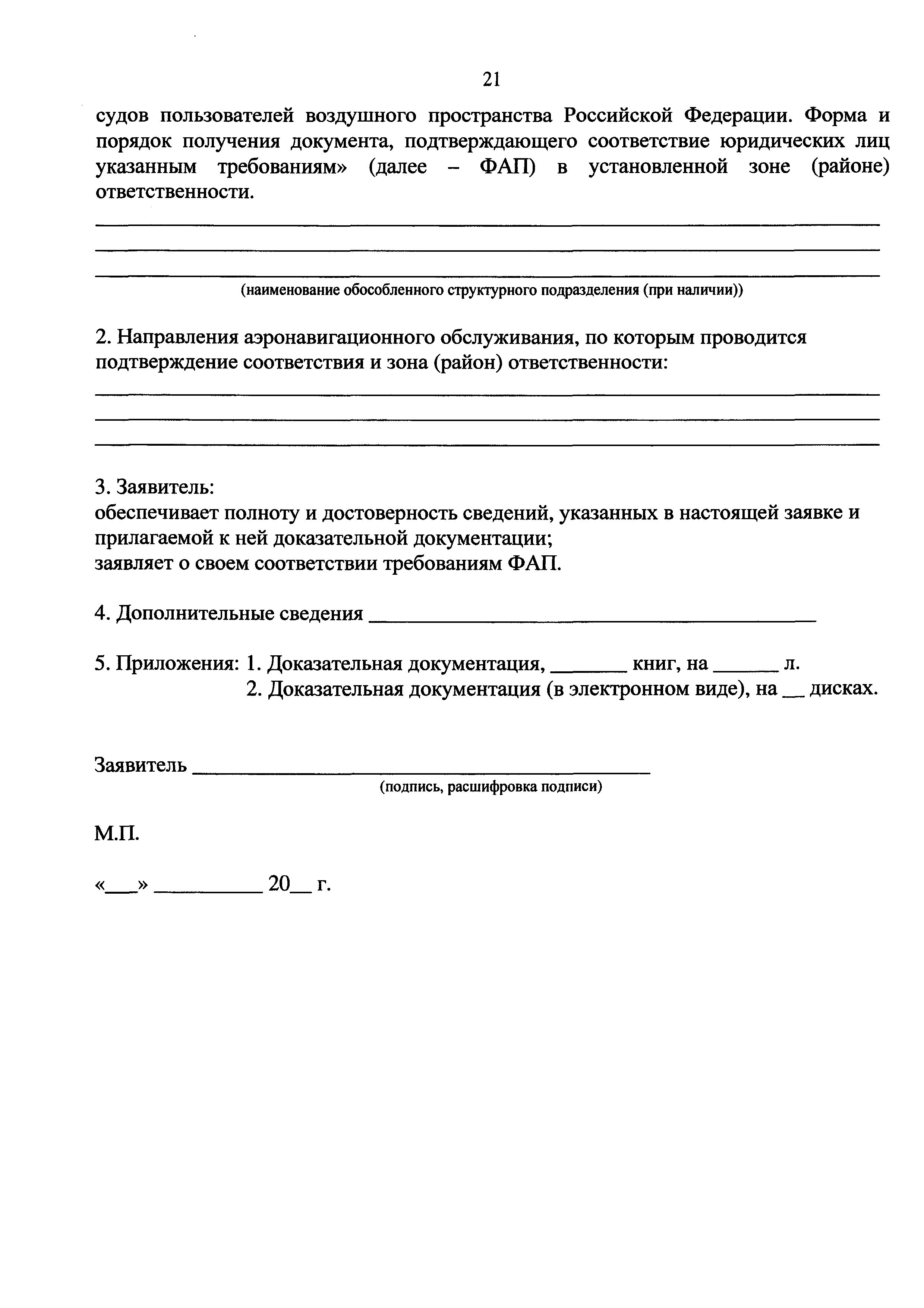 Скачать Административный регламент Федерального агентства воздушного транспорта предоставления государственной услуги по выдаче документа, подтверждающего соответствие юридических лиц, осуществляющих аэронавигационное обслуживание полетов воздушных судов пользователей воздушного пространства Российской Федерации, требованиям федеральных авиационных правилДата актуализации: 01.01.2021 |