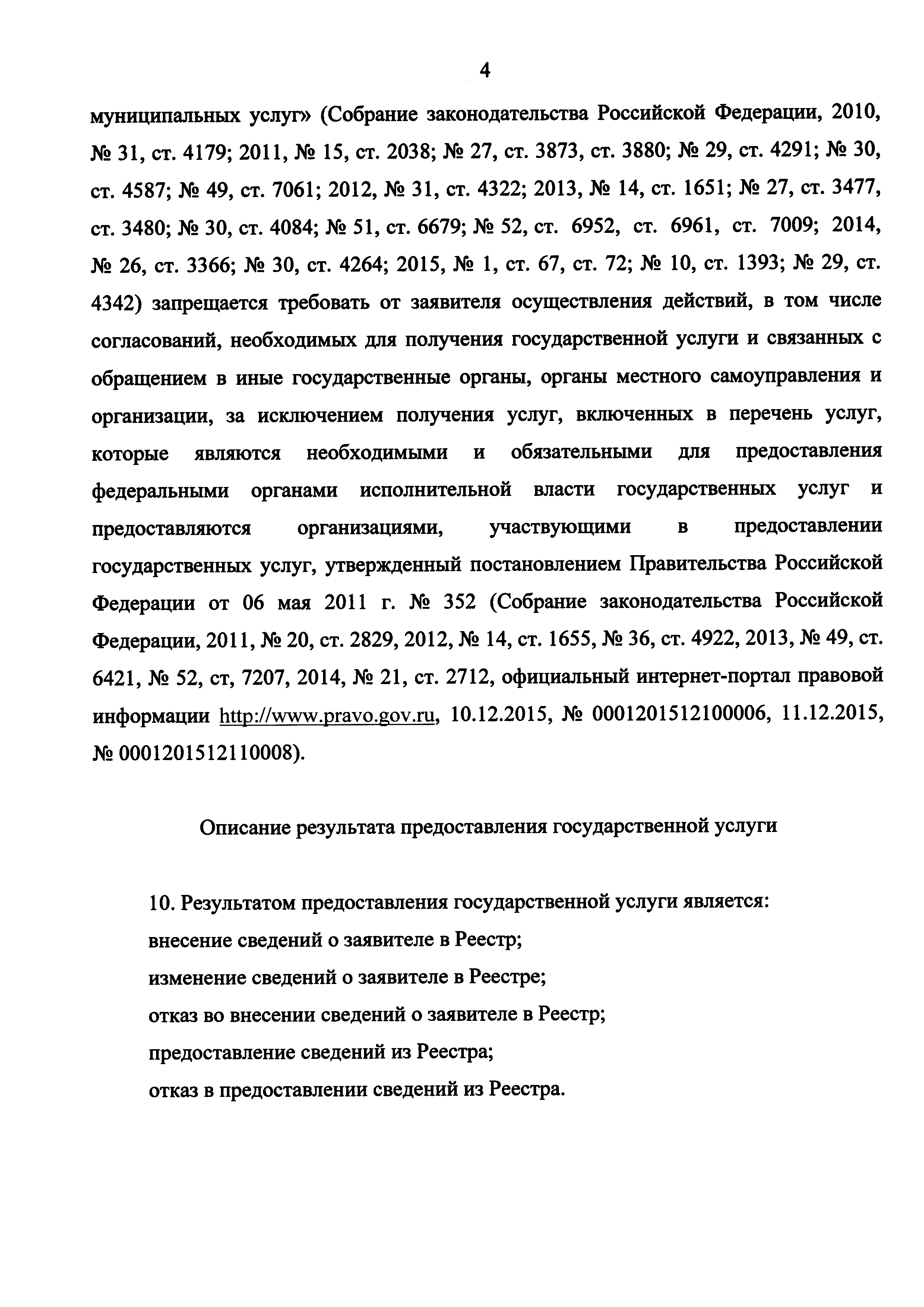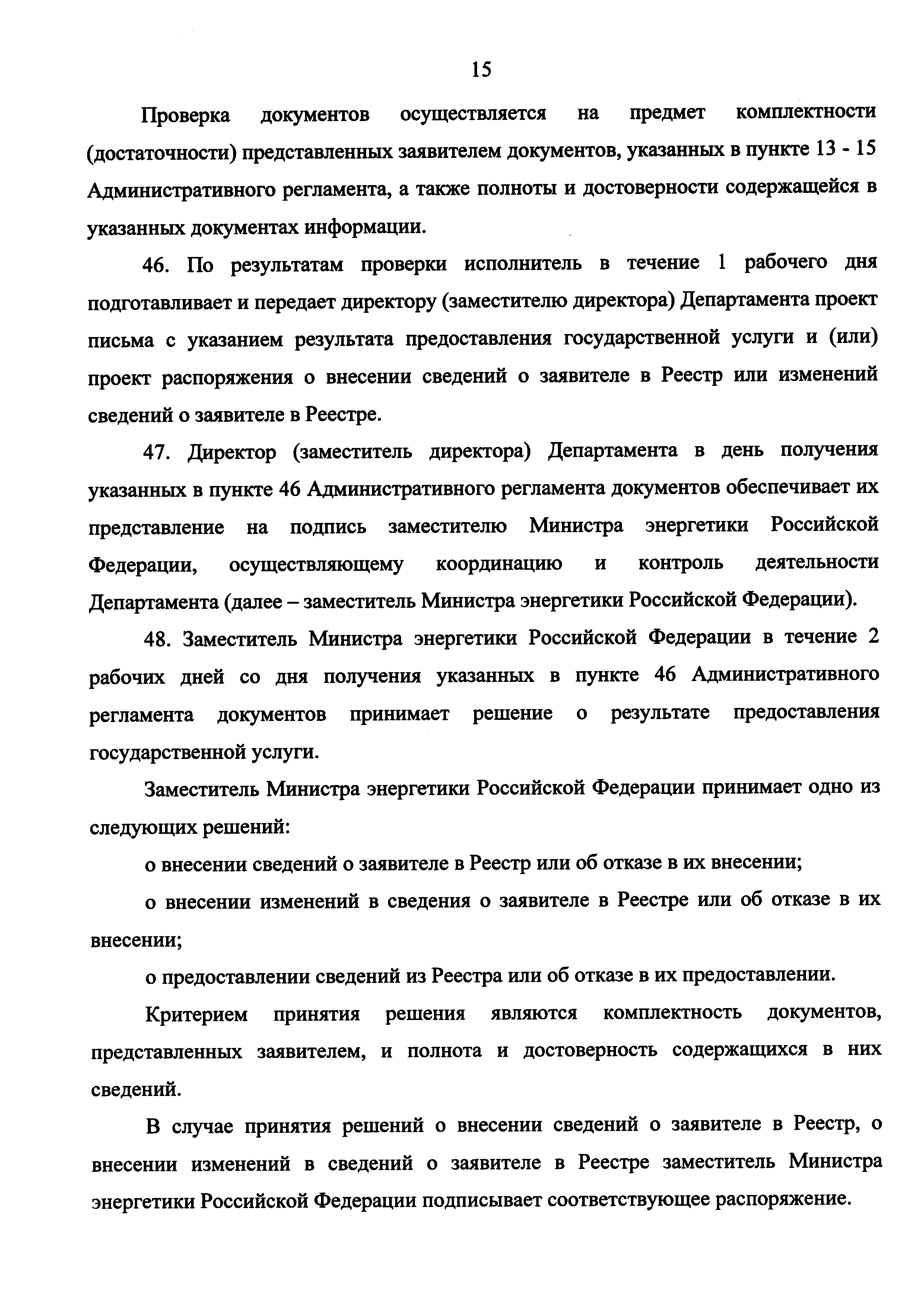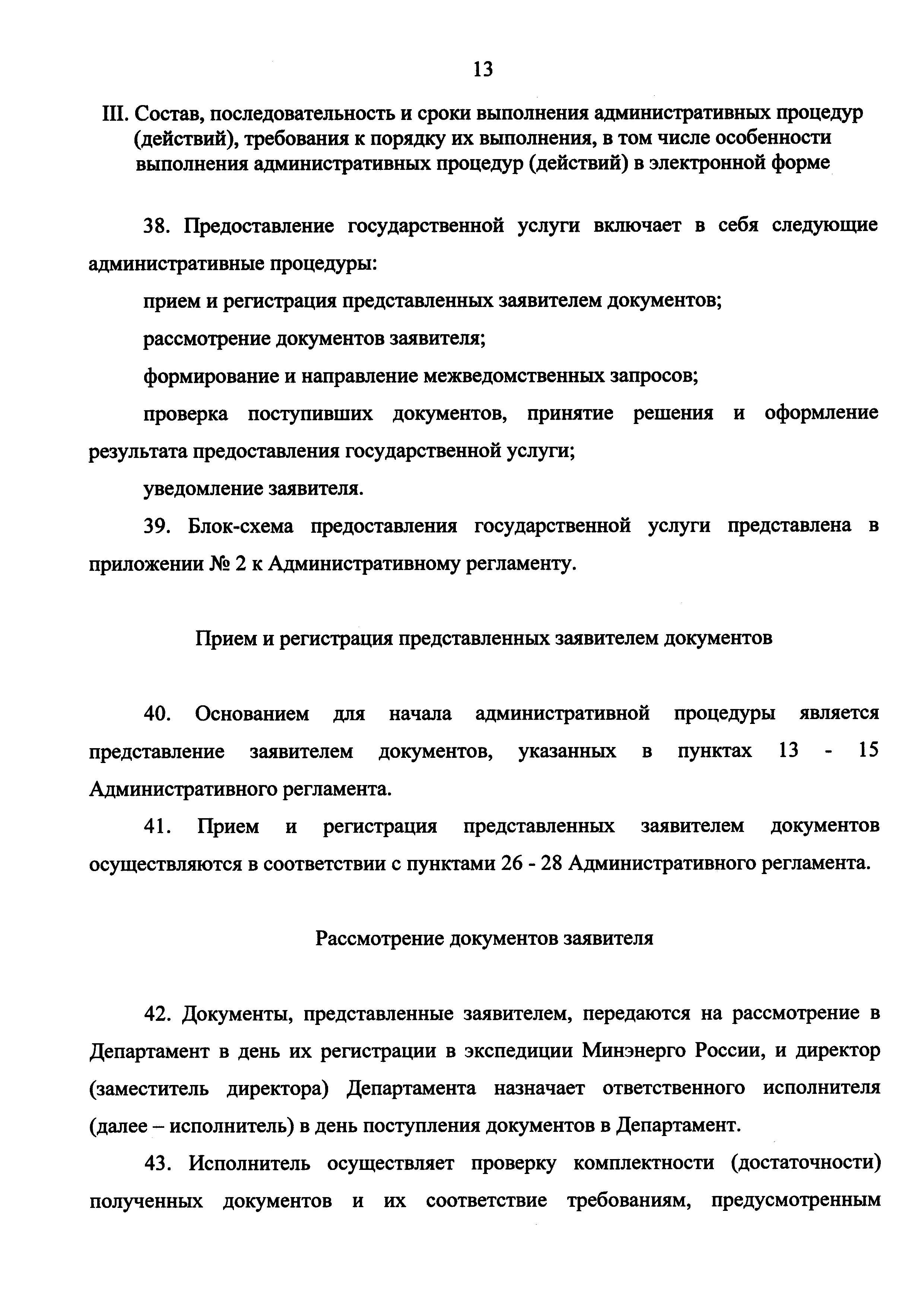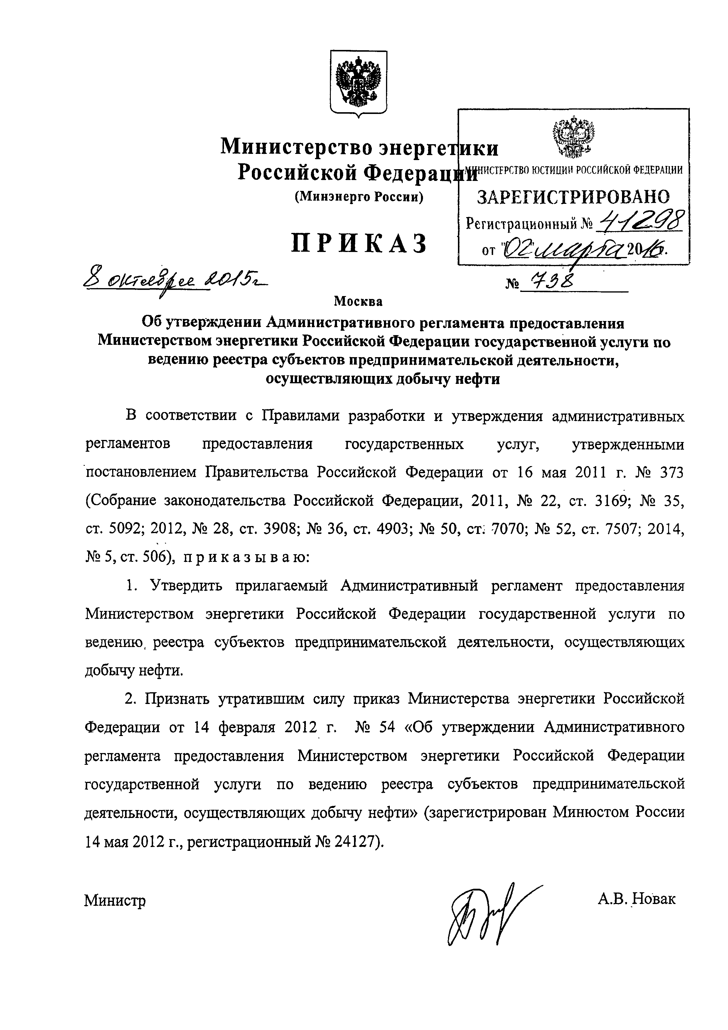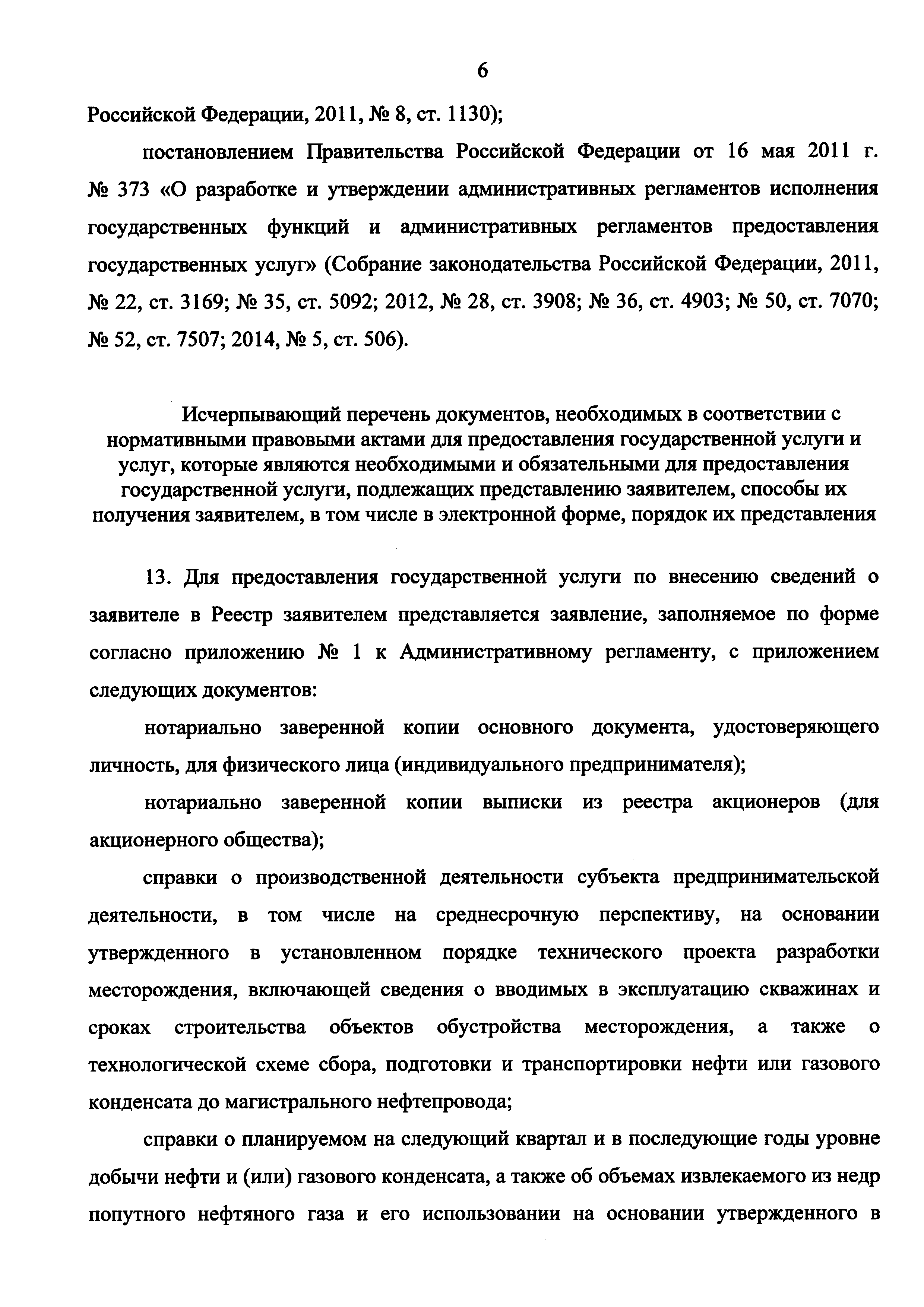 | Оглавление: | I. Общие положения II. Стандарт предоставления государственной услуги III. Состав, последовательность и сроки выполнения административных процедур (действий), требования к порядку их выполнения, в том числе особенности выполнения административных процедур (действий) в электронной форме IV. Формы контроля за предоставлением государственной услуги V. Досудебный (внесудебный) порядок обжалования решений и действий (бездействия) Минэнерго России, а также его должностных лиц Приложение № 1. Заявление Приложение № 2. Блок-схема предоставления государственной услуги по ведению реестра субъектов предпринимательской деятельности, осуществляющих добычу нефти |