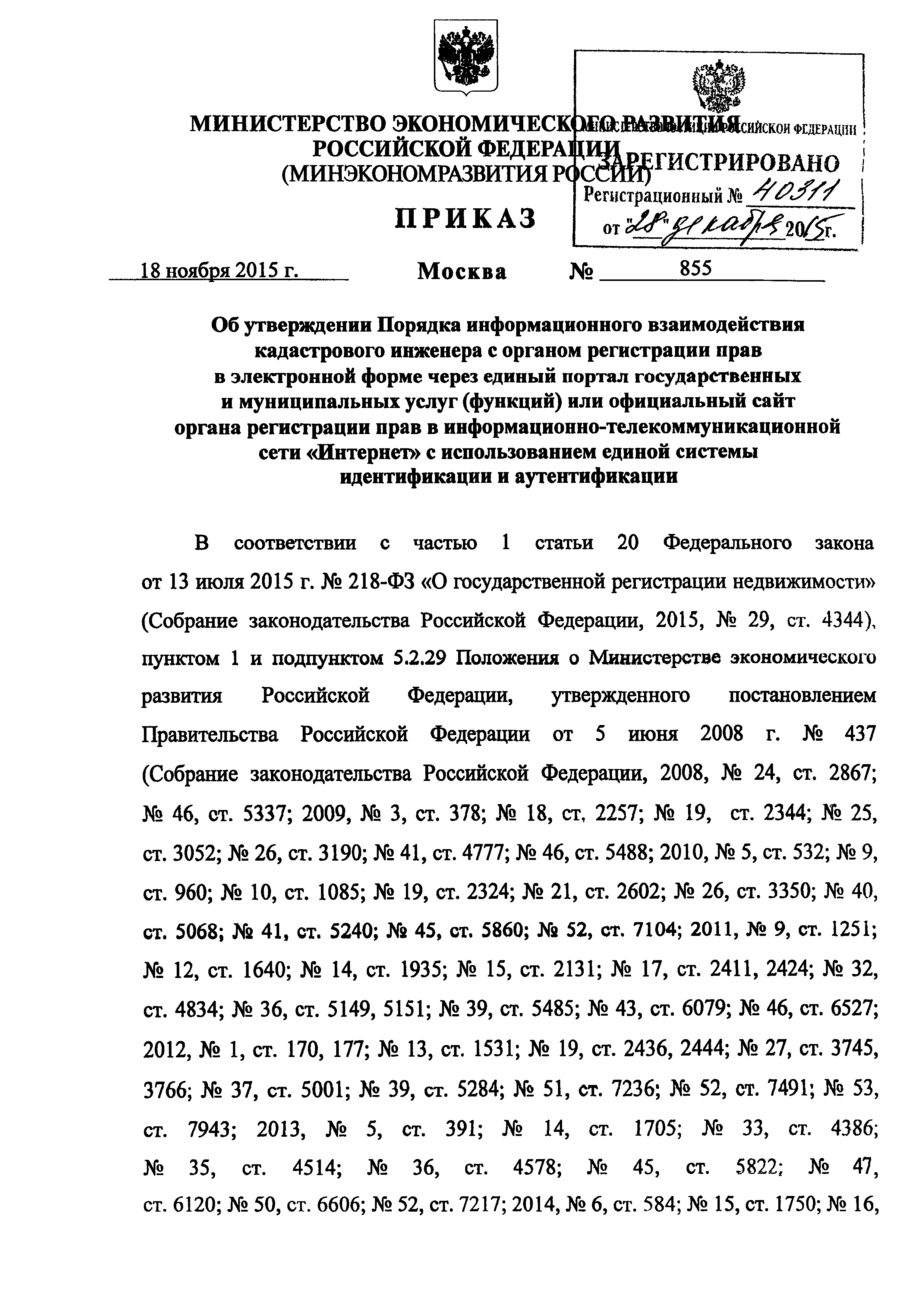 | Утверждён: | 18.11.2015 Министерство экономического развития РФ (855)