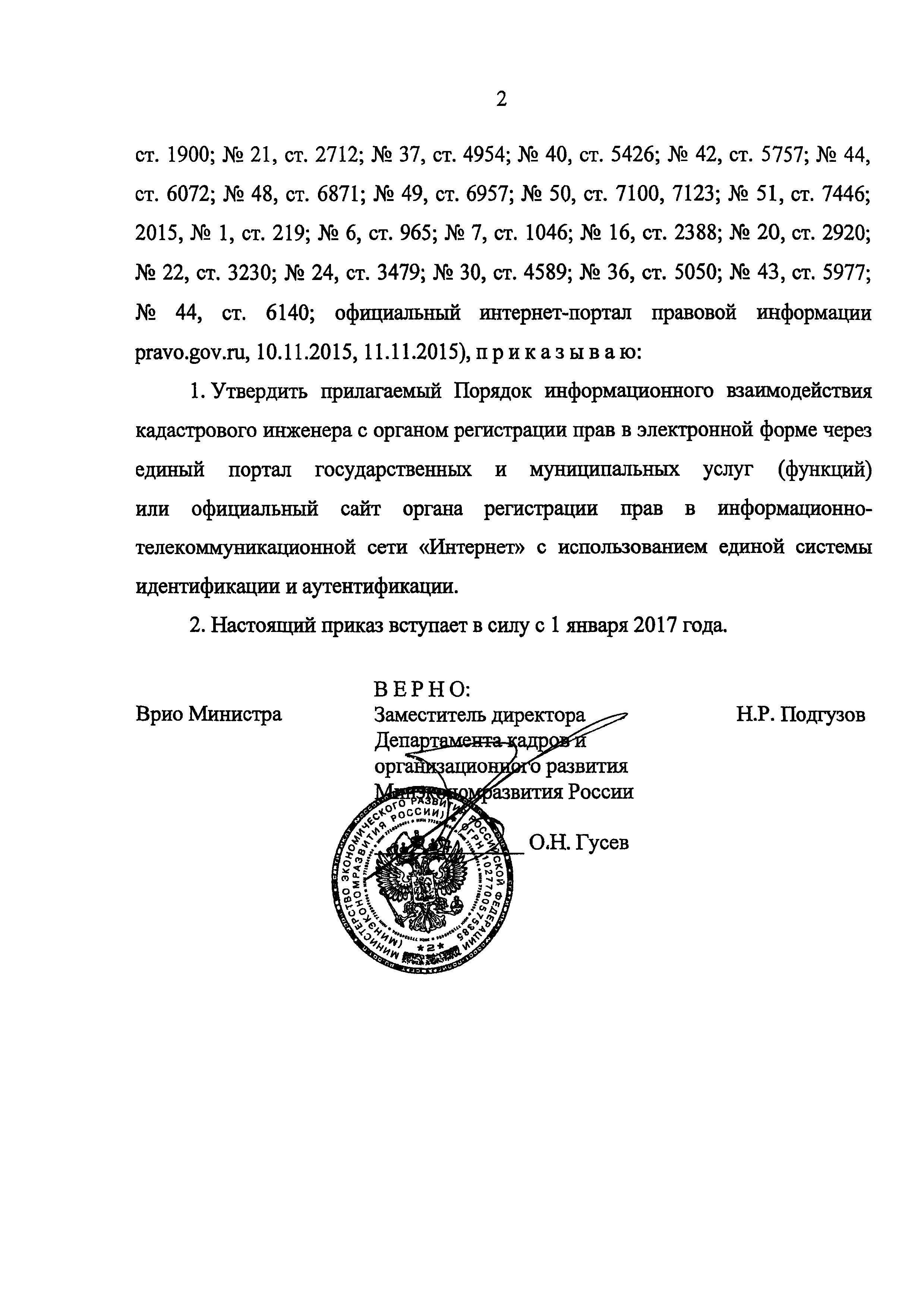| Название рус.: | Порядок информационного взаимодействия кадастрового инженера с органом регистрации прав в электронной форме через единый портал государственных и муниципальных услуг (функций) или официальный сайт органа регистрации прав в информационно-телекоммуникационной сети "Интернет" с использованием единой системы идентификации и аутентификации |