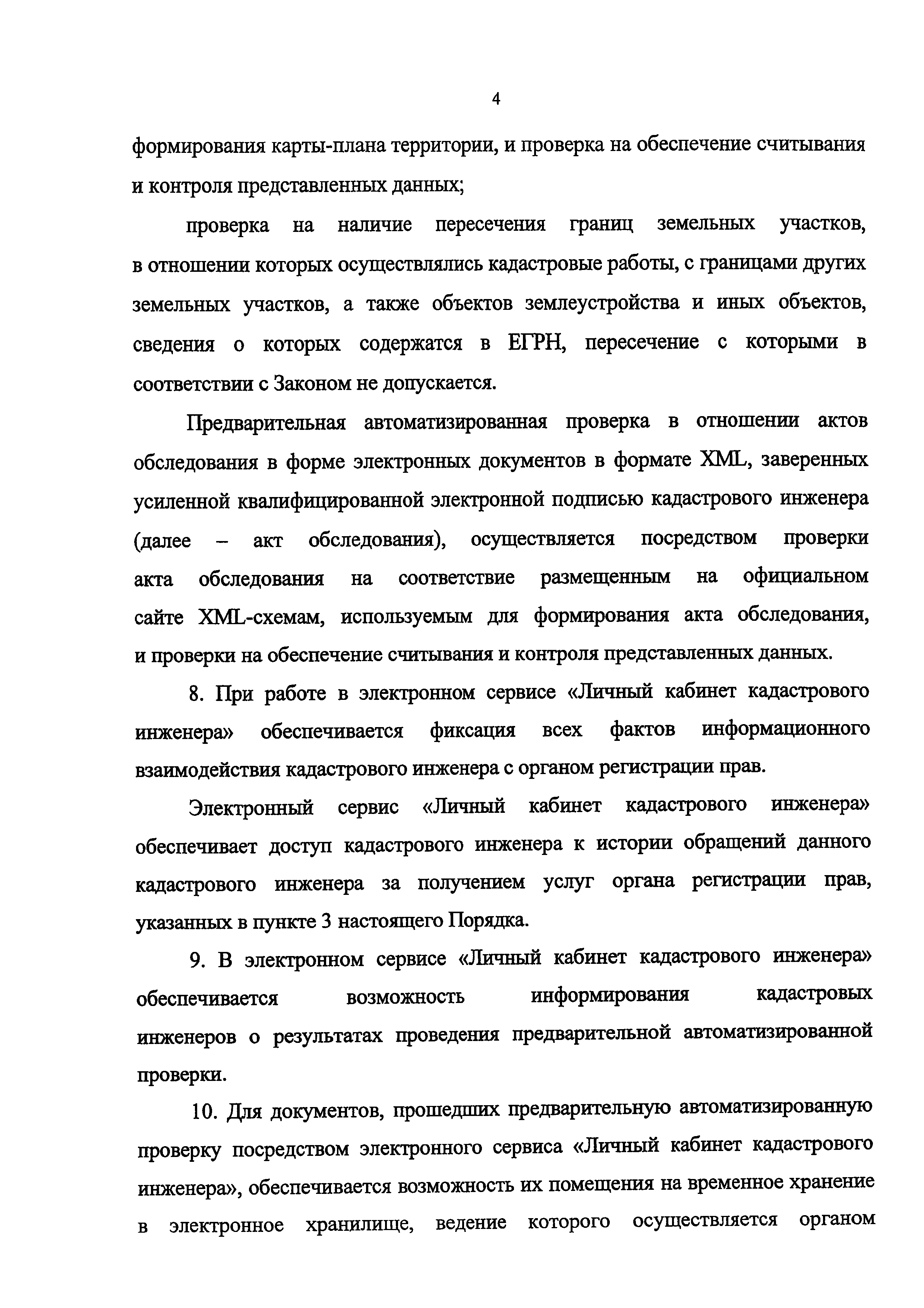| Область применения: | Порядок определяет правила информационного взаимодействия кадастрового инженера с федеральным органом исполнительной власти, уполномоченным Правительством Российской Федерации на осуществление государственного кадастрового учета, государственной регистрации прав, ведение Единого государственного реестра недвижимости и предоставление сведений, содержащихся в ЕГРН, в электронной форме через федеральную государственную информационную систему "Единый портал государственных и муниципальных услуг (функций)" или официальный сайт органа регистрации прав в информационно-телекоммуникационной сети "Интернет" с использованием федеральной государственной информационной системы "Единая система идентификации и аутентификации в инфраструктуре, обеспечивающей информационно-технологическое взаимодействие информационных систем, используемых для предоставления государственных и муниципальных услуг в электронной форме" |