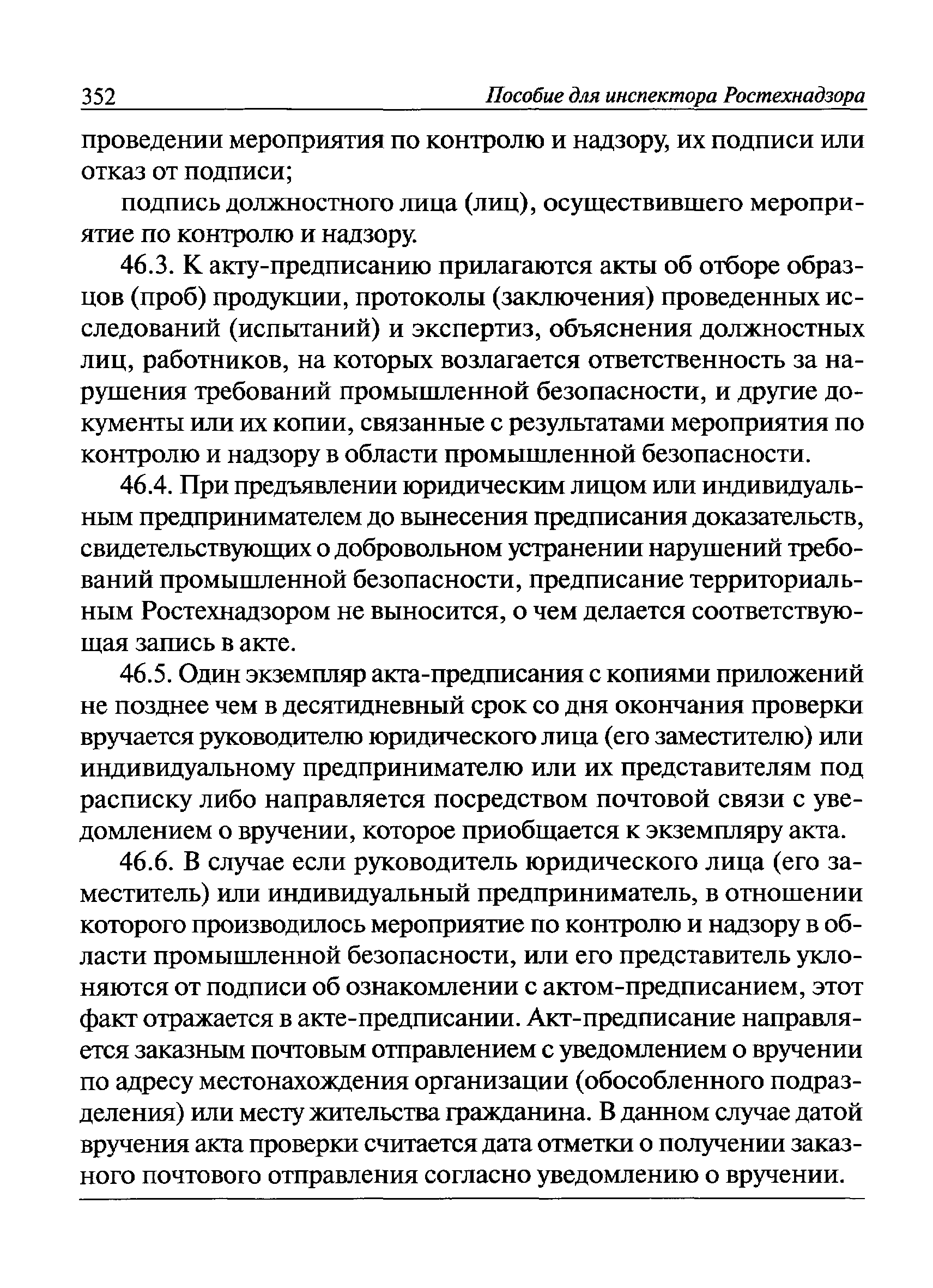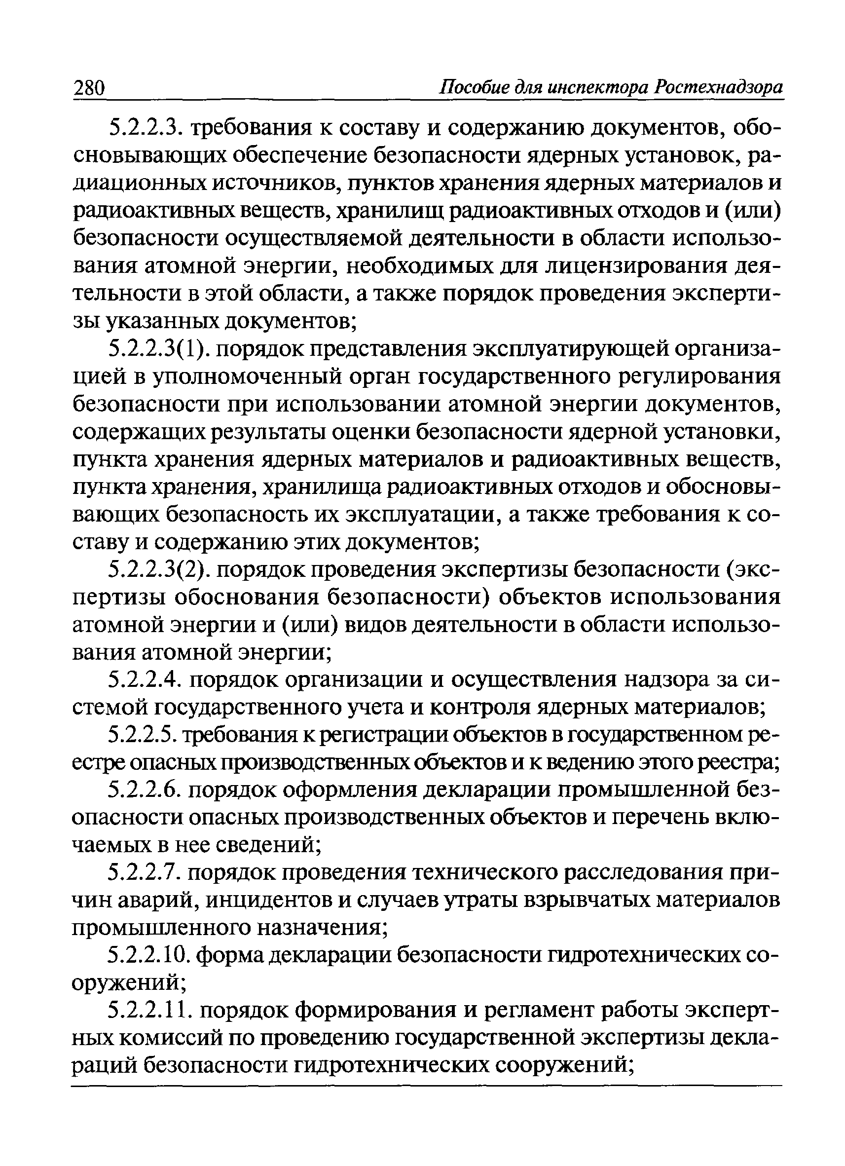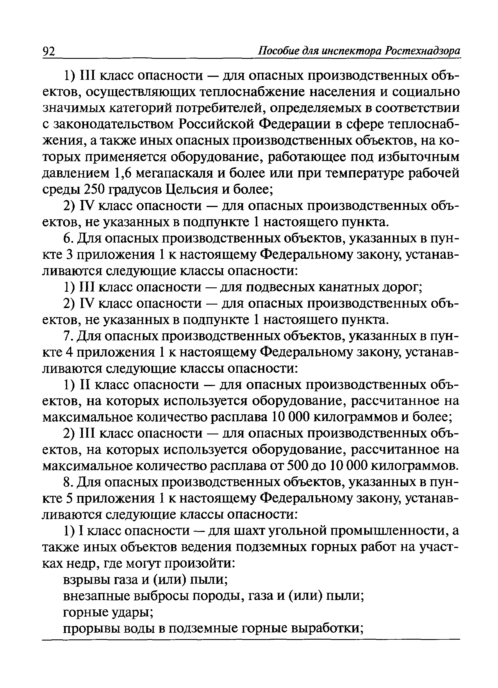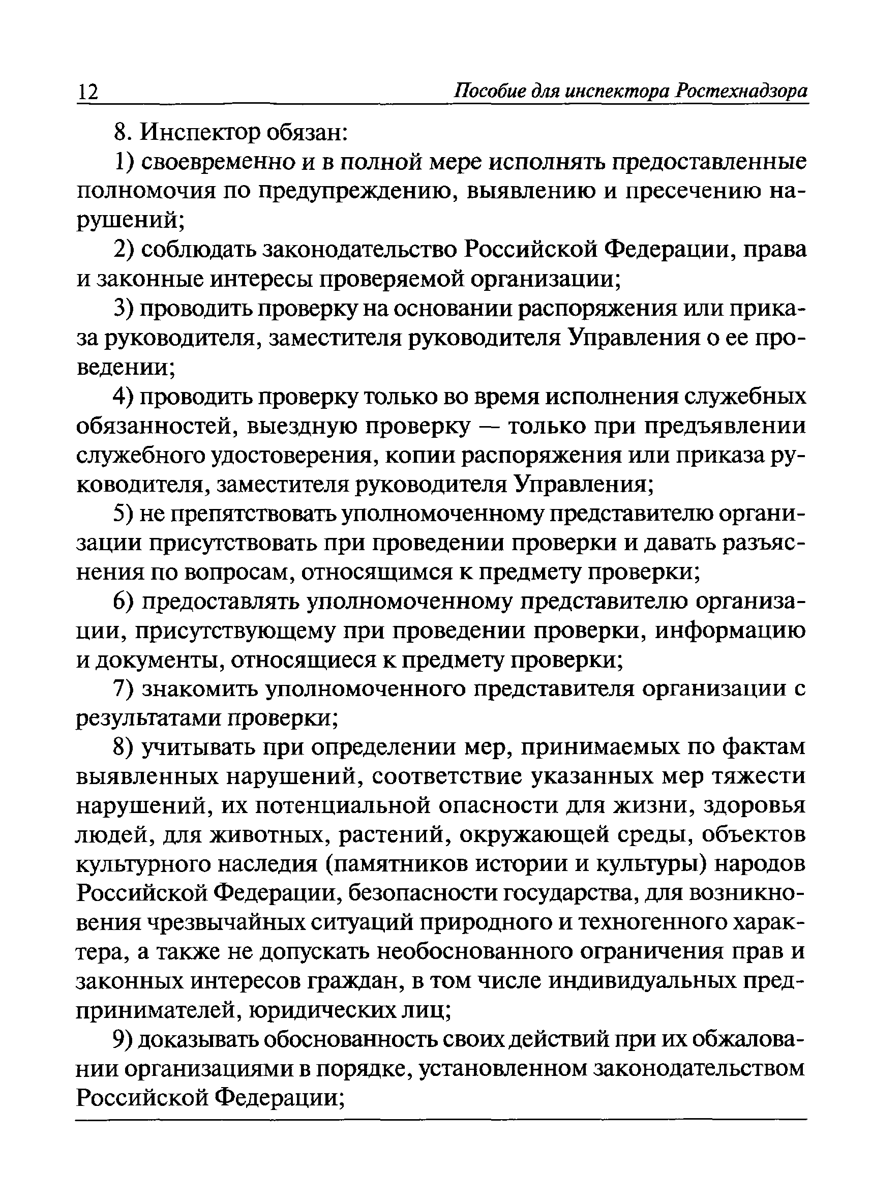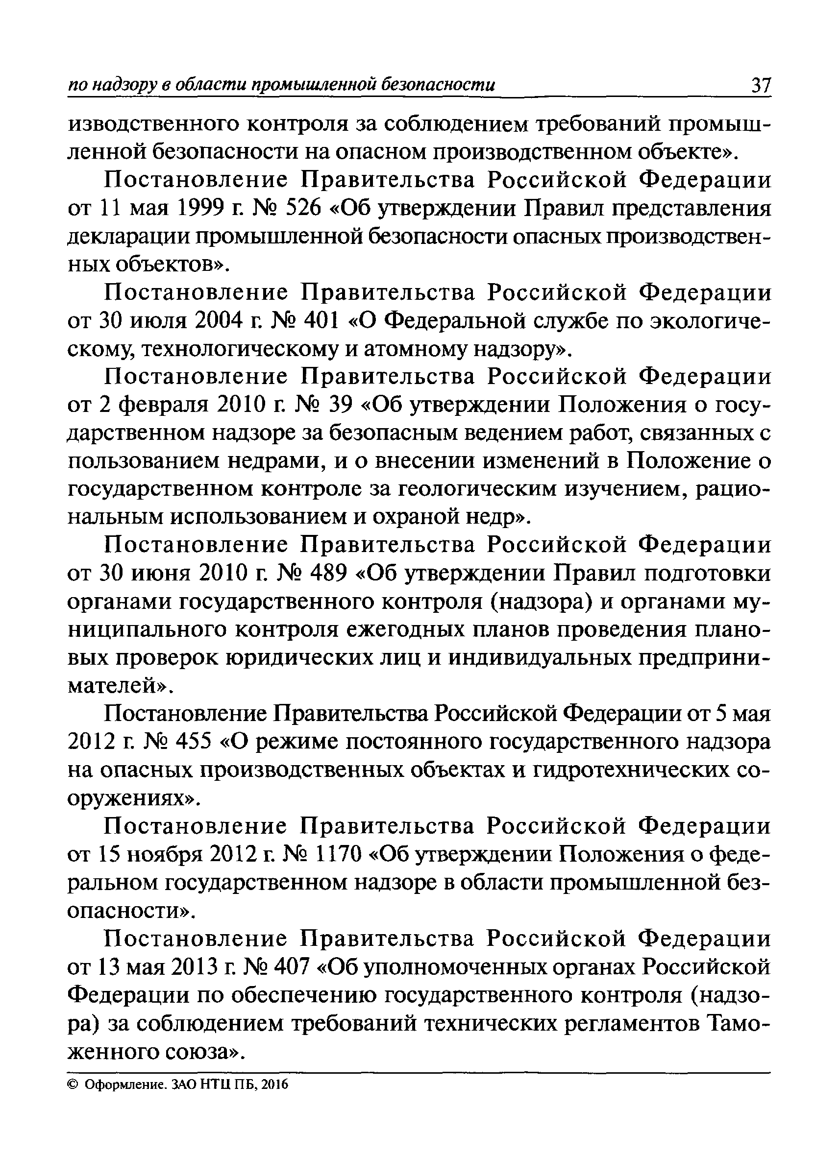 | Оглавление: | I Общие положения II Подготовка к проведению плановой проверки III Проведение плановой проверки IV Проведение документарной проверки V Особенности проведения внеплановой проверки VI Оформление результатов проверки VII Контроль исполнения выданного предписания VIII Особенности проведения проверок в режиме постоянного государственного надзора на опасных производственных объектах 1 класса опасности IХ Перечень нормативных правовых актов, используемых при проведении проверки Приложение 1. Распоряжение (приказ) Приложение 2. Акт проверки территориальным органом Ростехнадзора юридического лица, индивидуального предпринимателя Приложение 3. Предписание Законодательные и иные нормативные правовые акты к Пособию для инспектора Ростехнадзора по надзору в области промышленной безопасности Федеральный закон от 21 июля 1997 г. № 116-ФЗ "О промышленной безопасности опасных производственных объектов" Закон Российской Федерации от 21 февраля 1992 г. № 2395-1 "О недрах" (извлечения) Федеральный закон от 26 декабря 2008 г. № 294-ФЗ "О защите прав юридических лиц и индивидуальных предпринимателей при осуществлении государственного контроля (надзора) и муниципального контроля" (извлечения) Федеральный закон от 27 декабря 2002 г. № 184-ФЗ "О техническом регулировании" (извлечения) Кодекс Российской Федерации об административных правонарушениях от 30 декабря 2001 г. № 195-ФЗ (извлечения) Положение о Федеральной службе по экологическому, технологическому и атомному надзору, утвержденное постановлением Правительства Российской Федерации от 30 июля 2004 г. № 401 Положение о федеральном государственном надзоре в области промышленной безопасности, утвержденное постановлением Правительства Российской Федерации от 15 ноября 2012 г. № 1170 Положение о режиме постоянного государственного надзора на опасных производственных объектах и гидротехнических сооружениях, утвержденное постановлением Правительства Российской Федерации от 5 мая 2012 г. № 455 Положение о государственном надзоре за безопасным ведением работ, связанных с пользованием недрами, утвержденное постановлением Правительства Российской Федерации от 2 февраля 2010 г. № 39 Постановление Правительства Российской Федерации от 13 мая 2013 г. № 407 "0б уполномоченных органах Российской Федерации по обеспечению государственного контроля (надзора) за соблюдением требований технических регламентов Таможенного союза" Постановление Правительства Российской Федерации от 23 декабря 2014 г. № 1447 "0б уполномоченных органах Российской Федерации по обеспечению государственного контроля (надзора) за соблюдением требований технического регламента Таможенного союза "О безопасности взрывчатых веществ и изделий на их основе" Административный регламент по исполнению Федеральной службой по экологическом технологическому и атомному надзору государственной функции по осуществлению контроля и надзора за соблюдением требований промышленной безопасности при проектировании, строительстве, эксплуатации, консервации опасных веществ на опасных производственных объектах, утвержденный приказом Минприроды России от 30 октября 2008 г. № 280 |