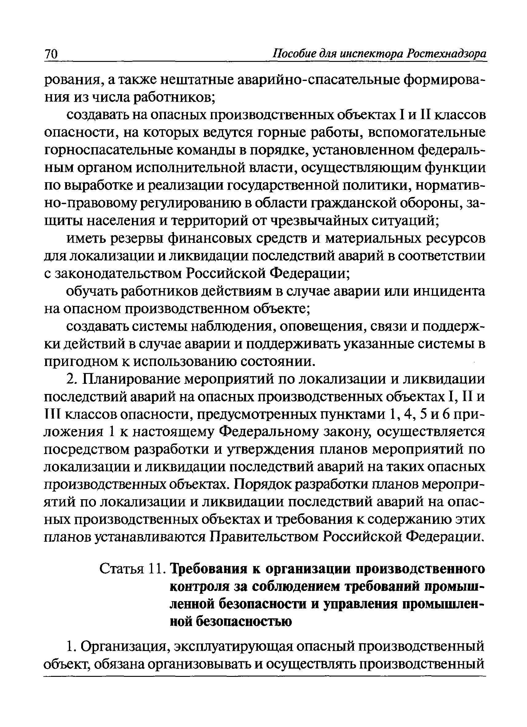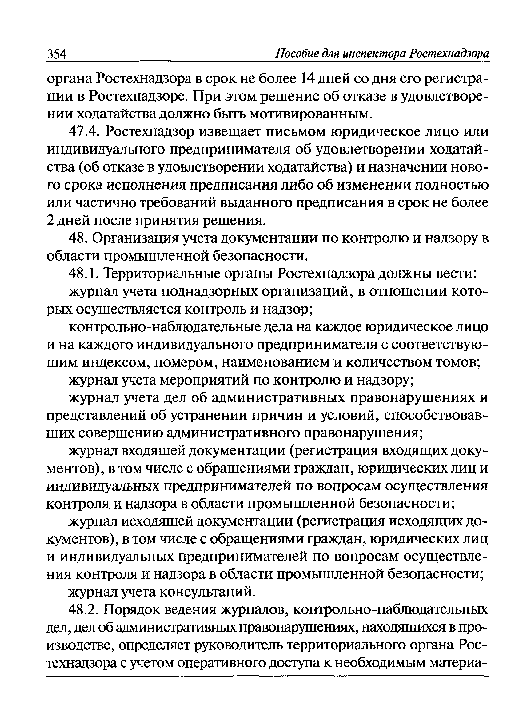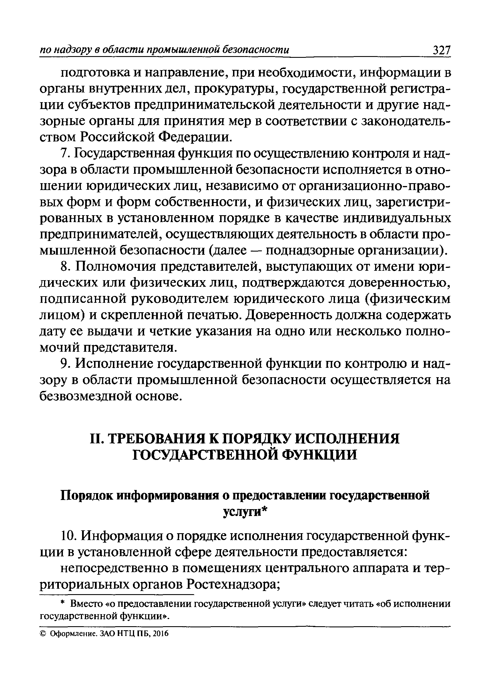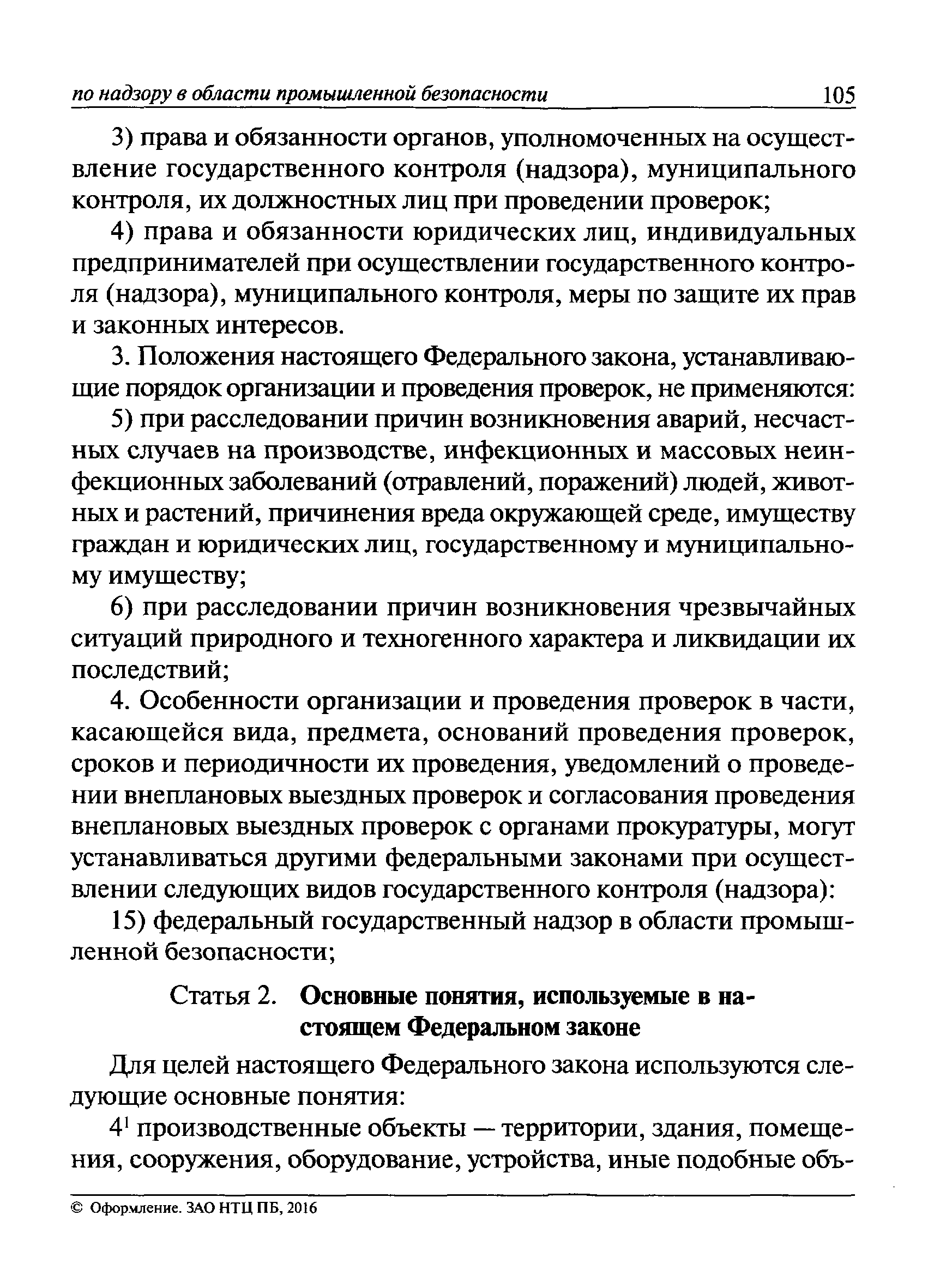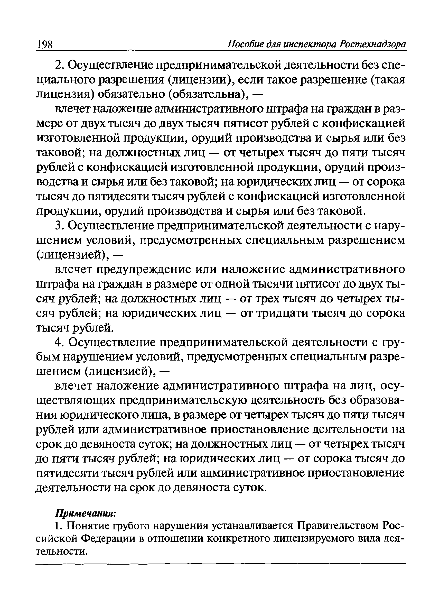 | Оглавление: | I Общие положения II Подготовка к проведению плановой проверки III Проведение плановой проверки IV Проведение документарной проверки V Особенности проведения внеплановой проверки VI Оформление результатов проверки VII Контроль исполнения выданного предписания VIII Особенности проведения проверок в режиме постоянного государственного надзора на опасных производственных объектах 1 класса опасности IХ Перечень нормативных правовых актов, используемых при проведении проверки Приложение 1. Распоряжение (приказ) Приложение 2. Акт проверки территориальным органом Ростехнадзора юридического лица, индивидуального предпринимателя Приложение 3. Предписание Законодательные и иные нормативные правовые акты к Пособию для инспектора Ростехнадзора по надзору в области промышленной безопасности Федеральный закон от 21 июля 1997 г. № 116-ФЗ "О промышленной безопасности опасных производственных объектов" Закон Российской Федерации от 21 февраля 1992 г. № 2395-1 "О недрах" (извлечения) Федеральный закон от 26 декабря 2008 г. № 294-ФЗ "О защите прав юридических лиц и индивидуальных предпринимателей при осуществлении государственного контроля (надзора) и муниципального контроля" (извлечения) Федеральный закон от 27 декабря 2002 г. № 184-ФЗ "О техническом регулировании" (извлечения) Кодекс Российской Федерации об административных правонарушениях от 30 декабря 2001 г. № 195-ФЗ (извлечения) Положение о Федеральной службе по экологическому, технологическому и атомному надзору, утвержденное постановлением Правительства Российской Федерации от 30 июля 2004 г. № 401 Положение о федеральном государственном надзоре в области промышленной безопасности, утвержденное постановлением Правительства Российской Федерации от 15 ноября 2012 г. № 1170 Положение о режиме постоянного государственного надзора на опасных производственных объектах и гидротехнических сооружениях, утвержденное постановлением Правительства Российской Федерации от 5 мая 2012 г. № 455 Положение о государственном надзоре за безопасным ведением работ, связанных с пользованием недрами, утвержденное постановлением Правительства Российской Федерации от 2 февраля 2010 г. № 39 Постановление Правительства Российской Федерации от 13 мая 2013 г. № 407 "0б уполномоченных органах Российской Федерации по обеспечению государственного контроля (надзора) за соблюдением требований технических регламентов Таможенного союза" Постановление Правительства Российской Федерации от 23 декабря 2014 г. № 1447 "0б уполномоченных органах Российской Федерации по обеспечению государственного контроля (надзора) за соблюдением требований технического регламента Таможенного союза "О безопасности взрывчатых веществ и изделий на их основе" Административный регламент по исполнению Федеральной службой по экологическом технологическому и атомному надзору государственной функции по осуществлению контроля и надзора за соблюдением требований промышленной безопасности при проектировании, строительстве, эксплуатации, консервации опасных веществ на опасных производственных объектах, утвержденный приказом Минприроды России от 30 октября 2008 г. № 280 |