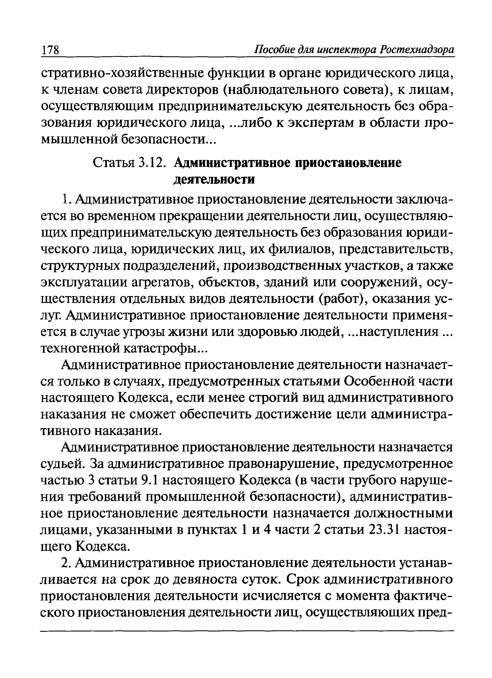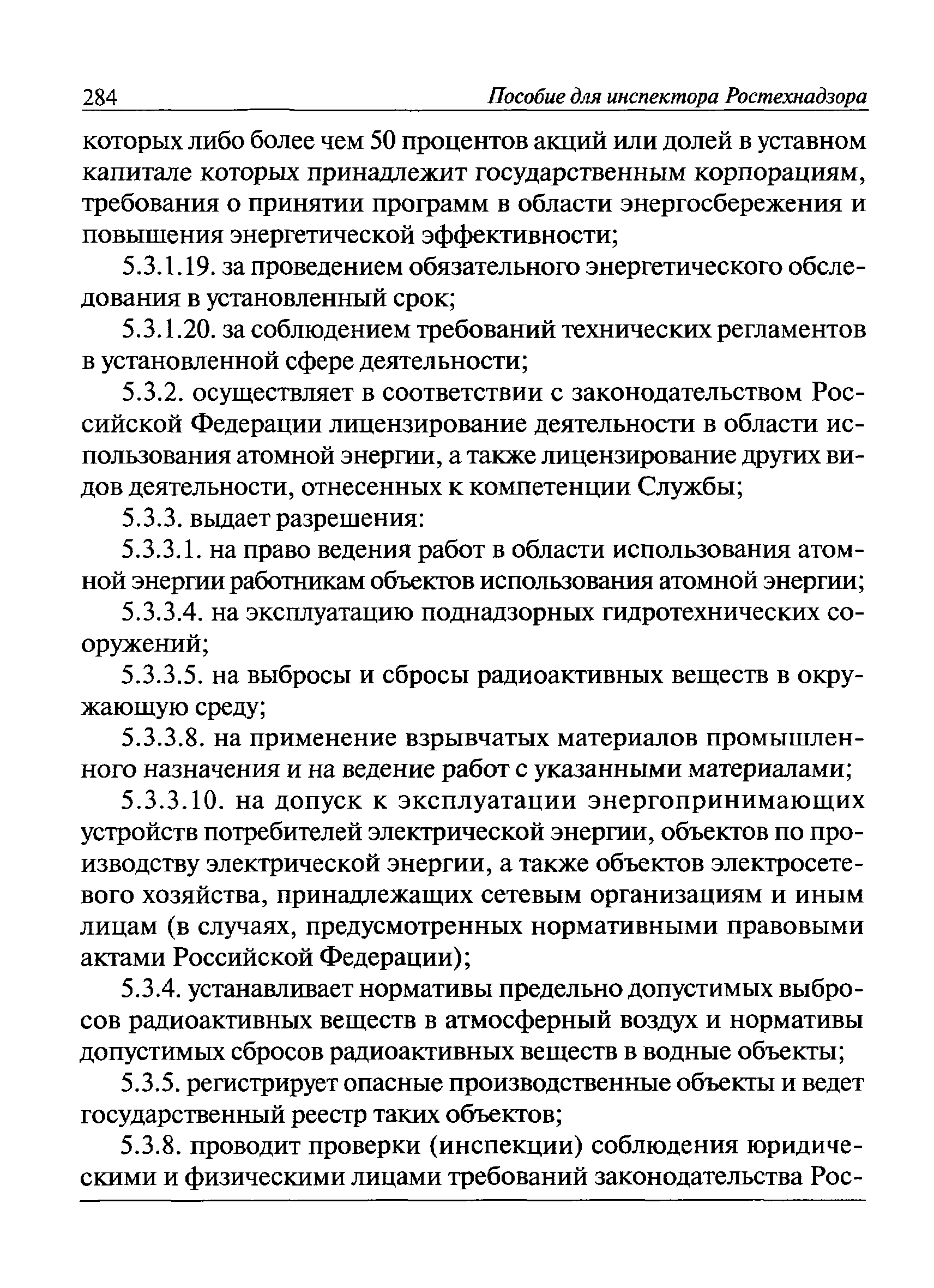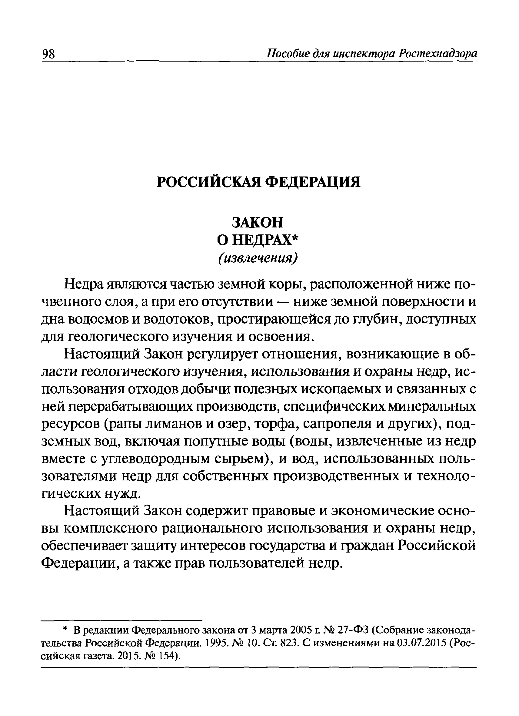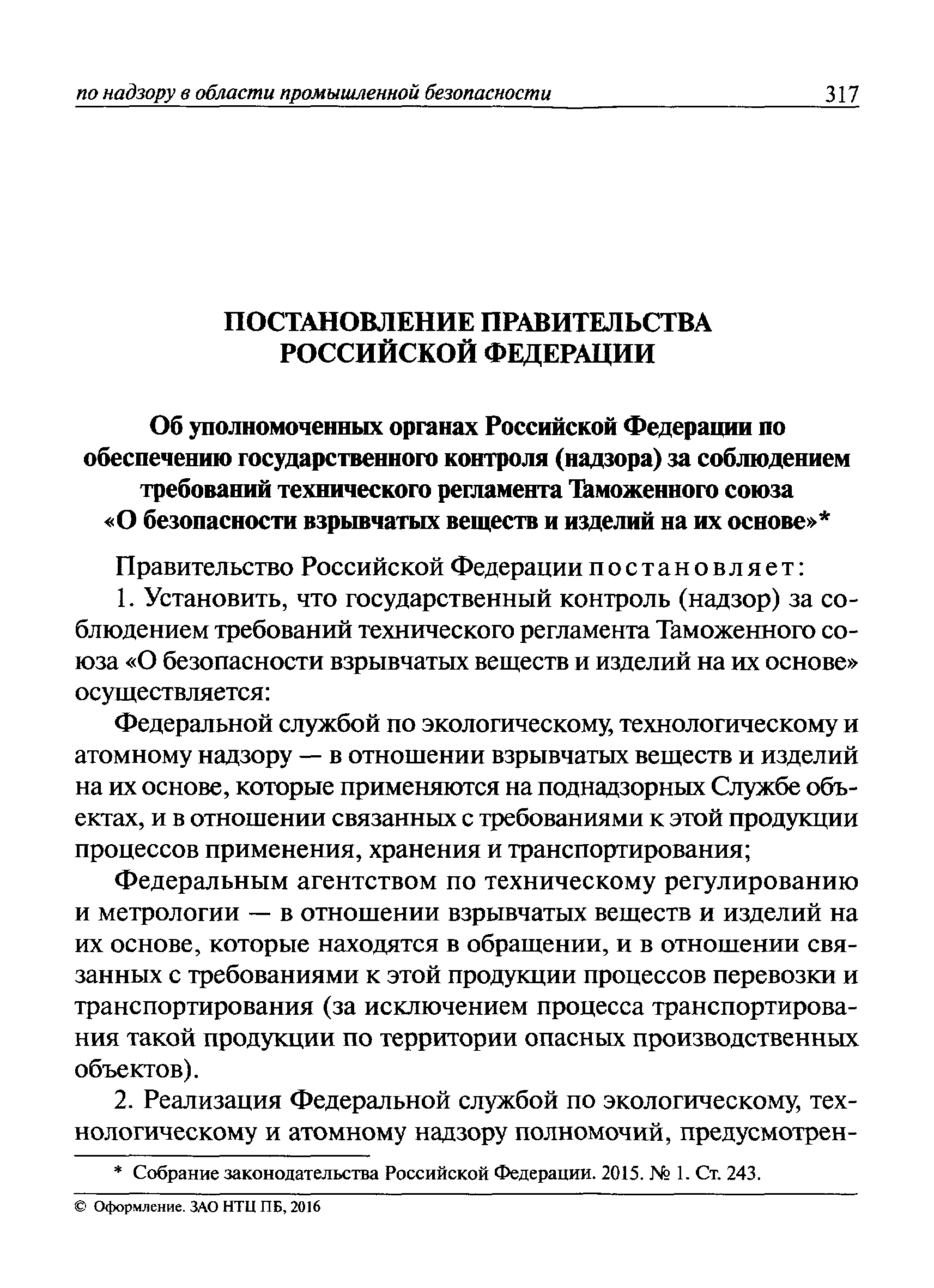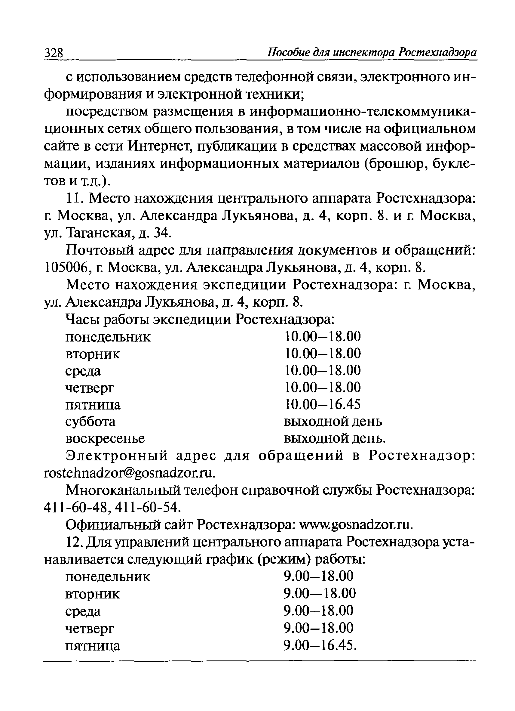 | Оглавление: | I Общие положения II Подготовка к проведению плановой проверки III Проведение плановой проверки IV Проведение документарной проверки V Особенности проведения внеплановой проверки VI Оформление результатов проверки VII Контроль исполнения выданного предписания VIII Особенности проведения проверок в режиме постоянного государственного надзора на опасных производственных объектах 1 класса опасности IХ Перечень нормативных правовых актов, используемых при проведении проверки Приложение 1. Распоряжение (приказ) Приложение 2. Акт проверки территориальным органом Ростехнадзора юридического лица, индивидуального предпринимателя Приложение 3. Предписание Законодательные и иные нормативные правовые акты к Пособию для инспектора Ростехнадзора по надзору в области промышленной безопасности Федеральный закон от 21 июля 1997 г. № 116-ФЗ "О промышленной безопасности опасных производственных объектов" Закон Российской Федерации от 21 февраля 1992 г. № 2395-1 "О недрах" (извлечения) Федеральный закон от 26 декабря 2008 г. № 294-ФЗ "О защите прав юридических лиц и индивидуальных предпринимателей при осуществлении государственного контроля (надзора) и муниципального контроля" (извлечения) Федеральный закон от 27 декабря 2002 г. № 184-ФЗ "О техническом регулировании" (извлечения) Кодекс Российской Федерации об административных правонарушениях от 30 декабря 2001 г. № 195-ФЗ (извлечения) Положение о Федеральной службе по экологическому, технологическому и атомному надзору, утвержденное постановлением Правительства Российской Федерации от 30 июля 2004 г. № 401 Положение о федеральном государственном надзоре в области промышленной безопасности, утвержденное постановлением Правительства Российской Федерации от 15 ноября 2012 г. № 1170 Положение о режиме постоянного государственного надзора на опасных производственных объектах и гидротехнических сооружениях, утвержденное постановлением Правительства Российской Федерации от 5 мая 2012 г. № 455 Положение о государственном надзоре за безопасным ведением работ, связанных с пользованием недрами, утвержденное постановлением Правительства Российской Федерации от 2 февраля 2010 г. № 39 Постановление Правительства Российской Федерации от 13 мая 2013 г. № 407 "0б уполномоченных органах Российской Федерации по обеспечению государственного контроля (надзора) за соблюдением требований технических регламентов Таможенного союза" Постановление Правительства Российской Федерации от 23 декабря 2014 г. № 1447 "0б уполномоченных органах Российской Федерации по обеспечению государственного контроля (надзора) за соблюдением требований технического регламента Таможенного союза "О безопасности взрывчатых веществ и изделий на их основе" Административный регламент по исполнению Федеральной службой по экологическом технологическому и атомному надзору государственной функции по осуществлению контроля и надзора за соблюдением требований промышленной безопасности при проектировании, строительстве, эксплуатации, консервации опасных веществ на опасных производственных объектах, утвержденный приказом Минприроды России от 30 октября 2008 г. № 280 |