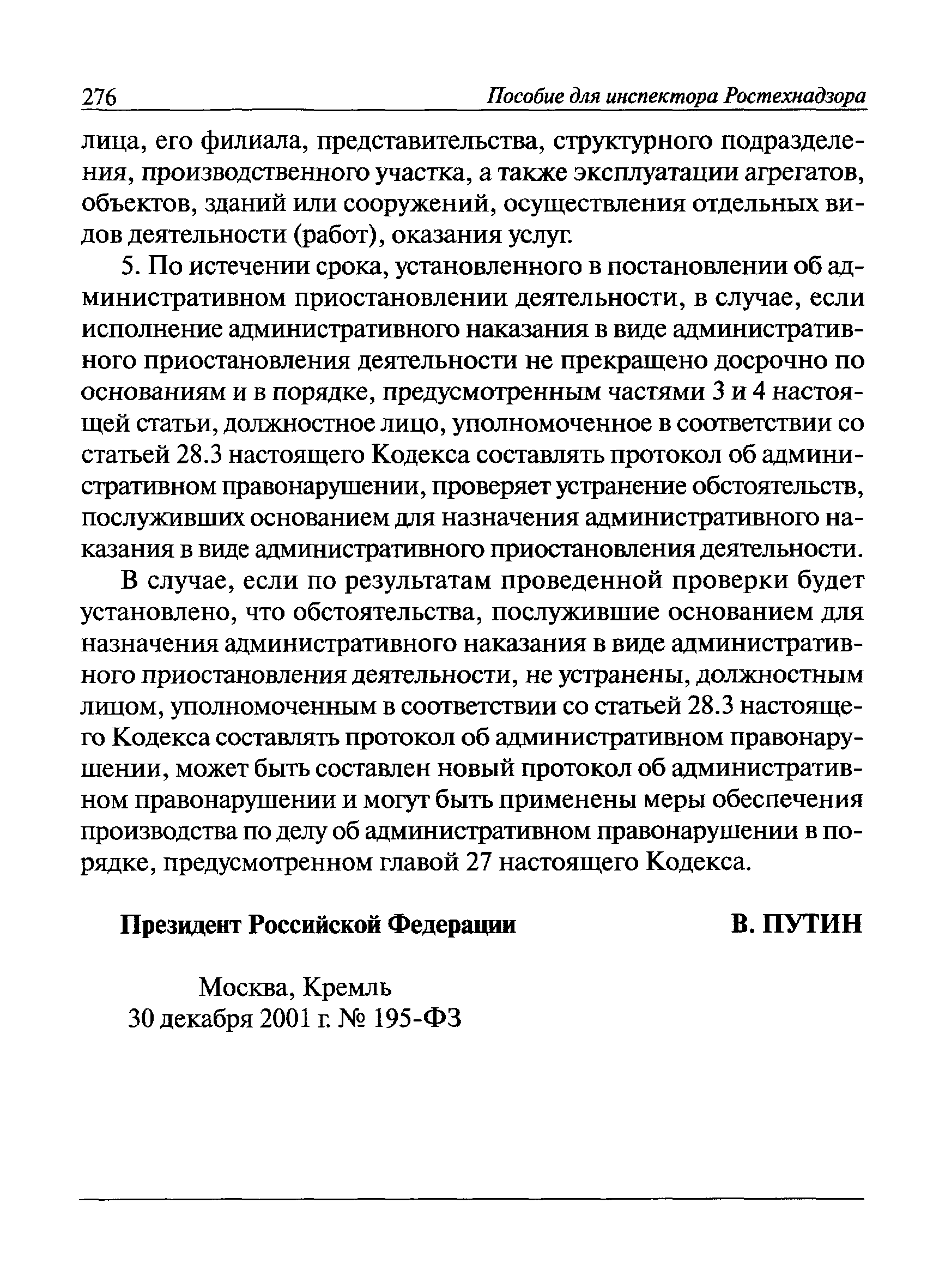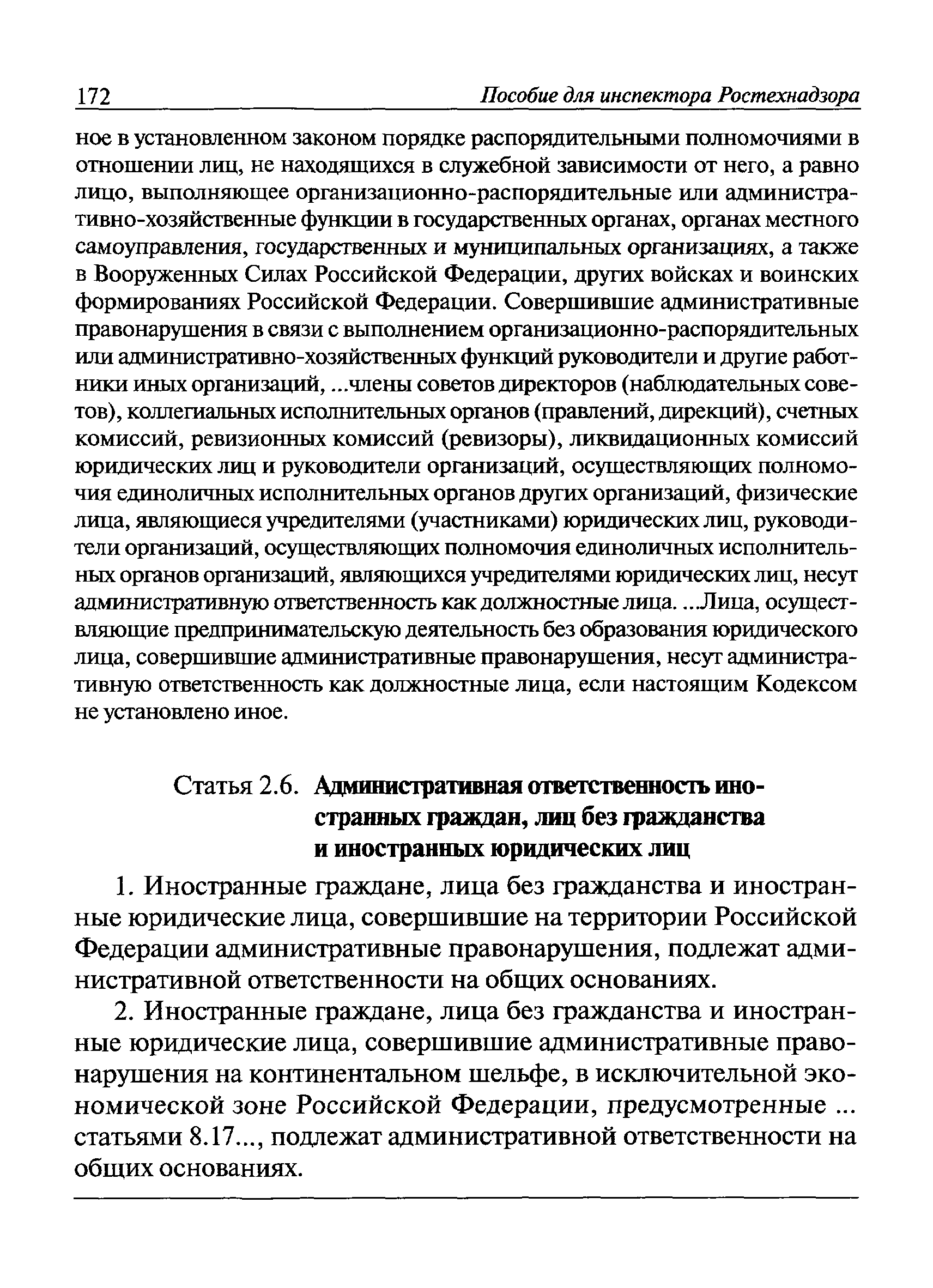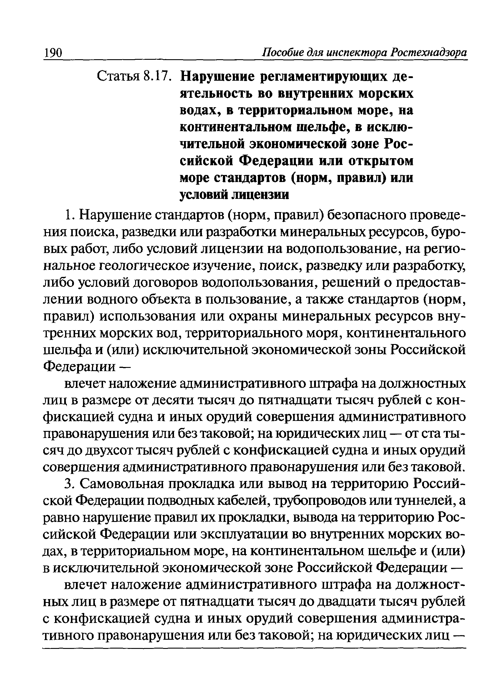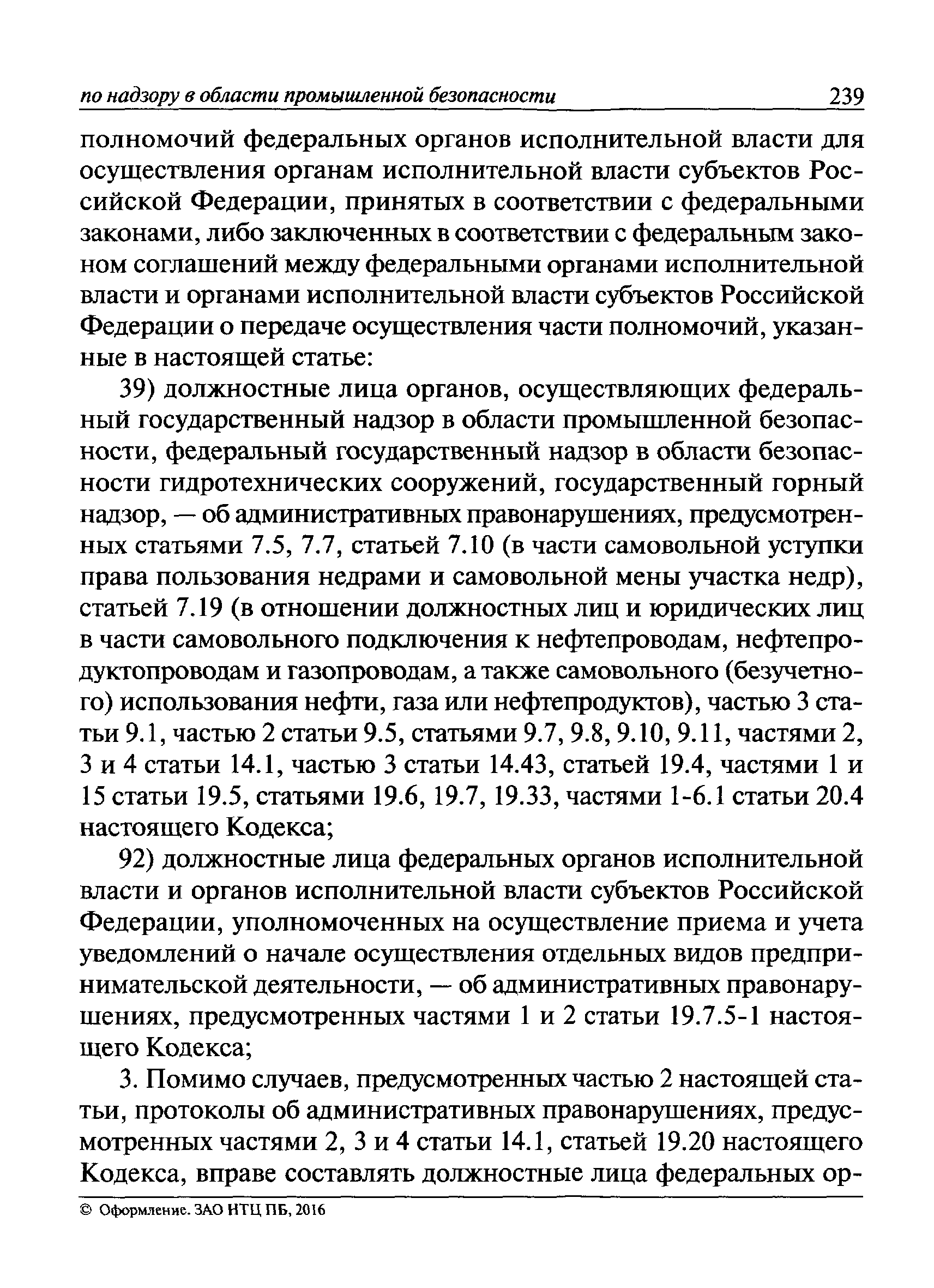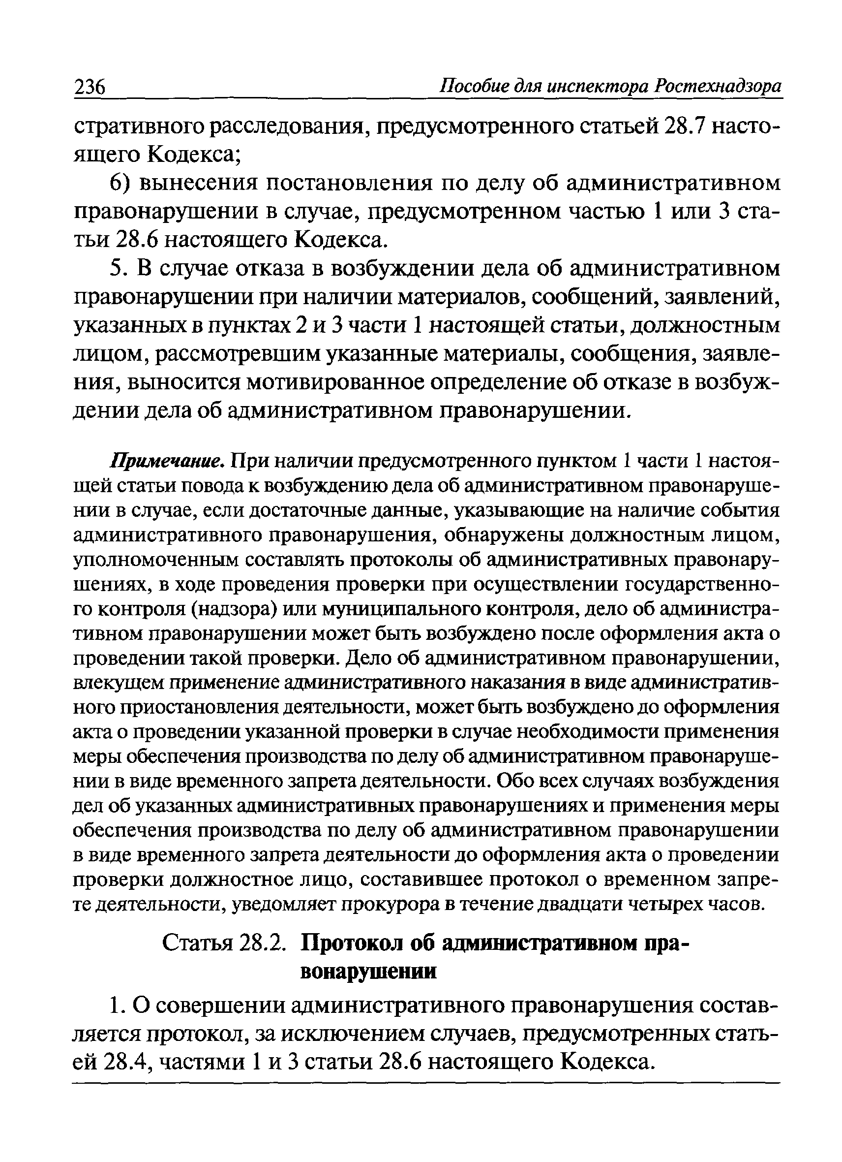 | Оглавление: | I Общие положения II Подготовка к проведению плановой проверки III Проведение плановой проверки IV Проведение документарной проверки V Особенности проведения внеплановой проверки VI Оформление результатов проверки VII Контроль исполнения выданного предписания VIII Особенности проведения проверок в режиме постоянного государственного надзора на опасных производственных объектах 1 класса опасности IХ Перечень нормативных правовых актов, используемых при проведении проверки Приложение 1. Распоряжение (приказ) Приложение 2. Акт проверки территориальным органом Ростехнадзора юридического лица, индивидуального предпринимателя Приложение 3. Предписание Законодательные и иные нормативные правовые акты к Пособию для инспектора Ростехнадзора по надзору в области промышленной безопасности Федеральный закон от 21 июля 1997 г. № 116-ФЗ "О промышленной безопасности опасных производственных объектов" Закон Российской Федерации от 21 февраля 1992 г. № 2395-1 "О недрах" (извлечения) Федеральный закон от 26 декабря 2008 г. № 294-ФЗ "О защите прав юридических лиц и индивидуальных предпринимателей при осуществлении государственного контроля (надзора) и муниципального контроля" (извлечения) Федеральный закон от 27 декабря 2002 г. № 184-ФЗ "О техническом регулировании" (извлечения) Кодекс Российской Федерации об административных правонарушениях от 30 декабря 2001 г. № 195-ФЗ (извлечения) Положение о Федеральной службе по экологическому, технологическому и атомному надзору, утвержденное постановлением Правительства Российской Федерации от 30 июля 2004 г. № 401 Положение о федеральном государственном надзоре в области промышленной безопасности, утвержденное постановлением Правительства Российской Федерации от 15 ноября 2012 г. № 1170 Положение о режиме постоянного государственного надзора на опасных производственных объектах и гидротехнических сооружениях, утвержденное постановлением Правительства Российской Федерации от 5 мая 2012 г. № 455 Положение о государственном надзоре за безопасным ведением работ, связанных с пользованием недрами, утвержденное постановлением Правительства Российской Федерации от 2 февраля 2010 г. № 39 Постановление Правительства Российской Федерации от 13 мая 2013 г. № 407 "0б уполномоченных органах Российской Федерации по обеспечению государственного контроля (надзора) за соблюдением требований технических регламентов Таможенного союза" Постановление Правительства Российской Федерации от 23 декабря 2014 г. № 1447 "0б уполномоченных органах Российской Федерации по обеспечению государственного контроля (надзора) за соблюдением требований технического регламента Таможенного союза "О безопасности взрывчатых веществ и изделий на их основе" Административный регламент по исполнению Федеральной службой по экологическом технологическому и атомному надзору государственной функции по осуществлению контроля и надзора за соблюдением требований промышленной безопасности при проектировании, строительстве, эксплуатации, консервации опасных веществ на опасных производственных объектах, утвержденный приказом Минприроды России от 30 октября 2008 г. № 280 |