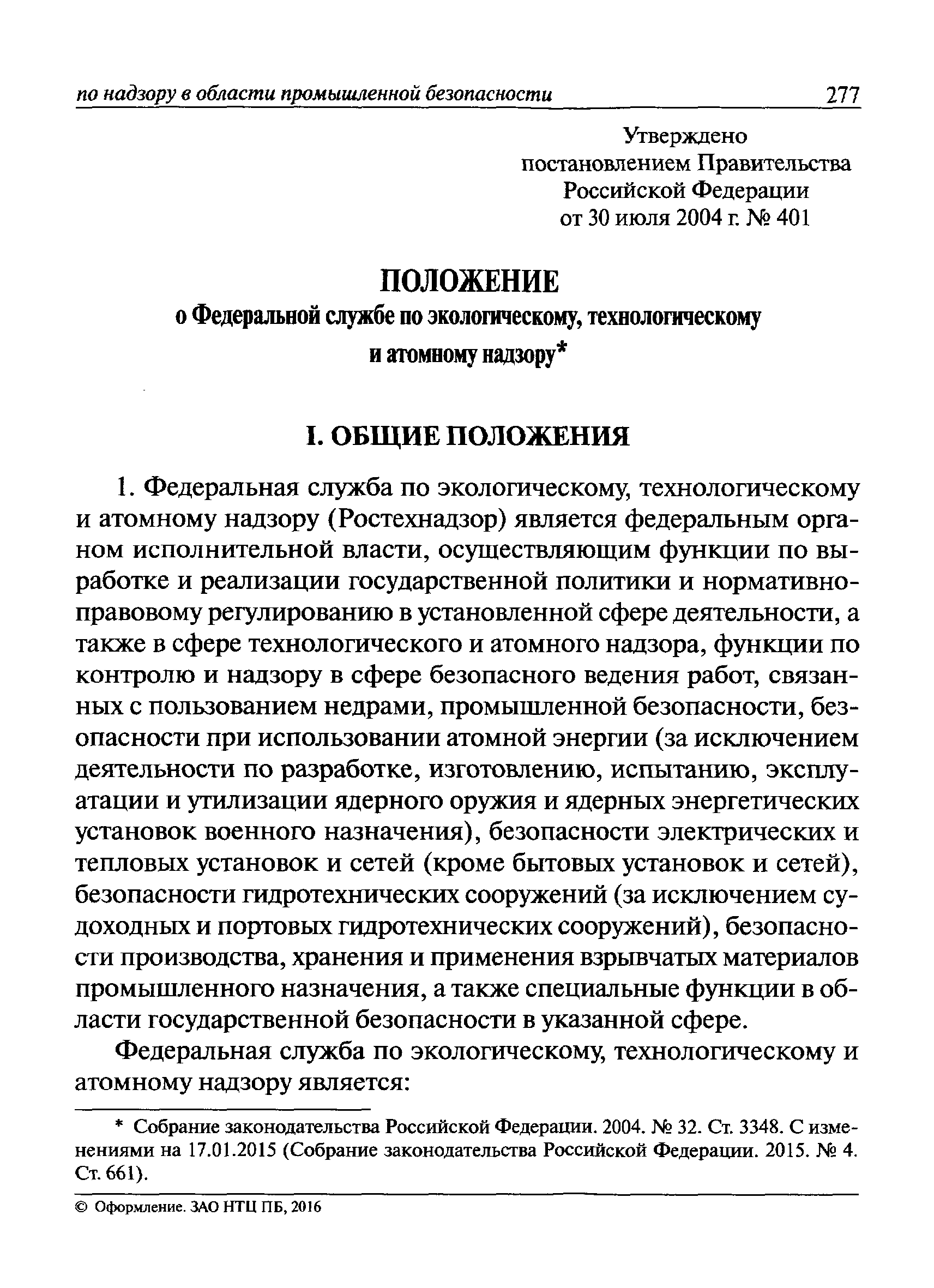 | Утверждён: | 10.09.2015 Федеральная служба по экологическому, технологическому и атомному надзору (1) |