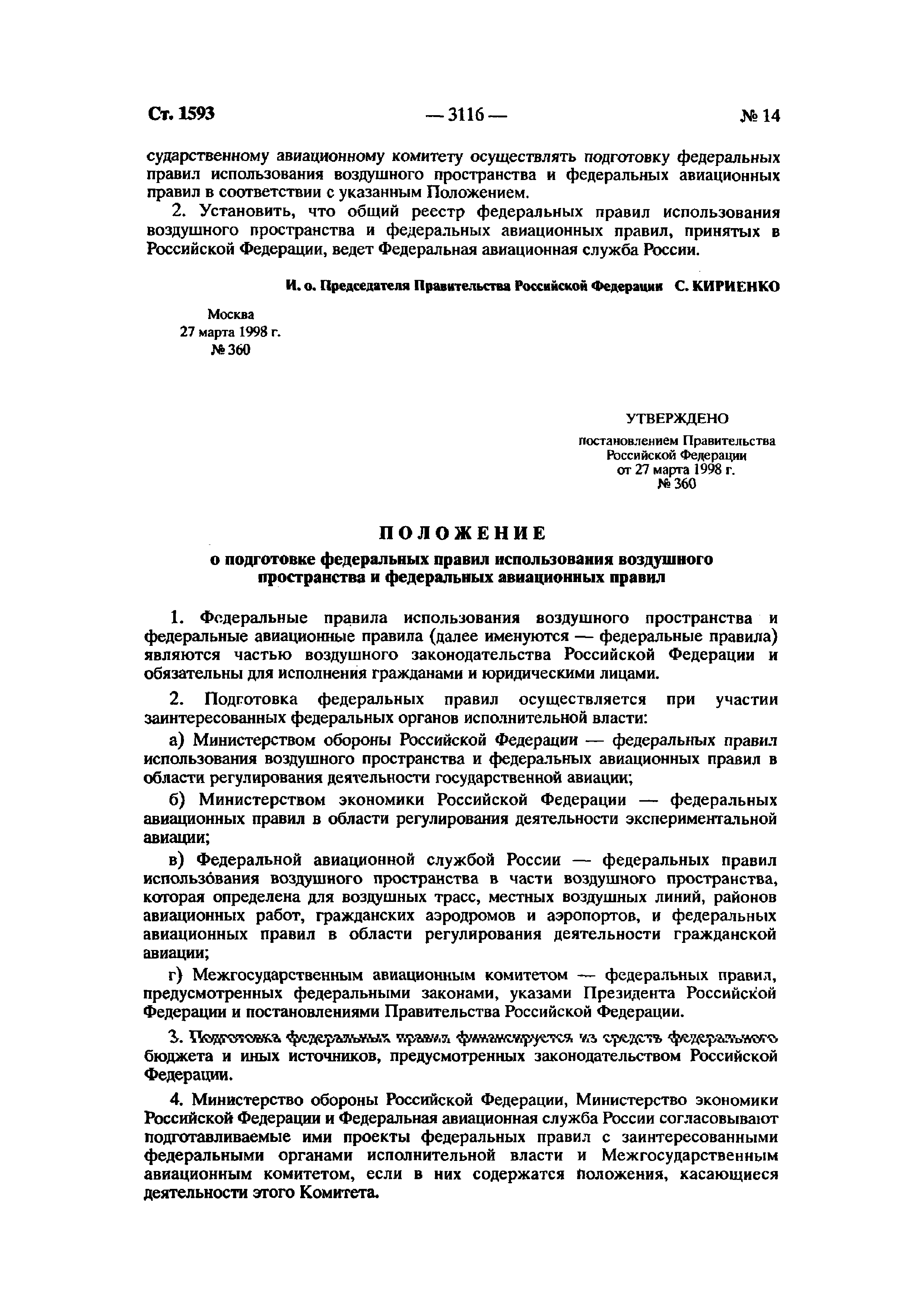 | Утверждён: | 27.03.1998 Правительство Российской Федерации (360)