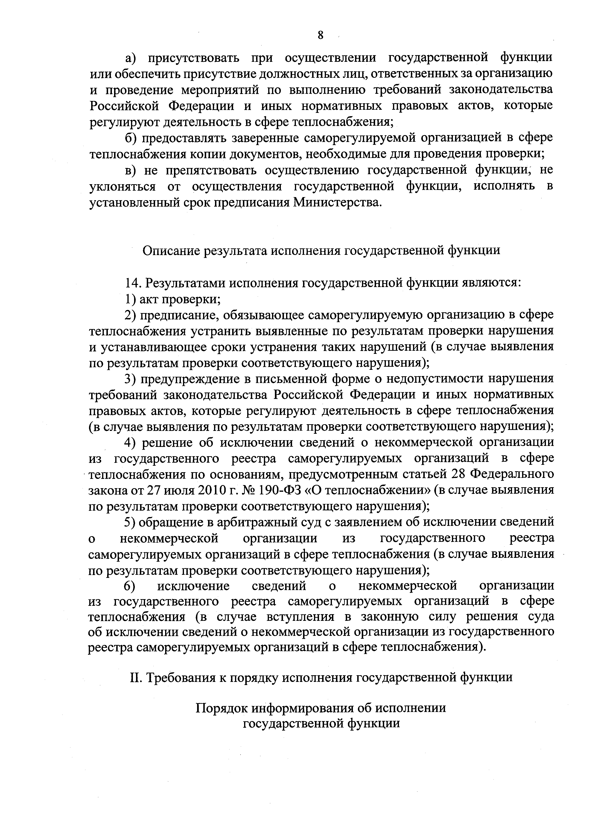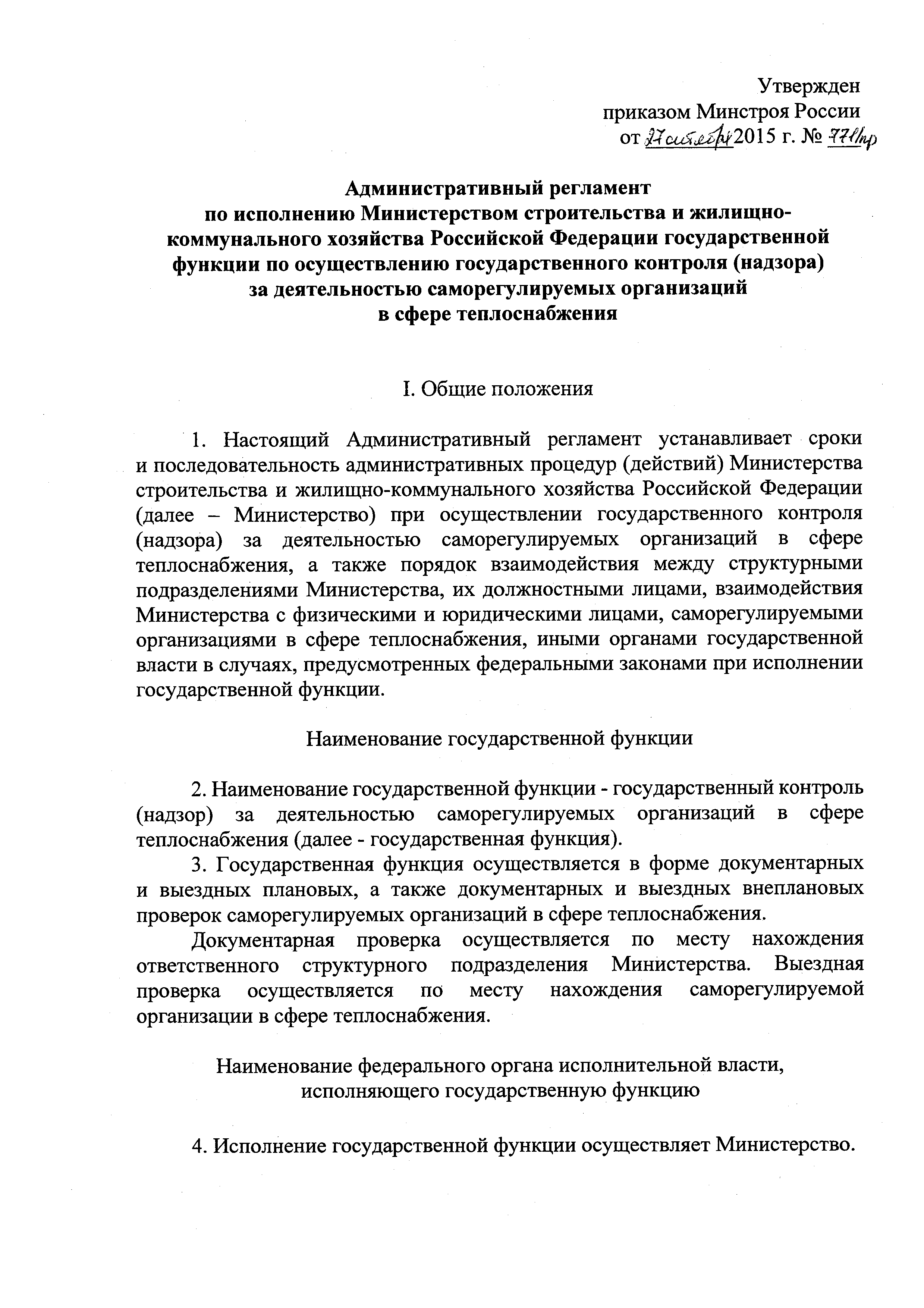 | Название рус.: | Административный регламент по исполнению Министерством строительства и жилищно-коммунального хозяйства Российской Федерации государственной функции по осуществлению государственного контроля (надзора) за деятельностью саморегулируемых организаций в сфере теплоснабжения |