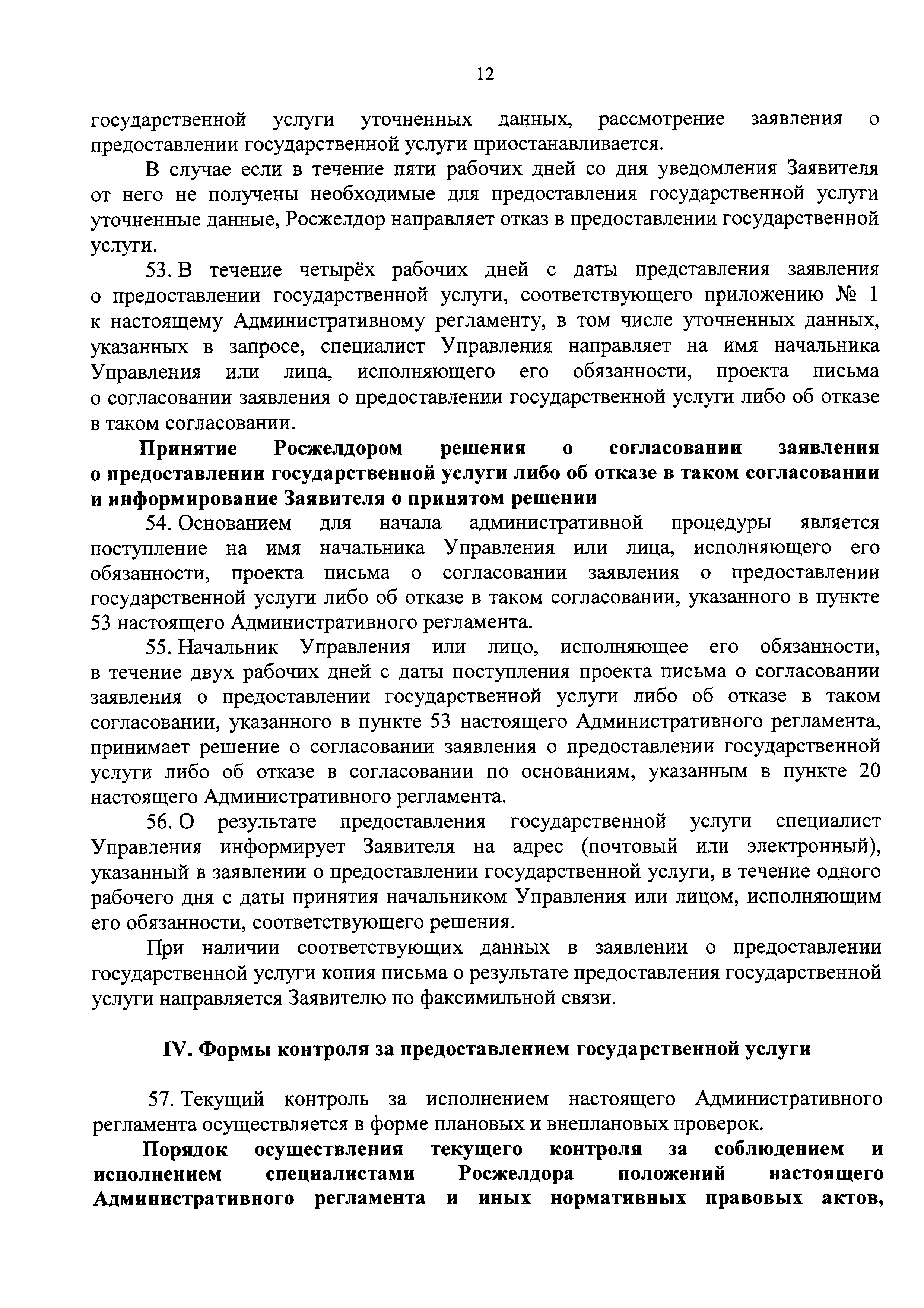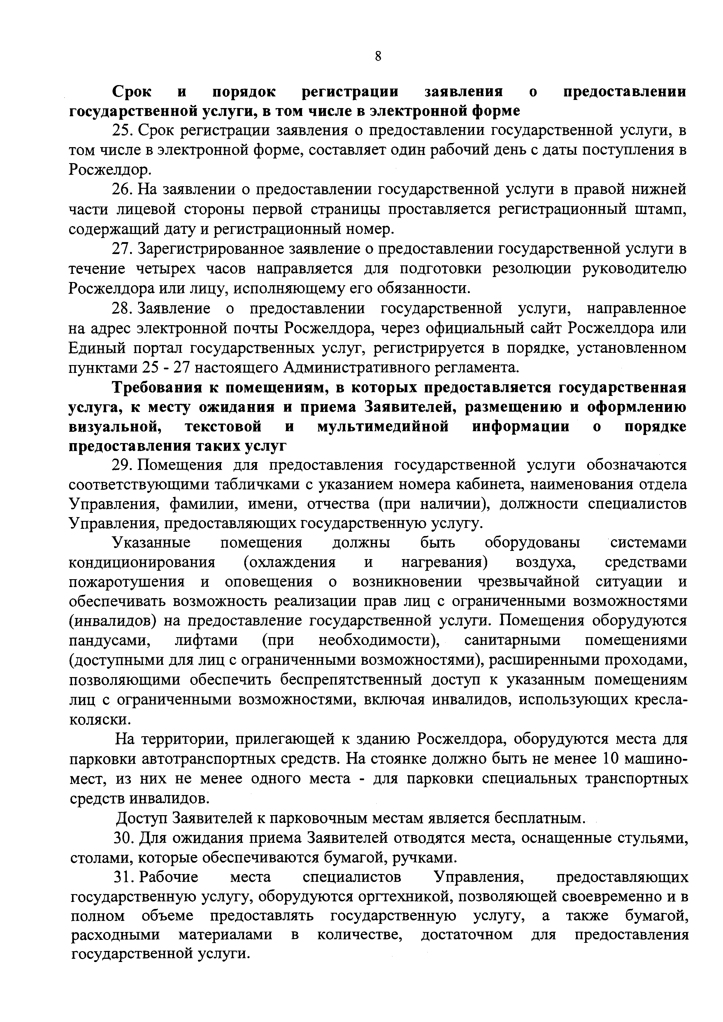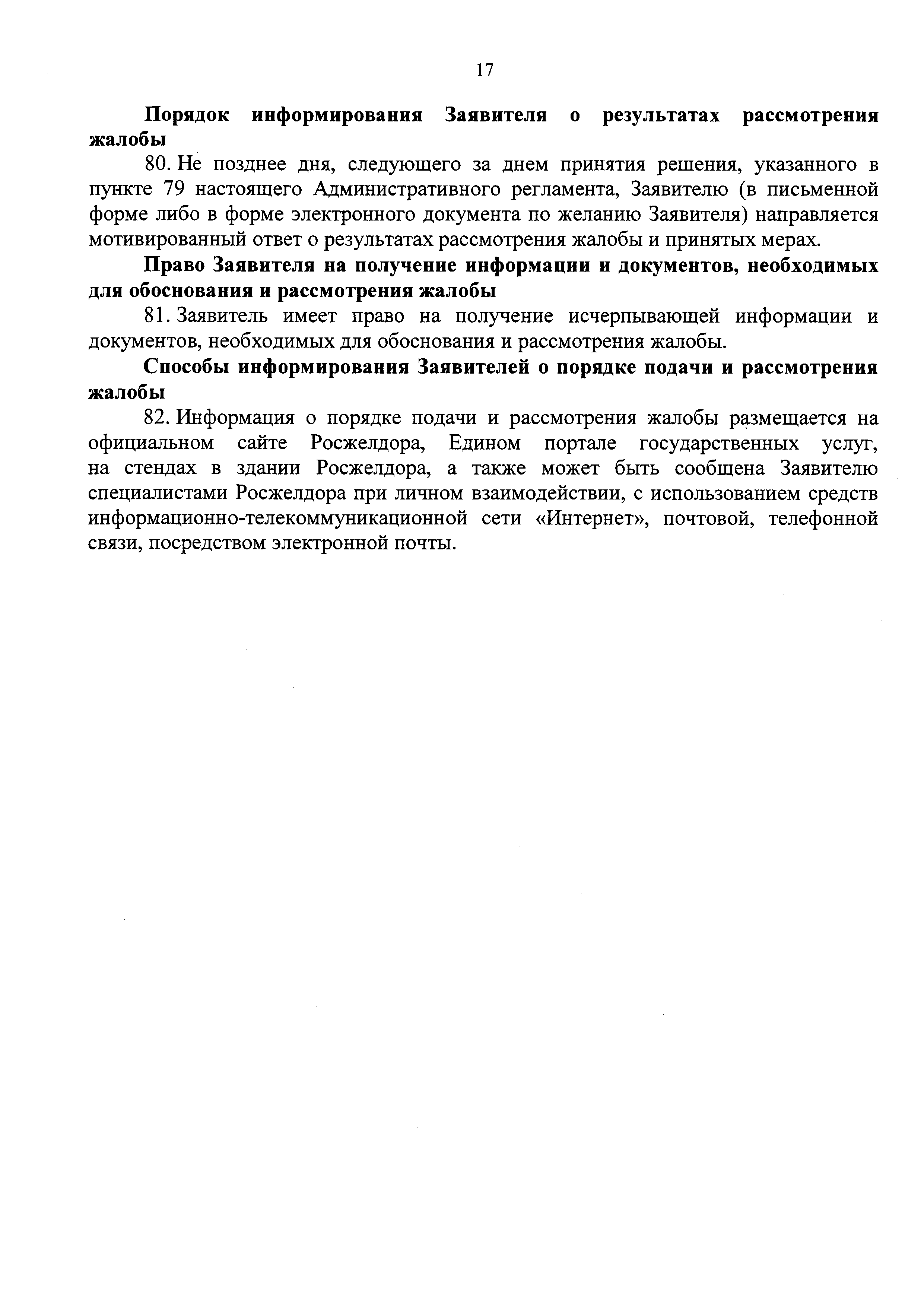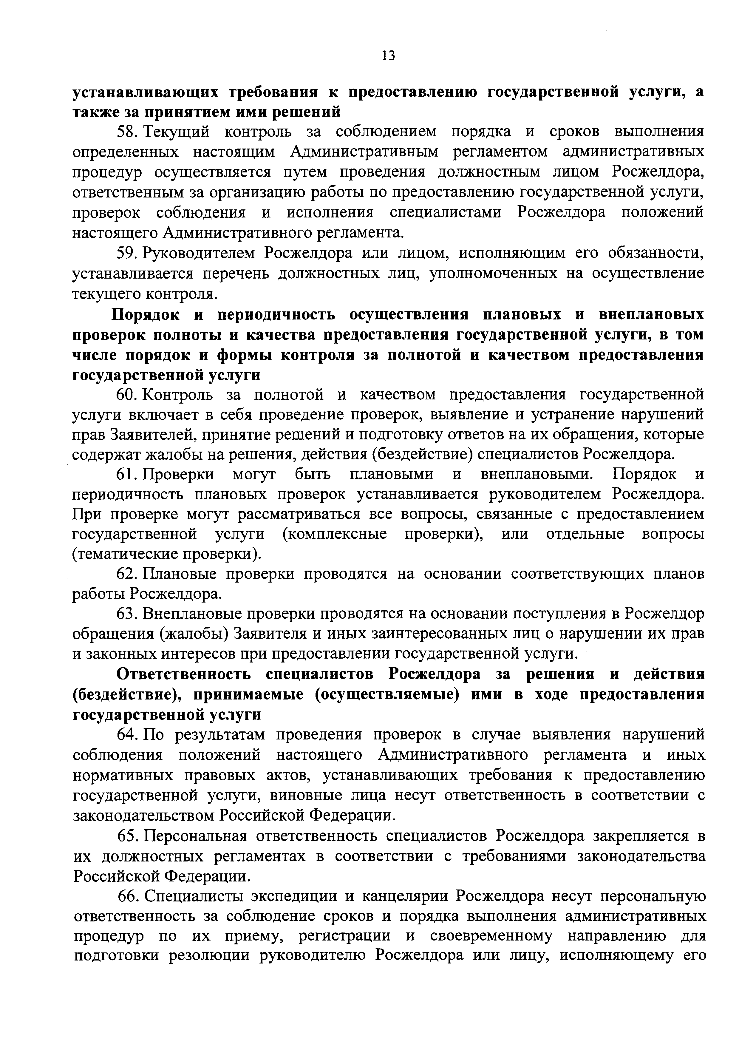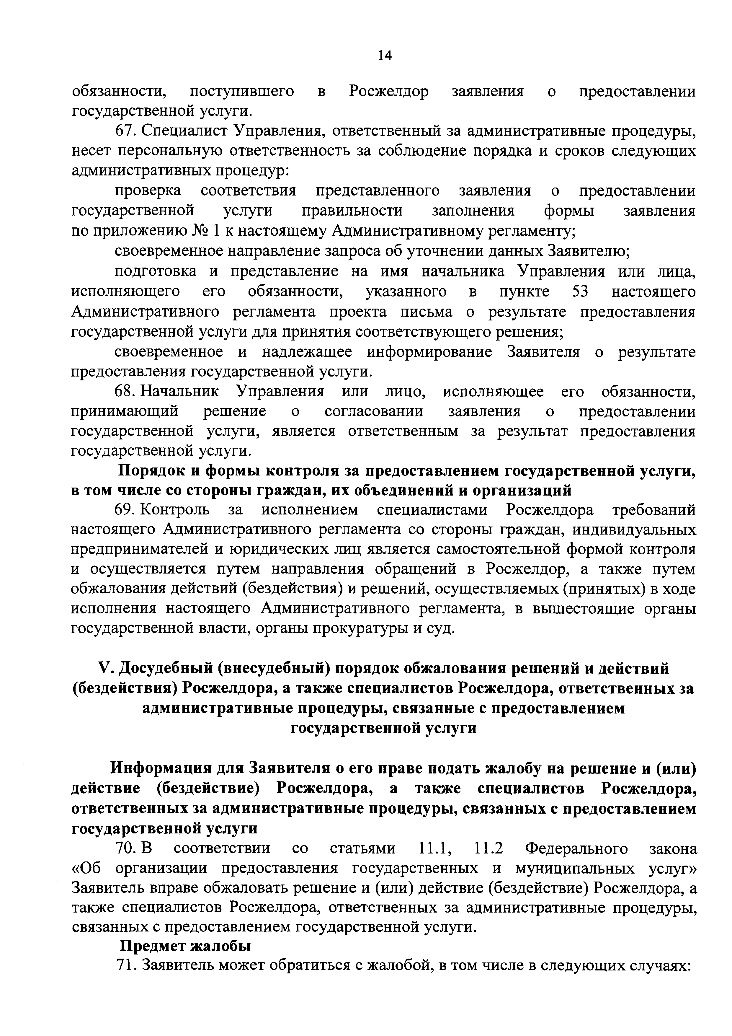 | Оглавление: | I. Общие положения II. Стандарт предоставления государственной услуги III. Состав, последовательность и сроки выполнения административных процедур, требования к порядку их выполнения, в том числе особенности выполнения административных процедур (действий) в электронной форме IV. Формы контроля за предоставлением государственной функции V. Досудебный (внесудебный) порядок обжалования решений и действий (бездействия) Росжелдора, а также специалистов Росжелдора, ответственных за административные процедуры, связанные с предоставлением государственной услуги Приложение № 1. Заявление о продлении сроков службы железнодорожного подвижного состава или технических средств, используемых на железнодорожном транспорте Приложение № 2. Блок-схема последовательности действий предоставления государственной услуги |