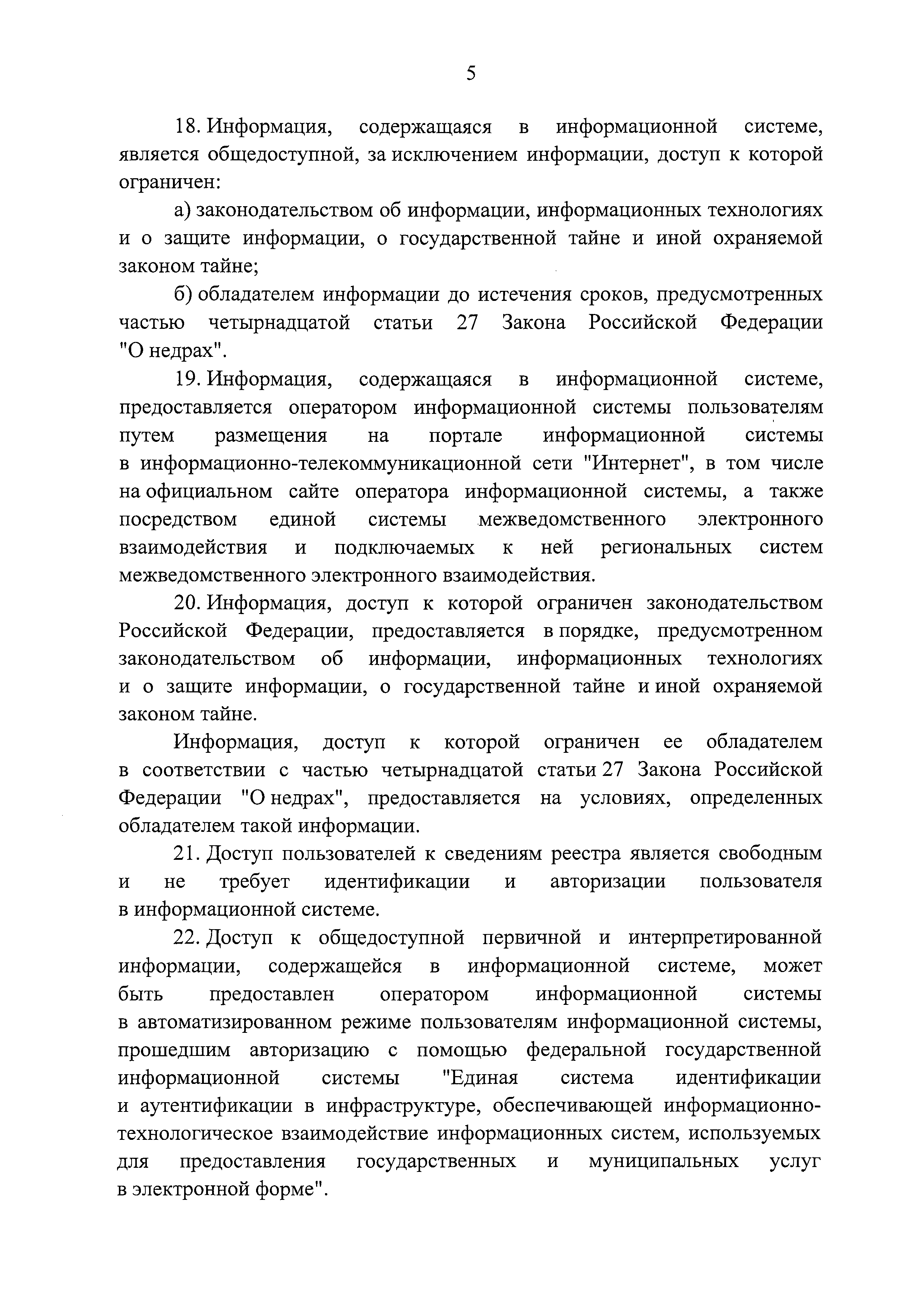 | Область применения: | Положение определяет порядок создания и эксплуатации федеральной государственной информационной системы "Единый фонд геологической информации о недрах", состав геологической информации о недрах, представляемой обладателями информации в информационную систему, порядок информационного взаимодействия оператора информационной системы с обладателями информации и ее пользователями, порядок обеспечения доступа к информации, содержащейся в информационной системе, порядок взаимодействия информационной системы с иными государственными информационными системами |