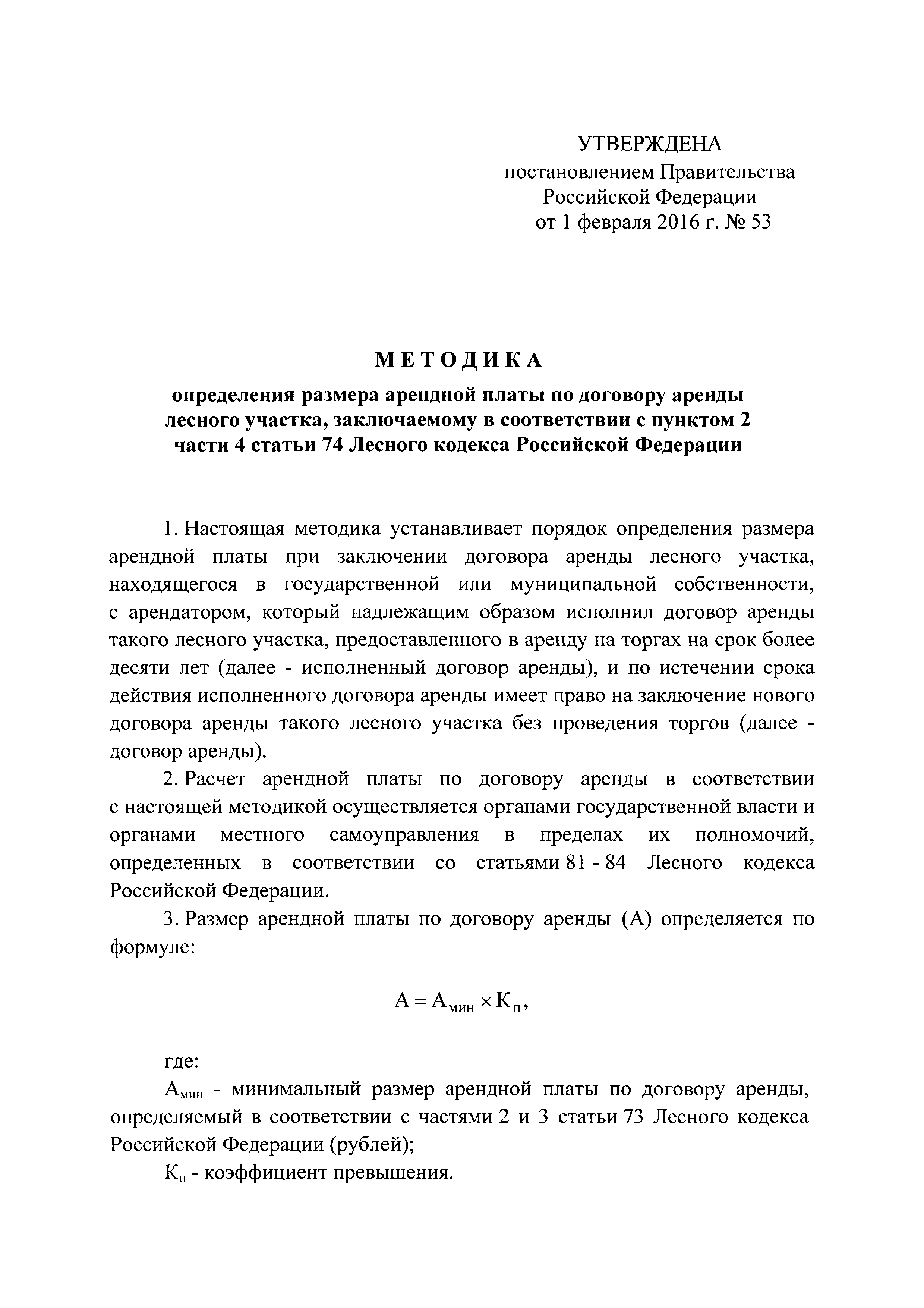 Методика определения размера арендной платы по договору аренды лесного участка, заключаемому в соответствии с пунктом 2 части 4 статьи 74 Лесного кодекса Российской Федерации| Статус: | действует | | Название рус.: | Методика определения размера арендной платы по договору аренды лесного участка, заключаемому в соответствии с пунктом 2 части 4 статьи 74 Лесного кодекса Российской Федерации | | Дата добавления в базу: | 01.02.2017 | | Дата актуализации: | 01.01.2021 | | Дата введения: | 12.02.2016 | | Область применения: | Методика устанавливает порядок определения размера арендной платы при заключении договора аренды лесного участка, находящегося в государственной или муниципальной собственности, с арендатором, который надлежащим образом исполнил договор аренды такого лесного участка, предоставленного в аренду на торгах на срок более десяти лет, и по истечении срока действия исполненного договора аренды имеет право на заключение нового договора аренды такого лесного участка без проведения торгов | | Утверждён: | 01.02.2016 Правительство Российской Федерации (53)