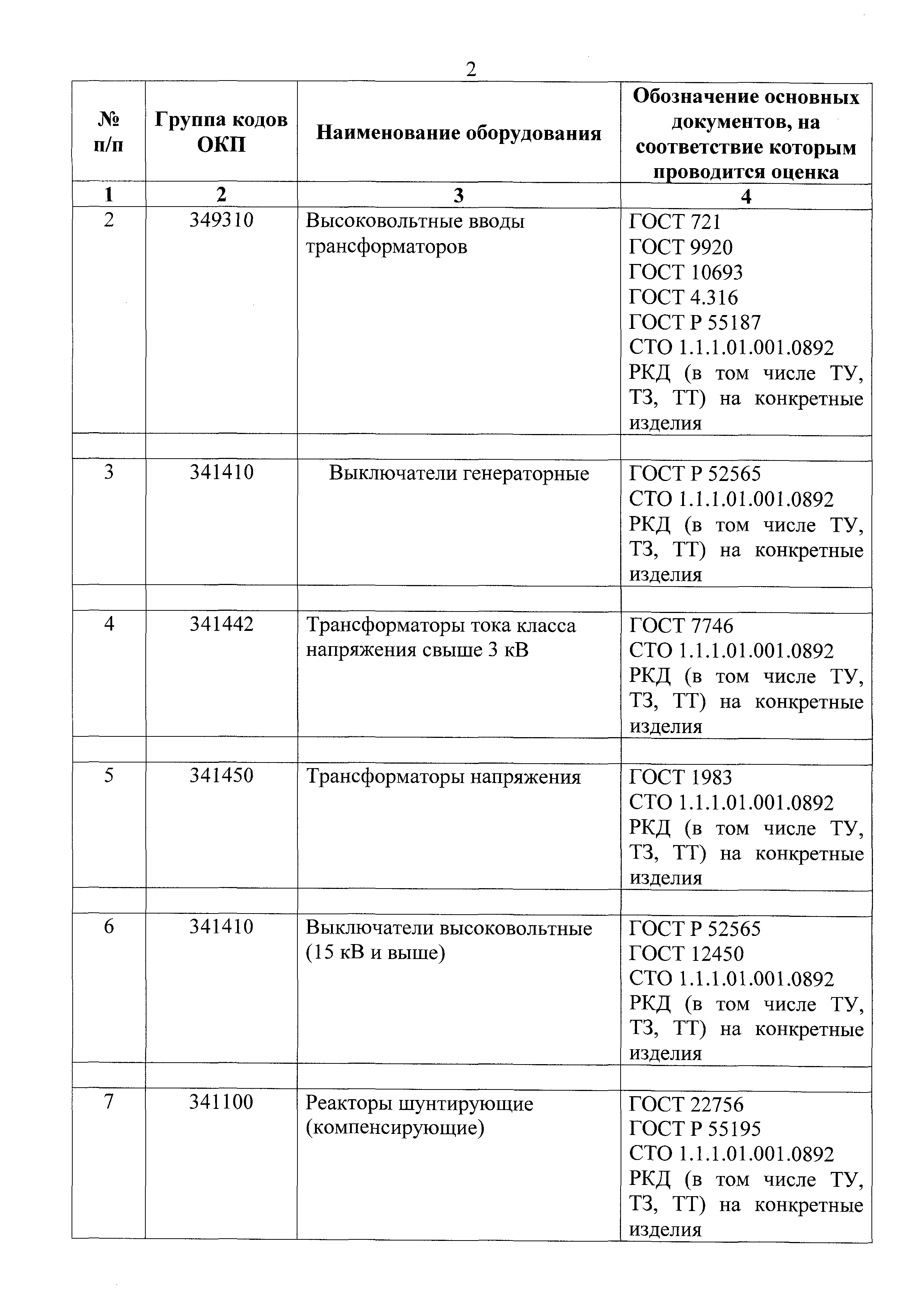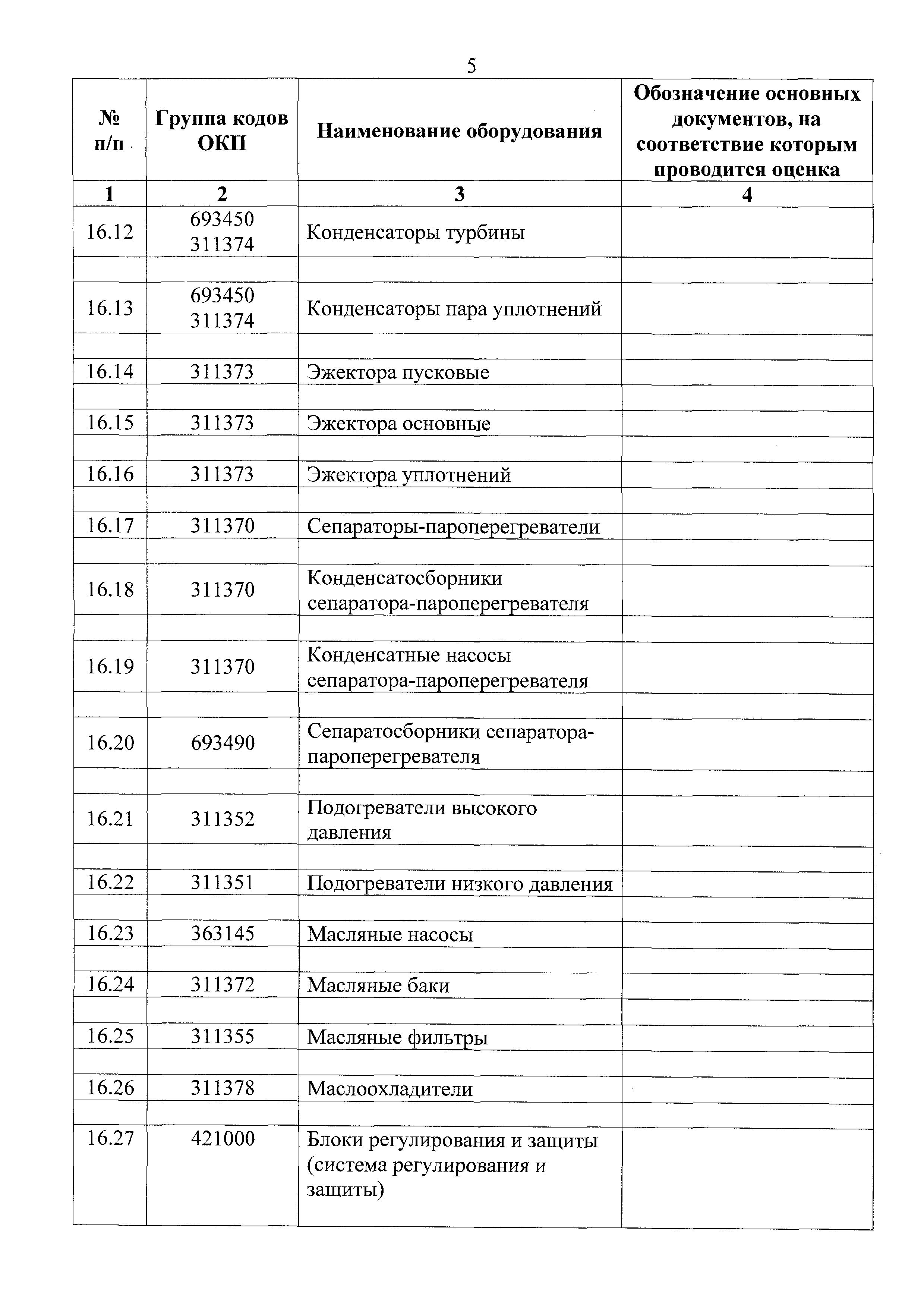 Перечень оборудования общепромышленного исполнения, подлежащего оценке соответствия в форме приемки и испытаний и предназначенного для использования в элементах АЭС, отнесенных к 4 классу безопасности