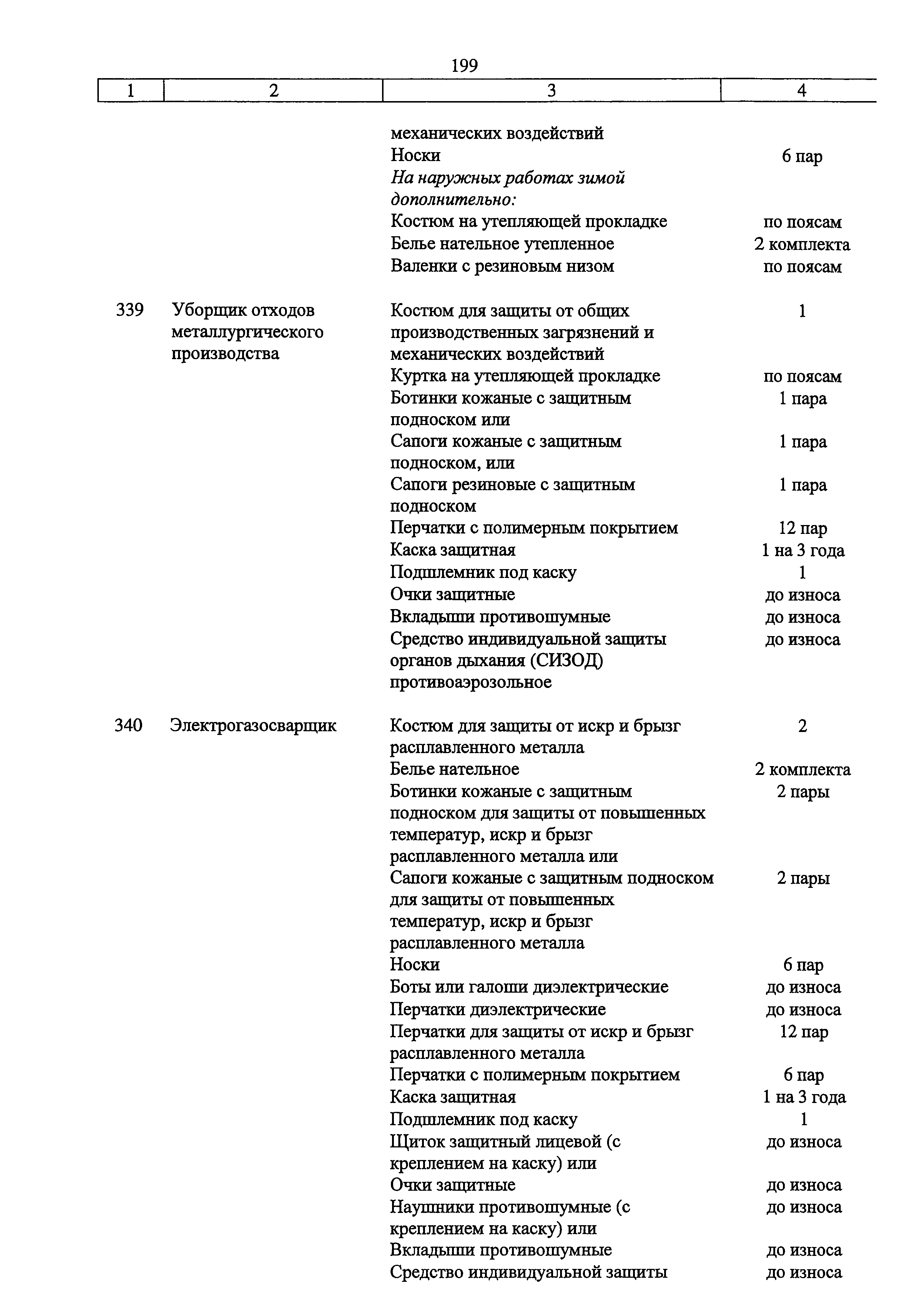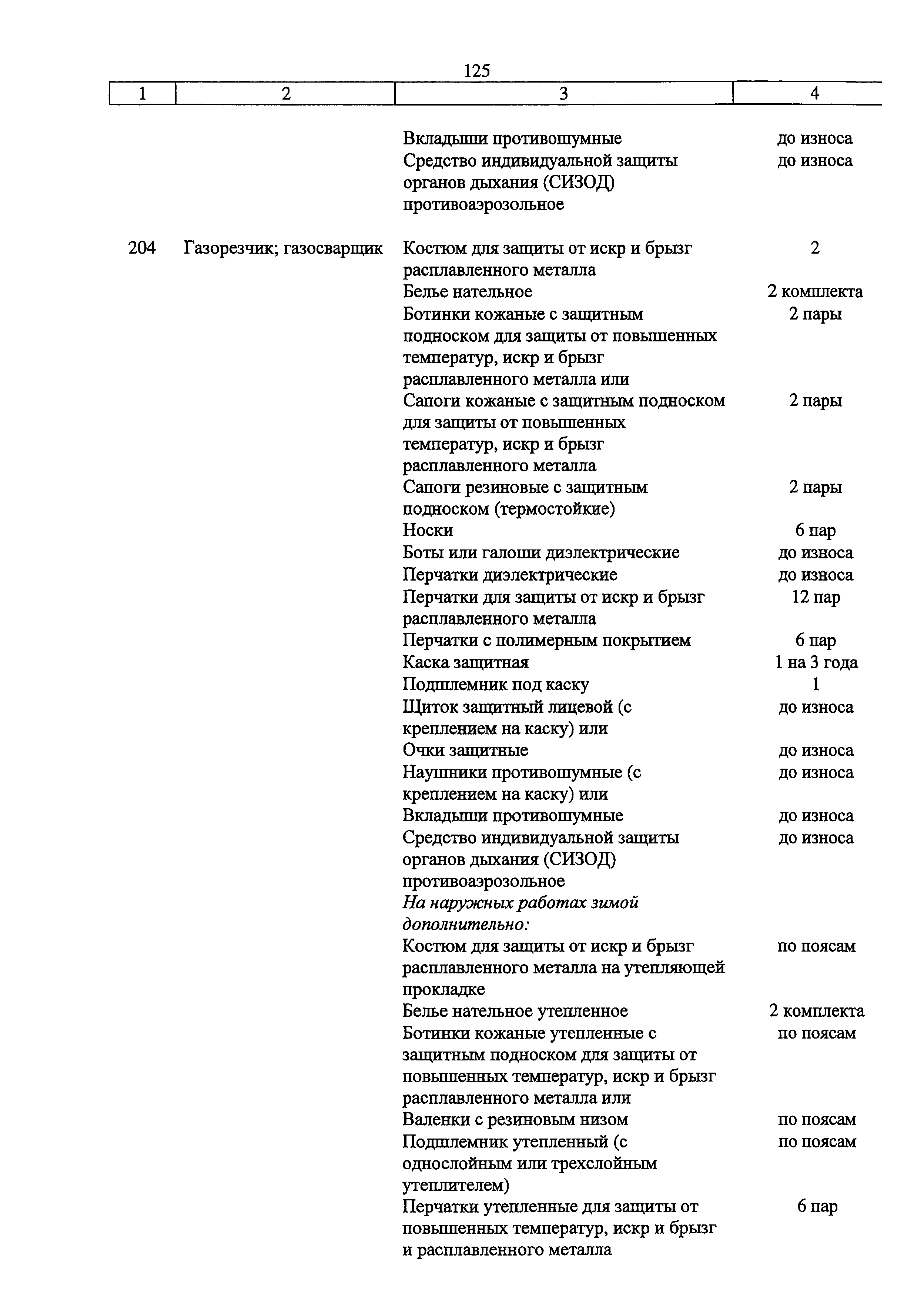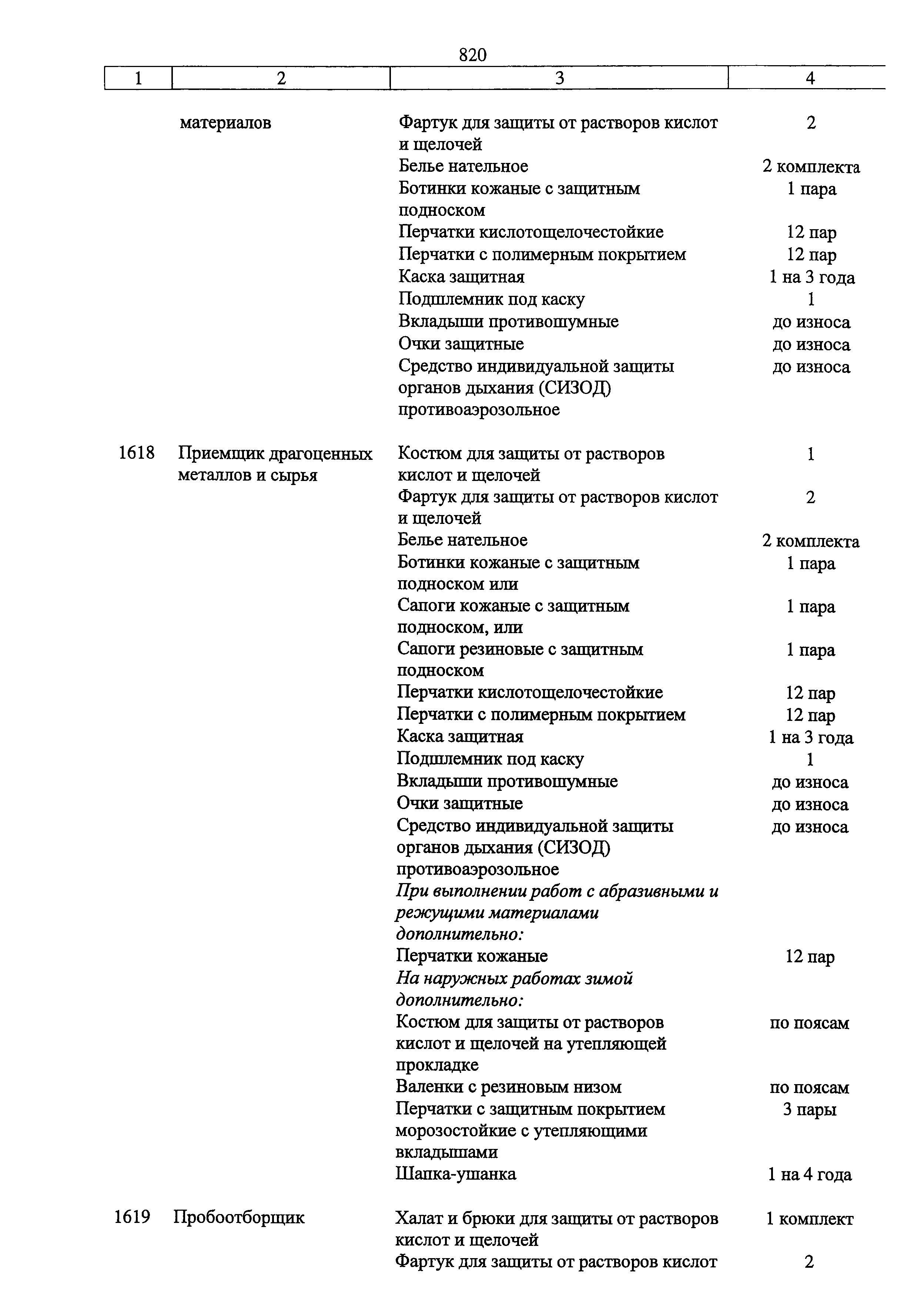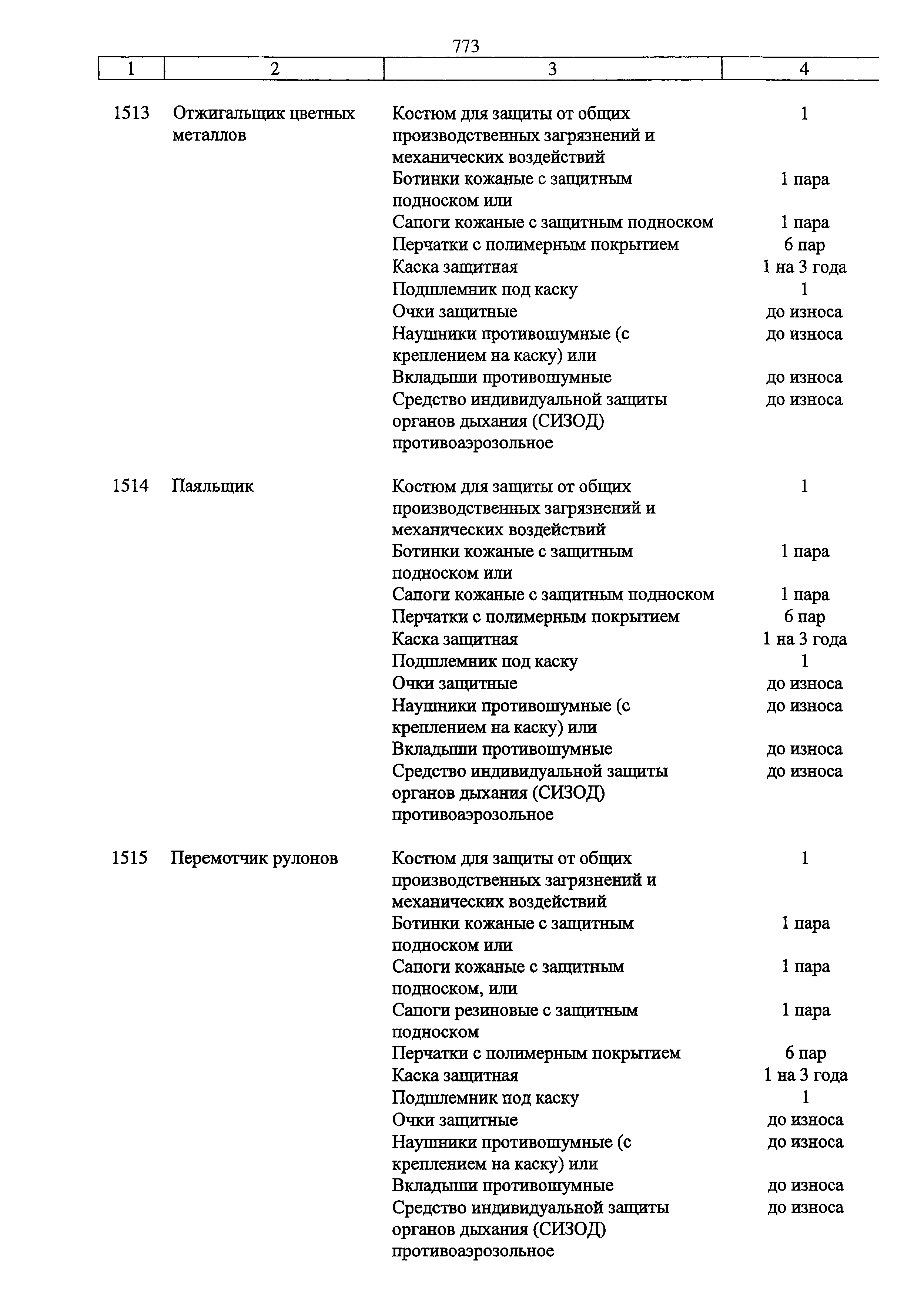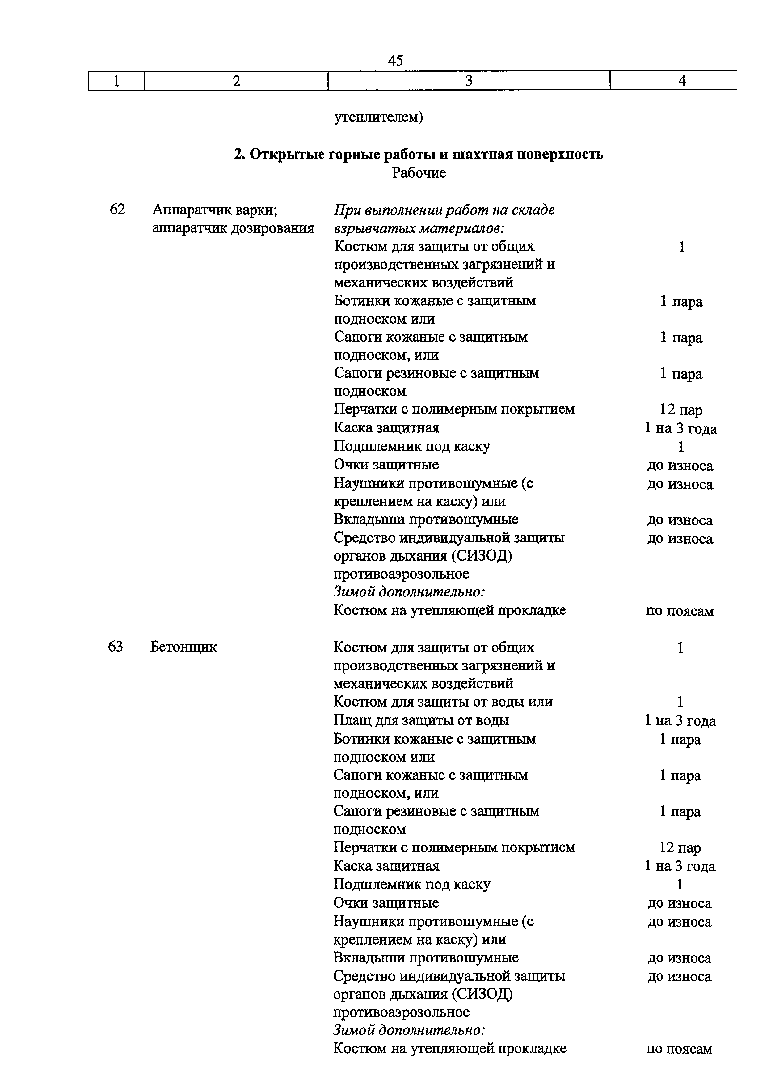 Типовые нормы бесплатной выдачи специальной одежды, специальной обуви и других средств индивидуальной защиты работникам горной и металлургической промышленности и металлургических производств других отраслей промышленности, занятым на работах с вредными и (или) опасными условиями труда, а также на работах, выполняемых в особых температурных условиях или связанных с загрязнением| Статус: | действует | | Название рус.: | Типовые нормы бесплатной выдачи специальной одежды, специальной обуви и других средств индивидуальной защиты работникам горной и металлургической промышленности и металлургических производств других отраслей промышленности, занятым на работах с вредными и (или) опасными условиями труда, а также на работах, выполняемых в особых температурных условиях или связанных с загрязнением | | Дата добавления в базу: | 01.02.2017 | | Дата актуализации: | 01.01.2021 | | Дата введения: | 14.02.2014 | | Область применения: | Нормы утверждаются локальными нормативными актами работодателя на основании результатов аттестации рабочих мест по условиям труда и могут быть включены в коллективный и (или) трудовой договор с указанием типовых норм, по сравнению с которыми улучшается обеспечение работников специальной одеждой, специальной обувью и другими средствами индивидуальной защиты. | | Оглавление: | I Горнодобывающая промышленность 1 Подземные горные работы (шахты) 2 Открытые горные работы и шахтная поверхность 3 Работа на гидравлических установках или с промывочными приборами 4 Дражные работы II Дробление, обогащение, брикетирование, обжиг, агломерация, извлечение металлов и сплавов III Черная металлургия 1 Коксохимическое производство 1.1 Углеподготовительные цеха 1.2 Углеобогатительные цеха 1.3 Производство каменноугольного кокса 1.4 Производство кристаллического нафталина, кумароновой смолы, смолоперерабатывающие цеха 1.5 Производство пиридиновых и фенольно-крезольных продуктов 1.6 Цеха улавливания химических продуктов и газовые цеха 1.7 Цеха ректификации сырого бензола 1.8 Цеха очистки коксового газа от сероводорода 1.9 Производство пекового кокса 1.10 Производство термоантрацита 2 Доменное производство 3 Сталеплавильное производство 3.1 Установки непрерывной разливки стали 4 Производство ферросплавов 4.1 Электролитическое производство 4.2 Производство электролитического хрома 4.3 Производство феррованадия 4.4 Подготовка шихты, обжиг руд и концентратов 4.5 Разливка и разделка ферросплавов 4.6 Обжиг извести 4.7 Общие профессии и должности ферросплавного производства 5 Прокатное производство 6 Производство труб (прокатка, сварка и волочение) 7 Колесопрокатное и бандажное производства 8 Валопрокатное производство 9 Производство рельсовых скреплений 10 Производство баллонов 11 Труболитейное производство 12 Производство метизов 12.1 Производство металлических канатов, сеток, пружин и пружинной ленты, щеток, цепей, колючей проволоки и других метизов 12.2 Волочение проволоки, калибровка и шлифовка металла 12.3 Изготовление волок 12.4 Холодноштамповочные и кузнечно-прессовые работы 12.5 Термическая обработка 12.6 Травление металла, защитные покрытия проволоки и извлечение железного купороса 12.7 Производство металлических электродов и порошковой проволоки 13 Производство огнеупоров 13.1 Огнеупоры 13.2 Карборундовые стержни 13.3 Высокоогнеупорные окислы 14 Ремонт 