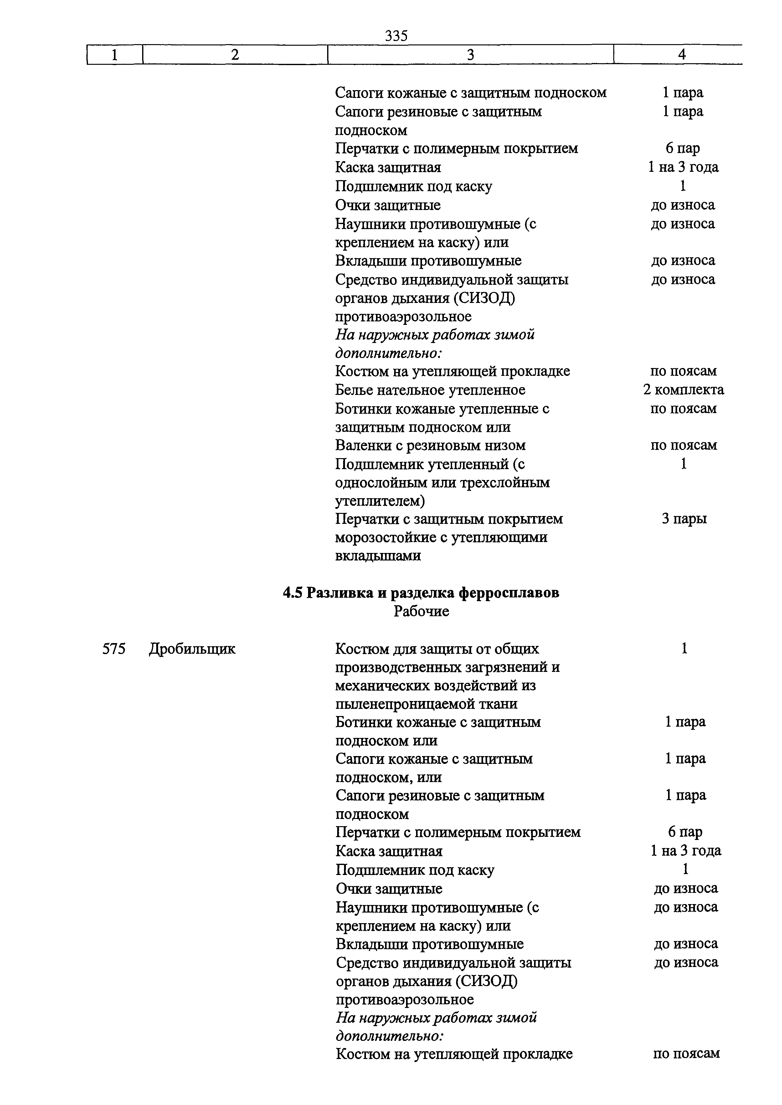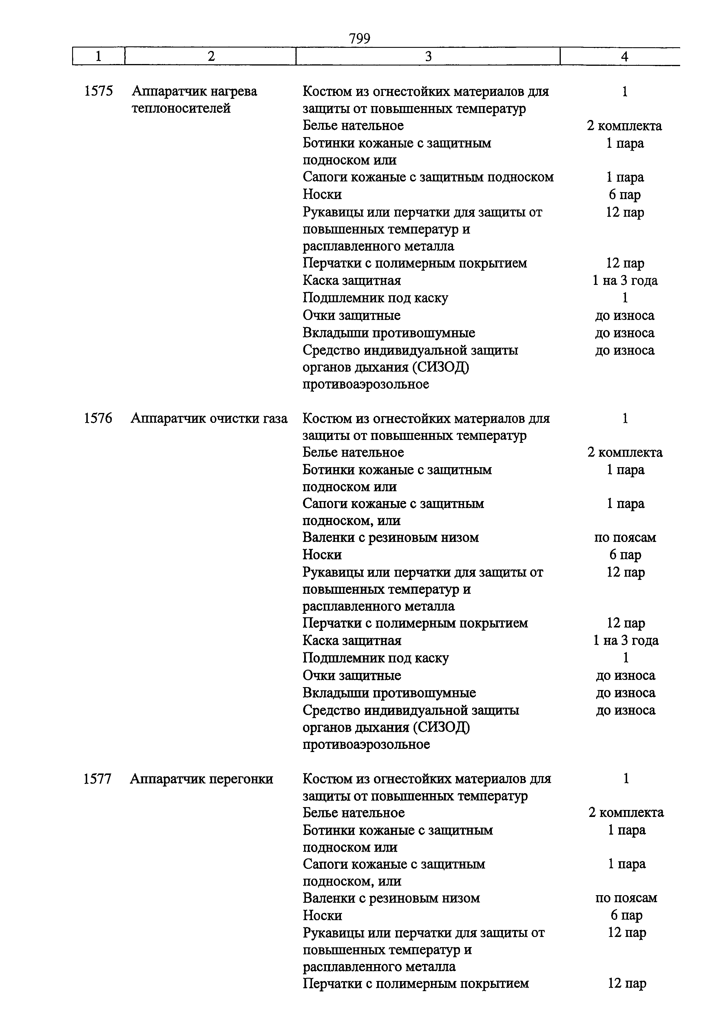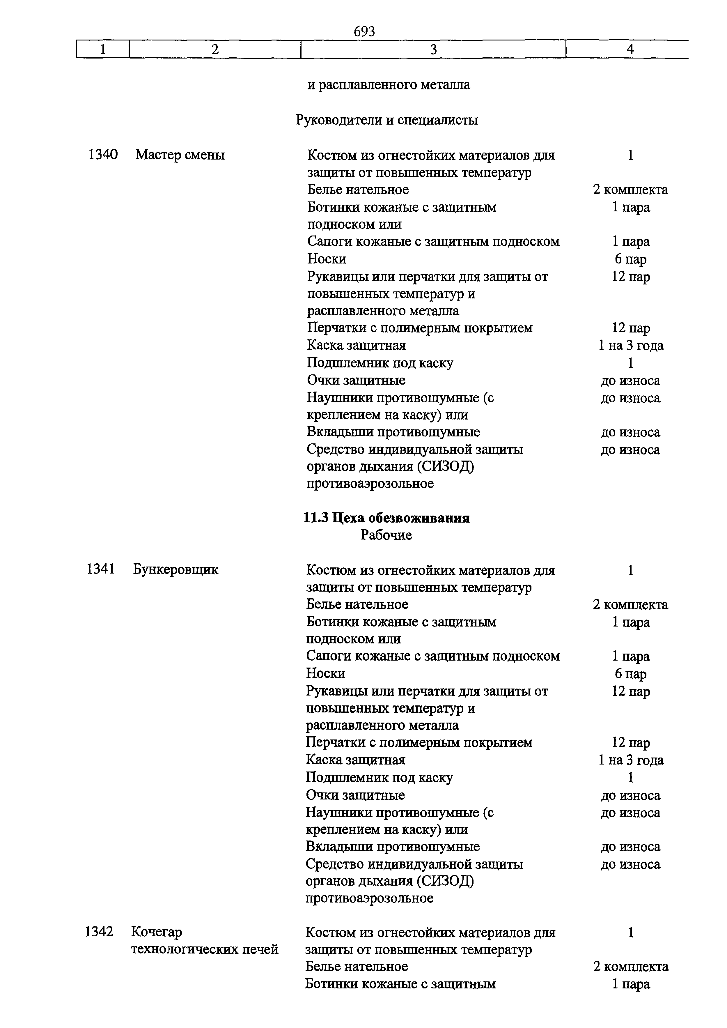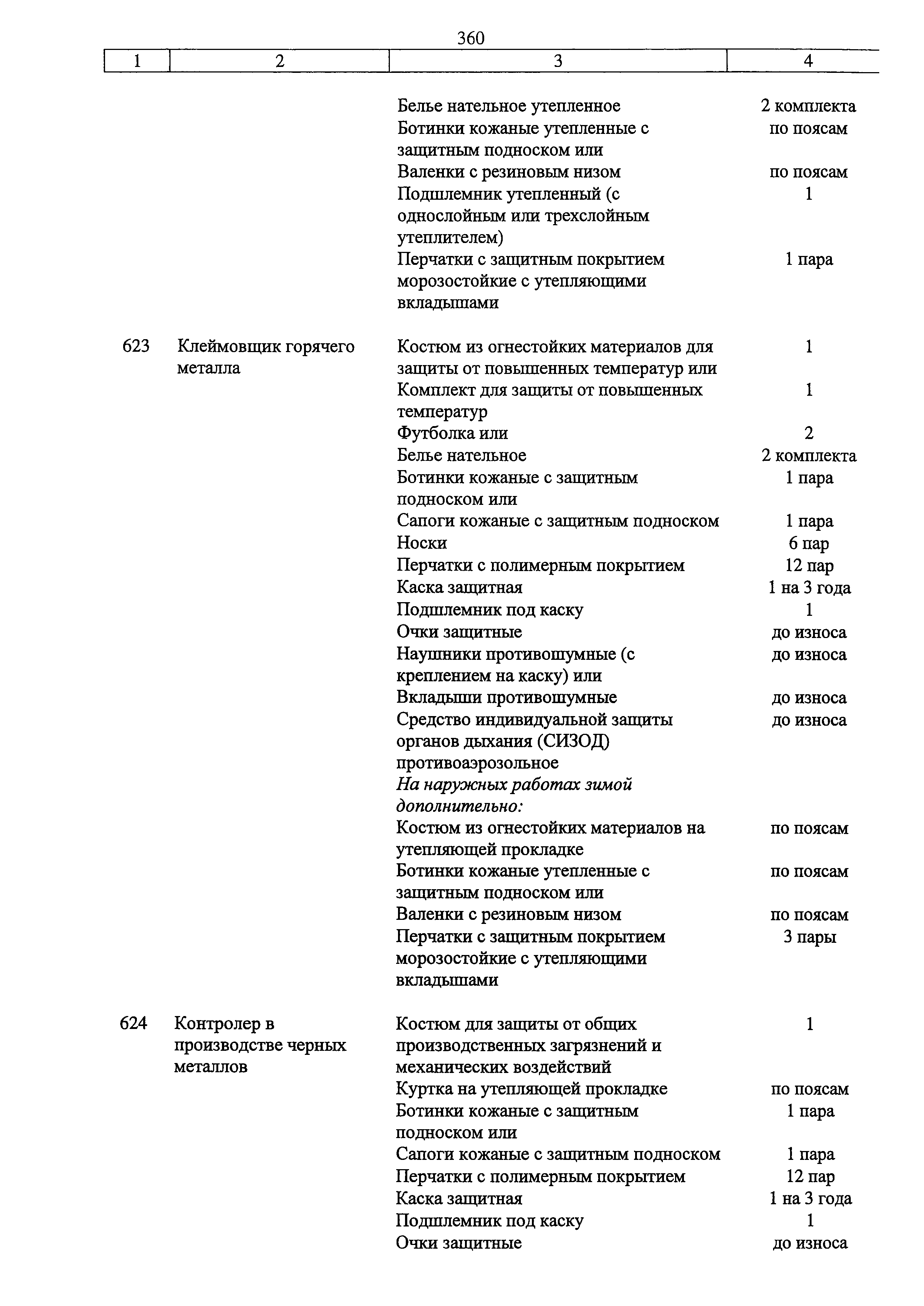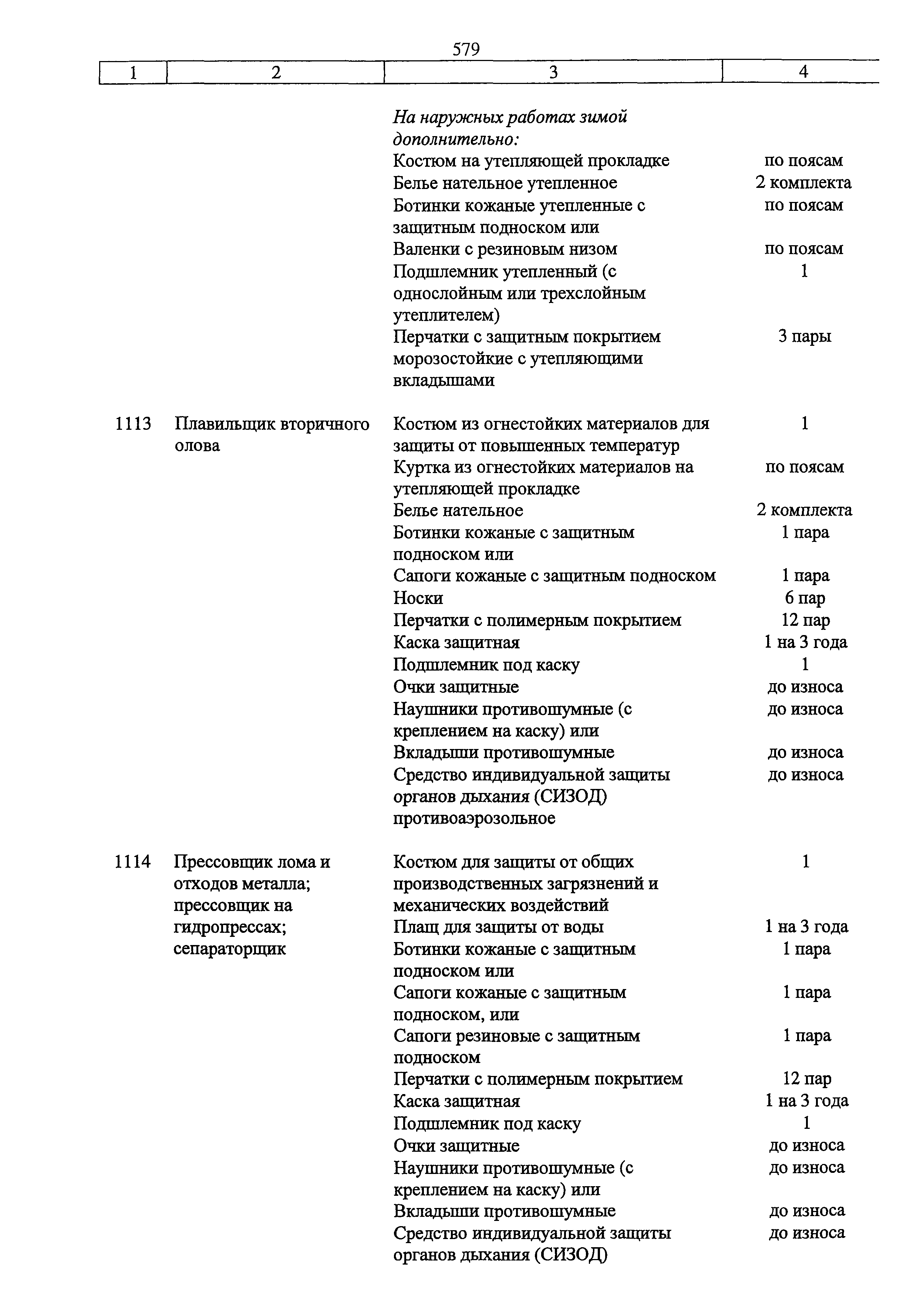 Типовые нормы бесплатной выдачи специальной одежды, специальной обуви и других средств индивидуальной защиты работникам горной и металлургической промышленности и металлургических производств других отраслей промышленности, занятым на работах с вредными и (или) опасными условиями труда, а также на работах, выполняемых в особых температурных условиях или связанных с загрязнением| Статус: | действует | | Название рус.: | Типовые нормы бесплатной выдачи специальной одежды, специальной обуви и других средств индивидуальной защиты работникам горной и металлургической промышленности и металлургических производств других отраслей промышленности, занятым на работах с вредными и (или) опасными условиями труда, а также на работах, выполняемых в особых температурных условиях или связанных с загрязнением | | Дата добавления в базу: | 01.02.2017 | | Дата актуализации: | 01.01.2021 | | Дата введения: | 14.02.2014 | | Область применения: | Нормы утверждаются локальными нормативными актами работодателя на основании результатов аттестации рабочих мест по условиям труда и могут быть включены в коллективный и (или) трудовой договор с указанием типовых норм, по сравнению с которыми улучшается обеспечение работников специальной одеждой, специальной обувью и другими средствами индивидуальной защиты. | | Оглавление: | I Горнодобывающая промышленность 1 Подземные горные работы (шахты) 2 Открытые горные работы и шахтная поверхность 3 Работа на гидравлических установках или с промывочными приборами 4 Дражные работы II Дробление, обогащение, брикетирование, обжиг, агломерация, извлечение металлов и сплавов III Черная металлургия 1 Коксохимическое производство 1.1 Углеподготовительные цеха 1.2 Углеобогатительные цеха 1.3 Производство каменноугольного кокса 1.4 Производство кристаллического нафталина, кумароновой смолы, смолоперерабатывающие цеха 1.5 Производство пиридиновых и фенольно-крезольных продуктов 1.6 Цеха улавливания химических продуктов и газовые цеха 1.7 Цеха ректификации сырого бензола 1.8 Цеха очистки коксового газа от сероводорода 1.9 Производство пекового кокса 1.10 Производство термоантрацита 2 Доменное производство 3 Сталеплавильное производство 3.1 Установки непрерывной разливки стали 4 Производство ферросплавов 4.1 Электролитическое производство 4.2 Производство электролитического хрома 4.3 Производство феррованадия 4.4 Подготовка шихты, обжиг руд и концентратов 4.5 Разливка и разделка ферросплавов 4.6 Обжиг извести 4.7 Общие профессии и должности ферросплавного производства 5 Прокатное производство 6 Производство труб (прокатка, сварка и волочение) 7 Колесопрокатное и бандажное производства 8 Валопрокатное производство 9 Производство рельсовых скреплений 10 Производство баллонов 11 Труболитейное производство 12 Производство метизов 12.1 Производство металлических канатов, сеток, пружин и пружинной ленты, щеток, цепей, колючей проволоки и других метизов 12.2 Волочение проволоки, калибровка и шлифовка металла 12.3 Изготовление волок 12.4 Холодноштамповочные и кузнечно-прессовые работы 12.5 Термическая обработка 12.6 Травление металла, защитные покрытия проволоки и извлечение железного купороса 12.7 Производство металлических электродов и порошковой проволоки 13 Производство огнеупоров 13.1 Огнеупоры 13.2 Карборундовые стержни 13.3 Высокоогнеупорные окислы 14 Ремонт 