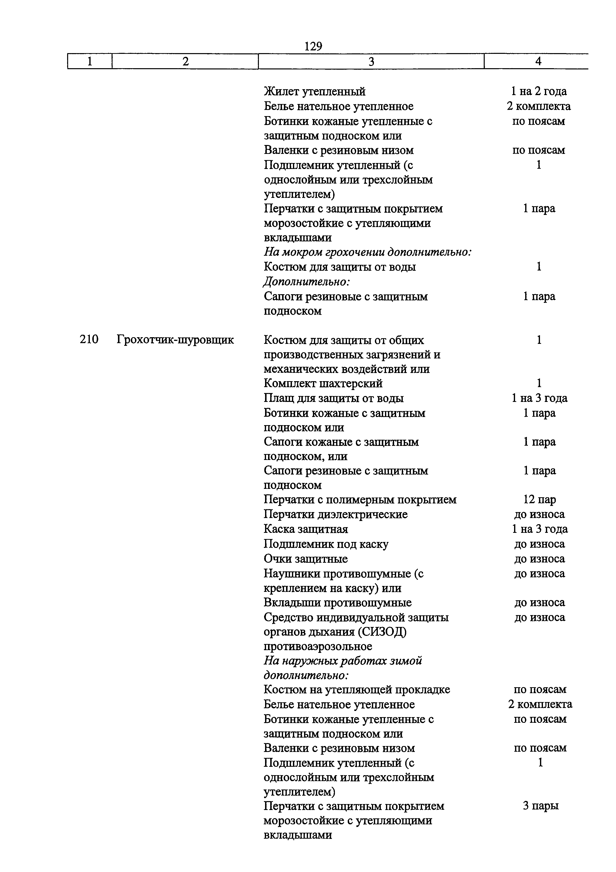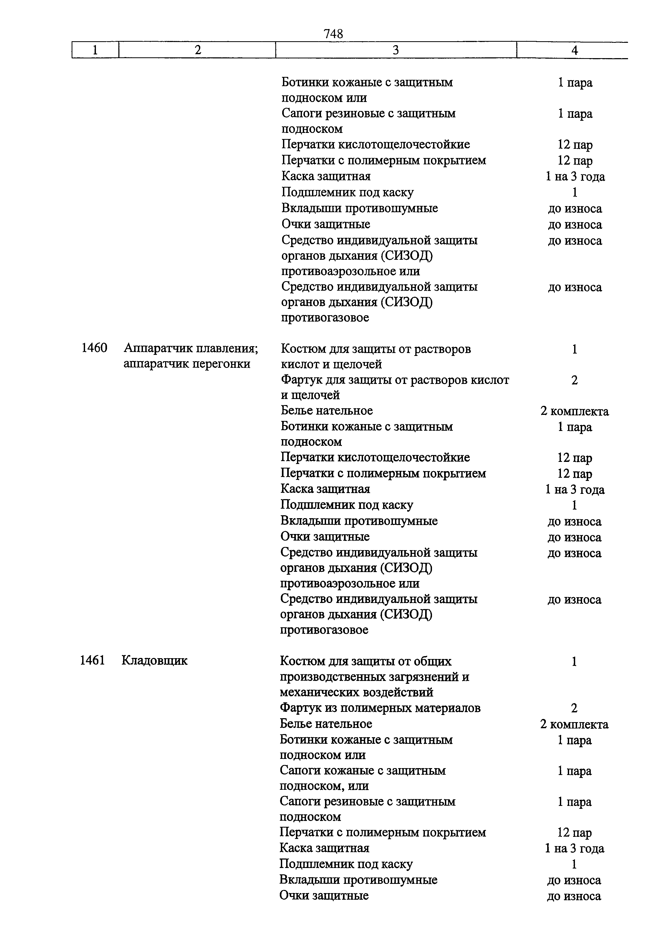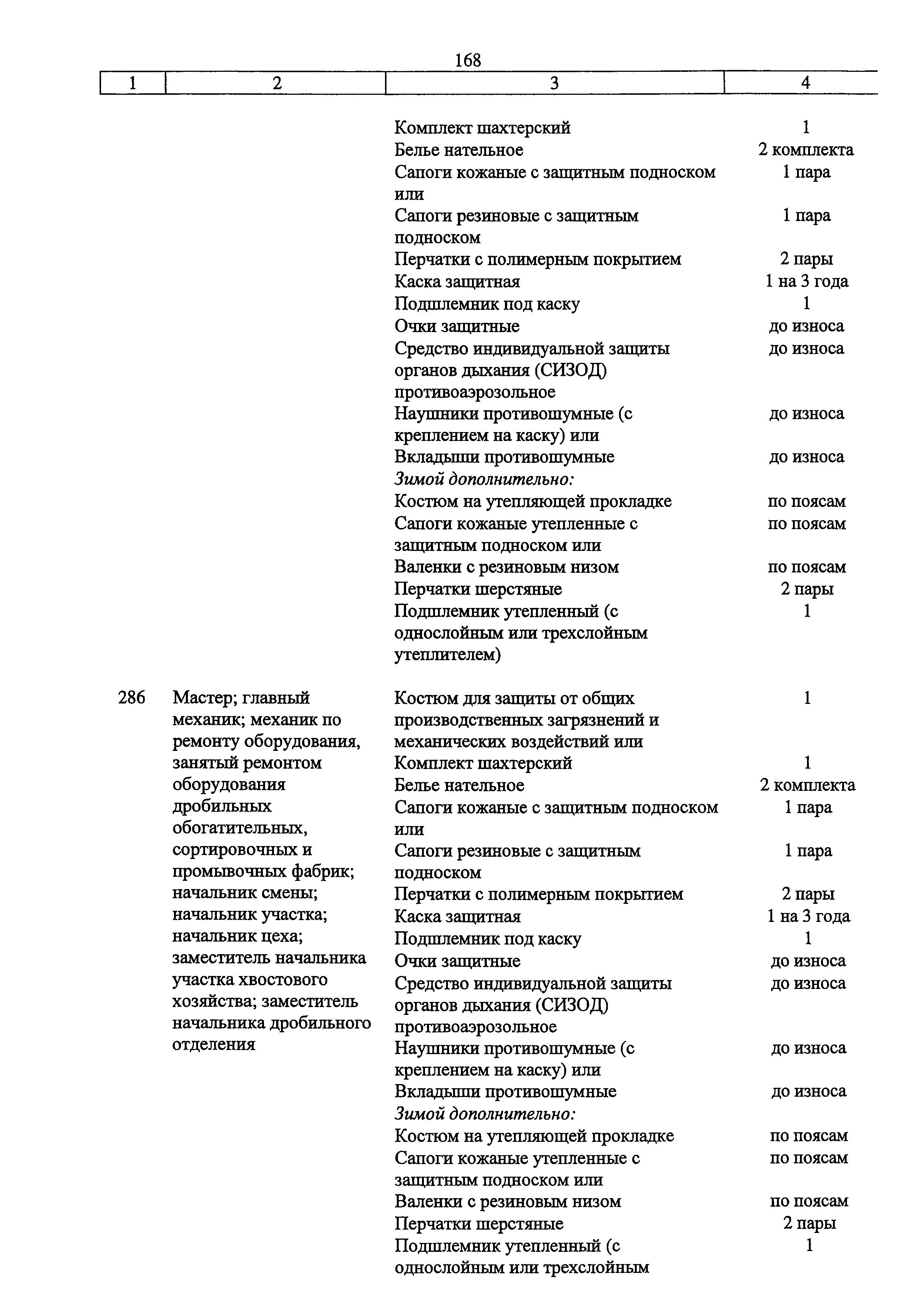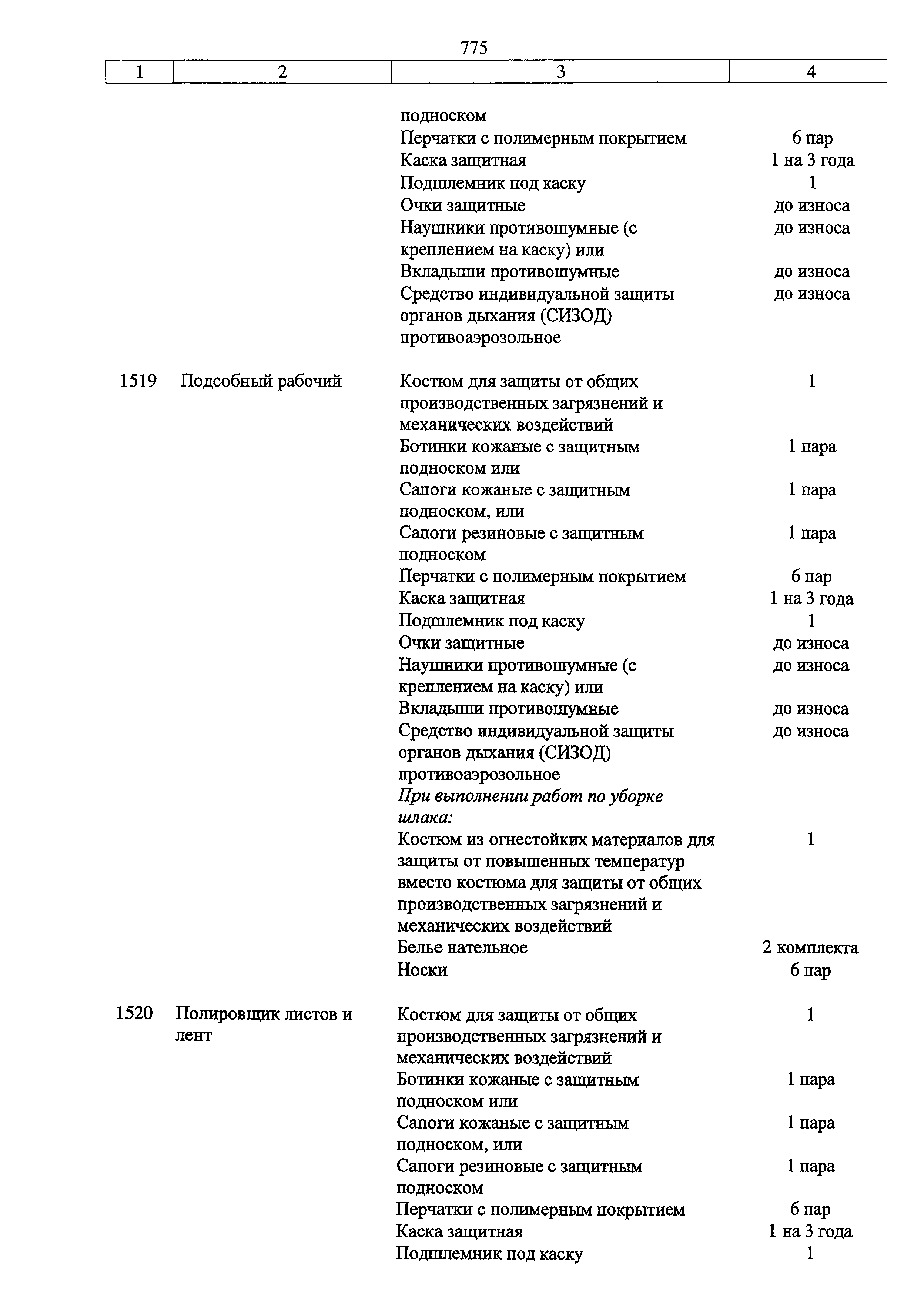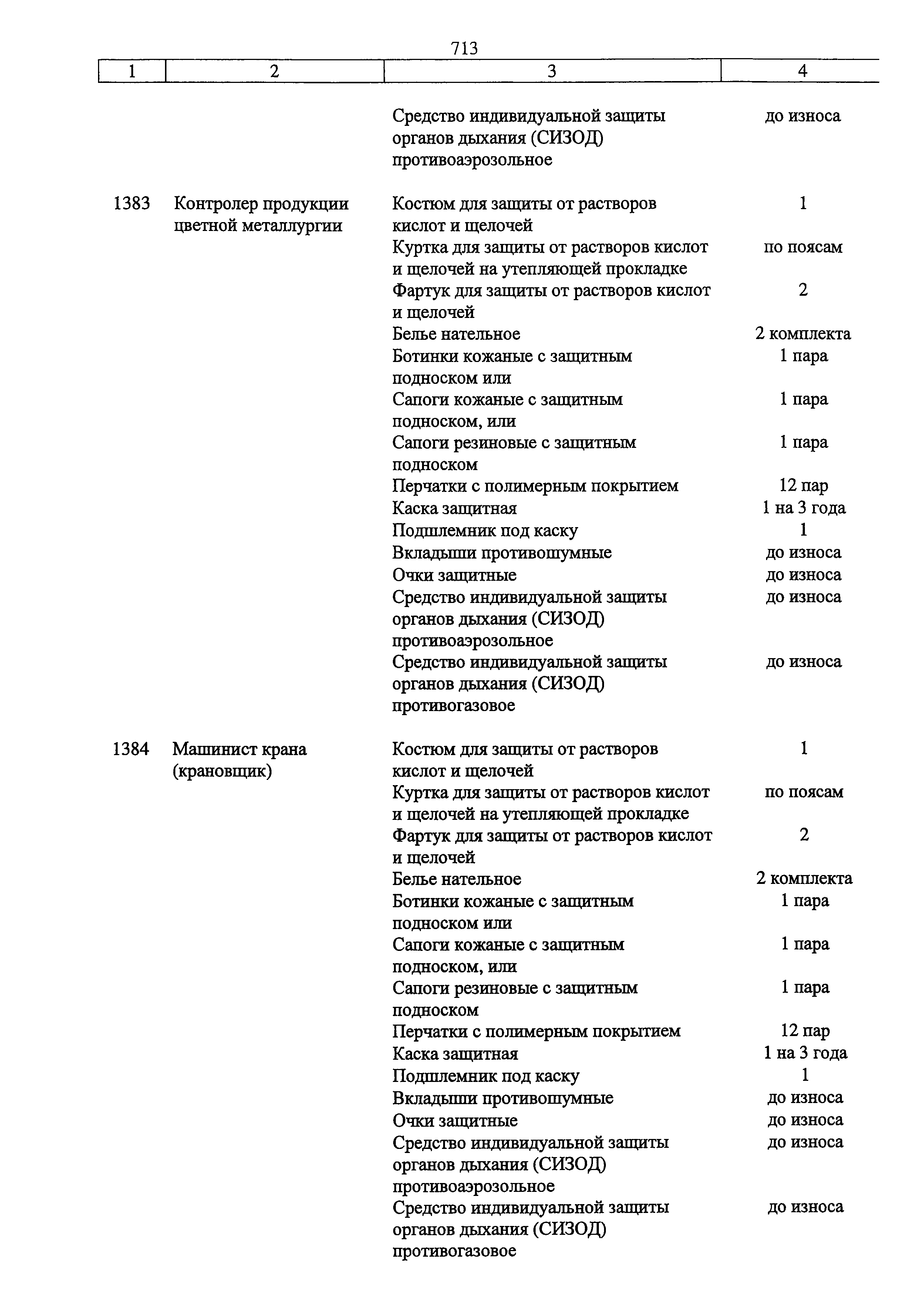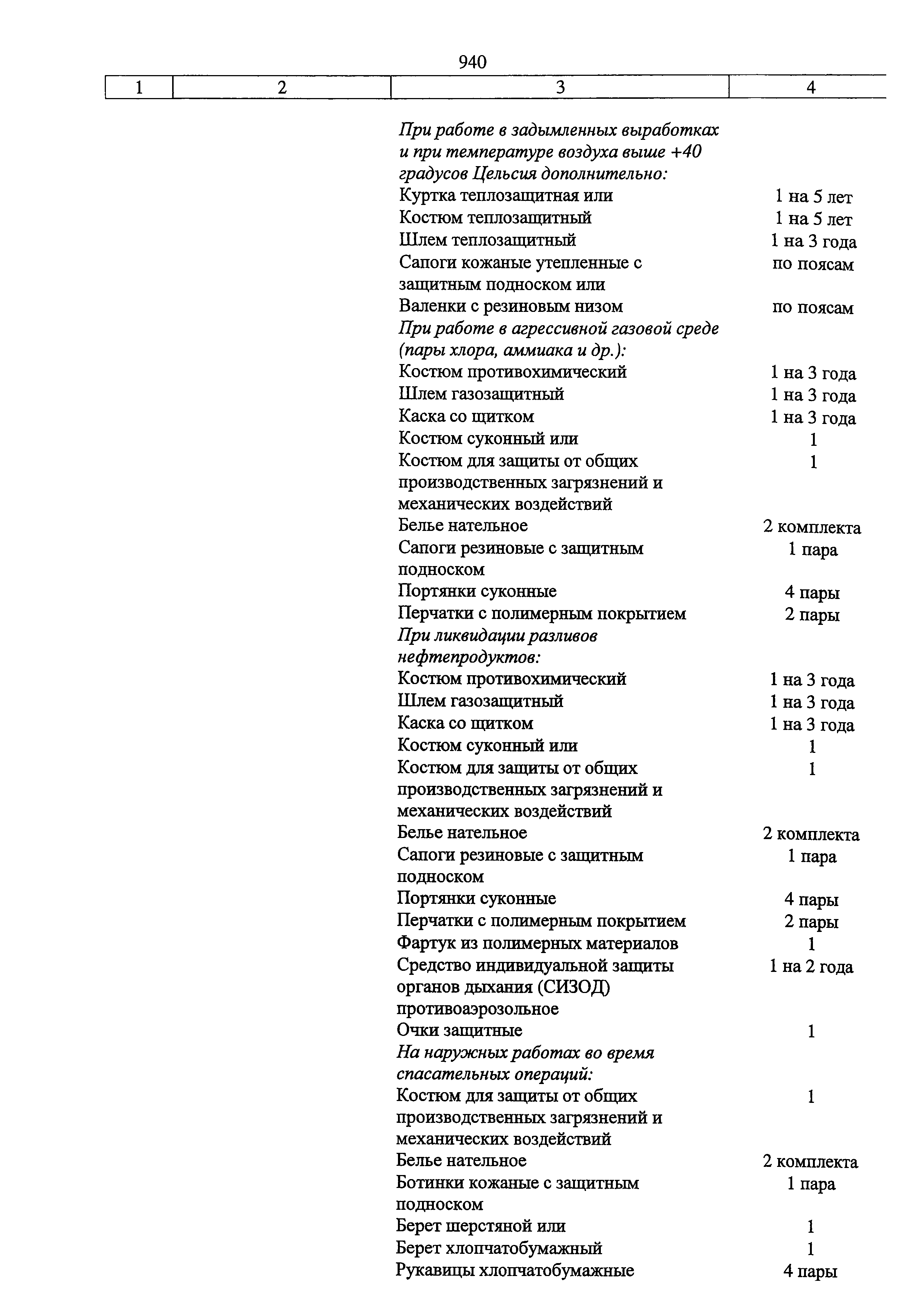 Типовые нормы бесплатной выдачи специальной одежды, специальной обуви и других средств индивидуальной защиты работникам горной и металлургической промышленности и металлургических производств других отраслей промышленности, занятым на работах с вредными и (или) опасными условиями труда, а также на работах, выполняемых в особых температурных условиях или связанных с загрязнением| Статус: | действует | | Название рус.: | Типовые нормы бесплатной выдачи специальной одежды, специальной обуви и других средств индивидуальной защиты работникам горной и металлургической промышленности и металлургических производств других отраслей промышленности, занятым на работах с вредными и (или) опасными условиями труда, а также на работах, выполняемых в особых температурных условиях или связанных с загрязнением | | Дата добавления в базу: | 01.02.2017 | | Дата актуализации: | 01.01.2021 | | Дата введения: | 14.02.2014 | | Область применения: | Нормы утверждаются локальными нормативными актами работодателя на основании результатов аттестации рабочих мест по условиям труда и могут быть включены в коллективный и (или) трудовой договор с указанием типовых норм, по сравнению с которыми улучшается обеспечение работников специальной одеждой, специальной обувью и другими средствами индивидуальной защиты. | | Оглавление: | I Горнодобывающая промышленность 1 Подземные горные работы (шахты) 2 Открытые горные работы и шахтная поверхность 3 Работа на гидравлических установках или с промывочными приборами 4 Дражные работы II Дробление, обогащение, брикетирование, обжиг, агломерация, извлечение металлов и сплавов III Черная металлургия 1 Коксохимическое производство 1.1 Углеподготовительные цеха 1.2 Углеобогатительные цеха 1.3 Производство каменноугольного кокса 1.4 Производство кристаллического нафталина, кумароновой смолы, смолоперерабатывающие цеха 1.5 Производство пиридиновых и фенольно-крезольных продуктов 1.6 Цеха улавливания химических продуктов и газовые цеха 1.7 Цеха ректификации сырого бензола 1.8 Цеха очистки коксового газа от сероводорода 1.9 Производство пекового кокса 1.10 Производство термоантрацита 2 Доменное производство 3 Сталеплавильное производство 3.1 Установки непрерывной разливки стали 4 Производство ферросплавов 4.1 Электролитическое производство 4.2 Производство электролитического хрома 4.3 Производство феррованадия 4.4 Подготовка шихты, обжиг руд и концентратов 4.5 Разливка и разделка ферросплавов 4.6 Обжиг извести 4.7 Общие профессии и должности ферросплавного производства 5 Прокатное производство 6 Производство труб (прокатка, сварка и волочение) 7 Колесопрокатное и бандажное производства 8 Валопрокатное производство 9 Производство рельсовых скреплений 10 Производство баллонов 11 Труболитейное производство 12 Производство метизов 12.1 Производство металлических канатов, сеток, пружин и пружинной ленты, щеток, цепей, колючей проволоки и других метизов 12.2 Волочение проволоки, калибровка и шлифовка металла 12.3 Изготовление волок 12.4 Холодноштамповочные и кузнечно-прессовые работы 12.5 Термическая обработка 12.6 Травление металла, защитные покрытия проволоки и извлечение железного купороса 12.7 Производство металлических электродов и порошковой проволоки 13 Производство огнеупоров 13.1 Огнеупоры 13.2 Карборундовые стержни 13.3 Высокоогнеупорные окислы 14 Ремонт 