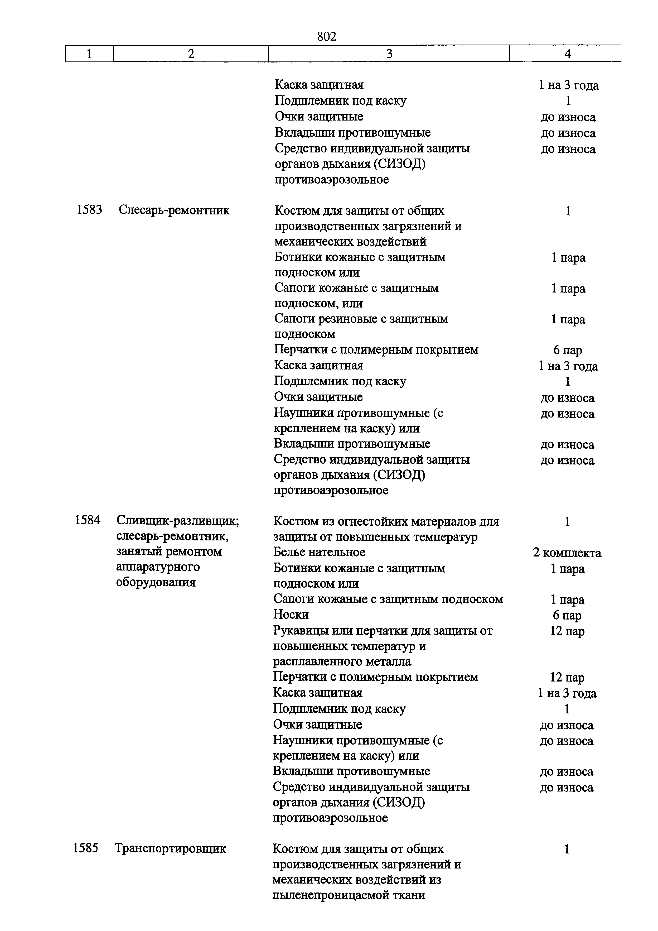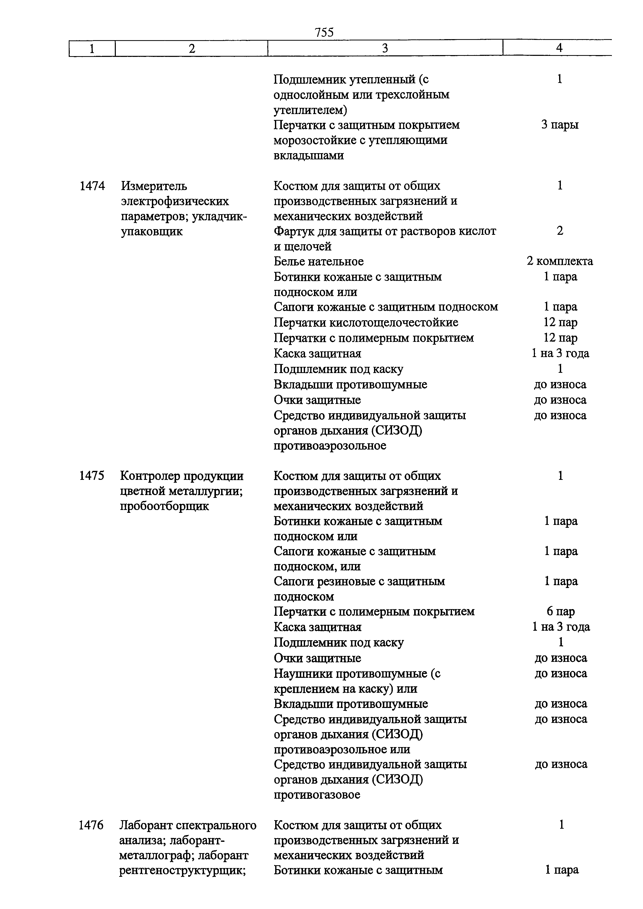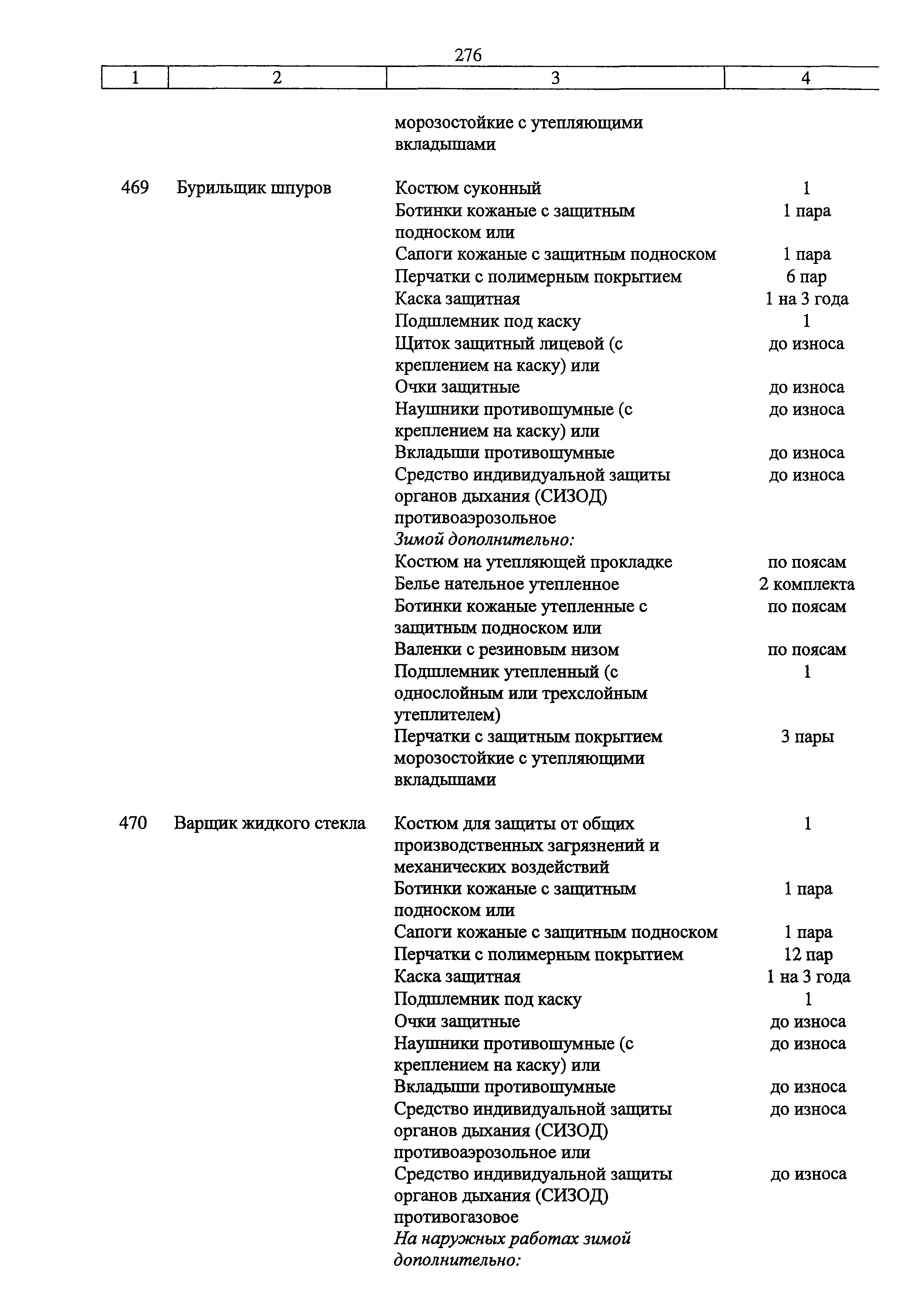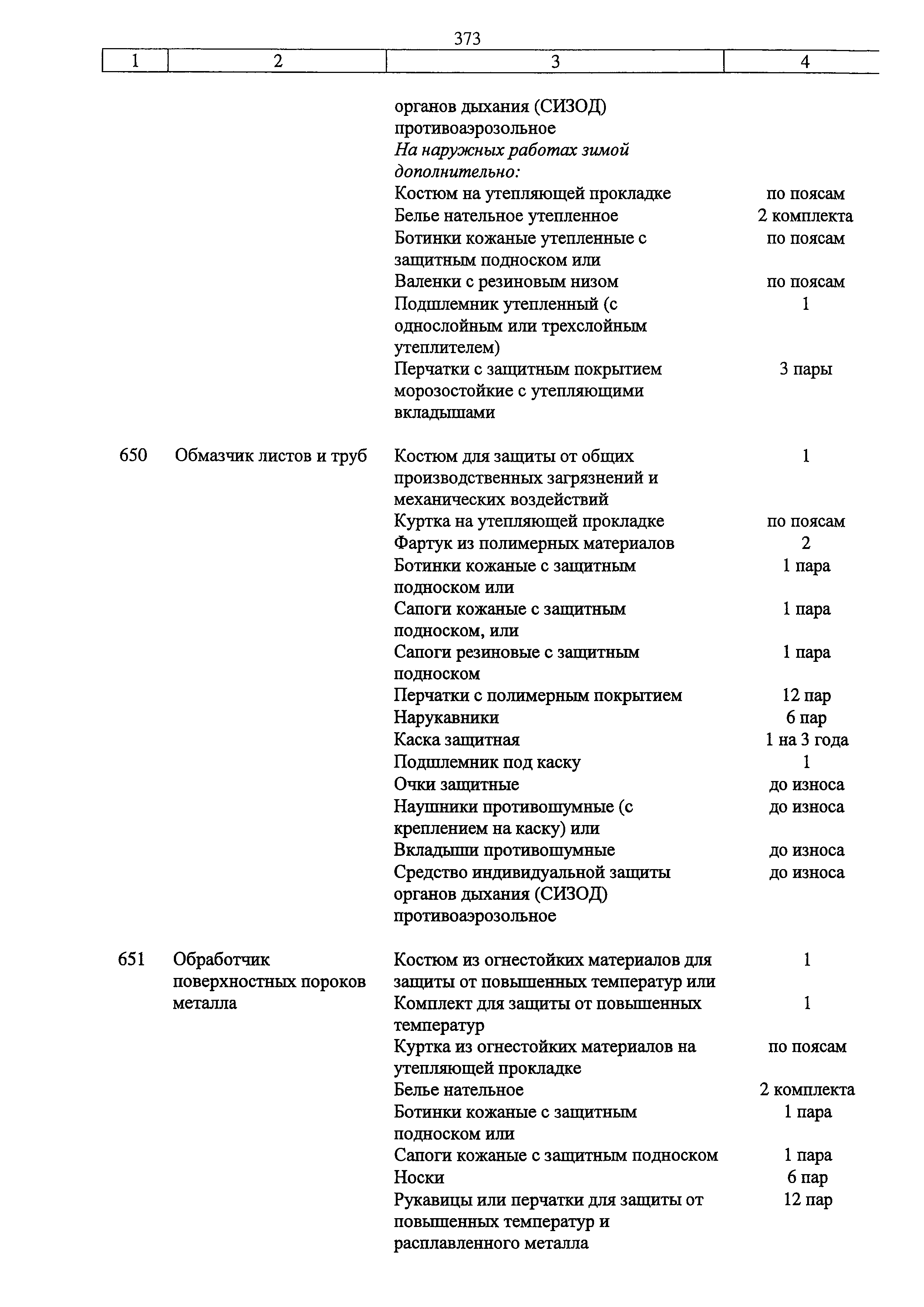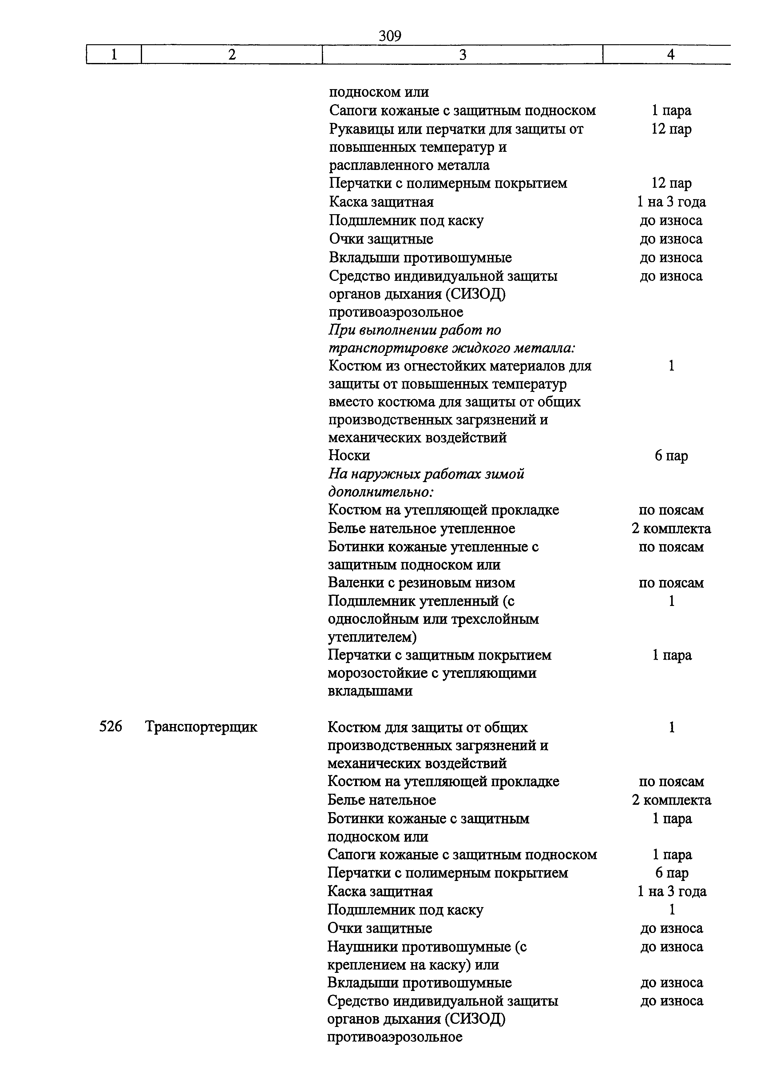 Типовые нормы бесплатной выдачи специальной одежды, специальной обуви и других средств индивидуальной защиты работникам горной и металлургической промышленности и металлургических производств других отраслей промышленности, занятым на работах с вредными и (или) опасными условиями труда, а также на работах, выполняемых в особых температурных условиях или связанных с загрязнением| Статус: | действует | | Название рус.: | Типовые нормы бесплатной выдачи специальной одежды, специальной обуви и других средств индивидуальной защиты работникам горной и металлургической промышленности и металлургических производств других отраслей промышленности, занятым на работах с вредными и (или) опасными условиями труда, а также на работах, выполняемых в особых температурных условиях или связанных с загрязнением | | Дата добавления в базу: | 01.02.2017 | | Дата актуализации: | 01.01.2021 | | Дата введения: | 14.02.2014 | | Область применения: | Нормы утверждаются локальными нормативными актами работодателя на основании результатов аттестации рабочих мест по условиям труда и могут быть включены в коллективный и (или) трудовой договор с указанием типовых норм, по сравнению с которыми улучшается обеспечение работников специальной одеждой, специальной обувью и другими средствами индивидуальной защиты. | | Оглавление: | I Горнодобывающая промышленность 1 Подземные горные работы (шахты) 2 Открытые горные работы и шахтная поверхность 3 Работа на гидравлических установках или с промывочными приборами 4 Дражные работы II Дробление, обогащение, брикетирование, обжиг, агломерация, извлечение металлов и сплавов III Черная металлургия 1 Коксохимическое производство 1.1 Углеподготовительные цеха 1.2 Углеобогатительные цеха 1.3 Производство каменноугольного кокса 1.4 Производство кристаллического нафталина, кумароновой смолы, смолоперерабатывающие цеха 1.5 Производство пиридиновых и фенольно-крезольных продуктов 1.6 Цеха улавливания химических продуктов и газовые цеха 1.7 Цеха ректификации сырого бензола 1.8 Цеха очистки коксового газа от сероводорода 1.9 Производство пекового кокса 1.10 Производство термоантрацита 2 Доменное производство 3 Сталеплавильное производство 3.1 Установки непрерывной разливки стали 4 Производство ферросплавов 4.1 Электролитическое производство 4.2 Производство электролитического хрома 4.3 Производство феррованадия 4.4 Подготовка шихты, обжиг руд и концентратов 4.5 Разливка и разделка ферросплавов 4.6 Обжиг извести 4.7 Общие профессии и должности ферросплавного производства 5 Прокатное производство 6 Производство труб (прокатка, сварка и волочение) 7 Колесопрокатное и бандажное производства 8 Валопрокатное производство 9 Производство рельсовых скреплений 10 Производство баллонов 11 Труболитейное производство 12 Производство метизов 12.1 Производство металлических канатов, сеток, пружин и пружинной ленты, щеток, цепей, колючей проволоки и других метизов 12.2 Волочение проволоки, калибровка и шлифовка металла 12.3 Изготовление волок 12.4 Холодноштамповочные и кузнечно-прессовые работы 12.5 Термическая обработка 12.6 Травление металла, защитные покрытия проволоки и извлечение железного купороса 12.7 Производство металлических электродов и порошковой проволоки 13 Производство огнеупоров 13.1 Огнеупоры 13.2 Карборундовые стержни 13.3 Высокоогнеупорные окислы 14 Ремонт 