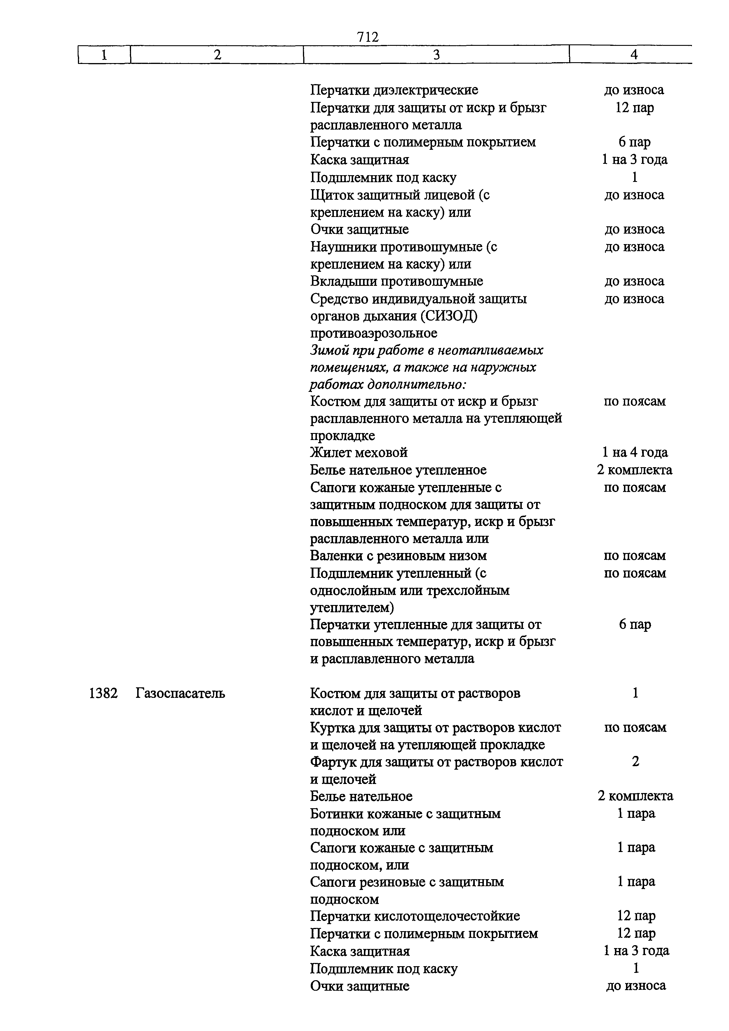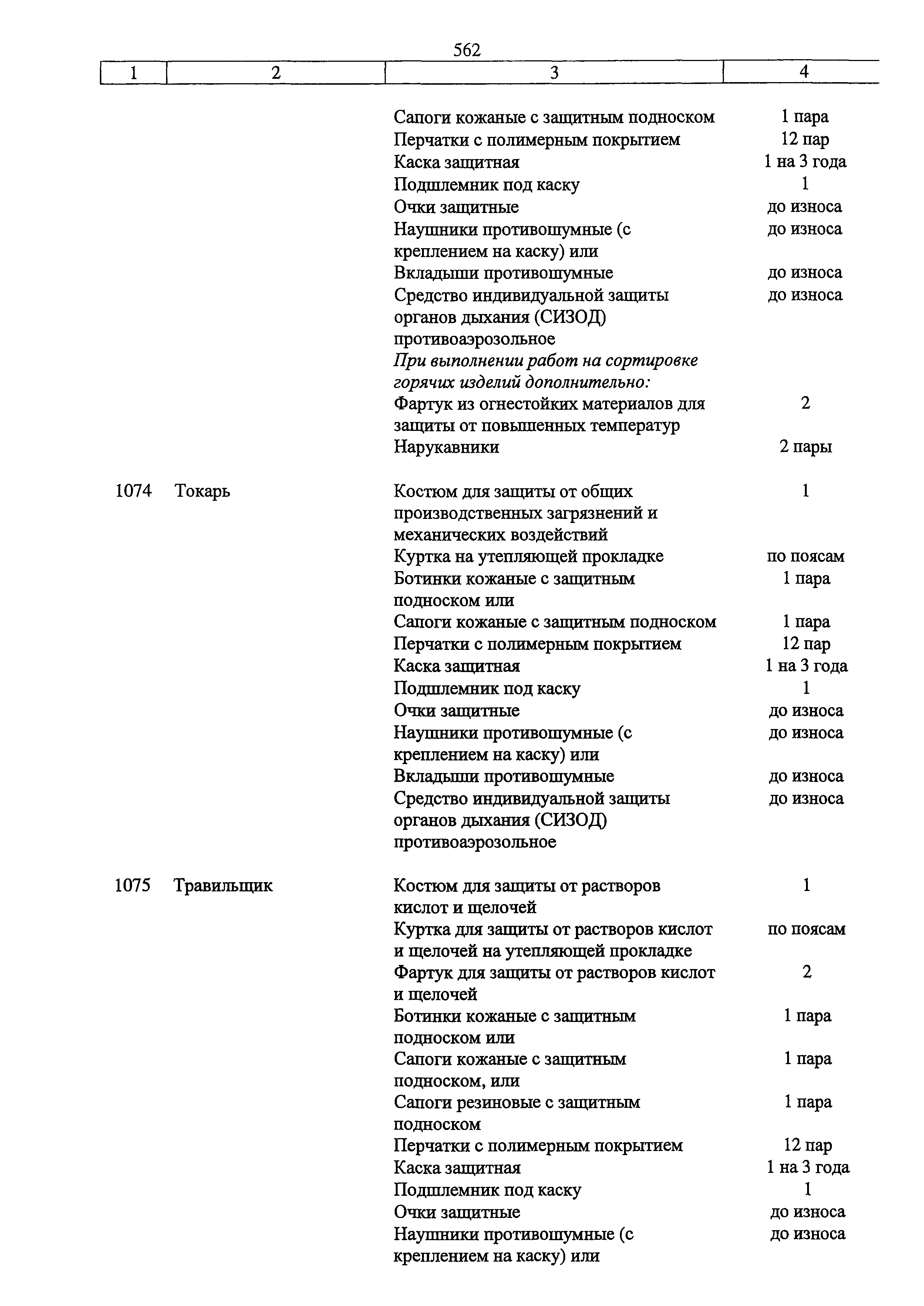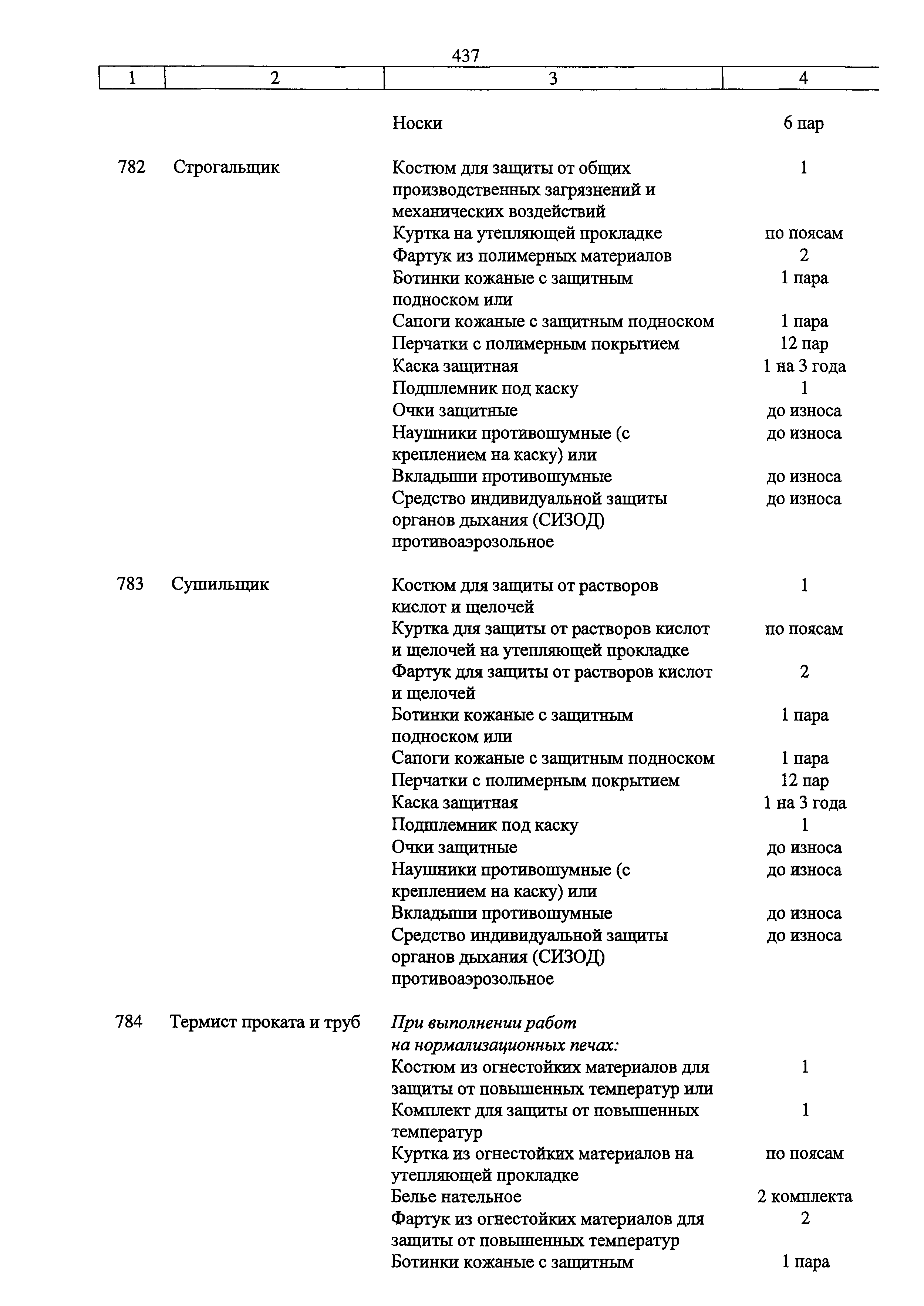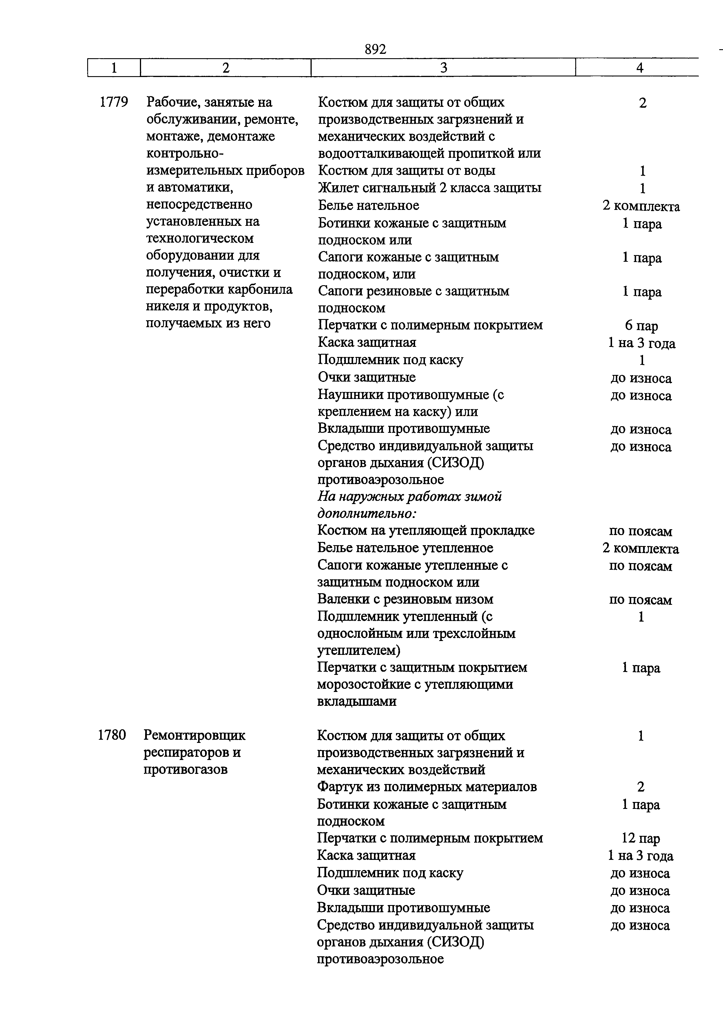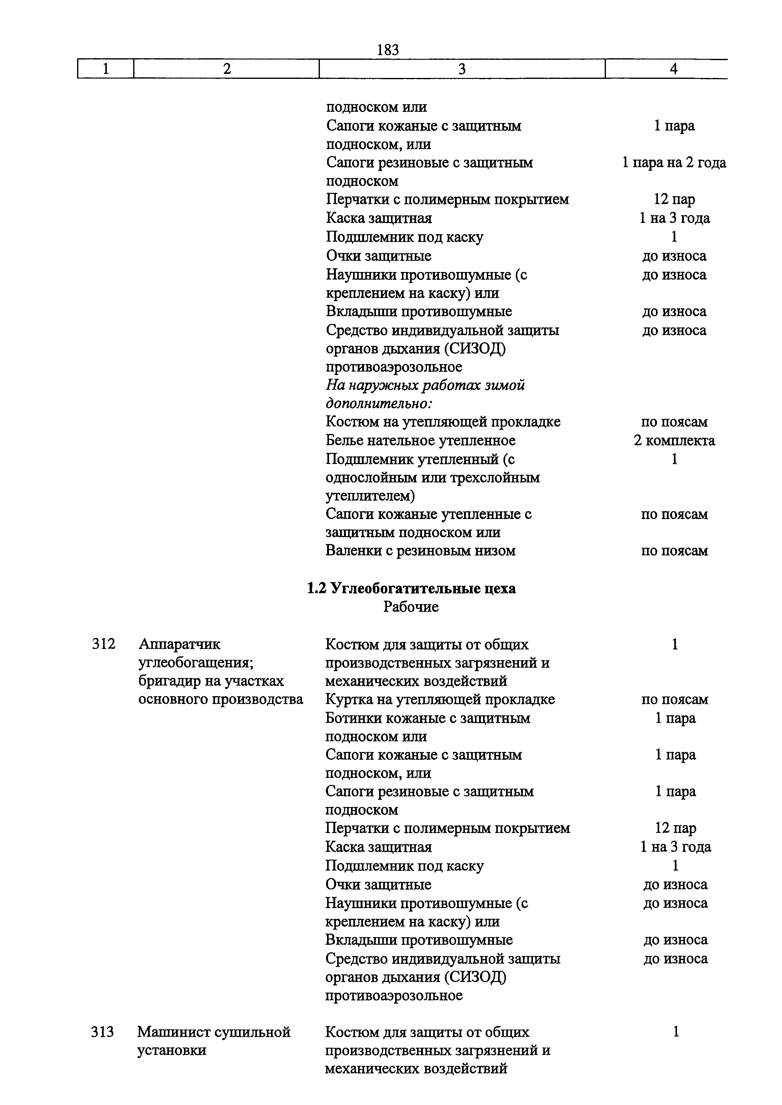 Типовые нормы бесплатной выдачи специальной одежды, специальной обуви и других средств индивидуальной защиты работникам горной и металлургической промышленности и металлургических производств других отраслей промышленности, занятым на работах с вредными и (или) опасными условиями труда, а также на работах, выполняемых в особых температурных условиях или связанных с загрязнением| Статус: | действует | | Название рус.: | Типовые нормы бесплатной выдачи специальной одежды, специальной обуви и других средств индивидуальной защиты работникам горной и металлургической промышленности и металлургических производств других отраслей промышленности, занятым на работах с вредными и (или) опасными условиями труда, а также на работах, выполняемых в особых температурных условиях или связанных с загрязнением | | Дата добавления в базу: | 01.02.2017 | | Дата актуализации: | 01.01.2021 | | Дата введения: | 14.02.2014 | | Область применения: | Нормы утверждаются локальными нормативными актами работодателя на основании результатов аттестации рабочих мест по условиям труда и могут быть включены в коллективный и (или) трудовой договор с указанием типовых норм, по сравнению с которыми улучшается обеспечение работников специальной одеждой, специальной обувью и другими средствами индивидуальной защиты. | | Оглавление: | I Горнодобывающая промышленность 1 Подземные горные работы (шахты) 2 Открытые горные работы и шахтная поверхность 3 Работа на гидравлических установках или с промывочными приборами 4 Дражные работы II Дробление, обогащение, брикетирование, обжиг, агломерация, извлечение металлов и сплавов III Черная металлургия 1 Коксохимическое производство 1.1 Углеподготовительные цеха 1.2 Углеобогатительные цеха 1.3 Производство каменноугольного кокса 1.4 Производство кристаллического нафталина, кумароновой смолы, смолоперерабатывающие цеха 1.5 Производство пиридиновых и фенольно-крезольных продуктов 1.6 Цеха улавливания химических продуктов и газовые цеха 1.7 Цеха ректификации сырого бензола 1.8 Цеха очистки коксового газа от сероводорода 1.9 Производство пекового кокса 1.10 Производство термоантрацита 2 Доменное производство 3 Сталеплавильное производство 3.1 Установки непрерывной разливки стали 4 Производство ферросплавов 4.1 Электролитическое производство 4.2 Производство электролитического хрома 4.3 Производство феррованадия 4.4 Подготовка шихты, обжиг руд и концентратов 4.5 Разливка и разделка ферросплавов 4.6 Обжиг извести 4.7 Общие профессии и должности ферросплавного производства 5 Прокатное производство 6 Производство труб (прокатка, сварка и волочение) 7 Колесопрокатное и бандажное производства 8 Валопрокатное производство 9 Производство рельсовых скреплений 10 Производство баллонов 11 Труболитейное производство 12 Производство метизов 12.1 Производство металлических канатов, сеток, пружин и пружинной ленты, щеток, цепей, колючей проволоки и других метизов 12.2 Волочение проволоки, калибровка и шлифовка металла 12.3 Изготовление волок 12.4 Холодноштамповочные и кузнечно-прессовые работы 12.5 Термическая обработка 12.6 Травление металла, защитные покрытия проволоки и извлечение железного купороса 12.7 Производство металлических электродов и порошковой проволоки 13 Производство огнеупоров 13.1 Огнеупоры 13.2 Карборундовые стержни 13.3 Высокоогнеупорные окислы 14 Ремонт 