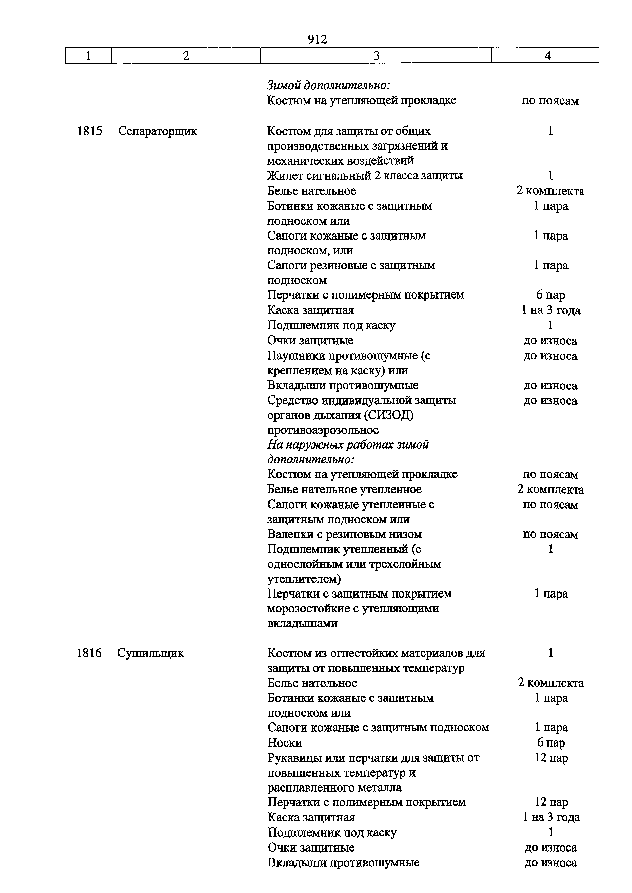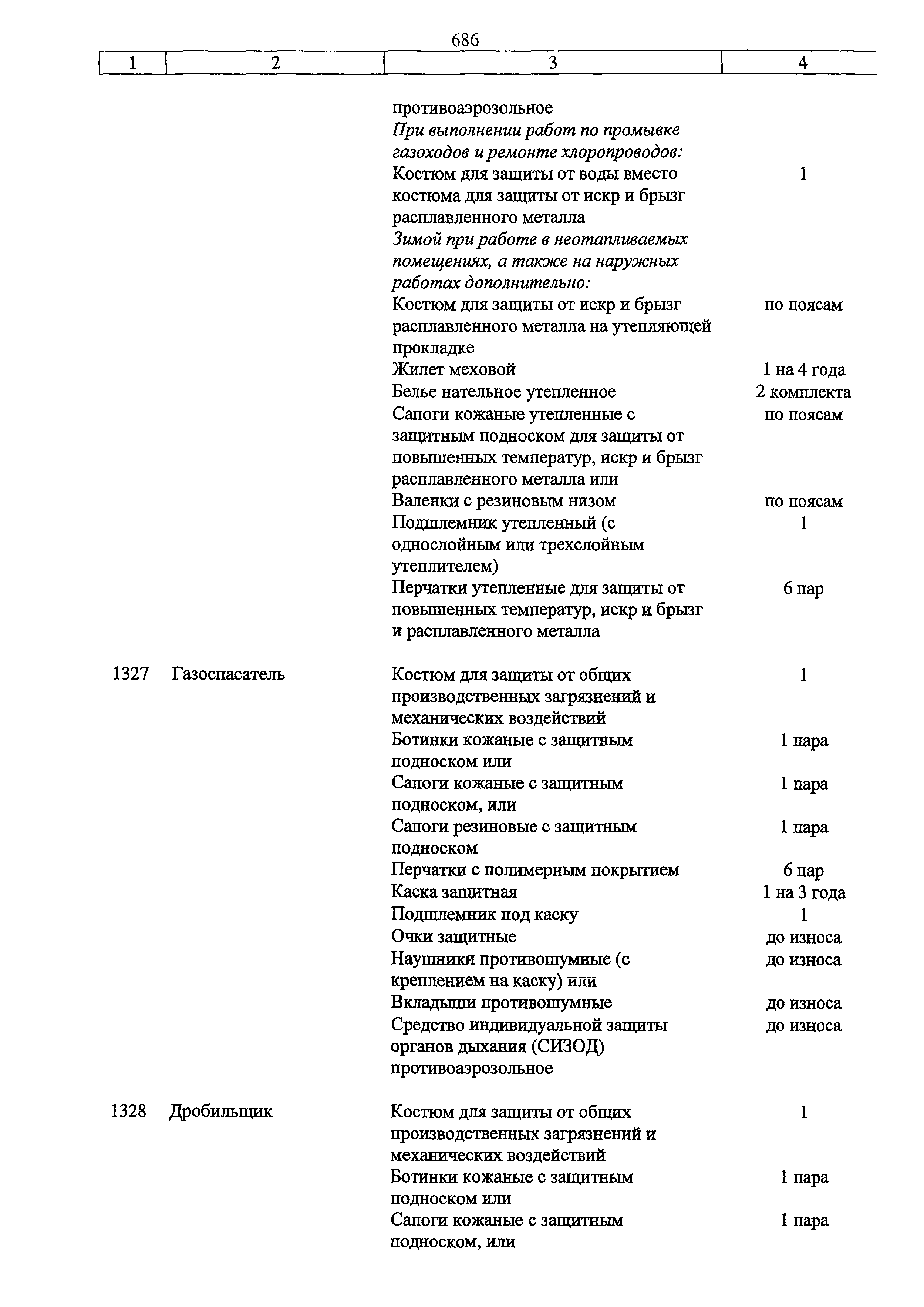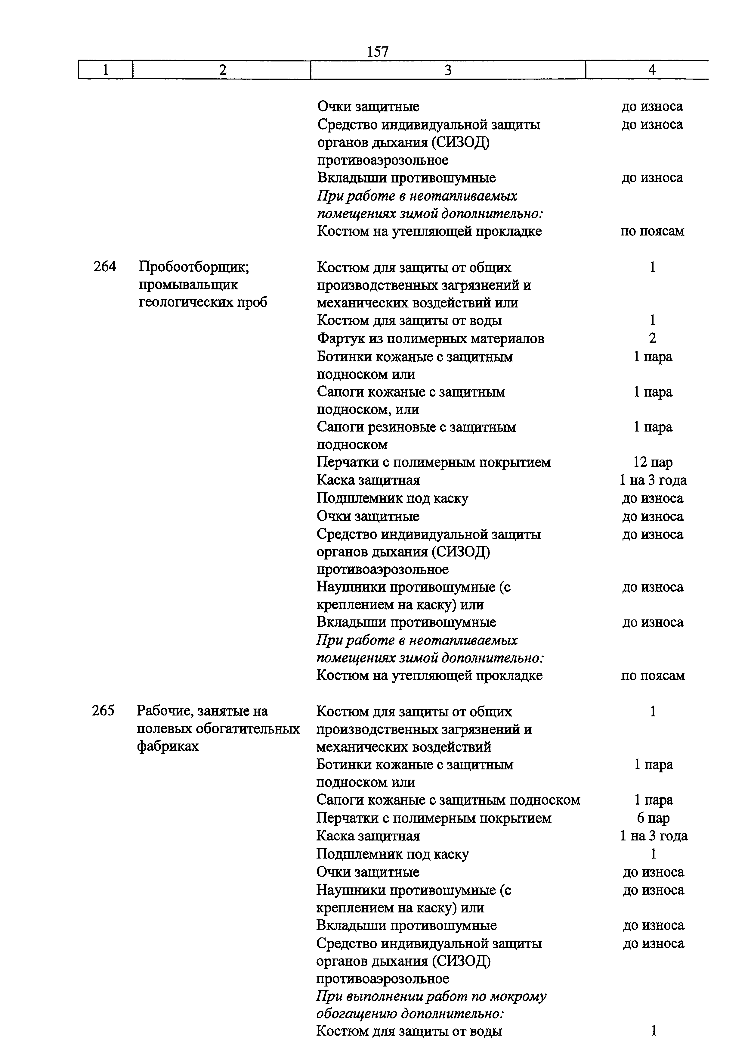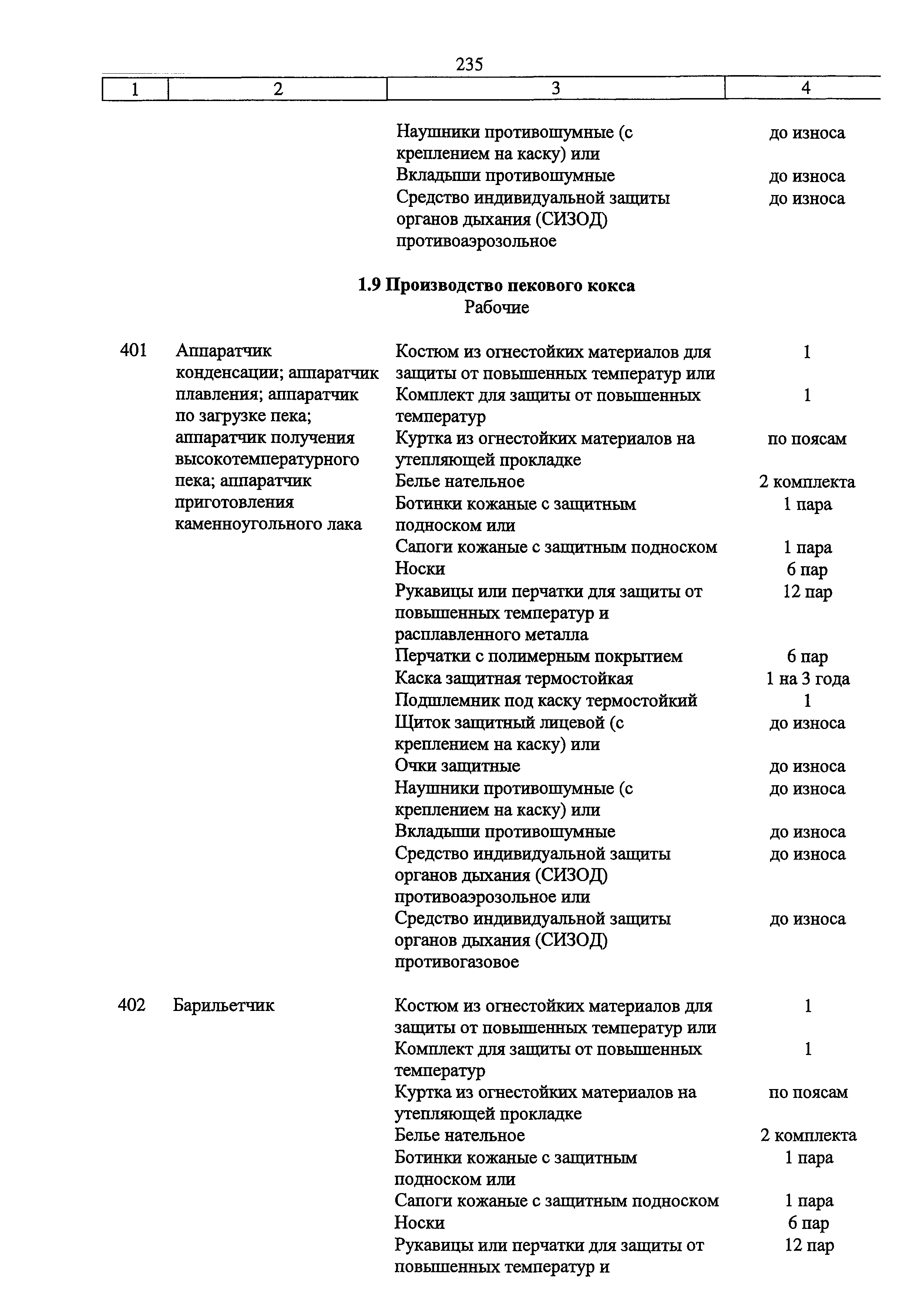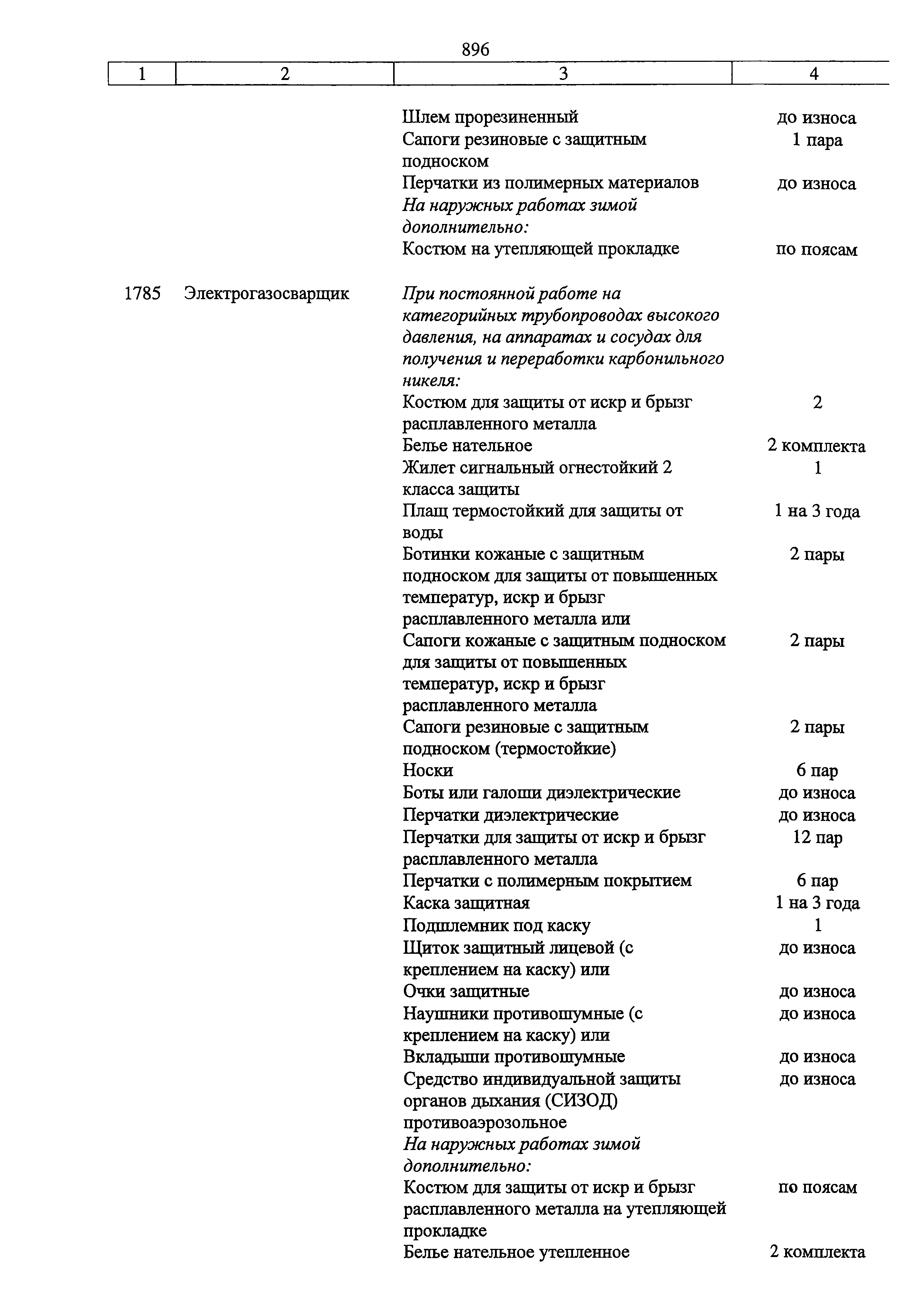 Типовые нормы бесплатной выдачи специальной одежды, специальной обуви и других средств индивидуальной защиты работникам горной и металлургической промышленности и металлургических производств других отраслей промышленности, занятым на работах с вредными и (или) опасными условиями труда, а также на работах, выполняемых в особых температурных условиях или связанных с загрязнением| Статус: | действует | | Название рус.: | Типовые нормы бесплатной выдачи специальной одежды, специальной обуви и других средств индивидуальной защиты работникам горной и металлургической промышленности и металлургических производств других отраслей промышленности, занятым на работах с вредными и (или) опасными условиями труда, а также на работах, выполняемых в особых температурных условиях или связанных с загрязнением | | Дата добавления в базу: | 01.02.2017 | | Дата актуализации: | 01.01.2021 | | Дата введения: | 14.02.2014 | | Область применения: | Нормы утверждаются локальными нормативными актами работодателя на основании результатов аттестации рабочих мест по условиям труда и могут быть включены в коллективный и (или) трудовой договор с указанием типовых норм, по сравнению с которыми улучшается обеспечение работников специальной одеждой, специальной обувью и другими средствами индивидуальной защиты. | | Оглавление: | I Горнодобывающая промышленность 1 Подземные горные работы (шахты) 2 Открытые горные работы и шахтная поверхность 3 Работа на гидравлических установках или с промывочными приборами 4 Дражные работы II Дробление, обогащение, брикетирование, обжиг, агломерация, извлечение металлов и сплавов III Черная металлургия 1 Коксохимическое производство 1.1 Углеподготовительные цеха 1.2 Углеобогатительные цеха 1.3 Производство каменноугольного кокса 1.4 Производство кристаллического нафталина, кумароновой смолы, смолоперерабатывающие цеха 1.5 Производство пиридиновых и фенольно-крезольных продуктов 1.6 Цеха улавливания химических продуктов и газовые цеха 1.7 Цеха ректификации сырого бензола 1.8 Цеха очистки коксового газа от сероводорода 1.9 Производство пекового кокса 1.10 Производство термоантрацита 2 Доменное производство 3 Сталеплавильное производство 3.1 Установки непрерывной разливки стали 4 Производство ферросплавов 4.1 Электролитическое производство 4.2 Производство электролитического хрома 4.3 Производство феррованадия 4.4 Подготовка шихты, обжиг руд и концентратов 4.5 Разливка и разделка ферросплавов 4.6 Обжиг извести 4.7 Общие профессии и должности ферросплавного производства 5 Прокатное производство 6 Производство труб (прокатка, сварка и волочение) 7 Колесопрокатное и бандажное производства 8 Валопрокатное производство 9 Производство рельсовых скреплений 10 Производство баллонов 11 Труболитейное производство 12 Производство метизов 12.1 Производство металлических канатов, сеток, пружин и пружинной ленты, щеток, цепей, колючей проволоки и других метизов 12.2 Волочение проволоки, калибровка и шлифовка металла 12.3 Изготовление волок 12.4 Холодноштамповочные и кузнечно-прессовые работы 12.5 Термическая обработка 12.6 Травление металла, защитные покрытия проволоки и извлечение железного купороса 12.7 Производство металлических электродов и порошковой проволоки 13 Производство огнеупоров 13.1 Огнеупоры 13.2 Карборундовые стержни 13.3 Высокоогнеупорные окислы 14 Ремонт 