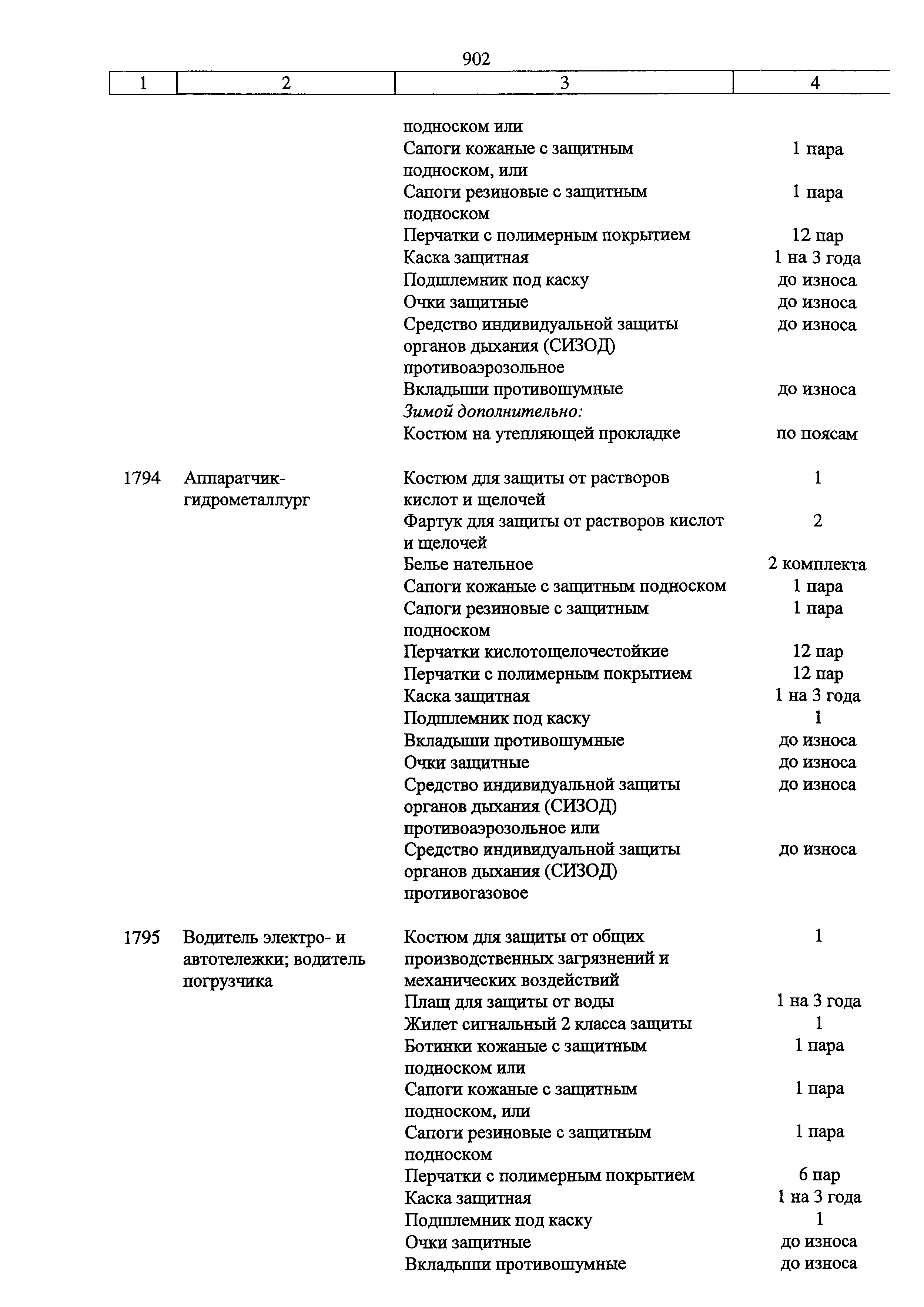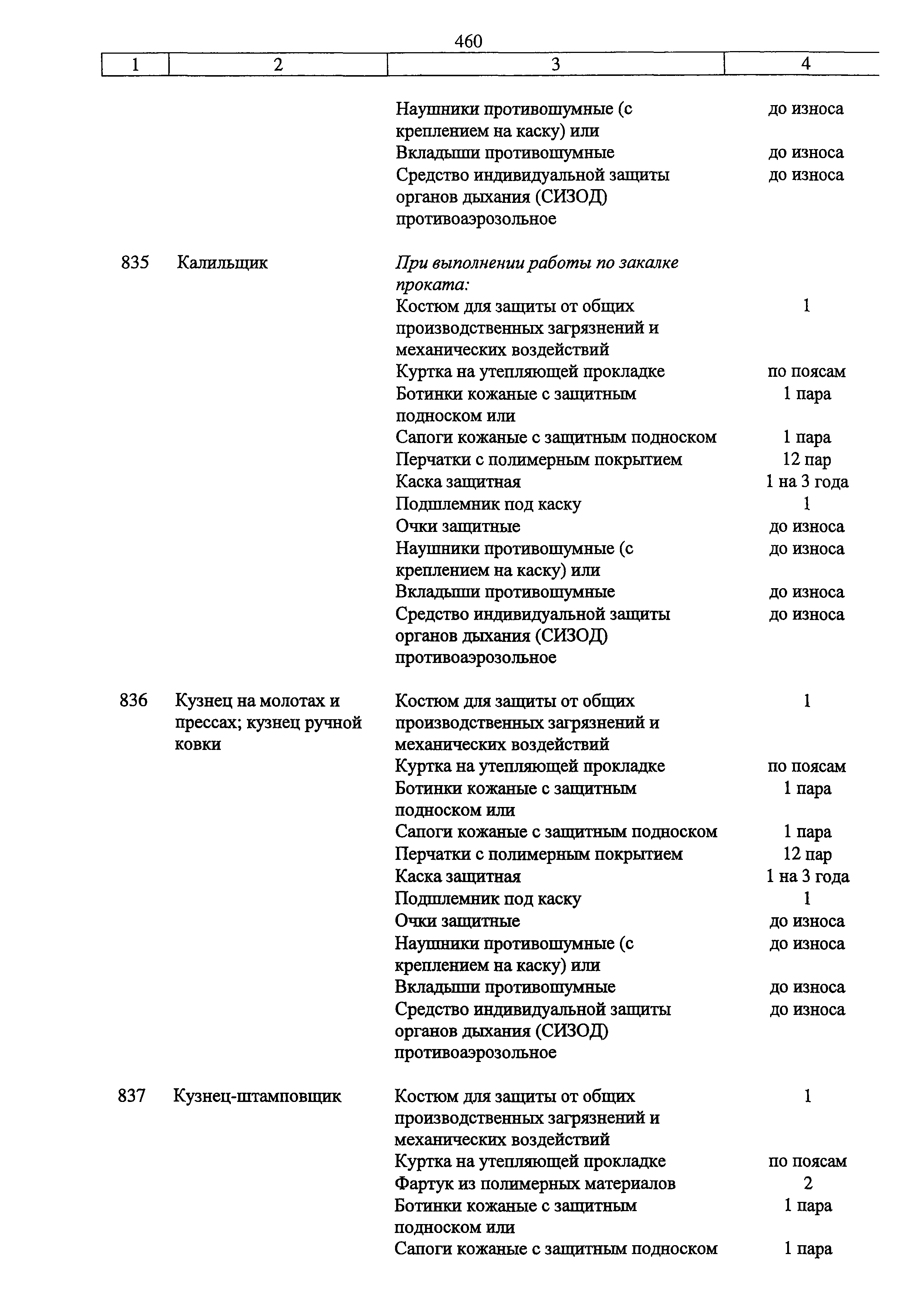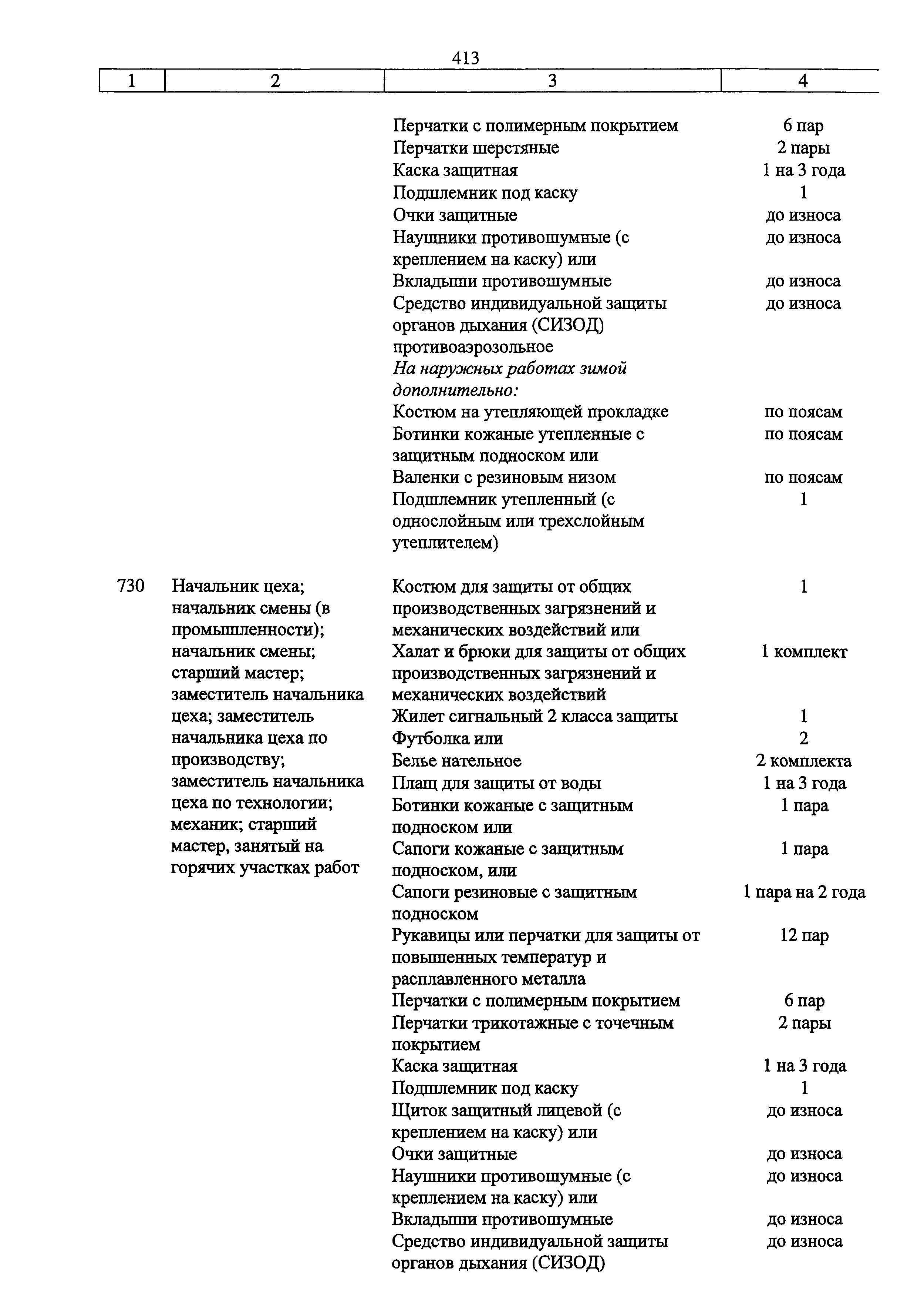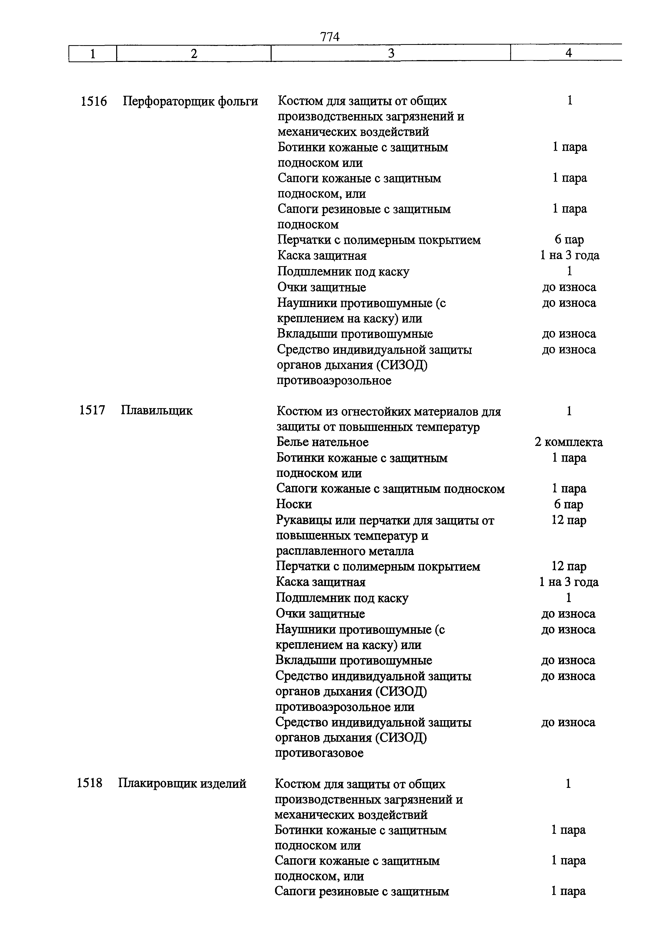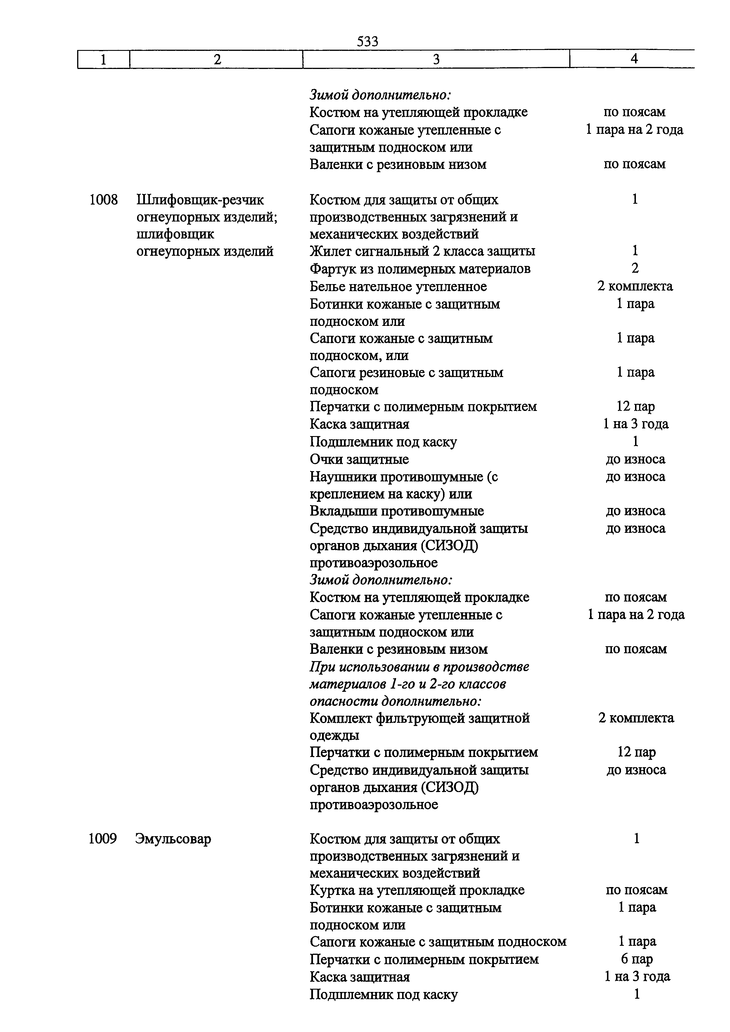 Типовые нормы бесплатной выдачи специальной одежды, специальной обуви и других средств индивидуальной защиты работникам горной и металлургической промышленности и металлургических производств других отраслей промышленности, занятым на работах с вредными и (или) опасными условиями труда, а также на работах, выполняемых в особых температурных условиях или связанных с загрязнением| Статус: | действует | | Название рус.: | Типовые нормы бесплатной выдачи специальной одежды, специальной обуви и других средств индивидуальной защиты работникам горной и металлургической промышленности и металлургических производств других отраслей промышленности, занятым на работах с вредными и (или) опасными условиями труда, а также на работах, выполняемых в особых температурных условиях или связанных с загрязнением | | Дата добавления в базу: | 01.02.2017 | | Дата актуализации: | 01.01.2021 | | Дата введения: | 14.02.2014 | | Область применения: | Нормы утверждаются локальными нормативными актами работодателя на основании результатов аттестации рабочих мест по условиям труда и могут быть включены в коллективный и (или) трудовой договор с указанием типовых норм, по сравнению с которыми улучшается обеспечение работников специальной одеждой, специальной обувью и другими средствами индивидуальной защиты. | | Оглавление: | I Горнодобывающая промышленность 1 Подземные горные работы (шахты) 2 Открытые горные работы и шахтная поверхность 3 Работа на гидравлических установках или с промывочными приборами 4 Дражные работы II Дробление, обогащение, брикетирование, обжиг, агломерация, извлечение металлов и сплавов III Черная металлургия 1 Коксохимическое производство 1.1 Углеподготовительные цеха 1.2 Углеобогатительные цеха 1.3 Производство каменноугольного кокса 1.4 Производство кристаллического нафталина, кумароновой смолы, смолоперерабатывающие цеха 1.5 Производство пиридиновых и фенольно-крезольных продуктов 1.6 Цеха улавливания химических продуктов и газовые цеха 1.7 Цеха ректификации сырого бензола 1.8 Цеха очистки коксового газа от сероводорода 1.9 Производство пекового кокса 1.10 Производство термоантрацита 2 Доменное производство 3 Сталеплавильное производство 3.1 Установки непрерывной разливки стали 4 Производство ферросплавов 4.1 Электролитическое производство 4.2 Производство электролитического хрома 4.3 Производство феррованадия 4.4 Подготовка шихты, обжиг руд и концентратов 4.5 Разливка и разделка ферросплавов 4.6 Обжиг извести 4.7 Общие профессии и должности ферросплавного производства 5 Прокатное производство 6 Производство труб (прокатка, сварка и волочение) 7 Колесопрокатное и бандажное производства 8 Валопрокатное производство 9 Производство рельсовых скреплений 10 Производство баллонов 11 Труболитейное производство 12 Производство метизов 12.1 Производство металлических канатов, сеток, пружин и пружинной ленты, щеток, цепей, колючей проволоки и других метизов 12.2 Волочение проволоки, калибровка и шлифовка металла 12.3 Изготовление волок 12.4 Холодноштамповочные и кузнечно-прессовые работы 12.5 Термическая обработка 12.6 Травление металла, защитные покрытия проволоки и извлечение железного купороса 12.7 Производство металлических электродов и порошковой проволоки 13 Производство огнеупоров 13.1 Огнеупоры 13.2 Карборундовые стержни 13.3 Высокоогнеупорные окислы 14 Ремонт 
