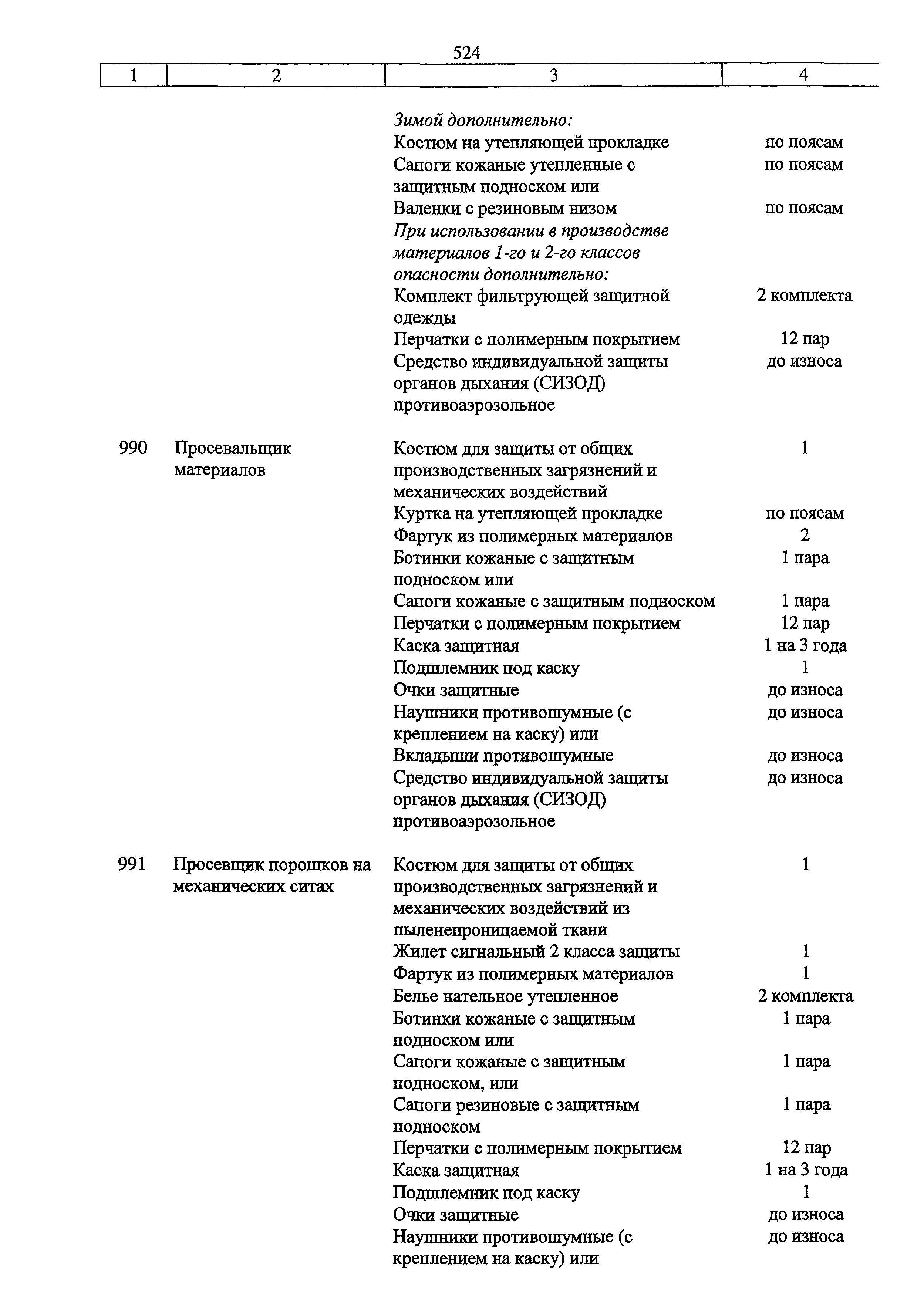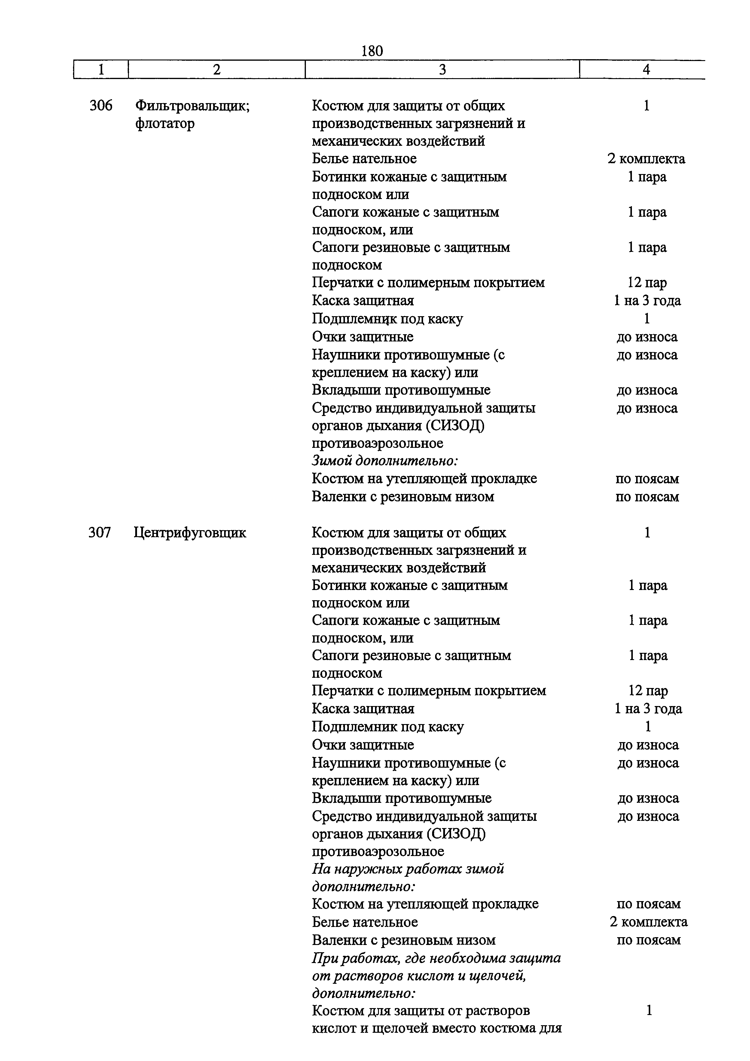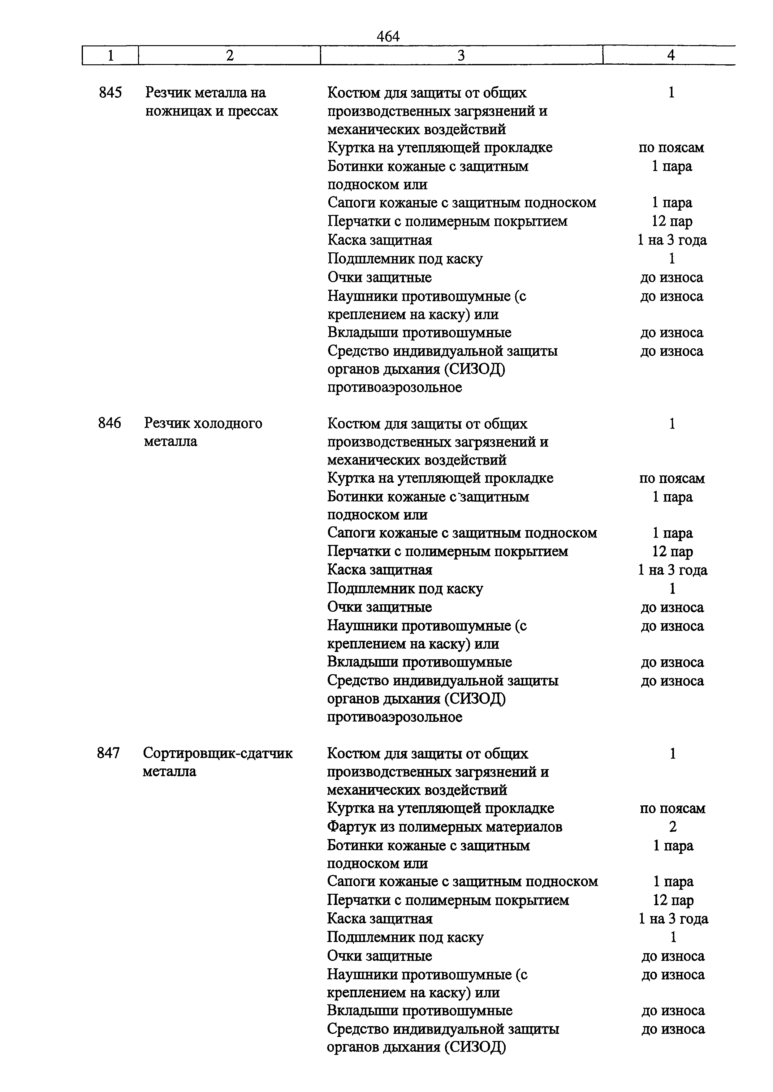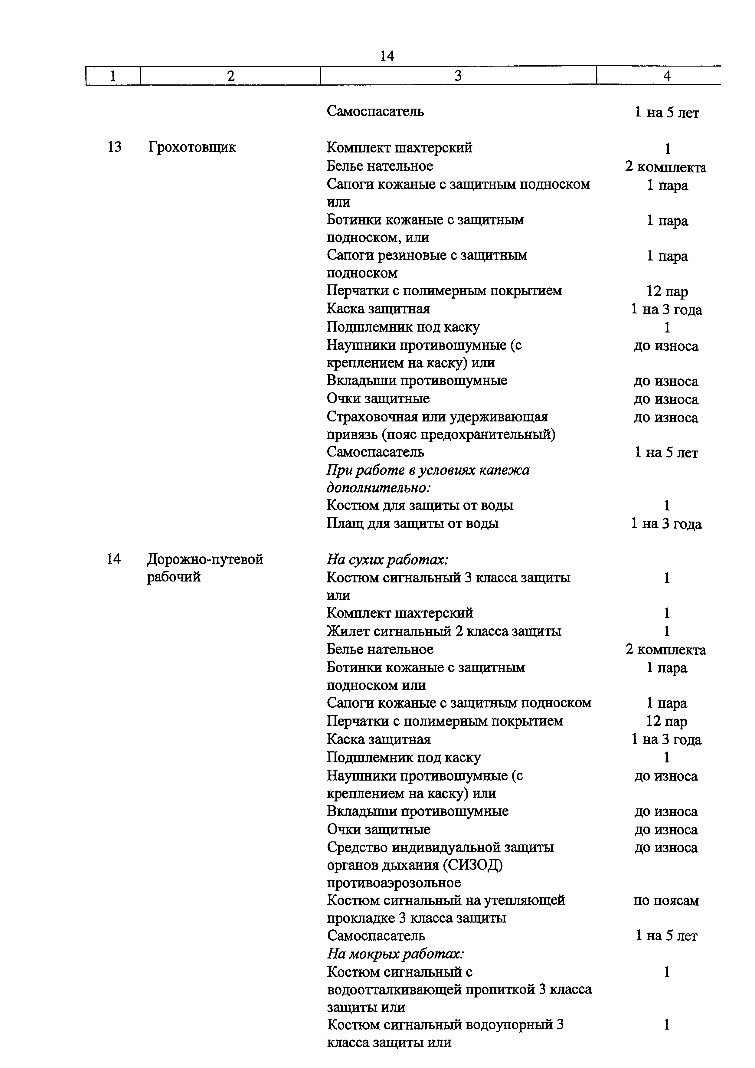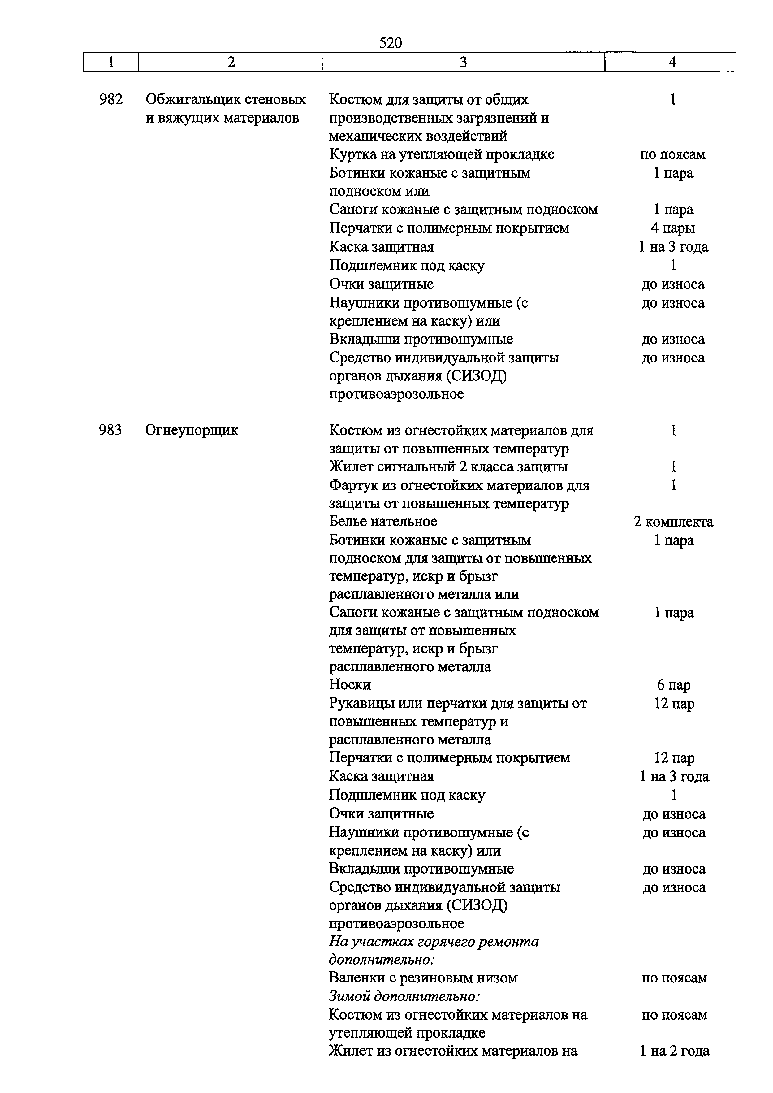 Типовые нормы бесплатной выдачи специальной одежды, специальной обуви и других средств индивидуальной защиты работникам горной и металлургической промышленности и металлургических производств других отраслей промышленности, занятым на работах с вредными и (или) опасными условиями труда, а также на работах, выполняемых в особых температурных условиях или связанных с загрязнением| Статус: | действует | | Название рус.: | Типовые нормы бесплатной выдачи специальной одежды, специальной обуви и других средств индивидуальной защиты работникам горной и металлургической промышленности и металлургических производств других отраслей промышленности, занятым на работах с вредными и (или) опасными условиями труда, а также на работах, выполняемых в особых температурных условиях или связанных с загрязнением | | Дата добавления в базу: | 01.02.2017 | | Дата актуализации: | 01.01.2021 | | Дата введения: | 14.02.2014 | | Область применения: | Нормы утверждаются локальными нормативными актами работодателя на основании результатов аттестации рабочих мест по условиям труда и могут быть включены в коллективный и (или) трудовой договор с указанием типовых норм, по сравнению с которыми улучшается обеспечение работников специальной одеждой, специальной обувью и другими средствами индивидуальной защиты. | | Оглавление: | I Горнодобывающая промышленность 1 Подземные горные работы (шахты) 2 Открытые горные работы и шахтная поверхность 3 Работа на гидравлических установках или с промывочными приборами 4 Дражные работы II Дробление, обогащение, брикетирование, обжиг, агломерация, извлечение металлов и сплавов III Черная металлургия 1 Коксохимическое производство 1.1 Углеподготовительные цеха 1.2 Углеобогатительные цеха 1.3 Производство каменноугольного кокса 1.4 Производство кристаллического нафталина, кумароновой смолы, смолоперерабатывающие цеха 1.5 Производство пиридиновых и фенольно-крезольных продуктов 1.6 Цеха улавливания химических продуктов и газовые цеха 1.7 Цеха ректификации сырого бензола 1.8 Цеха очистки коксового газа от сероводорода 1.9 Производство пекового кокса 1.10 Производство термоантрацита 2 Доменное производство 3 Сталеплавильное производство 3.1 Установки непрерывной разливки стали 4 Производство ферросплавов 4.1 Электролитическое производство 4.2 Производство электролитического хрома 4.3 Производство феррованадия 4.4 Подготовка шихты, обжиг руд и концентратов 4.5 Разливка и разделка ферросплавов 4.6 Обжиг извести 4.7 Общие профессии и должности ферросплавного производства 5 Прокатное производство 6 Производство труб (прокатка, сварка и волочение) 7 Колесопрокатное и бандажное производства 8 Валопрокатное производство 9 Производство рельсовых скреплений 10 Производство баллонов 11 Труболитейное производство 12 Производство метизов 12.1 Производство металлических канатов, сеток, пружин и пружинной ленты, щеток, цепей, колючей проволоки и других метизов 12.2 Волочение проволоки, калибровка и шлифовка металла 12.3 Изготовление волок 12.4 Холодноштамповочные и кузнечно-прессовые работы 12.5 Термическая обработка 12.6 Травление металла, защитные покрытия проволоки и извлечение железного купороса 12.7 Производство металлических электродов и порошковой проволоки 13 Производство огнеупоров 13.1 Огнеупоры 13.2 Карборундовые стержни 13.3 Высокоогнеупорные окислы 14 Ремонт 