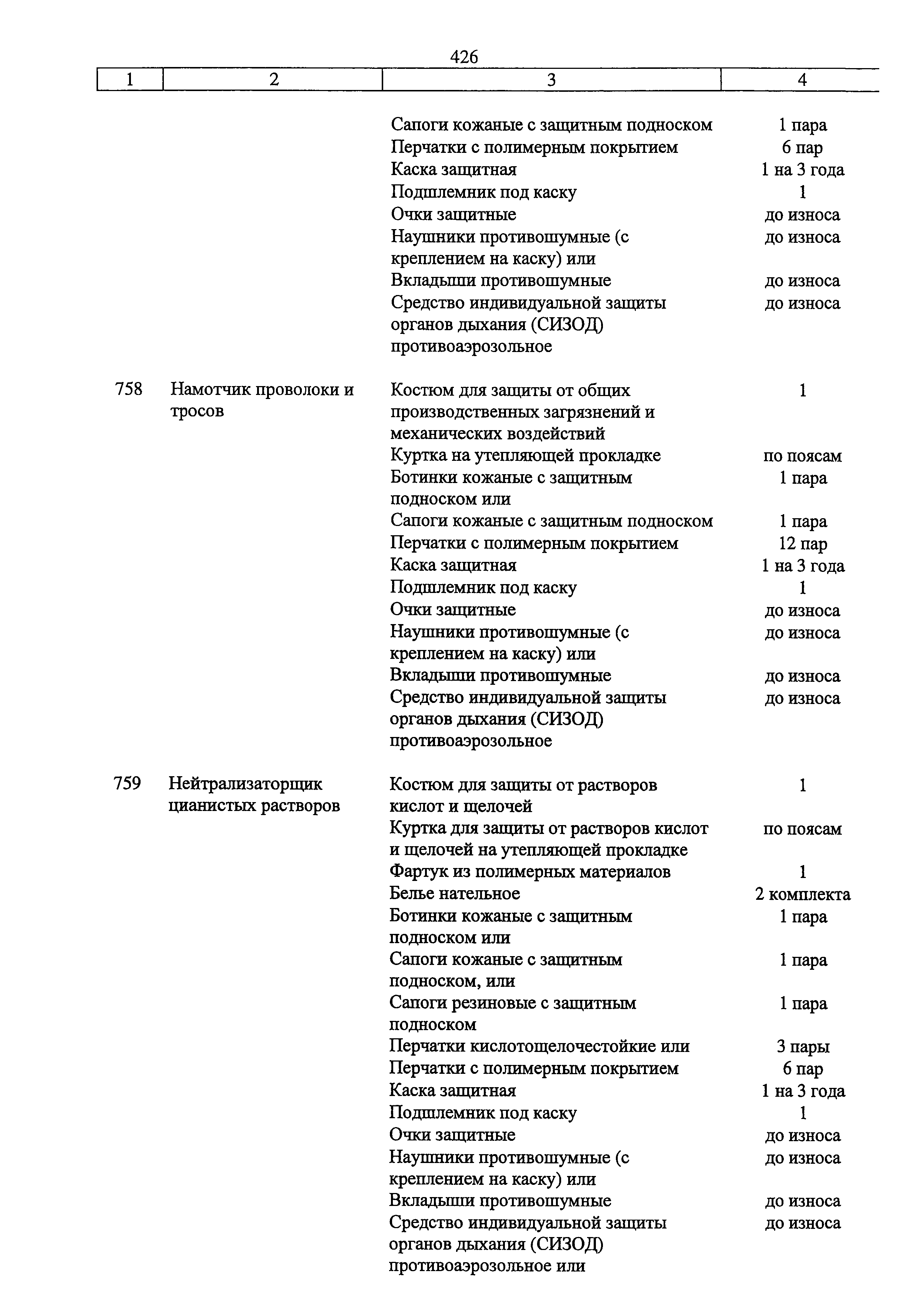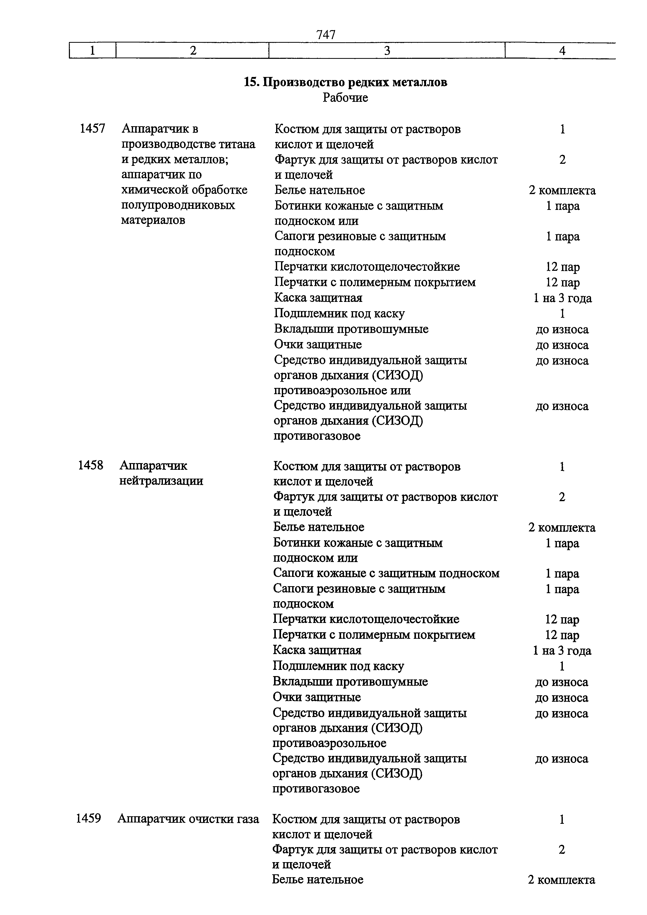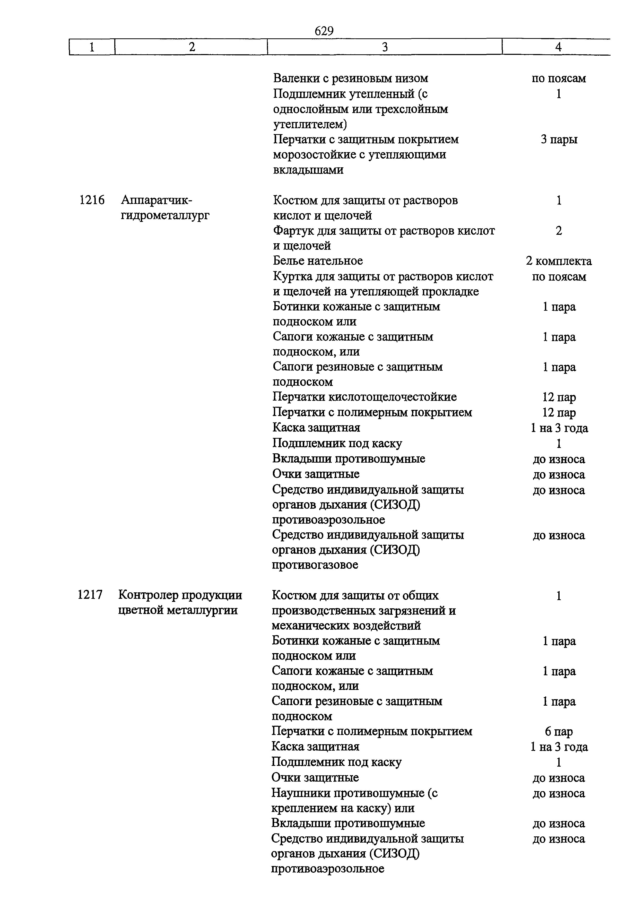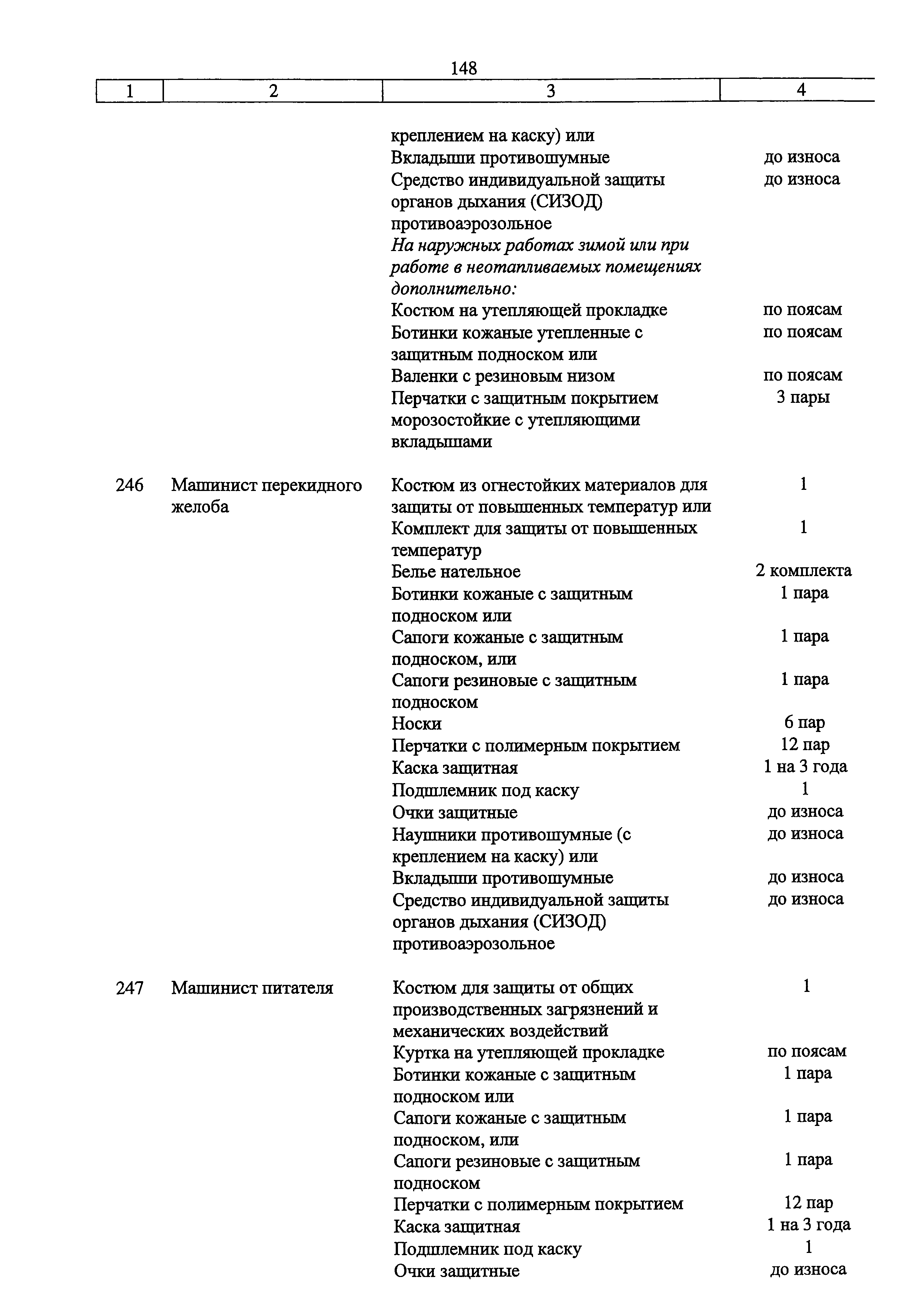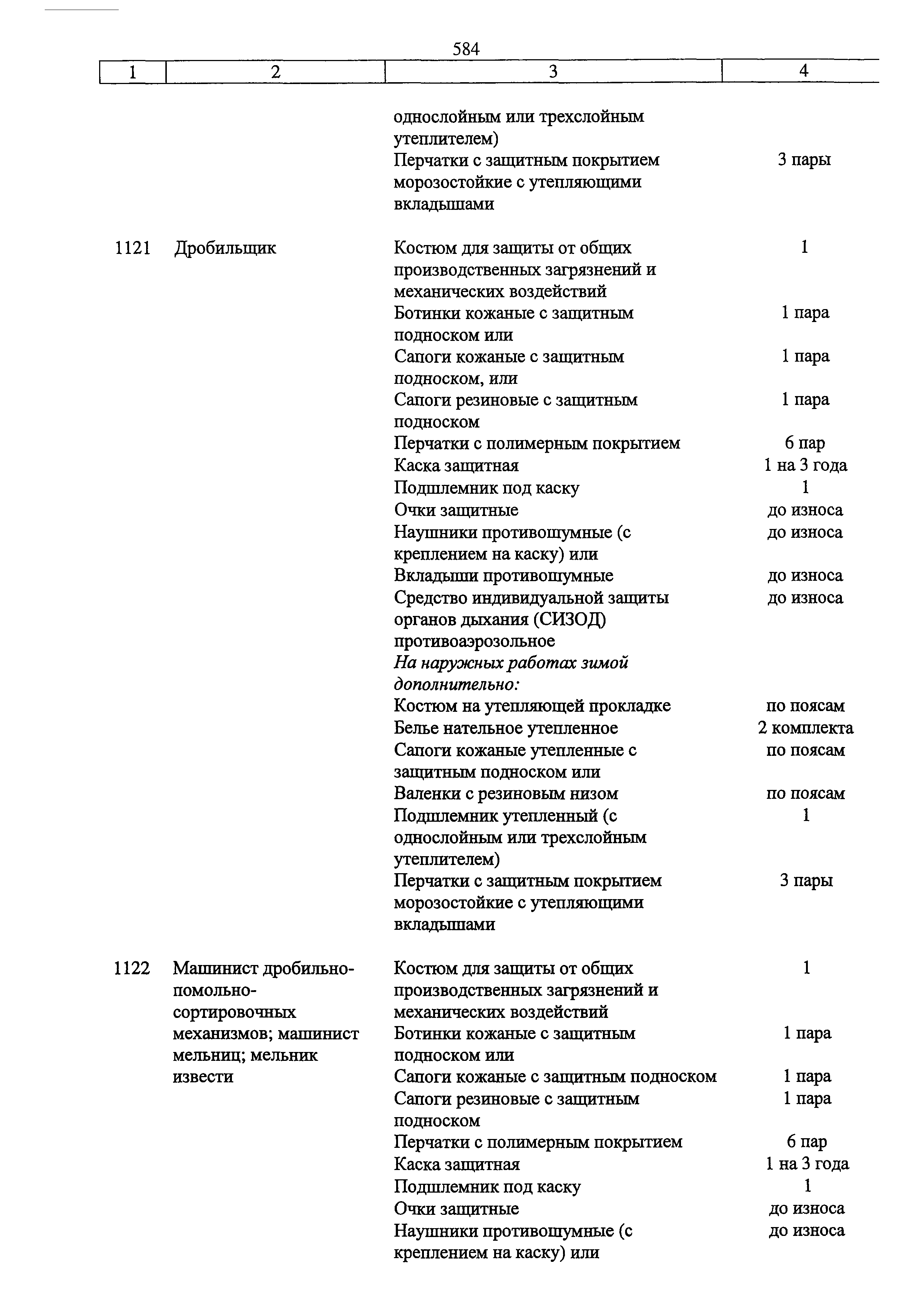 Типовые нормы бесплатной выдачи специальной одежды, специальной обуви и других средств индивидуальной защиты работникам горной и металлургической промышленности и металлургических производств других отраслей промышленности, занятым на работах с вредными и (или) опасными условиями труда, а также на работах, выполняемых в особых температурных условиях или связанных с загрязнением| Статус: | действует | | Название рус.: | Типовые нормы бесплатной выдачи специальной одежды, специальной обуви и других средств индивидуальной защиты работникам горной и металлургической промышленности и металлургических производств других отраслей промышленности, занятым на работах с вредными и (или) опасными условиями труда, а также на работах, выполняемых в особых температурных условиях или связанных с загрязнением | | Дата добавления в базу: | 01.02.2017 | | Дата актуализации: | 01.01.2021 | | Дата введения: | 14.02.2014 | | Область применения: | Нормы утверждаются локальными нормативными актами работодателя на основании результатов аттестации рабочих мест по условиям труда и могут быть включены в коллективный и (или) трудовой договор с указанием типовых норм, по сравнению с которыми улучшается обеспечение работников специальной одеждой, специальной обувью и другими средствами индивидуальной защиты. | | Оглавление: | I Горнодобывающая промышленность 1 Подземные горные работы (шахты) 2 Открытые горные работы и шахтная поверхность 3 Работа на гидравлических установках или с промывочными приборами 4 Дражные работы II Дробление, обогащение, брикетирование, обжиг, агломерация, извлечение металлов и сплавов III Черная металлургия 1 Коксохимическое производство 1.1 Углеподготовительные цеха 1.2 Углеобогатительные цеха 1.3 Производство каменноугольного кокса 1.4 Производство кристаллического нафталина, кумароновой смолы, смолоперерабатывающие цеха 1.5 Производство пиридиновых и фенольно-крезольных продуктов 1.6 Цеха улавливания химических продуктов и газовые цеха 1.7 Цеха ректификации сырого бензола 1.8 Цеха очистки коксового газа от сероводорода 1.9 Производство пекового кокса 1.10 Производство термоантрацита 2 Доменное производство 3 Сталеплавильное производство 3.1 Установки непрерывной разливки стали 4 Производство ферросплавов 4.1 Электролитическое производство 4.2 Производство электролитического хрома 4.3 Производство феррованадия 4.4 Подготовка шихты, обжиг руд и концентратов 4.5 Разливка и разделка ферросплавов 4.6 Обжиг извести 4.7 Общие профессии и должности ферросплавного производства 5 Прокатное производство 6 Производство труб (прокатка, сварка и волочение) 7 Колесопрокатное и бандажное производства 8 Валопрокатное производство 9 Производство рельсовых скреплений 10 Производство баллонов 11 Труболитейное производство 12 Производство метизов 12.1 Производство металлических канатов, сеток, пружин и пружинной ленты, щеток, цепей, колючей проволоки и других метизов 12.2 Волочение проволоки, калибровка и шлифовка металла 12.3 Изготовление волок 12.4 Холодноштамповочные и кузнечно-прессовые работы 12.5 Термическая обработка 12.6 Травление металла, защитные покрытия проволоки и извлечение железного купороса 12.7 Производство металлических электродов и порошковой проволоки 13 Производство огнеупоров 13.1 Огнеупоры 13.2 Карборундовые стержни 13.3 Высокоогнеупорные окислы 14 Ремонт 
