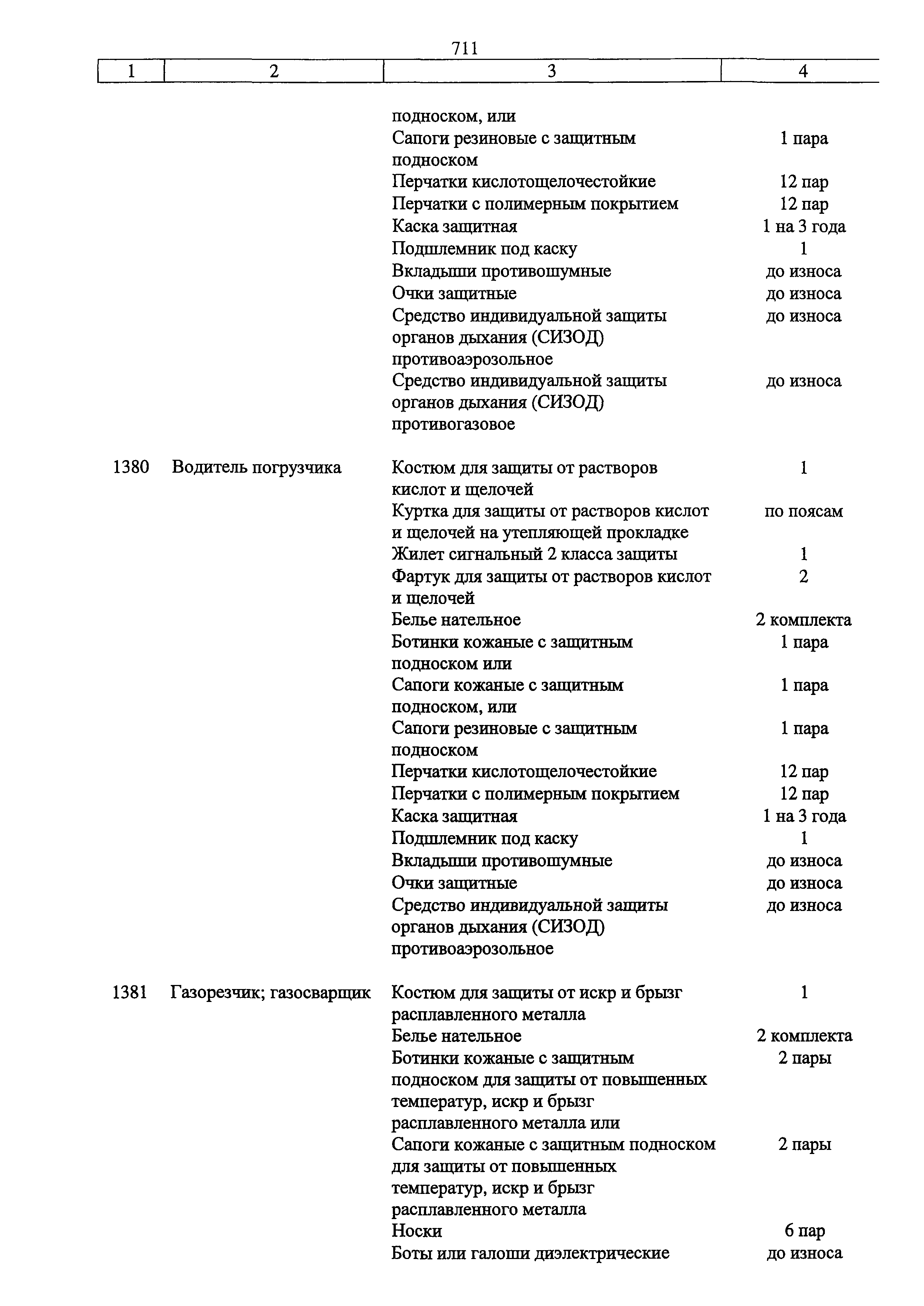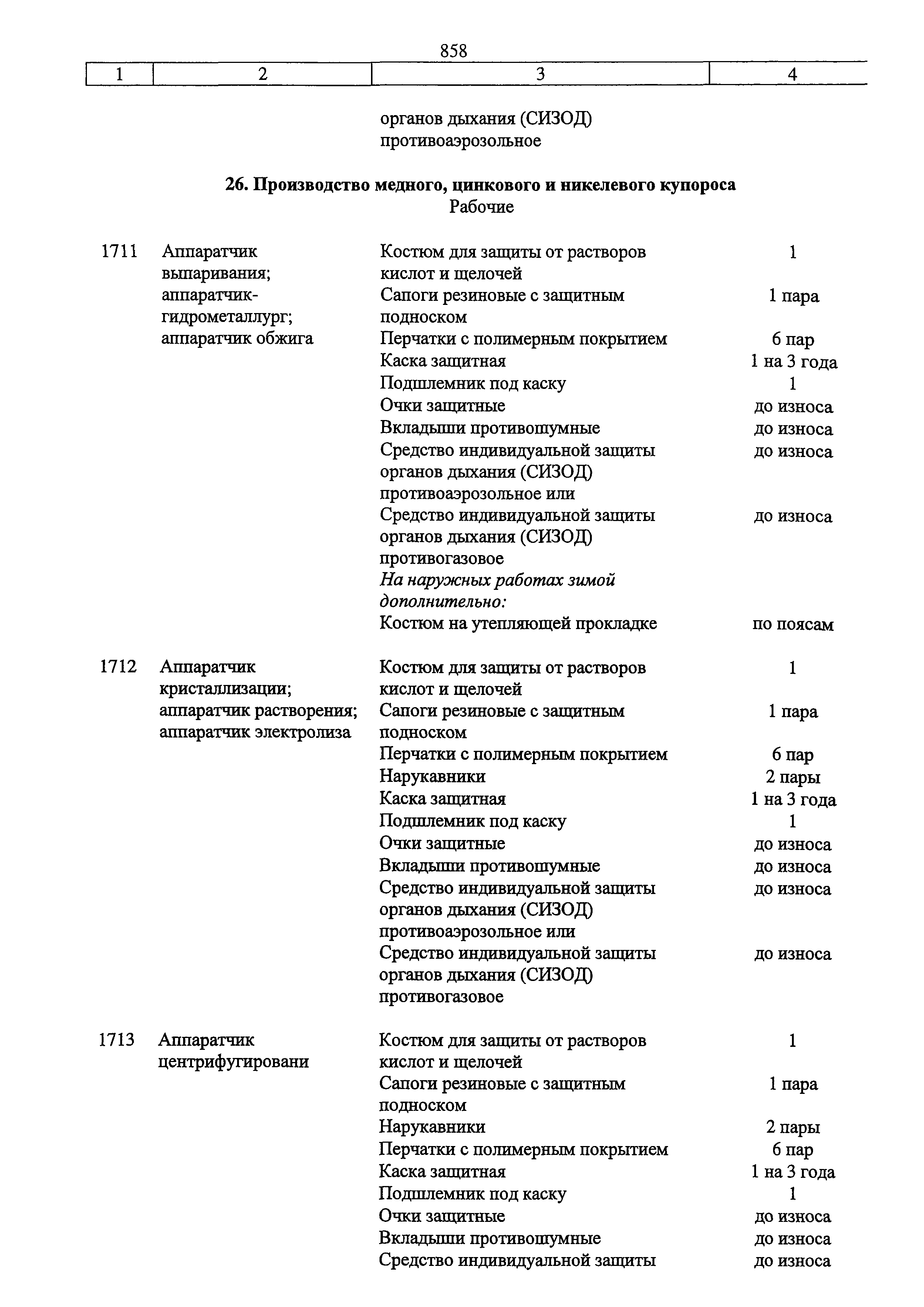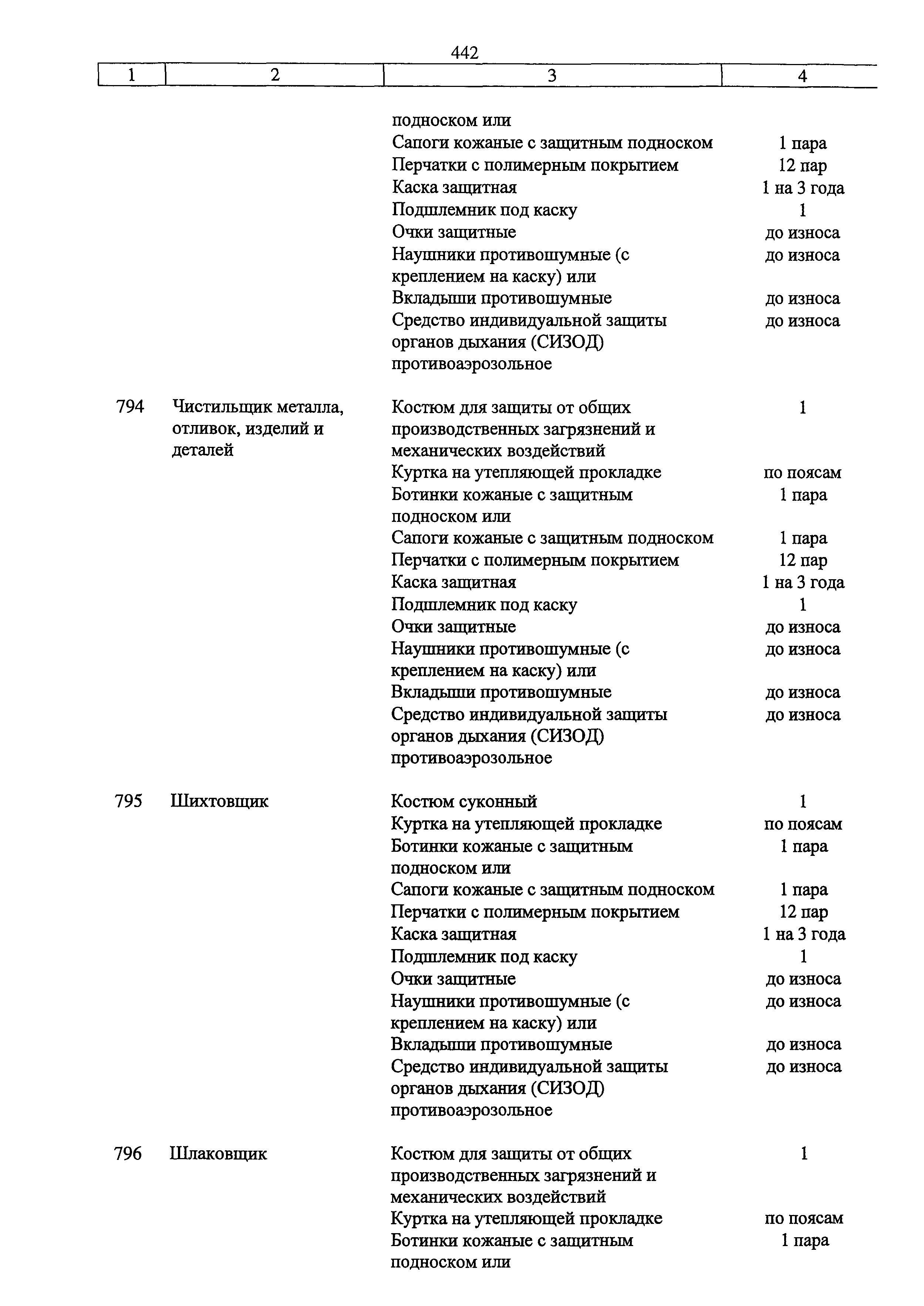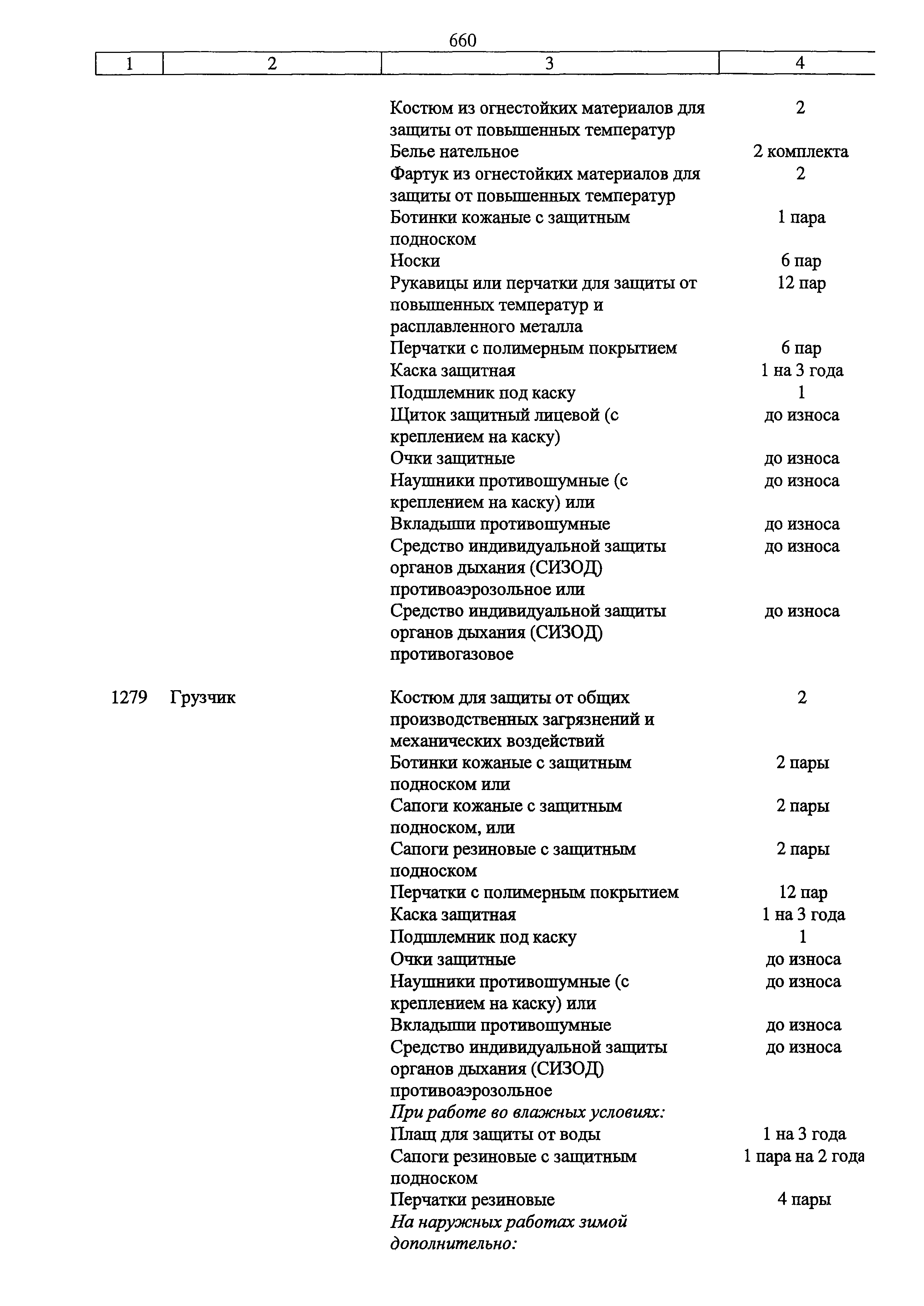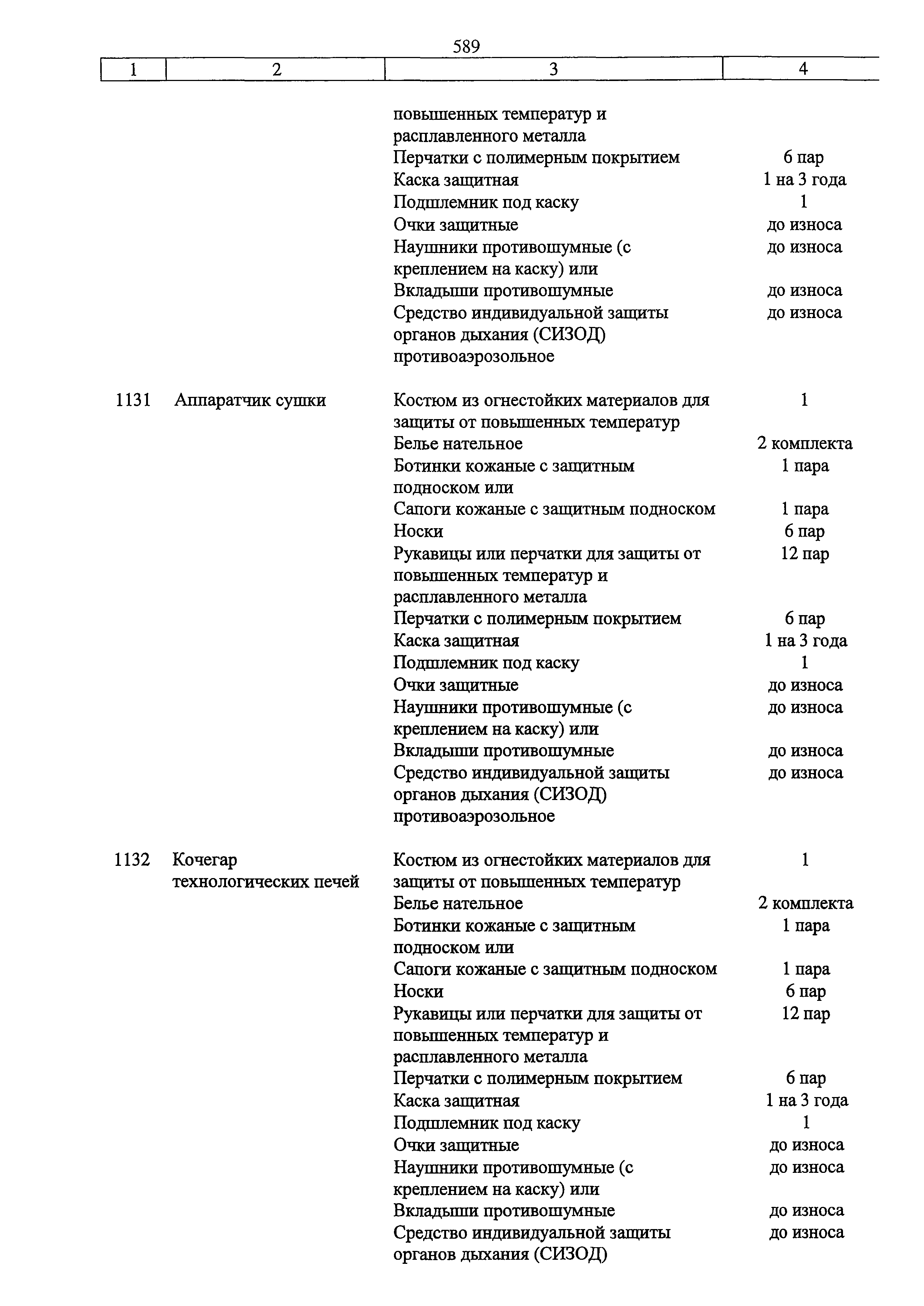 Типовые нормы бесплатной выдачи специальной одежды, специальной обуви и других средств индивидуальной защиты работникам горной и металлургической промышленности и металлургических производств других отраслей промышленности, занятым на работах с вредными и (или) опасными условиями труда, а также на работах, выполняемых в особых температурных условиях или связанных с загрязнением| Статус: | действует | | Название рус.: | Типовые нормы бесплатной выдачи специальной одежды, специальной обуви и других средств индивидуальной защиты работникам горной и металлургической промышленности и металлургических производств других отраслей промышленности, занятым на работах с вредными и (или) опасными условиями труда, а также на работах, выполняемых в особых температурных условиях или связанных с загрязнением | | Дата добавления в базу: | 01.02.2017 | | Дата актуализации: | 01.01.2021 | | Дата введения: | 14.02.2014 | | Область применения: | Нормы утверждаются локальными нормативными актами работодателя на основании результатов аттестации рабочих мест по условиям труда и могут быть включены в коллективный и (или) трудовой договор с указанием типовых норм, по сравнению с которыми улучшается обеспечение работников специальной одеждой, специальной обувью и другими средствами индивидуальной защиты. | | Оглавление: | I Горнодобывающая промышленность 1 Подземные горные работы (шахты) 2 Открытые горные работы и шахтная поверхность 3 Работа на гидравлических установках или с промывочными приборами 4 Дражные работы II Дробление, обогащение, брикетирование, обжиг, агломерация, извлечение металлов и сплавов III Черная металлургия 1 Коксохимическое производство 1.1 Углеподготовительные цеха 1.2 Углеобогатительные цеха 1.3 Производство каменноугольного кокса 1.4 Производство кристаллического нафталина, кумароновой смолы, смолоперерабатывающие цеха 1.5 Производство пиридиновых и фенольно-крезольных продуктов 1.6 Цеха улавливания химических продуктов и газовые цеха 1.7 Цеха ректификации сырого бензола 1.8 Цеха очистки коксового газа от сероводорода 1.9 Производство пекового кокса 1.10 Производство термоантрацита 2 Доменное производство 3 Сталеплавильное производство 3.1 Установки непрерывной разливки стали 4 Производство ферросплавов 4.1 Электролитическое производство 4.2 Производство электролитического хрома 4.3 Производство феррованадия 4.4 Подготовка шихты, обжиг руд и концентратов 4.5 Разливка и разделка ферросплавов 4.6 Обжиг извести 4.7 Общие профессии и должности ферросплавного производства 5 Прокатное производство 6 Производство труб (прокатка, сварка и волочение) 7 Колесопрокатное и бандажное производства 8 Валопрокатное производство 9 Производство рельсовых скреплений 10 Производство баллонов 11 Труболитейное производство 12 Производство метизов 12.1 Производство металлических канатов, сеток, пружин и пружинной ленты, щеток, цепей, колючей проволоки и других метизов 12.2 Волочение проволоки, калибровка и шлифовка металла 12.3 Изготовление волок 12.4 Холодноштамповочные и кузнечно-прессовые работы 12.5 Термическая обработка 12.6 Травление металла, защитные покрытия проволоки и извлечение железного купороса 12.7 Производство металлических электродов и порошковой проволоки 13 Производство огнеупоров 13.1 Огнеупоры 13.2 Карборундовые стержни 13.3 Высокоогнеупорные окислы 14 Ремонт 