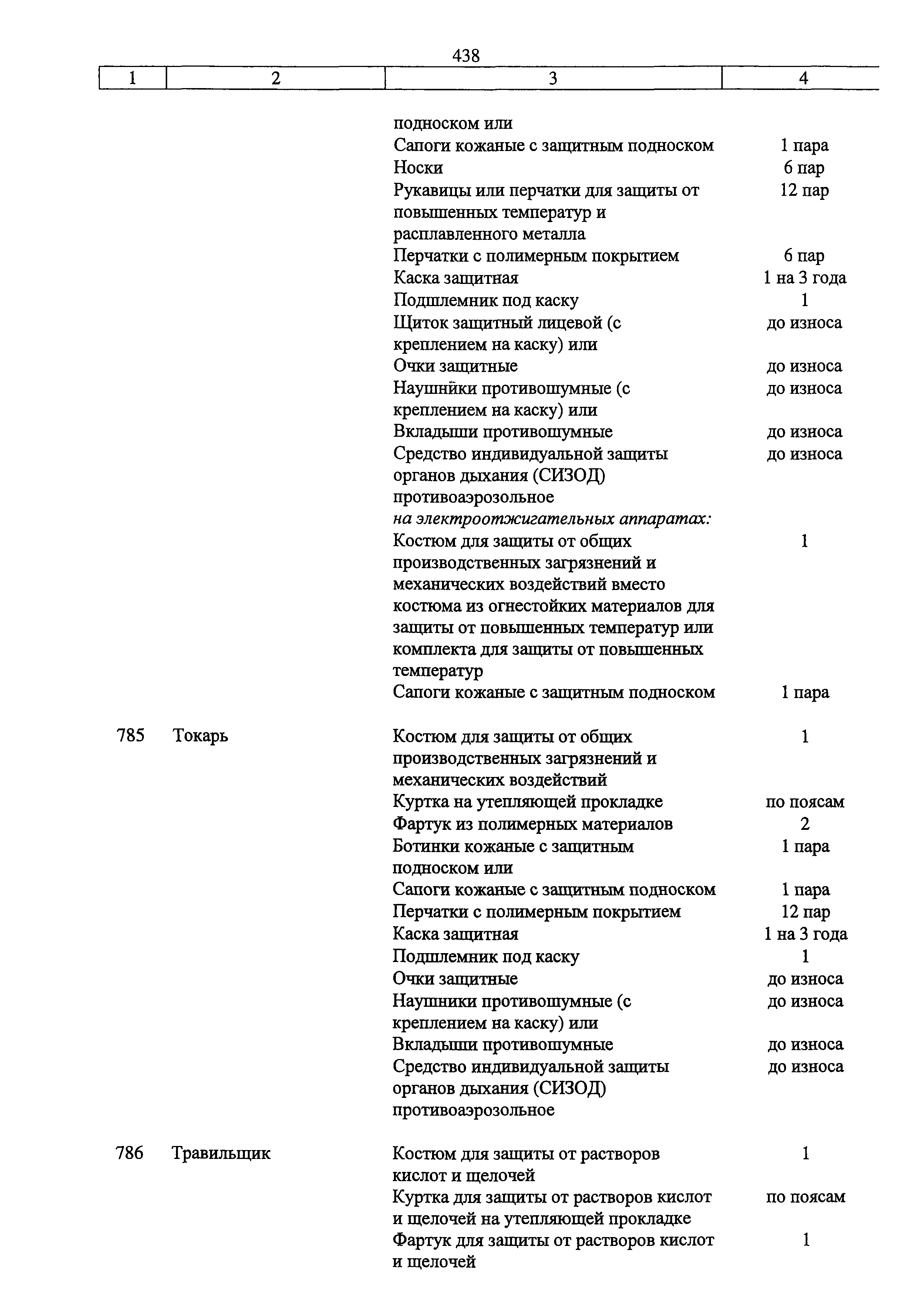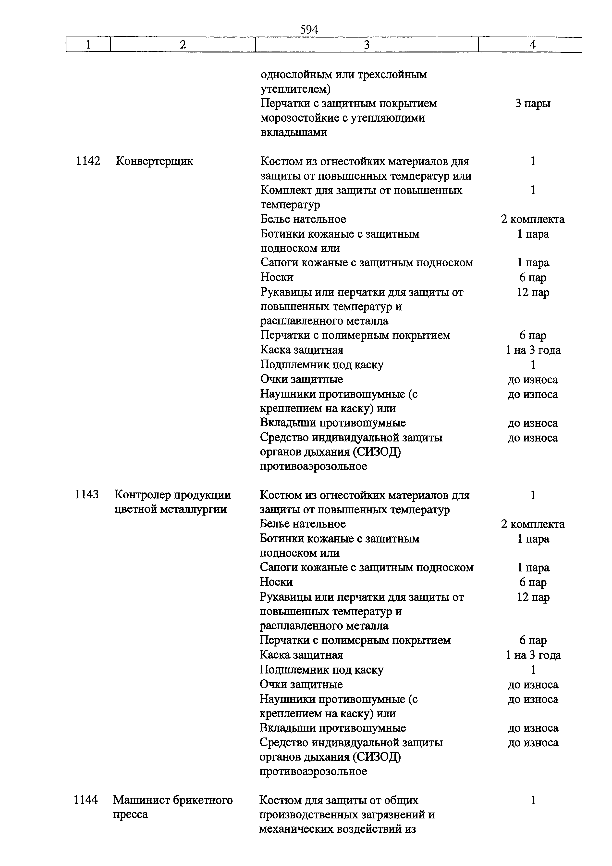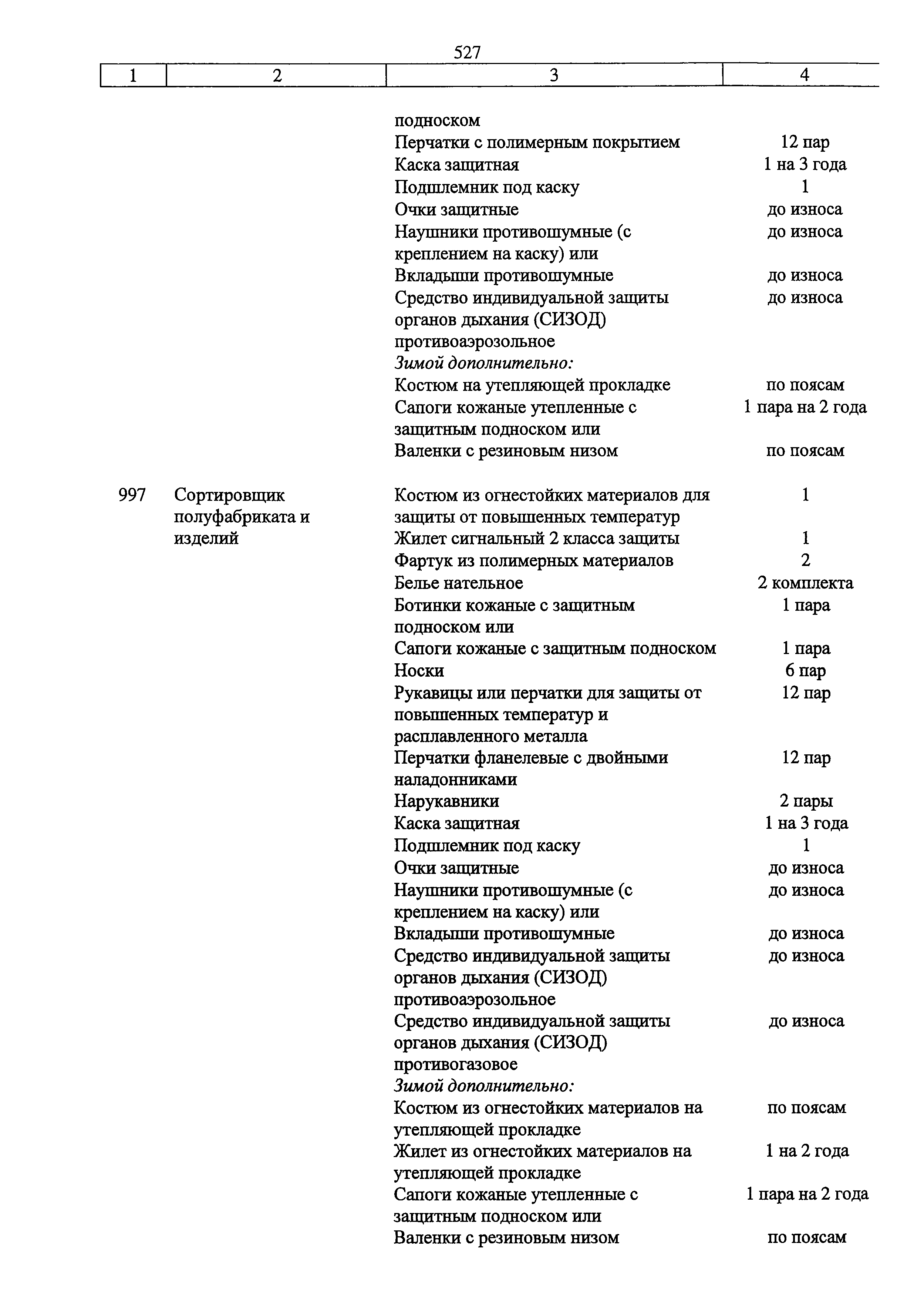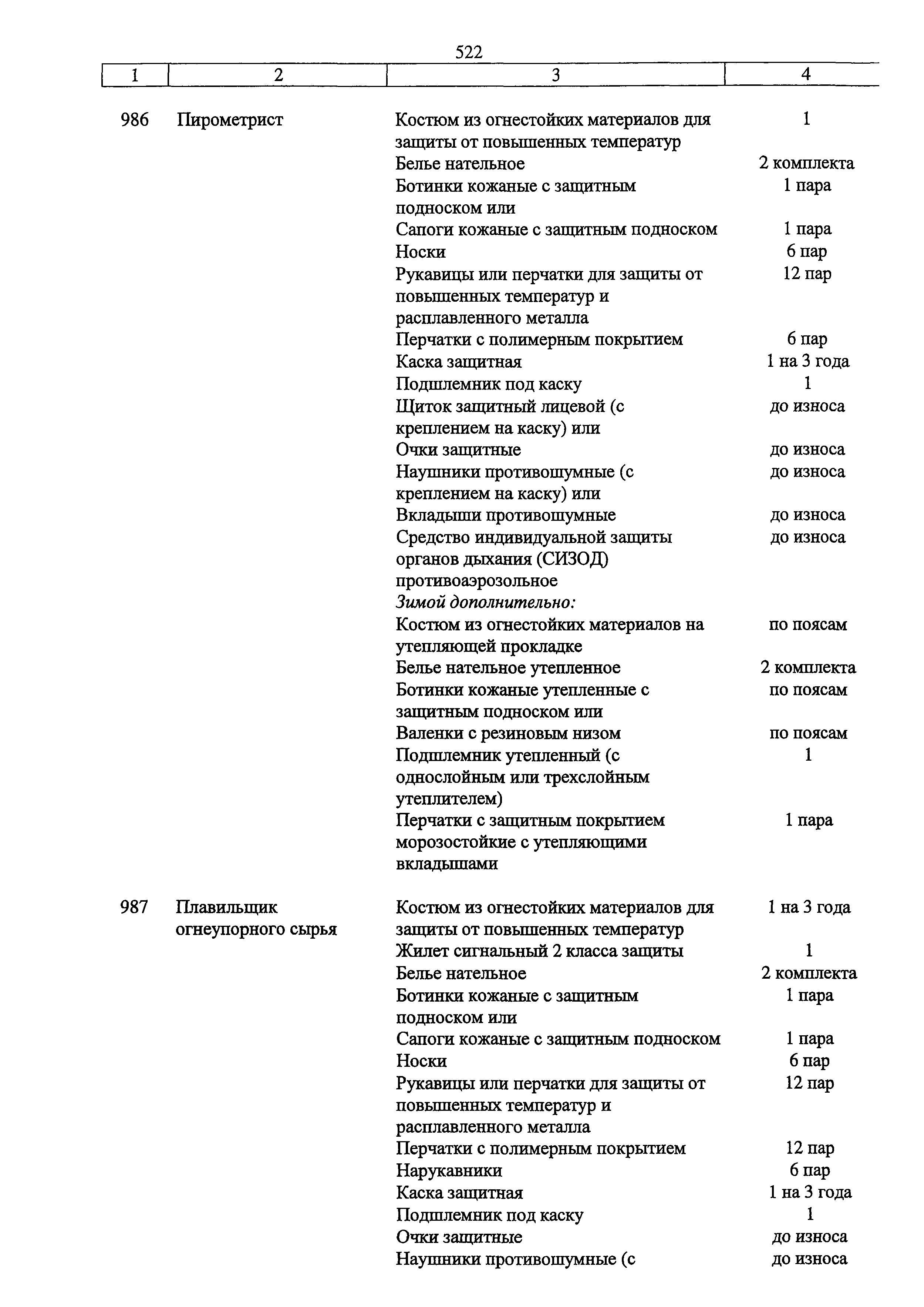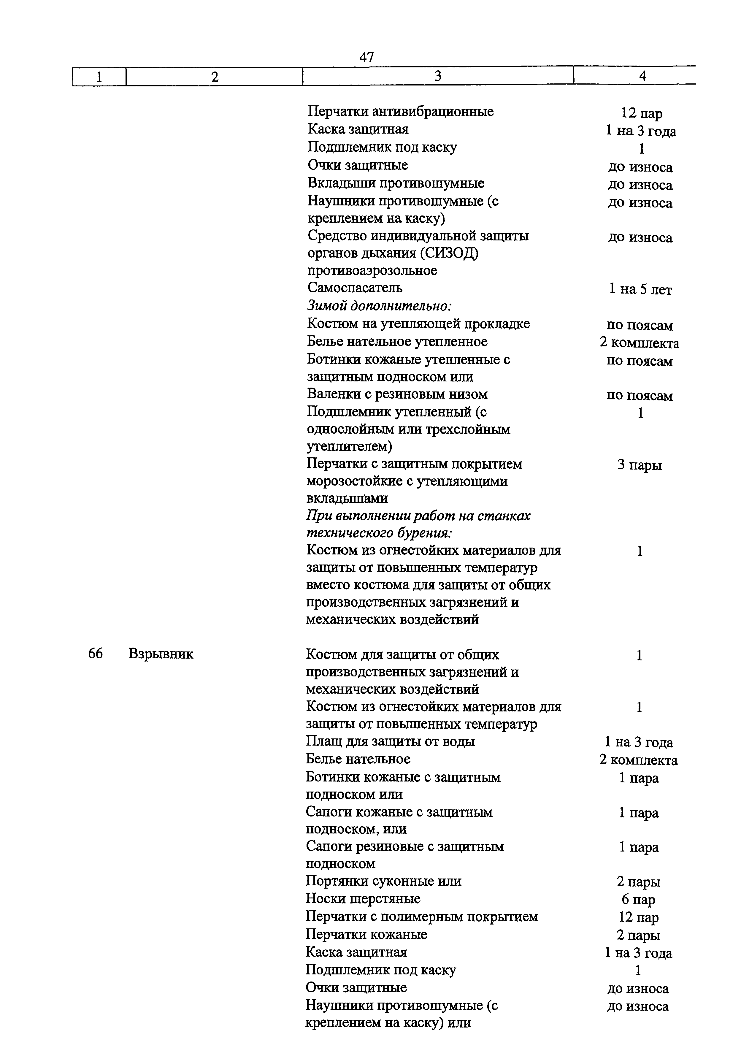 Типовые нормы бесплатной выдачи специальной одежды, специальной обуви и других средств индивидуальной защиты работникам горной и металлургической промышленности и металлургических производств других отраслей промышленности, занятым на работах с вредными и (или) опасными условиями труда, а также на работах, выполняемых в особых температурных условиях или связанных с загрязнением| Статус: | действует | | Название рус.: | Типовые нормы бесплатной выдачи специальной одежды, специальной обуви и других средств индивидуальной защиты работникам горной и металлургической промышленности и металлургических производств других отраслей промышленности, занятым на работах с вредными и (или) опасными условиями труда, а также на работах, выполняемых в особых температурных условиях или связанных с загрязнением | | Дата добавления в базу: | 01.02.2017 | | Дата актуализации: | 01.01.2021 | | Дата введения: | 14.02.2014 | | Область применения: | Нормы утверждаются локальными нормативными актами работодателя на основании результатов аттестации рабочих мест по условиям труда и могут быть включены в коллективный и (или) трудовой договор с указанием типовых норм, по сравнению с которыми улучшается обеспечение работников специальной одеждой, специальной обувью и другими средствами индивидуальной защиты. | | Оглавление: | I Горнодобывающая промышленность 1 Подземные горные работы (шахты) 2 Открытые горные работы и шахтная поверхность 3 Работа на гидравлических установках или с промывочными приборами 4 Дражные работы II Дробление, обогащение, брикетирование, обжиг, агломерация, извлечение металлов и сплавов III Черная металлургия 1 Коксохимическое производство 1.1 Углеподготовительные цеха 1.2 Углеобогатительные цеха 1.3 Производство каменноугольного кокса 1.4 Производство кристаллического нафталина, кумароновой смолы, смолоперерабатывающие цеха 1.5 Производство пиридиновых и фенольно-крезольных продуктов 1.6 Цеха улавливания химических продуктов и газовые цеха 1.7 Цеха ректификации сырого бензола 1.8 Цеха очистки коксового газа от сероводорода 1.9 Производство пекового кокса 1.10 Производство термоантрацита 2 Доменное производство 3 Сталеплавильное производство 3.1 Установки непрерывной разливки стали 4 Производство ферросплавов 4.1 Электролитическое производство 4.2 Производство электролитического хрома 4.3 Производство феррованадия 4.4 Подготовка шихты, обжиг руд и концентратов 4.5 Разливка и разделка ферросплавов 4.6 Обжиг извести 4.7 Общие профессии и должности ферросплавного производства 5 Прокатное производство 6 Производство труб (прокатка, сварка и волочение) 7 Колесопрокатное и бандажное производства 8 Валопрокатное производство 9 Производство рельсовых скреплений 10 Производство баллонов 11 Труболитейное производство 12 Производство метизов 12.1 Производство металлических канатов, сеток, пружин и пружинной ленты, щеток, цепей, колючей проволоки и других метизов 12.2 Волочение проволоки, калибровка и шлифовка металла 12.3 Изготовление волок 12.4 Холодноштамповочные и кузнечно-прессовые работы 12.5 Термическая обработка 12.6 Травление металла, защитные покрытия проволоки и извлечение железного купороса 12.7 Производство металлических электродов и порошковой проволоки 13 Производство огнеупоров 13.1 Огнеупоры 13.2 Карборундовые стержни 13.3 Высокоогнеупорные окислы 14 Ремонт 
