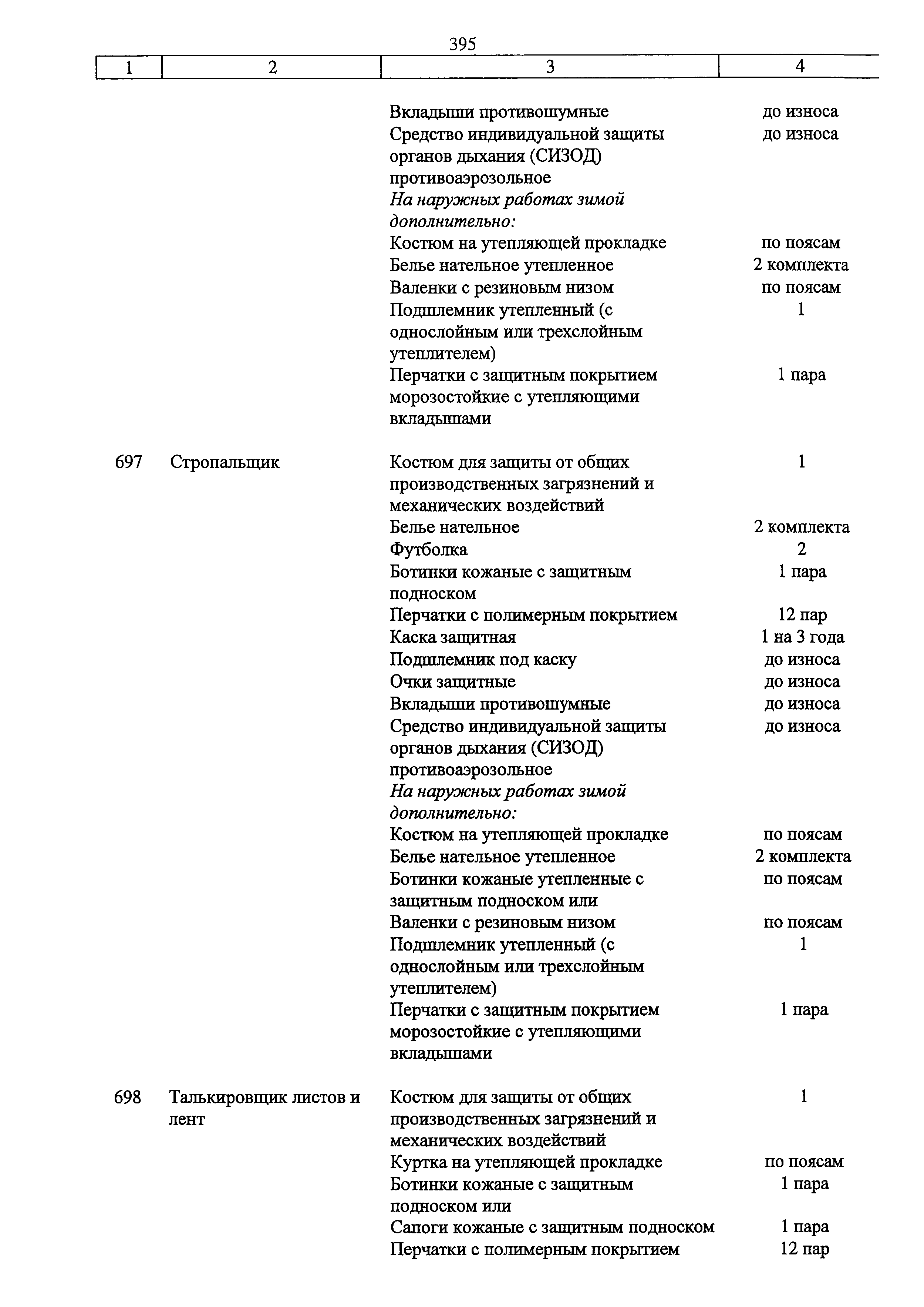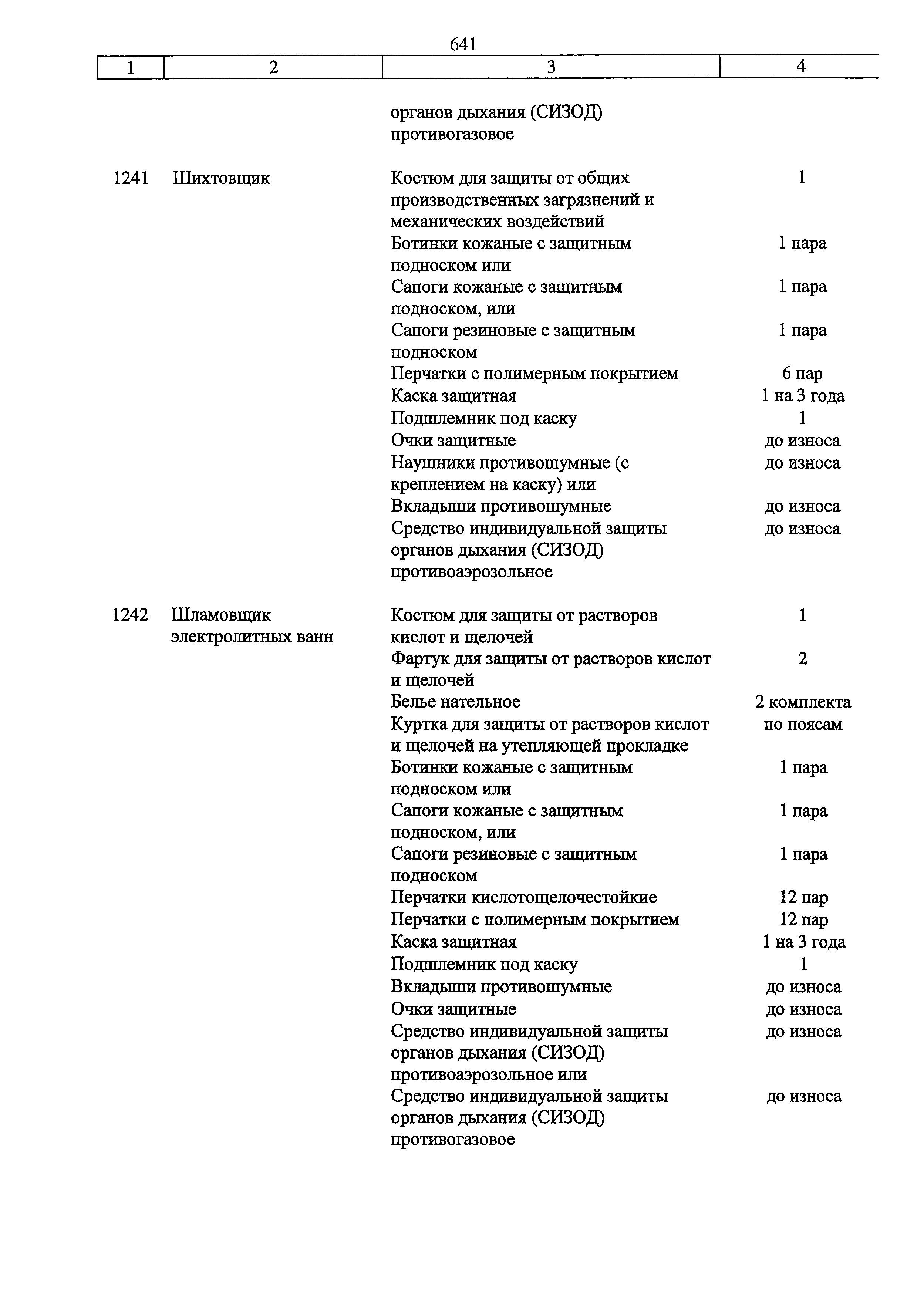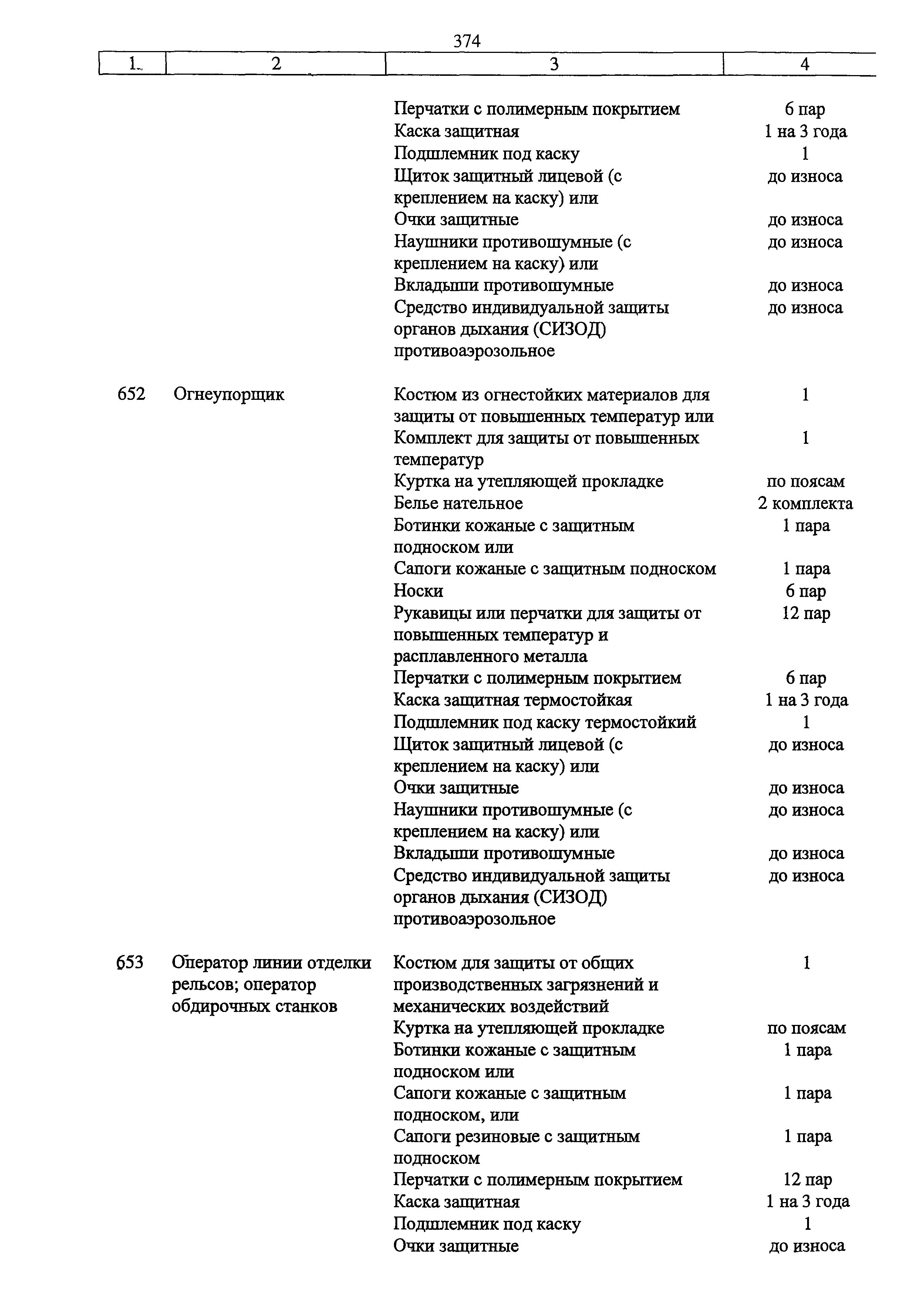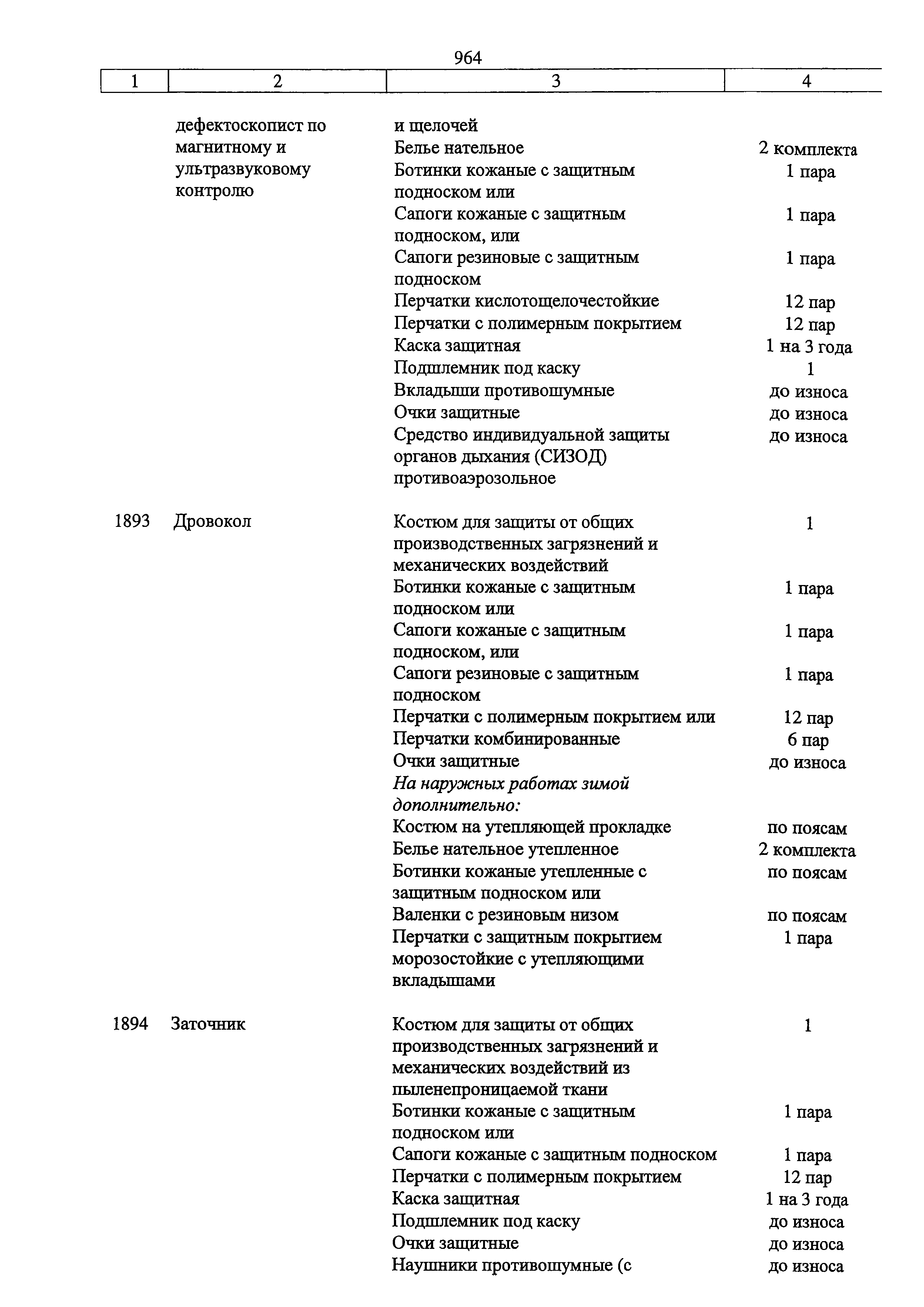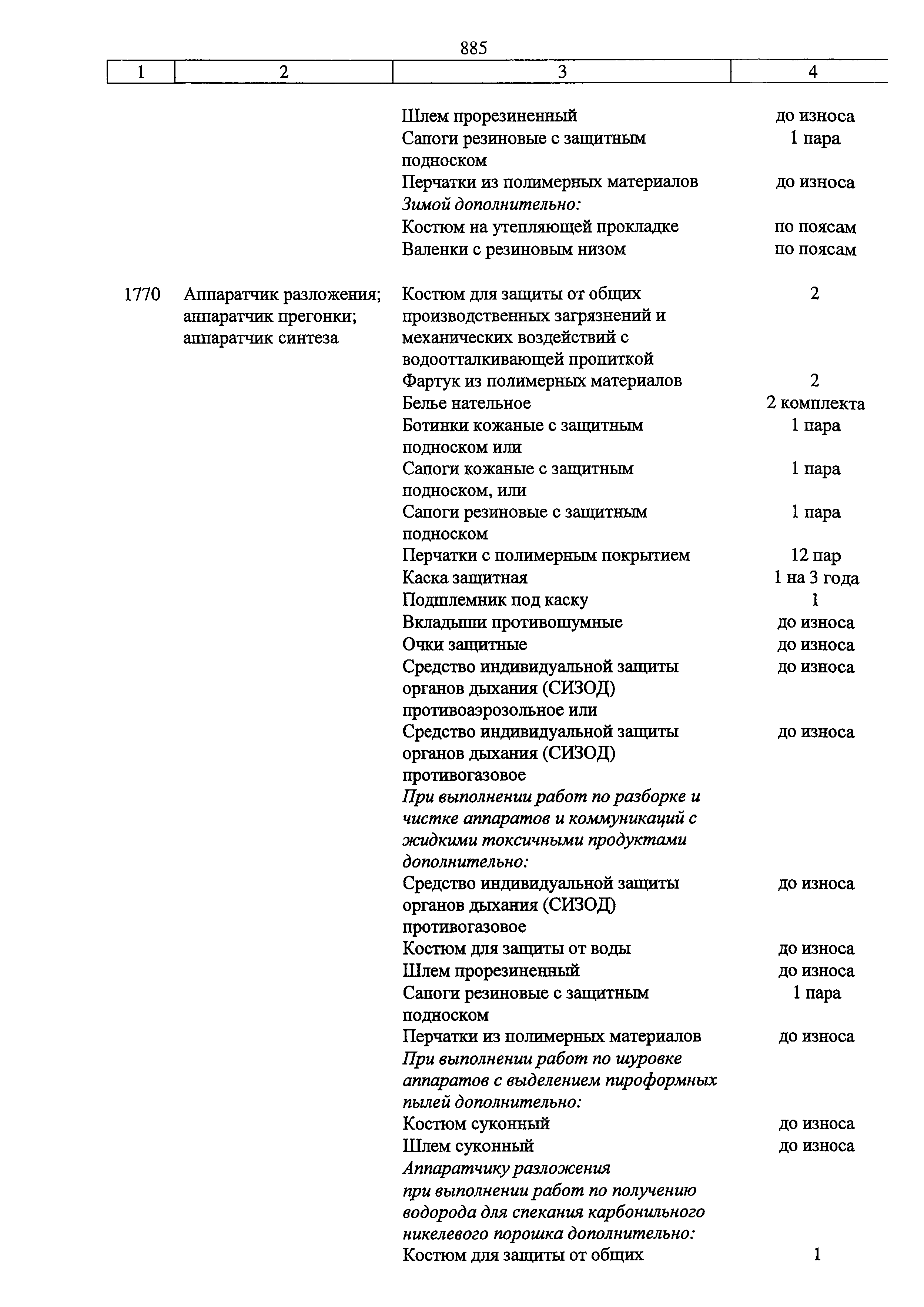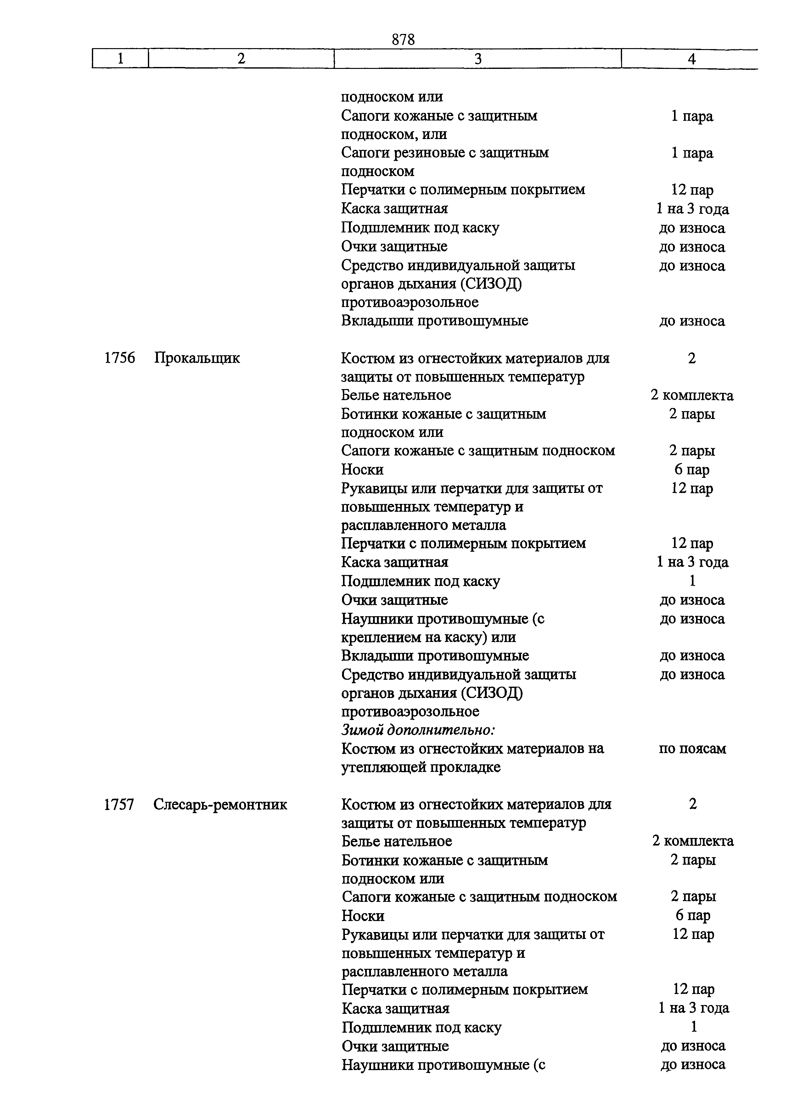 Типовые нормы бесплатной выдачи специальной одежды, специальной обуви и других средств индивидуальной защиты работникам горной и металлургической промышленности и металлургических производств других отраслей промышленности, занятым на работах с вредными и (или) опасными условиями труда, а также на работах, выполняемых в особых температурных условиях или связанных с загрязнением| Статус: | действует | | Название рус.: | Типовые нормы бесплатной выдачи специальной одежды, специальной обуви и других средств индивидуальной защиты работникам горной и металлургической промышленности и металлургических производств других отраслей промышленности, занятым на работах с вредными и (или) опасными условиями труда, а также на работах, выполняемых в особых температурных условиях или связанных с загрязнением | | Дата добавления в базу: | 01.02.2017 | | Дата актуализации: | 01.01.2021 | | Дата введения: | 14.02.2014 | | Область применения: | Нормы утверждаются локальными нормативными актами работодателя на основании результатов аттестации рабочих мест по условиям труда и могут быть включены в коллективный и (или) трудовой договор с указанием типовых норм, по сравнению с которыми улучшается обеспечение работников специальной одеждой, специальной обувью и другими средствами индивидуальной защиты. | | Оглавление: | I Горнодобывающая промышленность 1 Подземные горные работы (шахты) 2 Открытые горные работы и шахтная поверхность 3 Работа на гидравлических установках или с промывочными приборами 4 Дражные работы II Дробление, обогащение, брикетирование, обжиг, агломерация, извлечение металлов и сплавов III Черная металлургия 1 Коксохимическое производство 1.1 Углеподготовительные цеха 1.2 Углеобогатительные цеха 1.3 Производство каменноугольного кокса 1.4 Производство кристаллического нафталина, кумароновой смолы, смолоперерабатывающие цеха 1.5 Производство пиридиновых и фенольно-крезольных продуктов 1.6 Цеха улавливания химических продуктов и газовые цеха 1.7 Цеха ректификации сырого бензола 1.8 Цеха очистки коксового газа от сероводорода 1.9 Производство пекового кокса 1.10 Производство термоантрацита 2 Доменное производство 3 Сталеплавильное производство 3.1 Установки непрерывной разливки стали 4 Производство ферросплавов 4.1 Электролитическое производство 4.2 Производство электролитического хрома 4.3 Производство феррованадия 4.4 Подготовка шихты, обжиг руд и концентратов 4.5 Разливка и разделка ферросплавов 4.6 Обжиг извести 4.7 Общие профессии и должности ферросплавного производства 5 Прокатное производство 6 Производство труб (прокатка, сварка и волочение) 7 Колесопрокатное и бандажное производства 8 Валопрокатное производство 9 Производство рельсовых скреплений 10 Производство баллонов 11 Труболитейное производство 12 Производство метизов 12.1 Производство металлических канатов, сеток, пружин и пружинной ленты, щеток, цепей, колючей проволоки и других метизов 12.2 Волочение проволоки, калибровка и шлифовка металла 12.3 Изготовление волок 12.4 Холодноштамповочные и кузнечно-прессовые работы 12.5 Термическая обработка 12.6 Травление металла, защитные покрытия проволоки и извлечение железного купороса 12.7 Производство металлических электродов и порошковой проволоки 13 Производство огнеупоров 13.1 Огнеупоры 13.2 Карборундовые стержни 13.3 Высокоогнеупорные окислы 14 Ремонт 