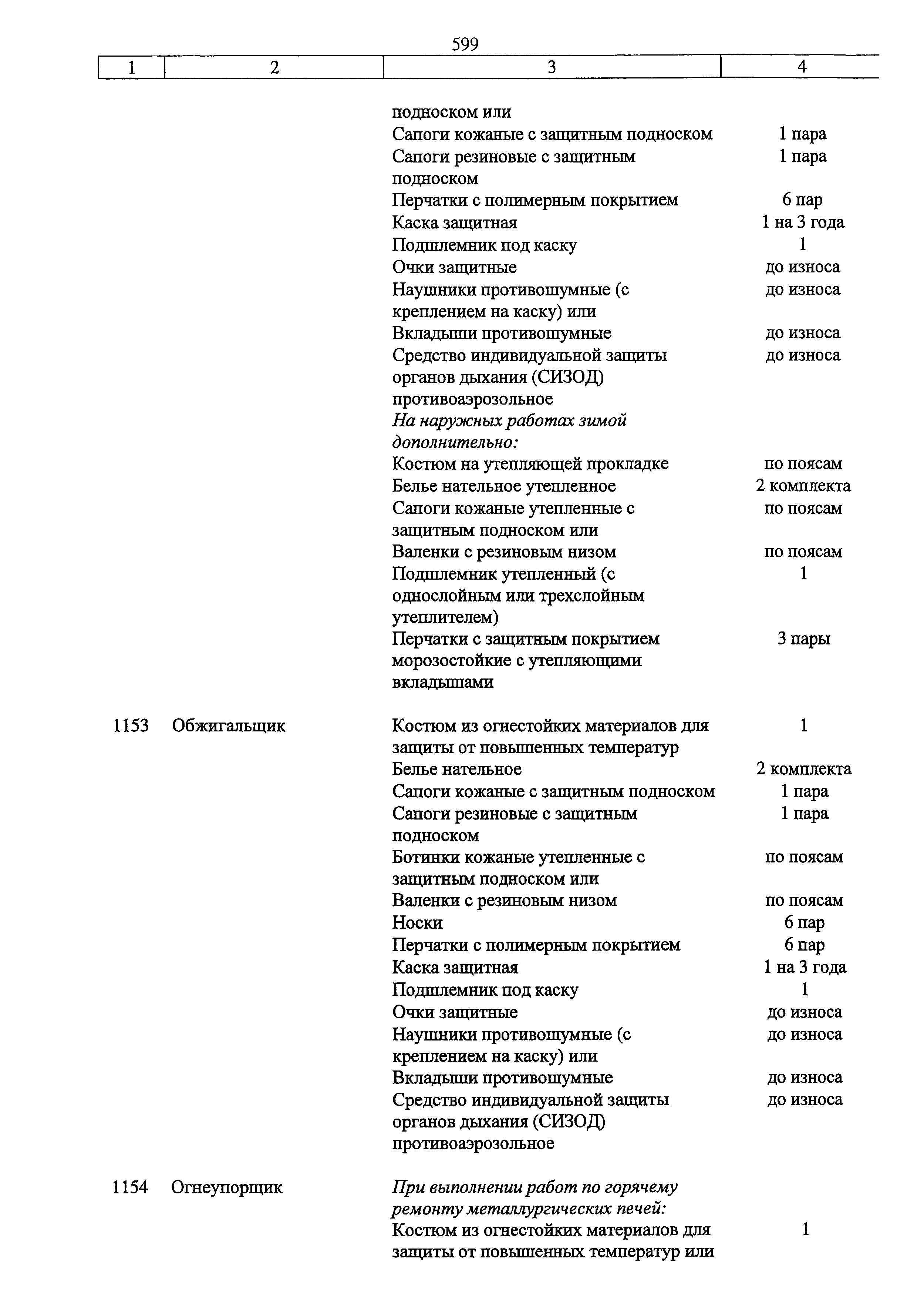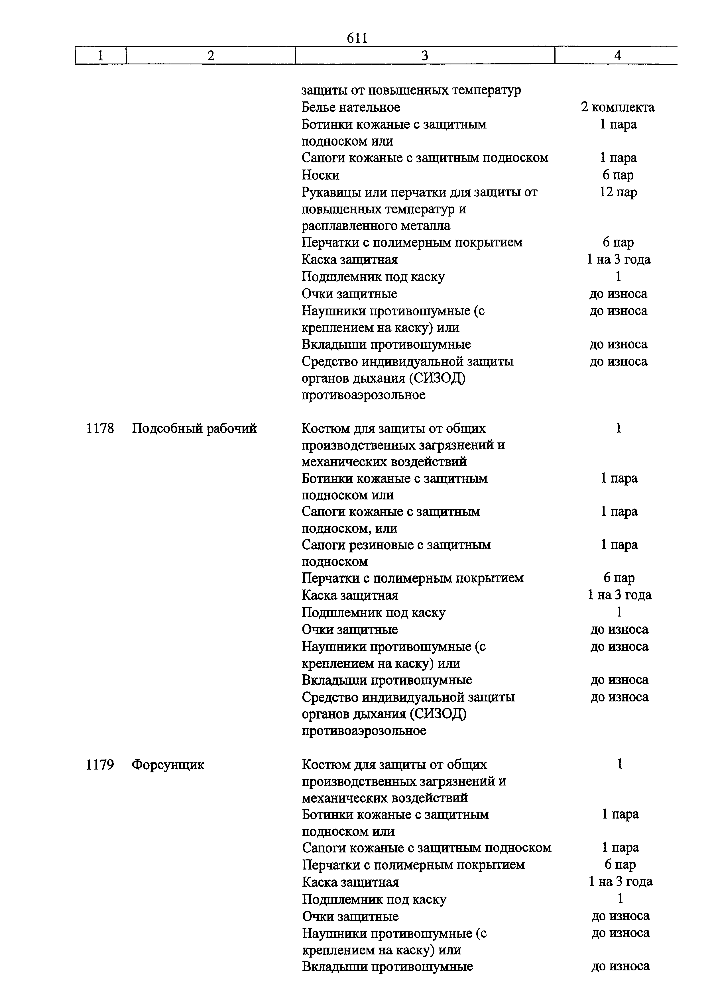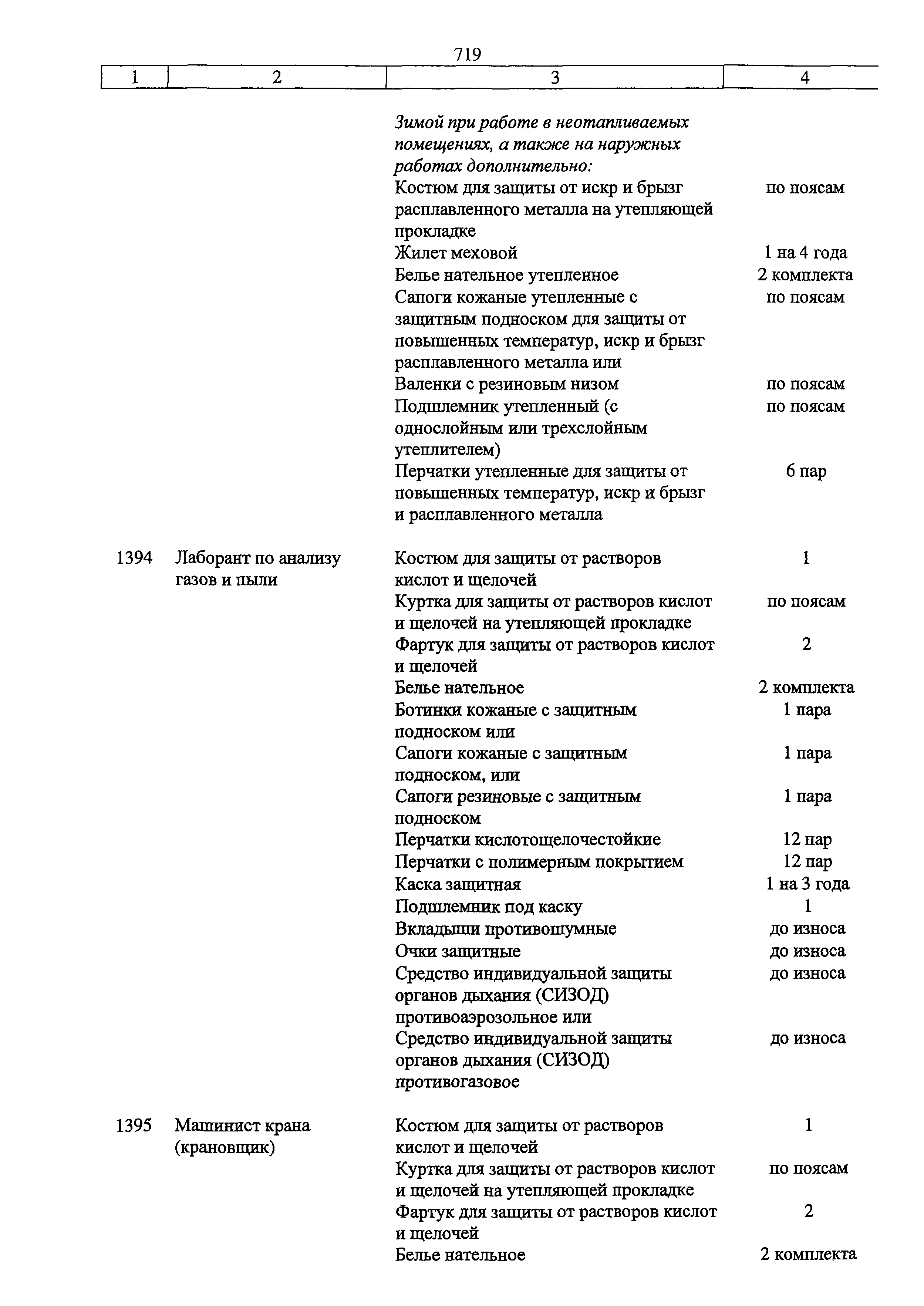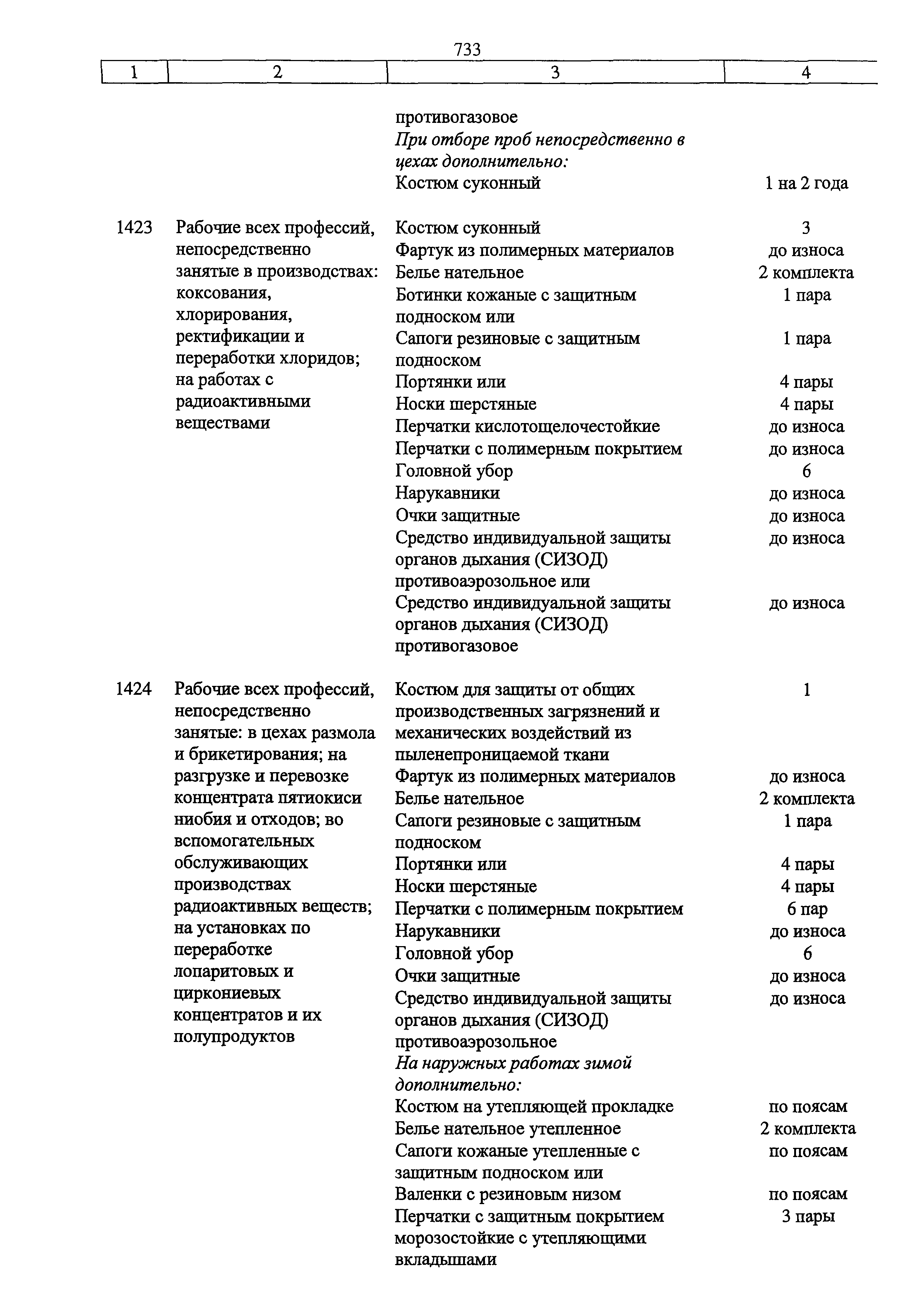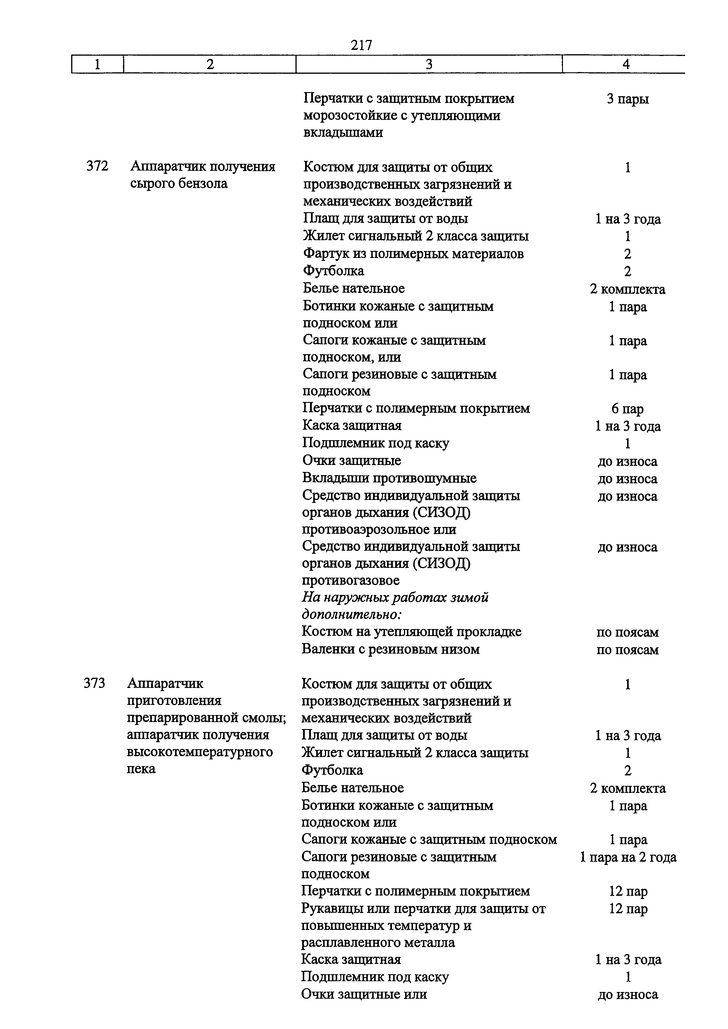 Типовые нормы бесплатной выдачи специальной одежды, специальной обуви и других средств индивидуальной защиты работникам горной и металлургической промышленности и металлургических производств других отраслей промышленности, занятым на работах с вредными и (или) опасными условиями труда, а также на работах, выполняемых в особых температурных условиях или связанных с загрязнением| Статус: | действует | | Название рус.: | Типовые нормы бесплатной выдачи специальной одежды, специальной обуви и других средств индивидуальной защиты работникам горной и металлургической промышленности и металлургических производств других отраслей промышленности, занятым на работах с вредными и (или) опасными условиями труда, а также на работах, выполняемых в особых температурных условиях или связанных с загрязнением | | Дата добавления в базу: | 01.02.2017 | | Дата актуализации: | 01.01.2021 | | Дата введения: | 14.02.2014 | | Область применения: | Нормы утверждаются локальными нормативными актами работодателя на основании результатов аттестации рабочих мест по условиям труда и могут быть включены в коллективный и (или) трудовой договор с указанием типовых норм, по сравнению с которыми улучшается обеспечение работников специальной одеждой, специальной обувью и другими средствами индивидуальной защиты. | | Оглавление: | I Горнодобывающая промышленность 1 Подземные горные работы (шахты) 2 Открытые горные работы и шахтная поверхность 3 Работа на гидравлических установках или с промывочными приборами 4 Дражные работы II Дробление, обогащение, брикетирование, обжиг, агломерация, извлечение металлов и сплавов III Черная металлургия 1 Коксохимическое производство 1.1 Углеподготовительные цеха 1.2 Углеобогатительные цеха 1.3 Производство каменноугольного кокса 1.4 Производство кристаллического нафталина, кумароновой смолы, смолоперерабатывающие цеха 1.5 Производство пиридиновых и фенольно-крезольных продуктов 1.6 Цеха улавливания химических продуктов и газовые цеха 1.7 Цеха ректификации сырого бензола 1.8 Цеха очистки коксового газа от сероводорода 1.9 Производство пекового кокса 1.10 Производство термоантрацита 2 Доменное производство 3 Сталеплавильное производство 3.1 Установки непрерывной разливки стали 4 Производство ферросплавов 4.1 Электролитическое производство 4.2 Производство электролитического хрома 4.3 Производство феррованадия 4.4 Подготовка шихты, обжиг руд и концентратов 4.5 Разливка и разделка ферросплавов 4.6 Обжиг извести 4.7 Общие профессии и должности ферросплавного производства 5 Прокатное производство 6 Производство труб (прокатка, сварка и волочение) 7 Колесопрокатное и бандажное производства 8 Валопрокатное производство 9 Производство рельсовых скреплений 10 Производство баллонов 11 Труболитейное производство 12 Производство метизов 12.1 Производство металлических канатов, сеток, пружин и пружинной ленты, щеток, цепей, колючей проволоки и других метизов 12.2 Волочение проволоки, калибровка и шлифовка металла 12.3 Изготовление волок 12.4 Холодноштамповочные и кузнечно-прессовые работы 12.5 Термическая обработка 12.6 Травление металла, защитные покрытия проволоки и извлечение железного купороса 12.7 Производство металлических электродов и порошковой проволоки 13 Производство огнеупоров 13.1 Огнеупоры 13.2 Карборундовые стержни 13.3 Высокоогнеупорные окислы 14 Ремонт 