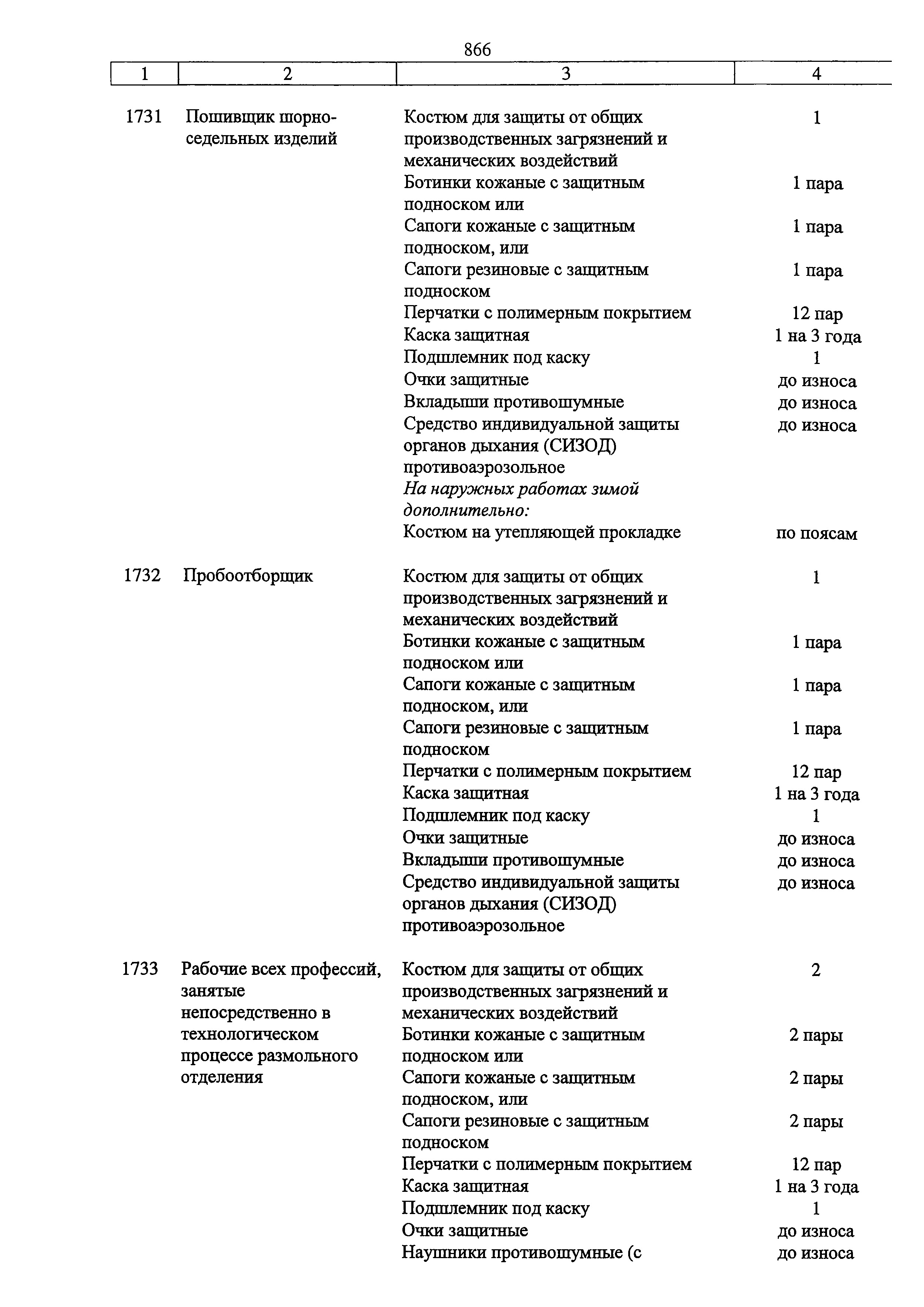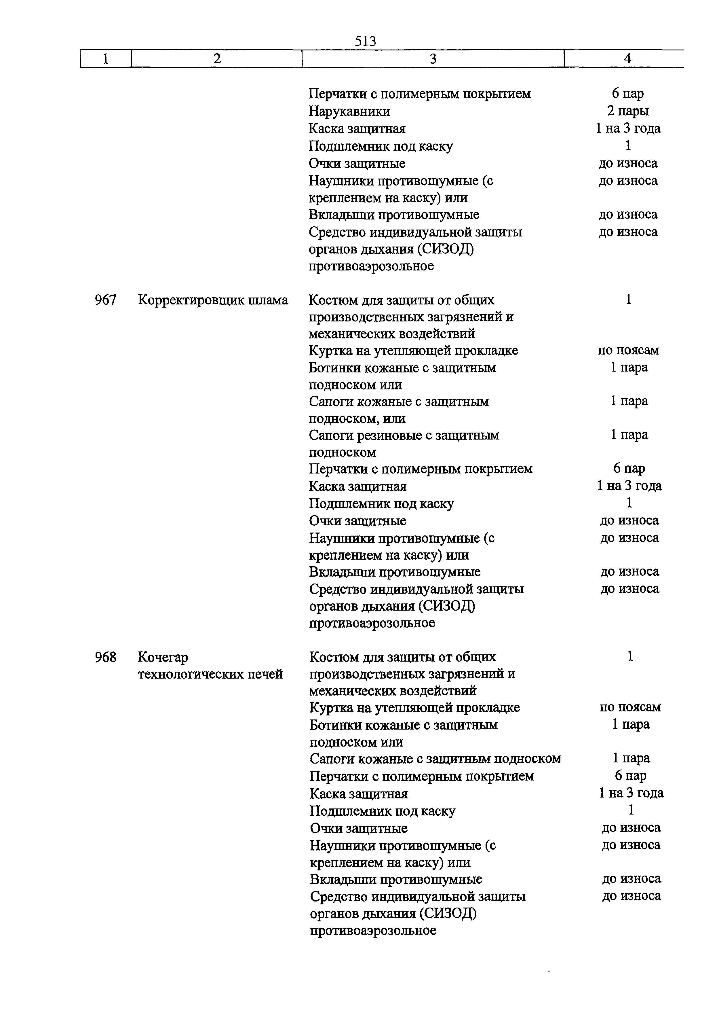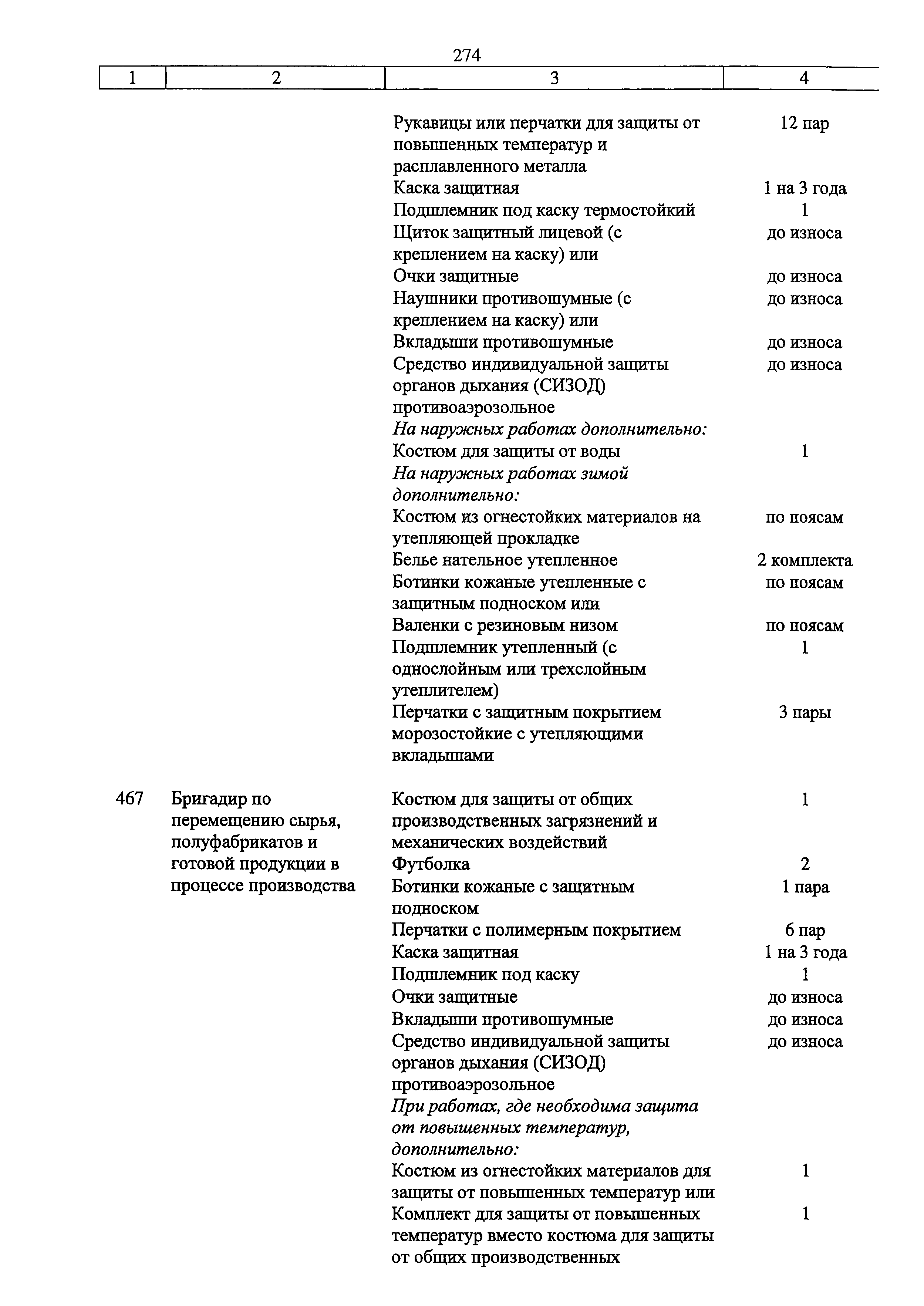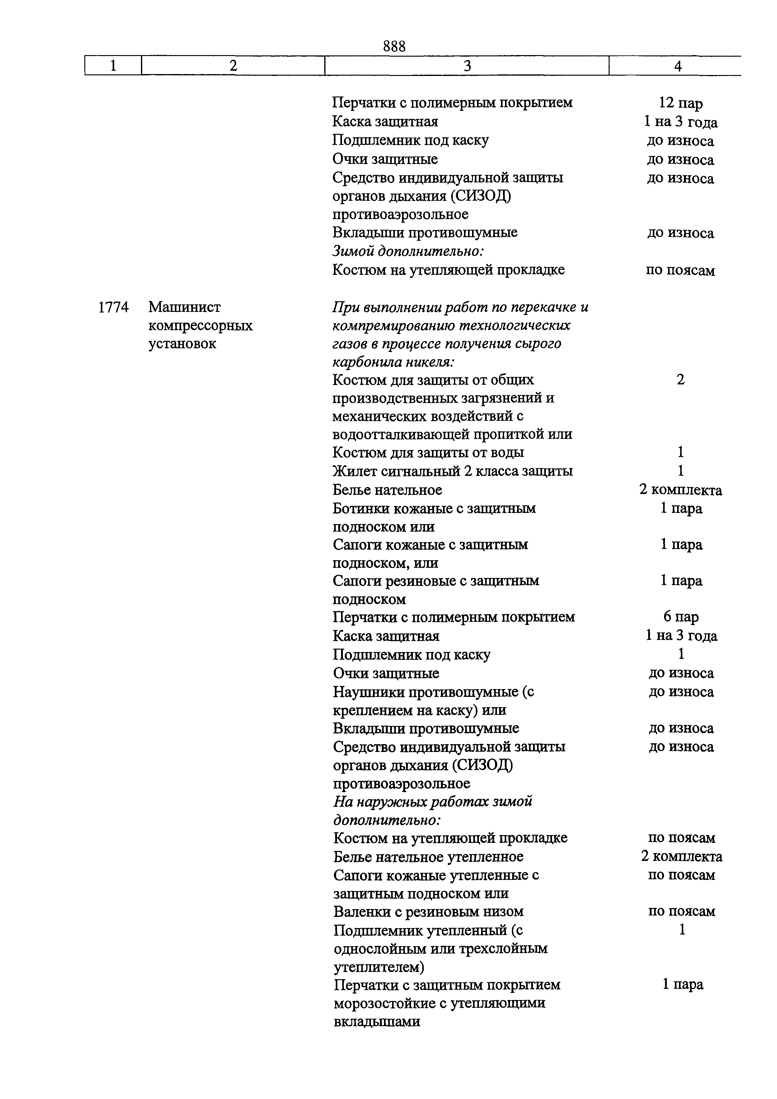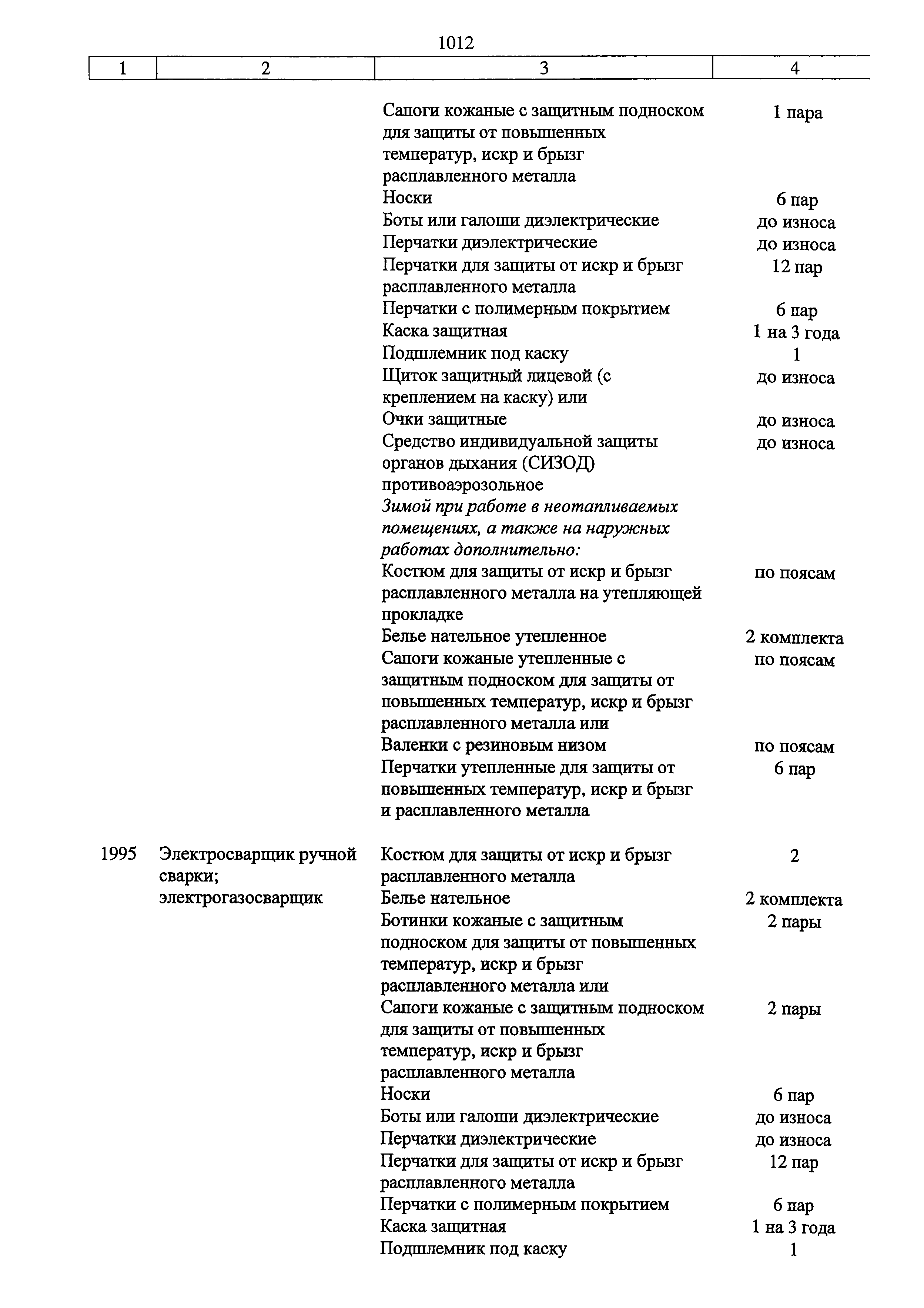 Типовые нормы бесплатной выдачи специальной одежды, специальной обуви и других средств индивидуальной защиты работникам горной и металлургической промышленности и металлургических производств других отраслей промышленности, занятым на работах с вредными и (или) опасными условиями труда, а также на работах, выполняемых в особых температурных условиях или связанных с загрязнением| Статус: | действует | | Название рус.: | Типовые нормы бесплатной выдачи специальной одежды, специальной обуви и других средств индивидуальной защиты работникам горной и металлургической промышленности и металлургических производств других отраслей промышленности, занятым на работах с вредными и (или) опасными условиями труда, а также на работах, выполняемых в особых температурных условиях или связанных с загрязнением | | Дата добавления в базу: | 01.02.2017 | | Дата актуализации: | 01.01.2021 | | Дата введения: | 14.02.2014 | | Область применения: | Нормы утверждаются локальными нормативными актами работодателя на основании результатов аттестации рабочих мест по условиям труда и могут быть включены в коллективный и (или) трудовой договор с указанием типовых норм, по сравнению с которыми улучшается обеспечение работников специальной одеждой, специальной обувью и другими средствами индивидуальной защиты. | | Оглавление: | I Горнодобывающая промышленность 1 Подземные горные работы (шахты) 2 Открытые горные работы и шахтная поверхность 3 Работа на гидравлических установках или с промывочными приборами 4 Дражные работы II Дробление, обогащение, брикетирование, обжиг, агломерация, извлечение металлов и сплавов III Черная металлургия 1 Коксохимическое производство 1.1 Углеподготовительные цеха 1.2 Углеобогатительные цеха 1.3 Производство каменноугольного кокса 1.4 Производство кристаллического нафталина, кумароновой смолы, смолоперерабатывающие цеха 1.5 Производство пиридиновых и фенольно-крезольных продуктов 1.6 Цеха улавливания химических продуктов и газовые цеха 1.7 Цеха ректификации сырого бензола 1.8 Цеха очистки коксового газа от сероводорода 1.9 Производство пекового кокса 1.10 Производство термоантрацита 2 Доменное производство 3 Сталеплавильное производство 3.1 Установки непрерывной разливки стали 4 Производство ферросплавов 4.1 Электролитическое производство 4.2 Производство электролитического хрома 4.3 Производство феррованадия 4.4 Подготовка шихты, обжиг руд и концентратов 4.5 Разливка и разделка ферросплавов 4.6 Обжиг извести 4.7 Общие профессии и должности ферросплавного производства 5 Прокатное производство 6 Производство труб (прокатка, сварка и волочение) 7 Колесопрокатное и бандажное производства 8 Валопрокатное производство 9 Производство рельсовых скреплений 10 Производство баллонов 11 Труболитейное производство 12 Производство метизов 12.1 Производство металлических канатов, сеток, пружин и пружинной ленты, щеток, цепей, колючей проволоки и других метизов 12.2 Волочение проволоки, калибровка и шлифовка металла 12.3 Изготовление волок 12.4 Холодноштамповочные и кузнечно-прессовые работы 12.5 Термическая обработка 12.6 Травление металла, защитные покрытия проволоки и извлечение железного купороса 12.7 Производство металлических электродов и порошковой проволоки 13 Производство огнеупоров 13.1 Огнеупоры 13.2 Карборундовые стержни 13.3 Высокоогнеупорные окислы 14 Ремонт 