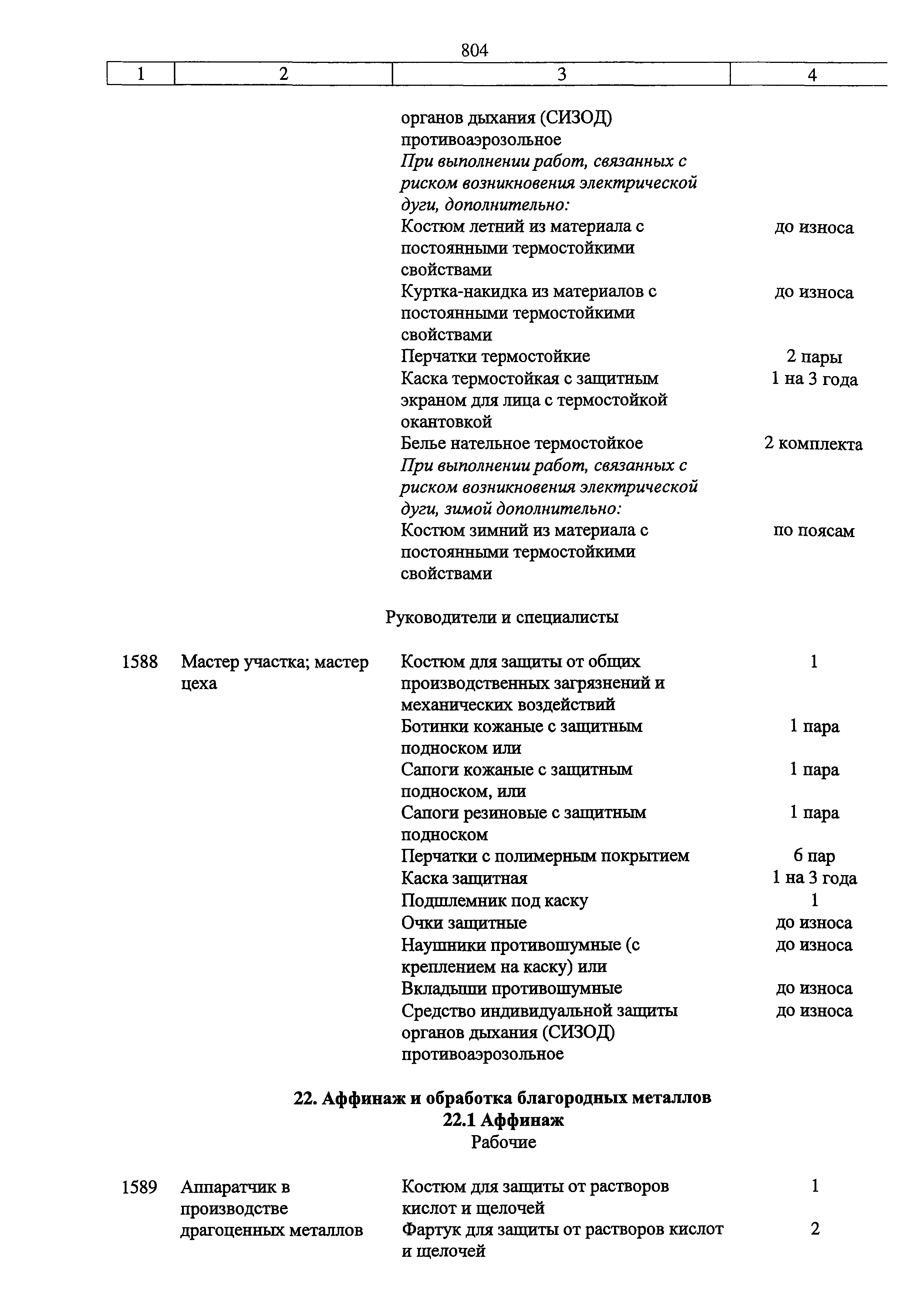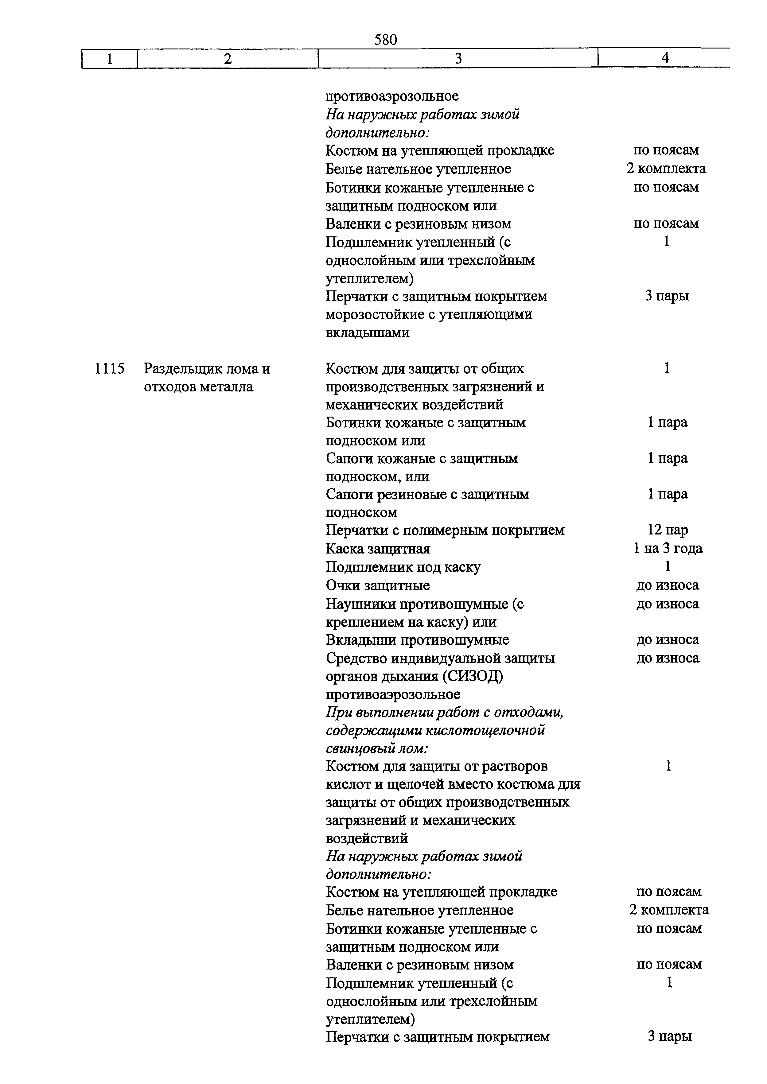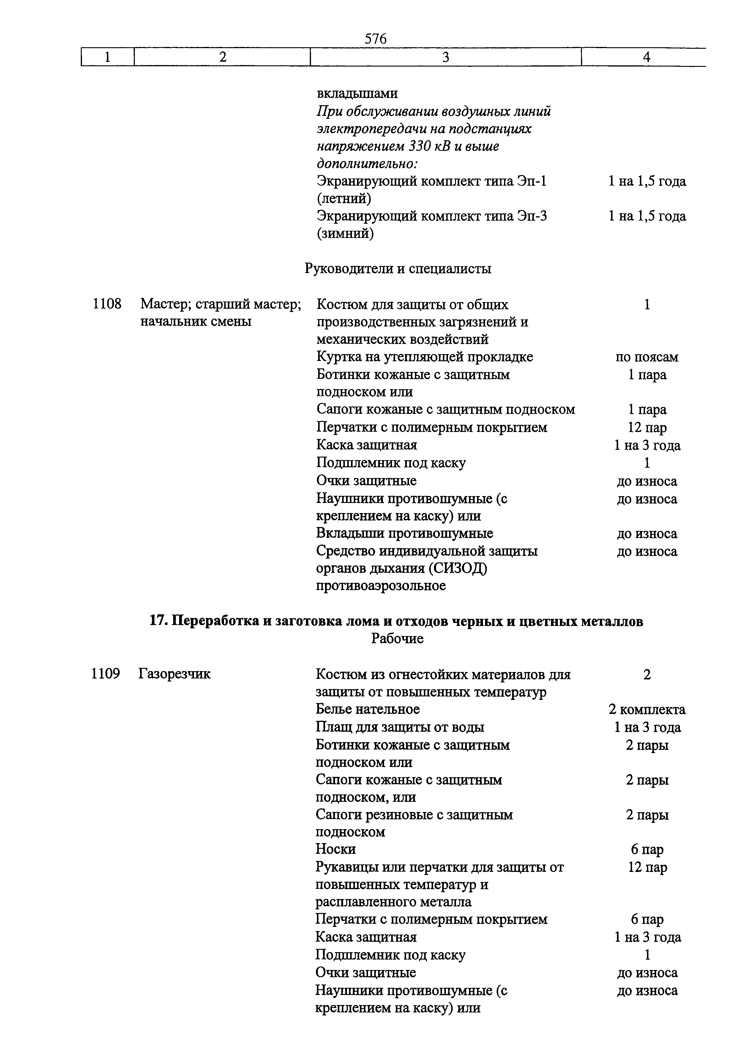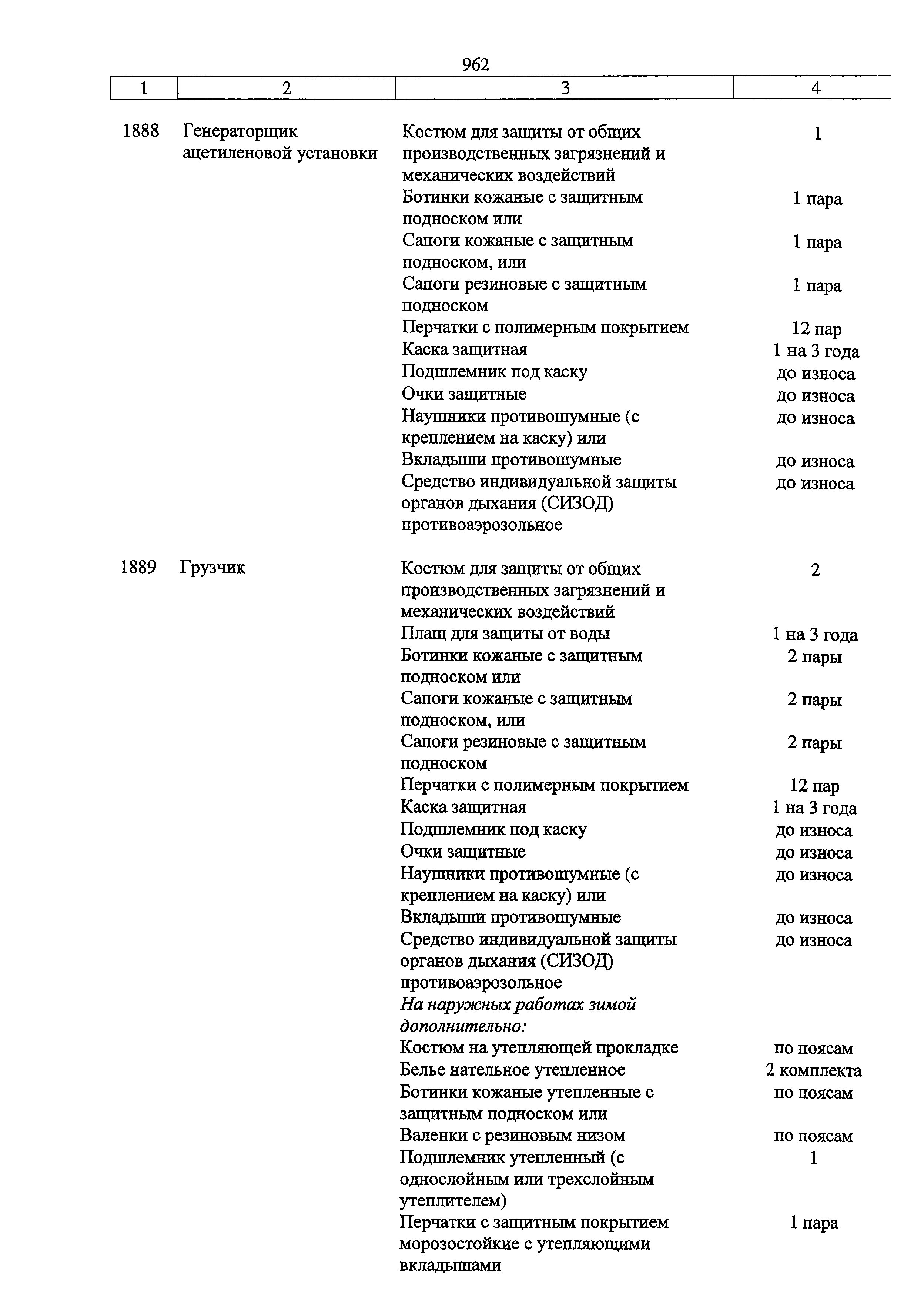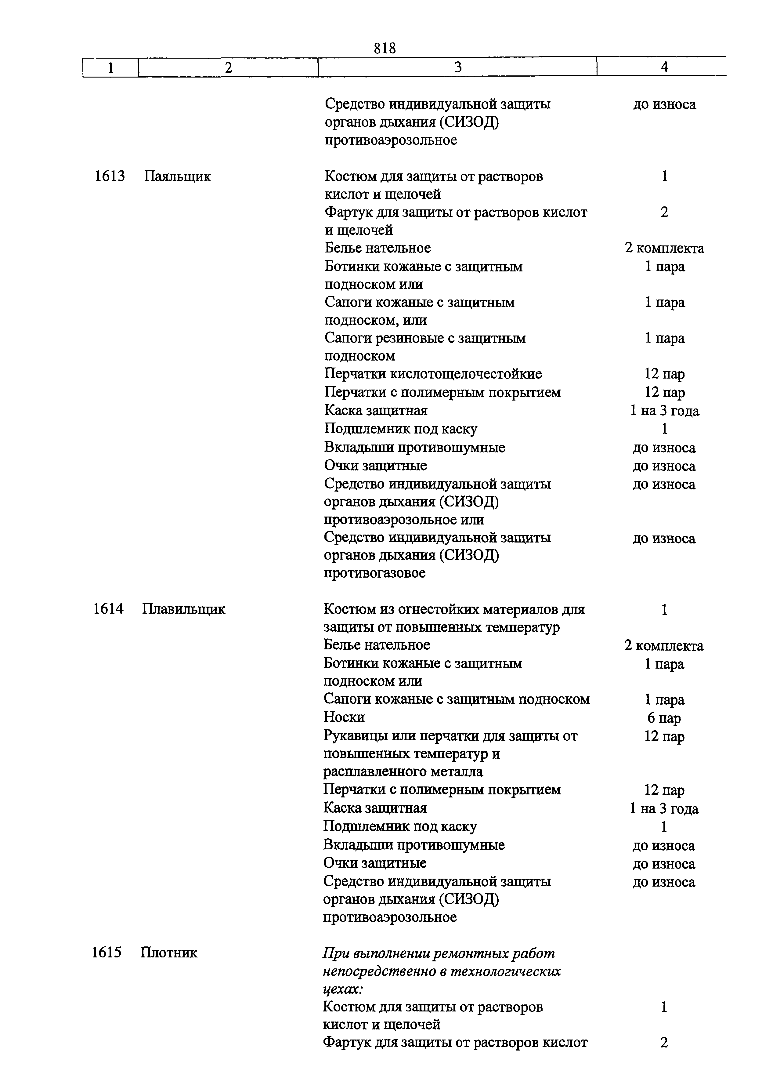 Типовые нормы бесплатной выдачи специальной одежды, специальной обуви и других средств индивидуальной защиты работникам горной и металлургической промышленности и металлургических производств других отраслей промышленности, занятым на работах с вредными и (или) опасными условиями труда, а также на работах, выполняемых в особых температурных условиях или связанных с загрязнением| Статус: | действует | | Название рус.: | Типовые нормы бесплатной выдачи специальной одежды, специальной обуви и других средств индивидуальной защиты работникам горной и металлургической промышленности и металлургических производств других отраслей промышленности, занятым на работах с вредными и (или) опасными условиями труда, а также на работах, выполняемых в особых температурных условиях или связанных с загрязнением | | Дата добавления в базу: | 01.02.2017 | | Дата актуализации: | 01.01.2021 | | Дата введения: | 14.02.2014 | | Область применения: | Нормы утверждаются локальными нормативными актами работодателя на основании результатов аттестации рабочих мест по условиям труда и могут быть включены в коллективный и (или) трудовой договор с указанием типовых норм, по сравнению с которыми улучшается обеспечение работников специальной одеждой, специальной обувью и другими средствами индивидуальной защиты. | | Оглавление: | I Горнодобывающая промышленность 1 Подземные горные работы (шахты) 2 Открытые горные работы и шахтная поверхность 3 Работа на гидравлических установках или с промывочными приборами 4 Дражные работы II Дробление, обогащение, брикетирование, обжиг, агломерация, извлечение металлов и сплавов III Черная металлургия 1 Коксохимическое производство 1.1 Углеподготовительные цеха 1.2 Углеобогатительные цеха 1.3 Производство каменноугольного кокса 1.4 Производство кристаллического нафталина, кумароновой смолы, смолоперерабатывающие цеха 1.5 Производство пиридиновых и фенольно-крезольных продуктов 1.6 Цеха улавливания химических продуктов и газовые цеха 1.7 Цеха ректификации сырого бензола 1.8 Цеха очистки коксового газа от сероводорода 1.9 Производство пекового кокса 1.10 Производство термоантрацита 2 Доменное производство 3 Сталеплавильное производство 3.1 Установки непрерывной разливки стали 4 Производство ферросплавов 4.1 Электролитическое производство 4.2 Производство электролитического хрома 4.3 Производство феррованадия 4.4 Подготовка шихты, обжиг руд и концентратов 4.5 Разливка и разделка ферросплавов 4.6 Обжиг извести 4.7 Общие профессии и должности ферросплавного производства 5 Прокатное производство 6 Производство труб (прокатка, сварка и волочение) 7 Колесопрокатное и бандажное производства 8 Валопрокатное производство 9 Производство рельсовых скреплений 10 Производство баллонов 11 Труболитейное производство 12 Производство метизов 12.1 Производство металлических канатов, сеток, пружин и пружинной ленты, щеток, цепей, колючей проволоки и других метизов 12.2 Волочение проволоки, калибровка и шлифовка металла 12.3 Изготовление волок 12.4 Холодноштамповочные и кузнечно-прессовые работы 12.5 Термическая обработка 12.6 Травление металла, защитные покрытия проволоки и извлечение железного купороса 12.7 Производство металлических электродов и порошковой проволоки 13 Производство огнеупоров 13.1 Огнеупоры 13.2 Карборундовые стержни 13.3 Высокоогнеупорные окислы 14 Ремонт 