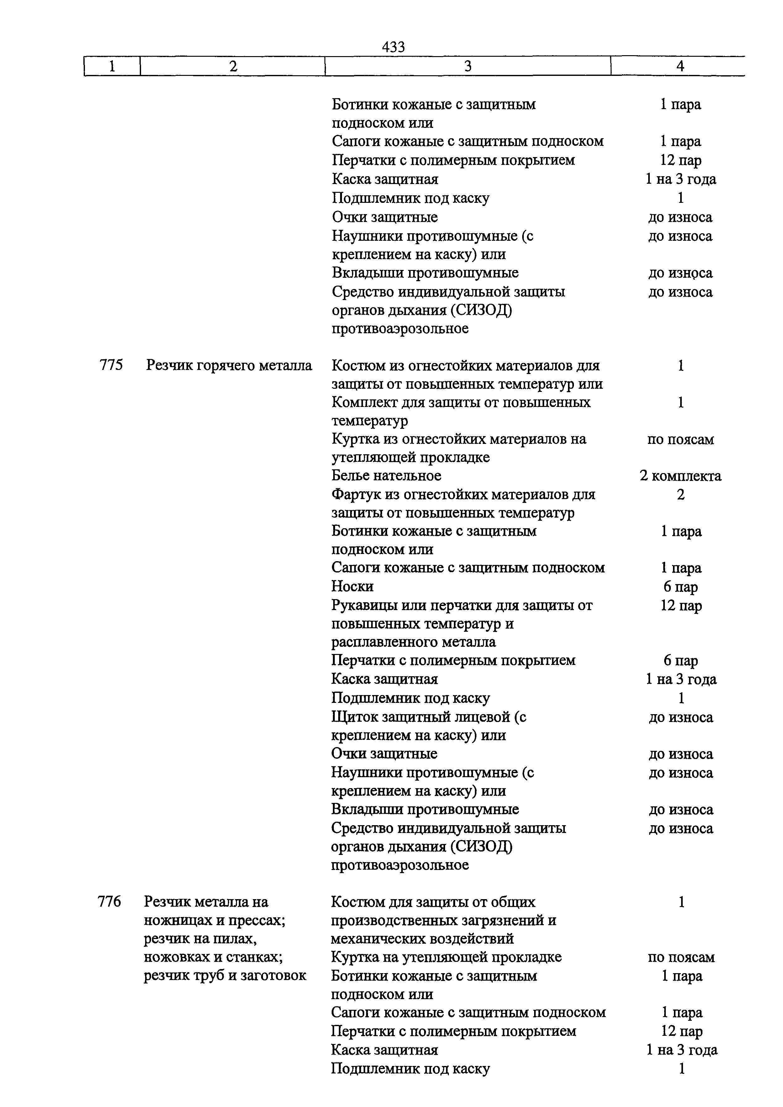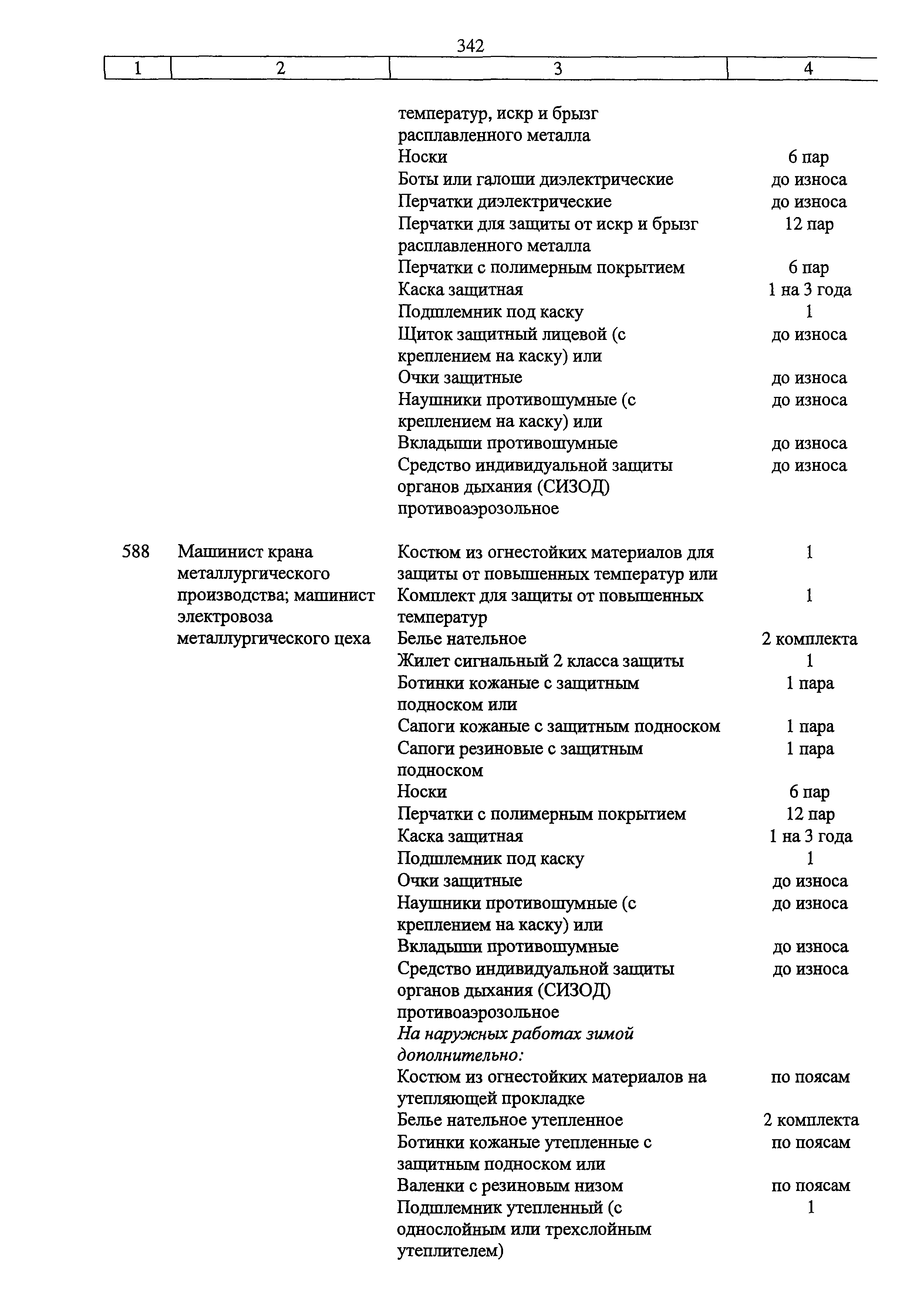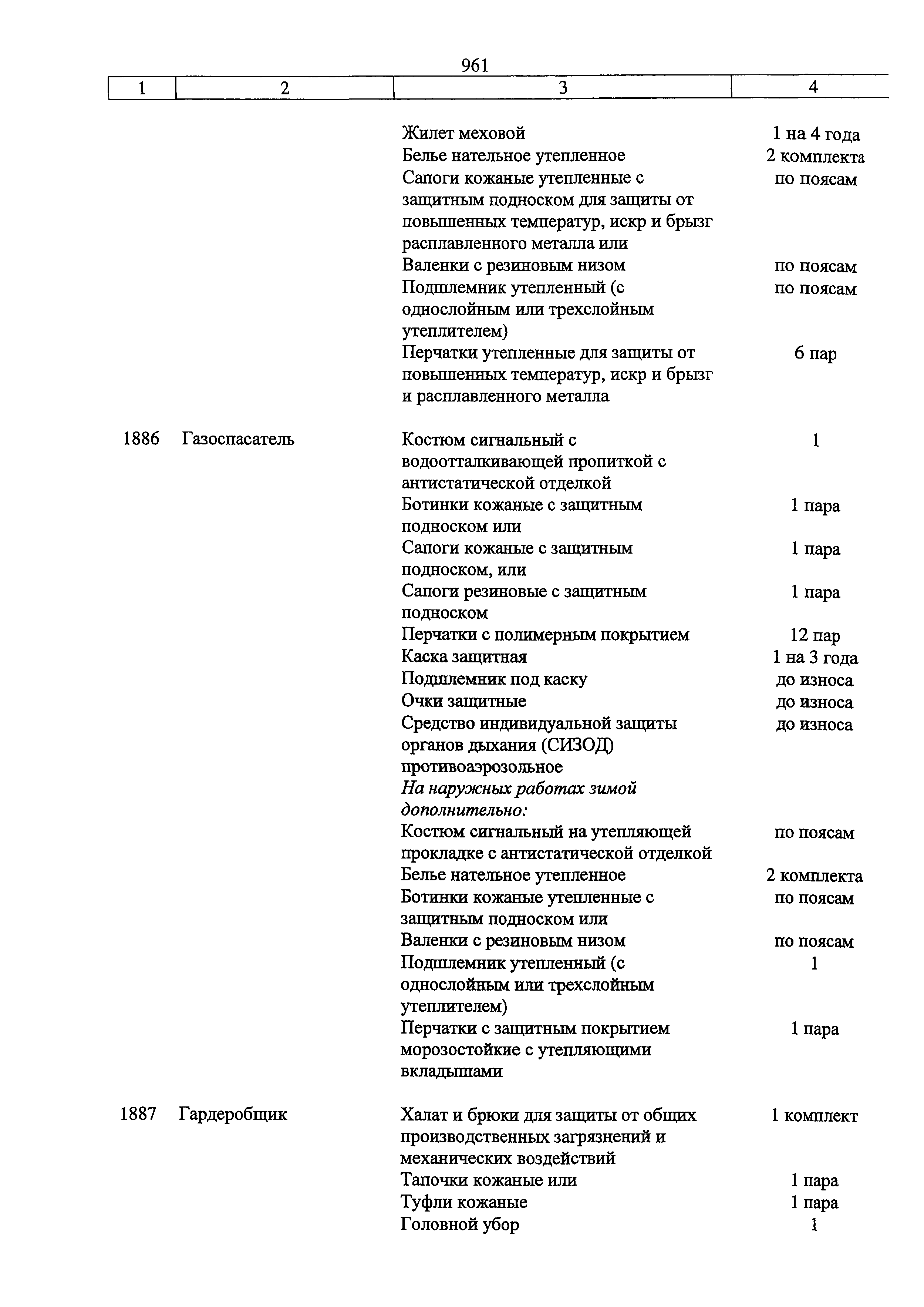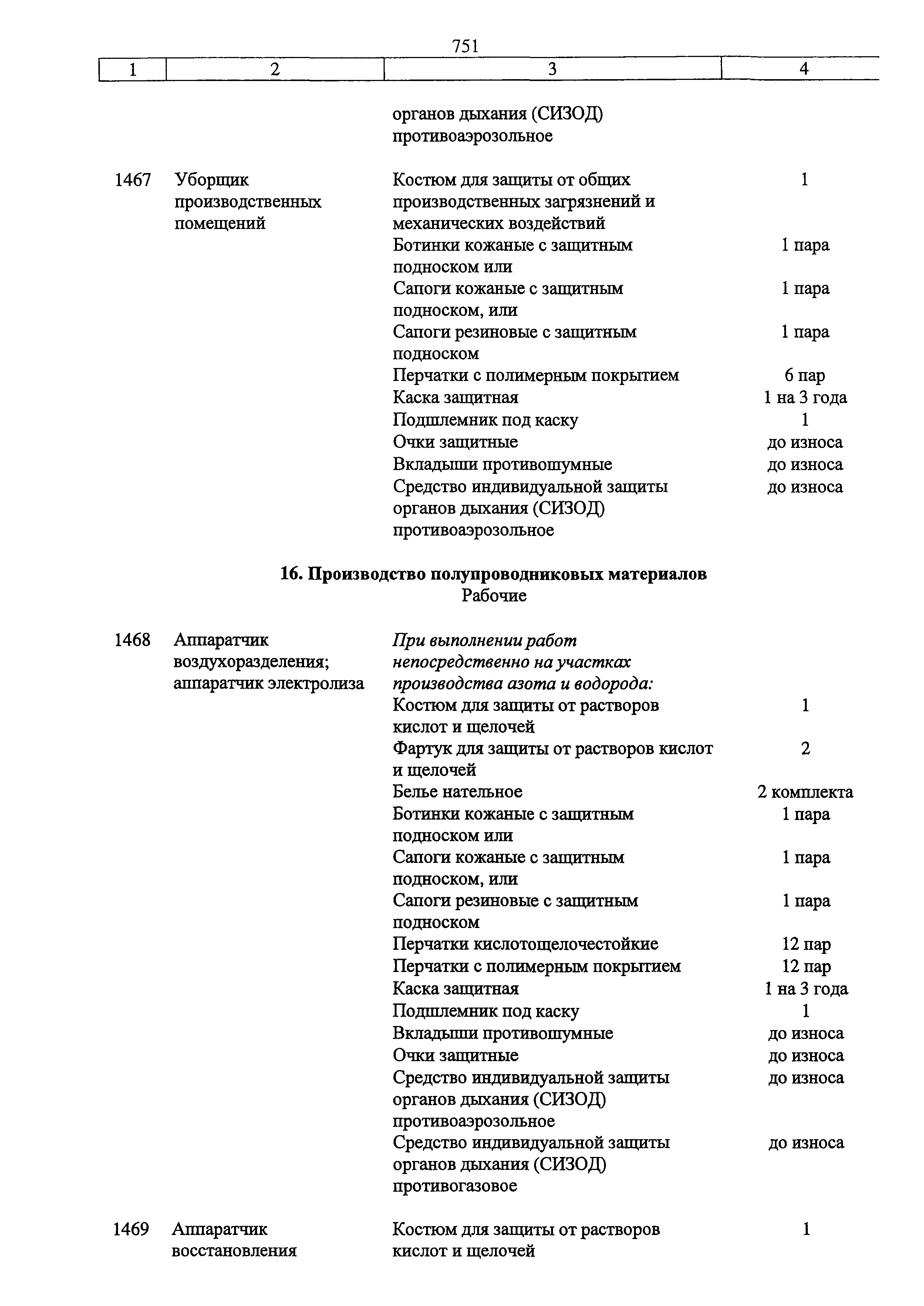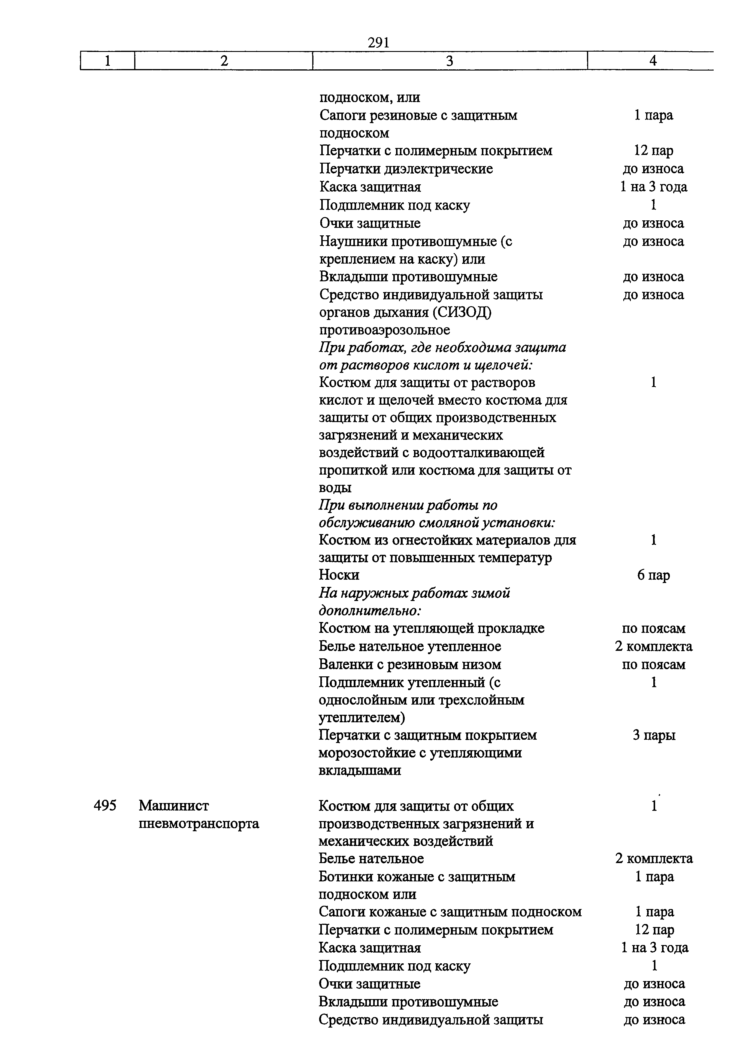 Типовые нормы бесплатной выдачи специальной одежды, специальной обуви и других средств индивидуальной защиты работникам горной и металлургической промышленности и металлургических производств других отраслей промышленности, занятым на работах с вредными и (или) опасными условиями труда, а также на работах, выполняемых в особых температурных условиях или связанных с загрязнением| Статус: | действует | | Название рус.: | Типовые нормы бесплатной выдачи специальной одежды, специальной обуви и других средств индивидуальной защиты работникам горной и металлургической промышленности и металлургических производств других отраслей промышленности, занятым на работах с вредными и (или) опасными условиями труда, а также на работах, выполняемых в особых температурных условиях или связанных с загрязнением | | Дата добавления в базу: | 01.02.2017 | | Дата актуализации: | 01.01.2021 | | Дата введения: | 14.02.2014 | | Область применения: | Нормы утверждаются локальными нормативными актами работодателя на основании результатов аттестации рабочих мест по условиям труда и могут быть включены в коллективный и (или) трудовой договор с указанием типовых норм, по сравнению с которыми улучшается обеспечение работников специальной одеждой, специальной обувью и другими средствами индивидуальной защиты. | | Оглавление: | I Горнодобывающая промышленность 1 Подземные горные работы (шахты) 2 Открытые горные работы и шахтная поверхность 3 Работа на гидравлических установках или с промывочными приборами 4 Дражные работы II Дробление, обогащение, брикетирование, обжиг, агломерация, извлечение металлов и сплавов III Черная металлургия 1 Коксохимическое производство 1.1 Углеподготовительные цеха 1.2 Углеобогатительные цеха 1.3 Производство каменноугольного кокса 1.4 Производство кристаллического нафталина, кумароновой смолы, смолоперерабатывающие цеха 1.5 Производство пиридиновых и фенольно-крезольных продуктов 1.6 Цеха улавливания химических продуктов и газовые цеха 1.7 Цеха ректификации сырого бензола 1.8 Цеха очистки коксового газа от сероводорода 1.9 Производство пекового кокса 1.10 Производство термоантрацита 2 Доменное производство 3 Сталеплавильное производство 3.1 Установки непрерывной разливки стали 4 Производство ферросплавов 4.1 Электролитическое производство 4.2 Производство электролитического хрома 4.3 Производство феррованадия 4.4 Подготовка шихты, обжиг руд и концентратов 4.5 Разливка и разделка ферросплавов 4.6 Обжиг извести 4.7 Общие профессии и должности ферросплавного производства 5 Прокатное производство 6 Производство труб (прокатка, сварка и волочение) 7 Колесопрокатное и бандажное производства 8 Валопрокатное производство 9 Производство рельсовых скреплений 10 Производство баллонов 11 Труболитейное производство 12 Производство метизов 12.1 Производство металлических канатов, сеток, пружин и пружинной ленты, щеток, цепей, колючей проволоки и других метизов 12.2 Волочение проволоки, калибровка и шлифовка металла 12.3 Изготовление волок 12.4 Холодноштамповочные и кузнечно-прессовые работы 12.5 Термическая обработка 12.6 Травление металла, защитные покрытия проволоки и извлечение железного купороса 12.7 Производство металлических электродов и порошковой проволоки 13 Производство огнеупоров 13.1 Огнеупоры 13.2 Карборундовые стержни 13.3 Высокоогнеупорные окислы 14 Ремонт 