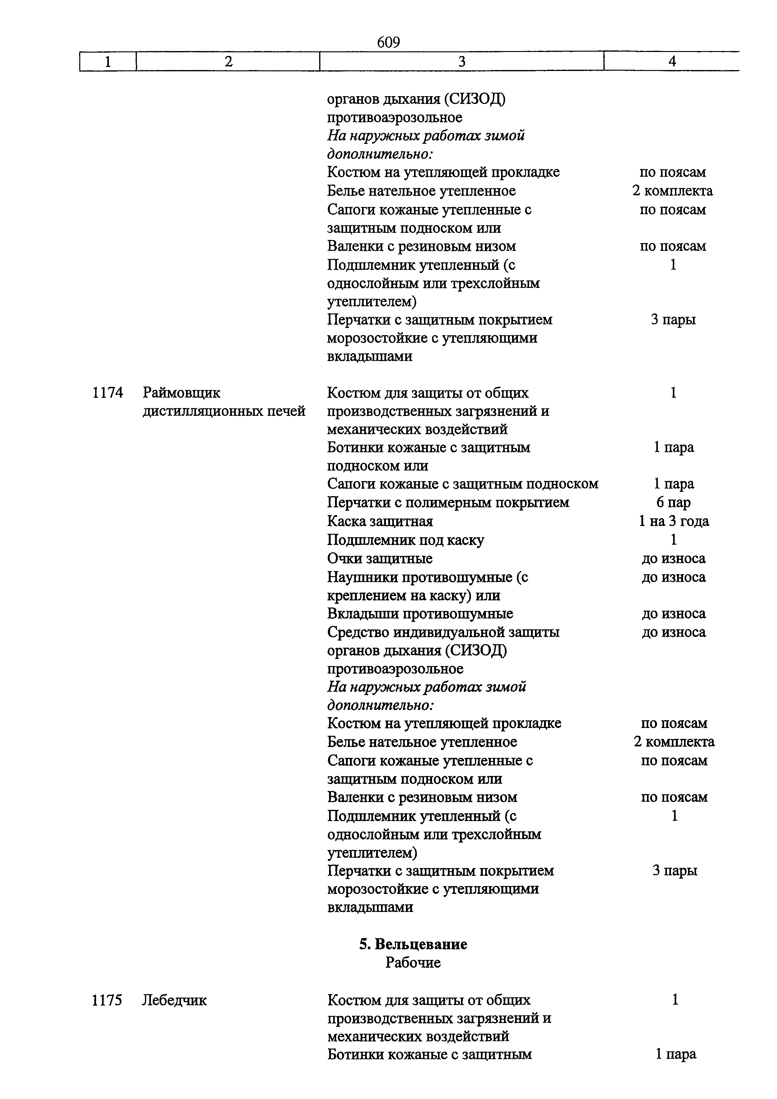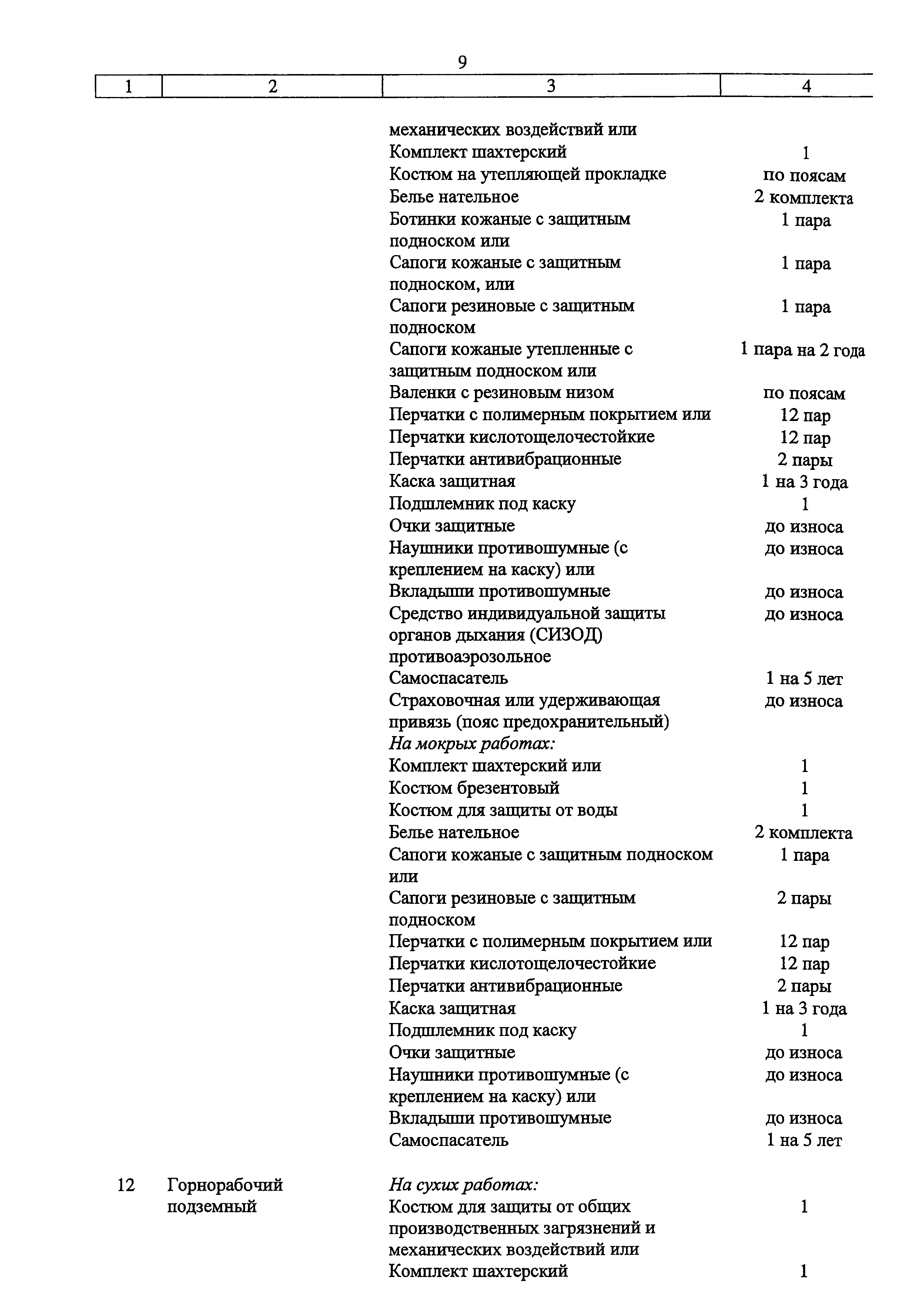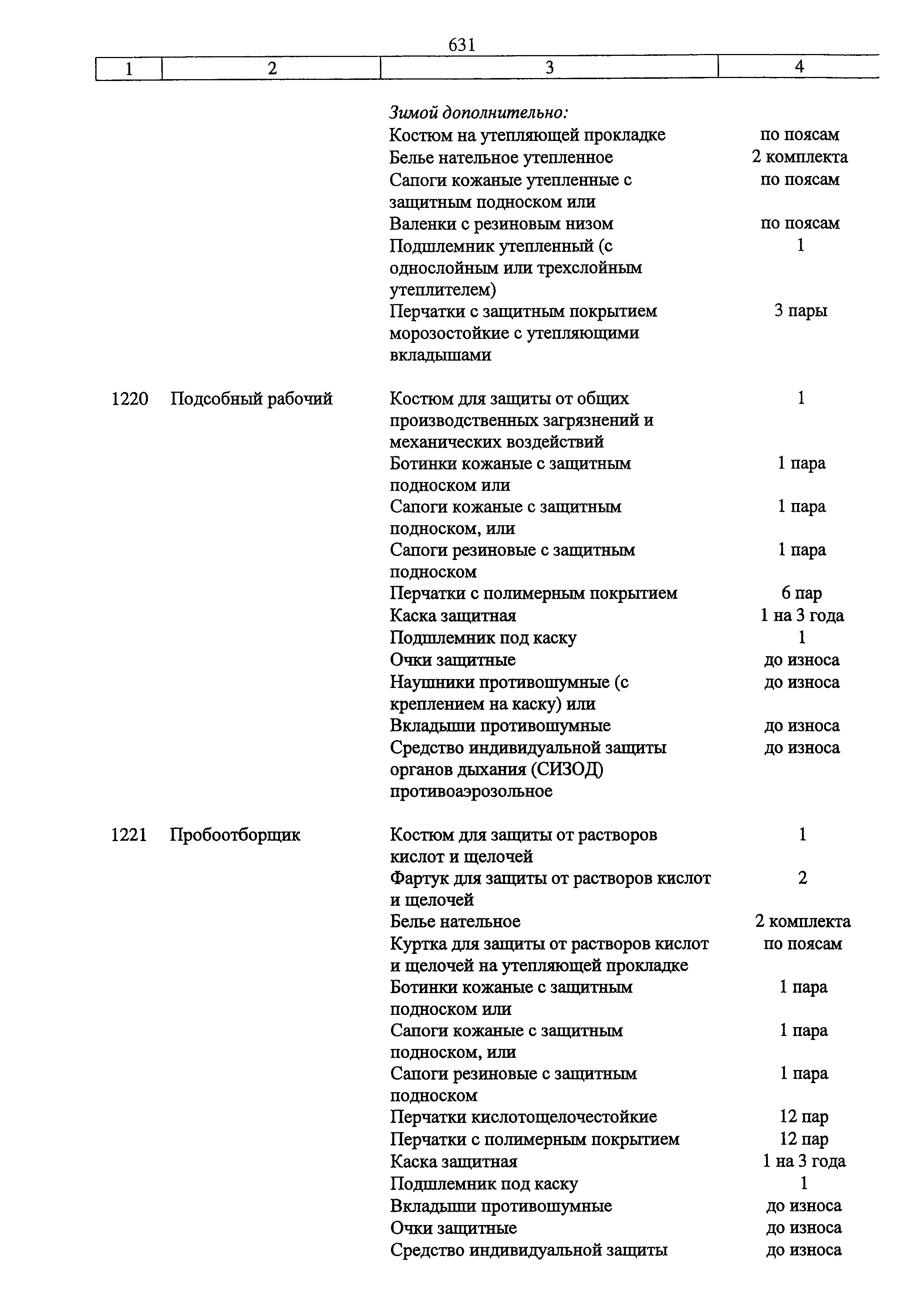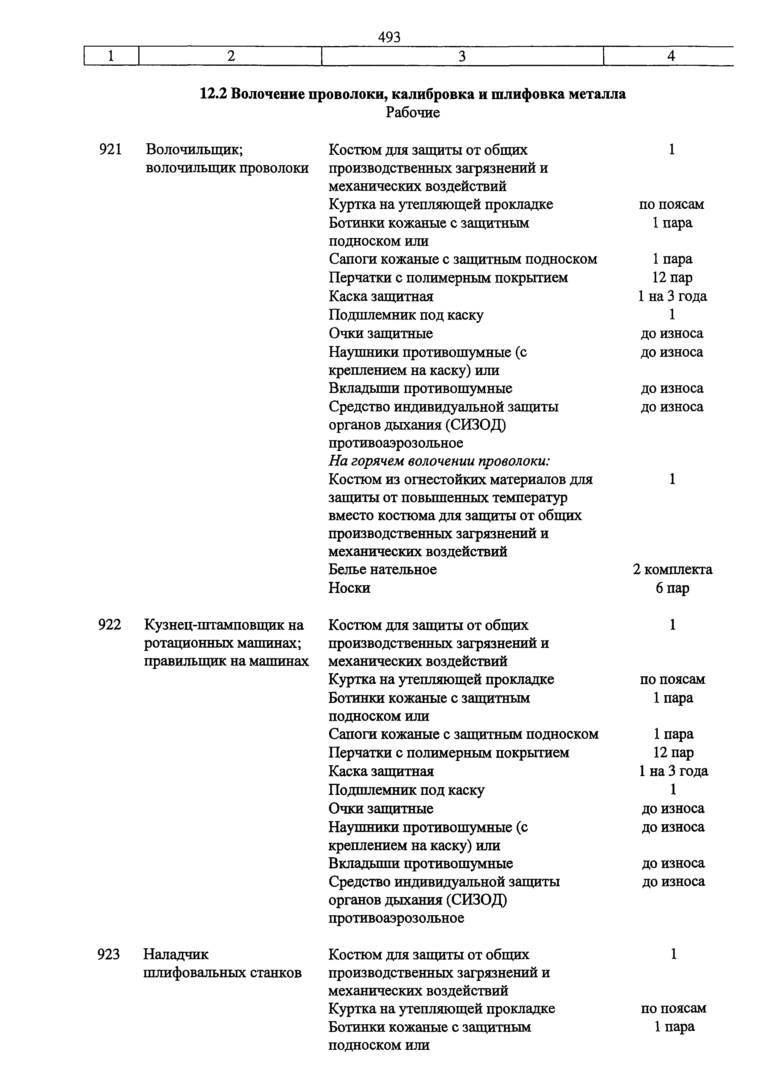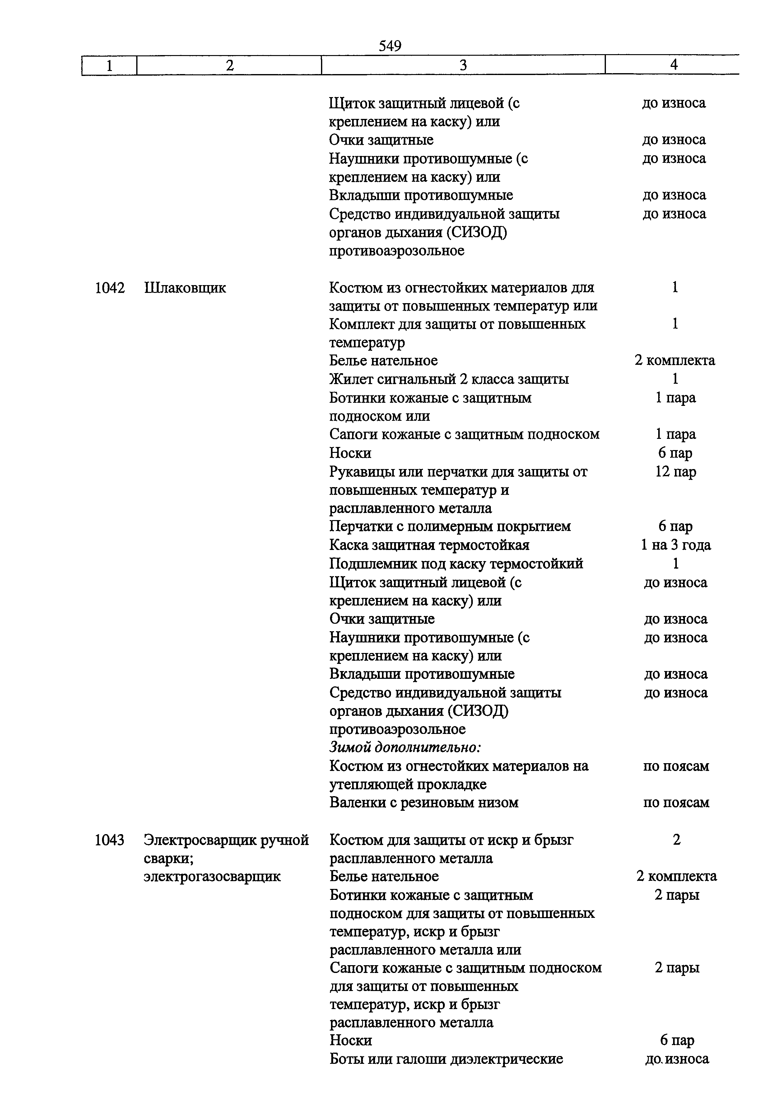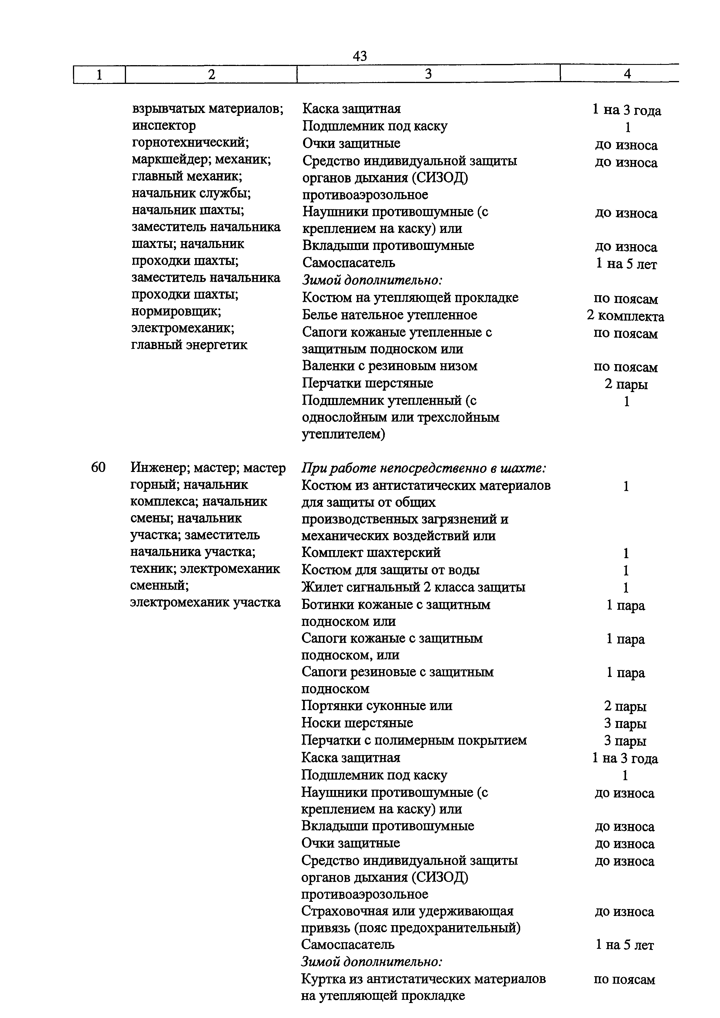 Типовые нормы бесплатной выдачи специальной одежды, специальной обуви и других средств индивидуальной защиты работникам горной и металлургической промышленности и металлургических производств других отраслей промышленности, занятым на работах с вредными и (или) опасными условиями труда, а также на работах, выполняемых в особых температурных условиях или связанных с загрязнением| Статус: | действует | | Название рус.: | Типовые нормы бесплатной выдачи специальной одежды, специальной обуви и других средств индивидуальной защиты работникам горной и металлургической промышленности и металлургических производств других отраслей промышленности, занятым на работах с вредными и (или) опасными условиями труда, а также на работах, выполняемых в особых температурных условиях или связанных с загрязнением | | Дата добавления в базу: | 01.02.2017 | | Дата актуализации: | 01.01.2021 | | Дата введения: | 14.02.2014 | | Область применения: | Нормы утверждаются локальными нормативными актами работодателя на основании результатов аттестации рабочих мест по условиям труда и могут быть включены в коллективный и (или) трудовой договор с указанием типовых норм, по сравнению с которыми улучшается обеспечение работников специальной одеждой, специальной обувью и другими средствами индивидуальной защиты. | | Оглавление: | I Горнодобывающая промышленность 1 Подземные горные работы (шахты) 2 Открытые горные работы и шахтная поверхность 3 Работа на гидравлических установках или с промывочными приборами 4 Дражные работы II Дробление, обогащение, брикетирование, обжиг, агломерация, извлечение металлов и сплавов III Черная металлургия 1 Коксохимическое производство 1.1 Углеподготовительные цеха 1.2 Углеобогатительные цеха 1.3 Производство каменноугольного кокса 1.4 Производство кристаллического нафталина, кумароновой смолы, смолоперерабатывающие цеха 1.5 Производство пиридиновых и фенольно-крезольных продуктов 1.6 Цеха улавливания химических продуктов и газовые цеха 1.7 Цеха ректификации сырого бензола 1.8 Цеха очистки коксового газа от сероводорода 1.9 Производство пекового кокса 1.10 Производство термоантрацита 2 Доменное производство 3 Сталеплавильное производство 3.1 Установки непрерывной разливки стали 4 Производство ферросплавов 4.1 Электролитическое производство 4.2 Производство электролитического хрома 4.3 Производство феррованадия 4.4 Подготовка шихты, обжиг руд и концентратов 4.5 Разливка и разделка ферросплавов 4.6 Обжиг извести 4.7 Общие профессии и должности ферросплавного производства 5 Прокатное производство 6 Производство труб (прокатка, сварка и волочение) 7 Колесопрокатное и бандажное производства 8 Валопрокатное производство 9 Производство рельсовых скреплений 10 Производство баллонов 11 Труболитейное производство 12 Производство метизов 12.1 Производство металлических канатов, сеток, пружин и пружинной ленты, щеток, цепей, колючей проволоки и других метизов 12.2 Волочение проволоки, калибровка и шлифовка металла 12.3 Изготовление волок 12.4 Холодноштамповочные и кузнечно-прессовые работы 12.5 Термическая обработка 12.6 Травление металла, защитные покрытия проволоки и извлечение железного купороса 12.7 Производство металлических электродов и порошковой проволоки 13 Производство огнеупоров 13.1 Огнеупоры 13.2 Карборундовые стержни 13.3 Высокоогнеупорные окислы 14 Ремонт 