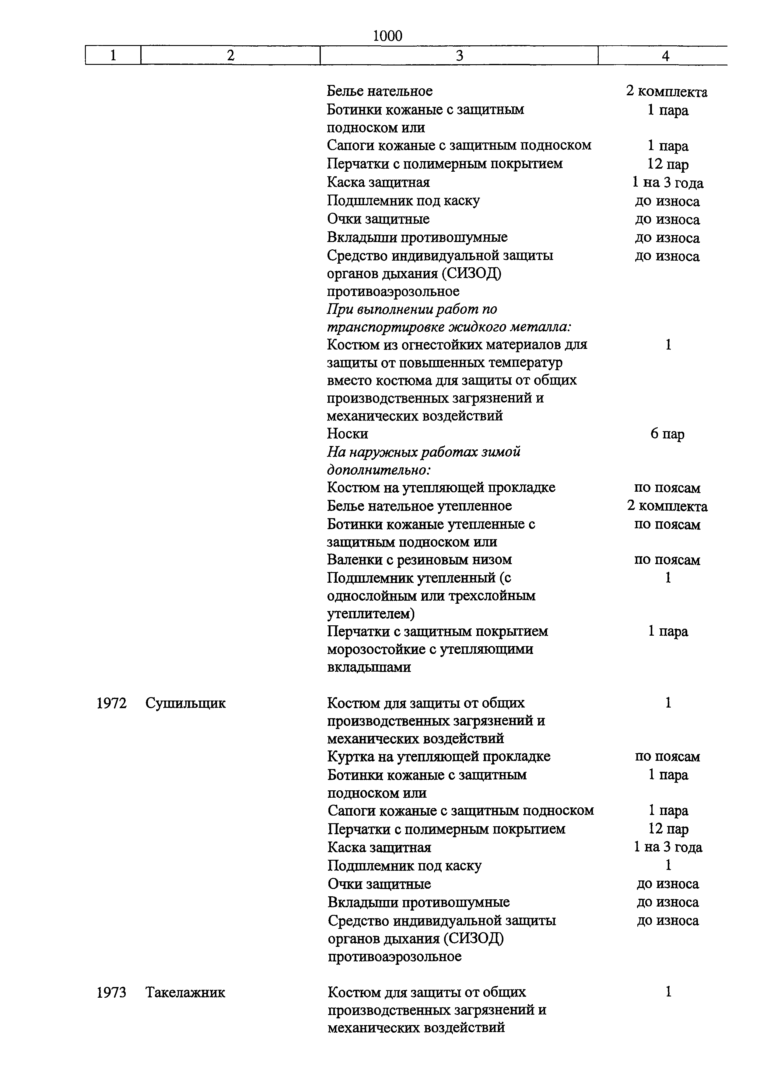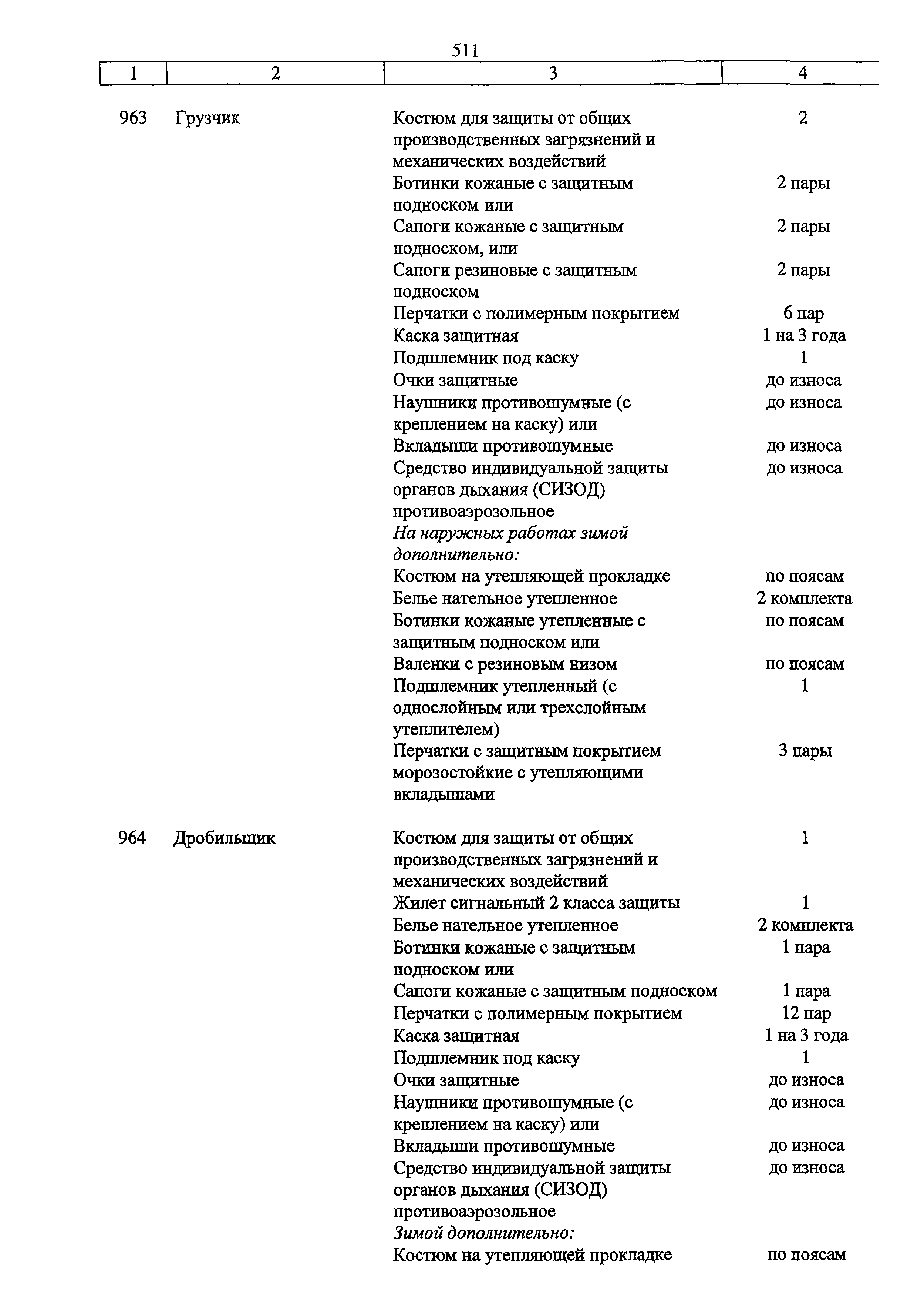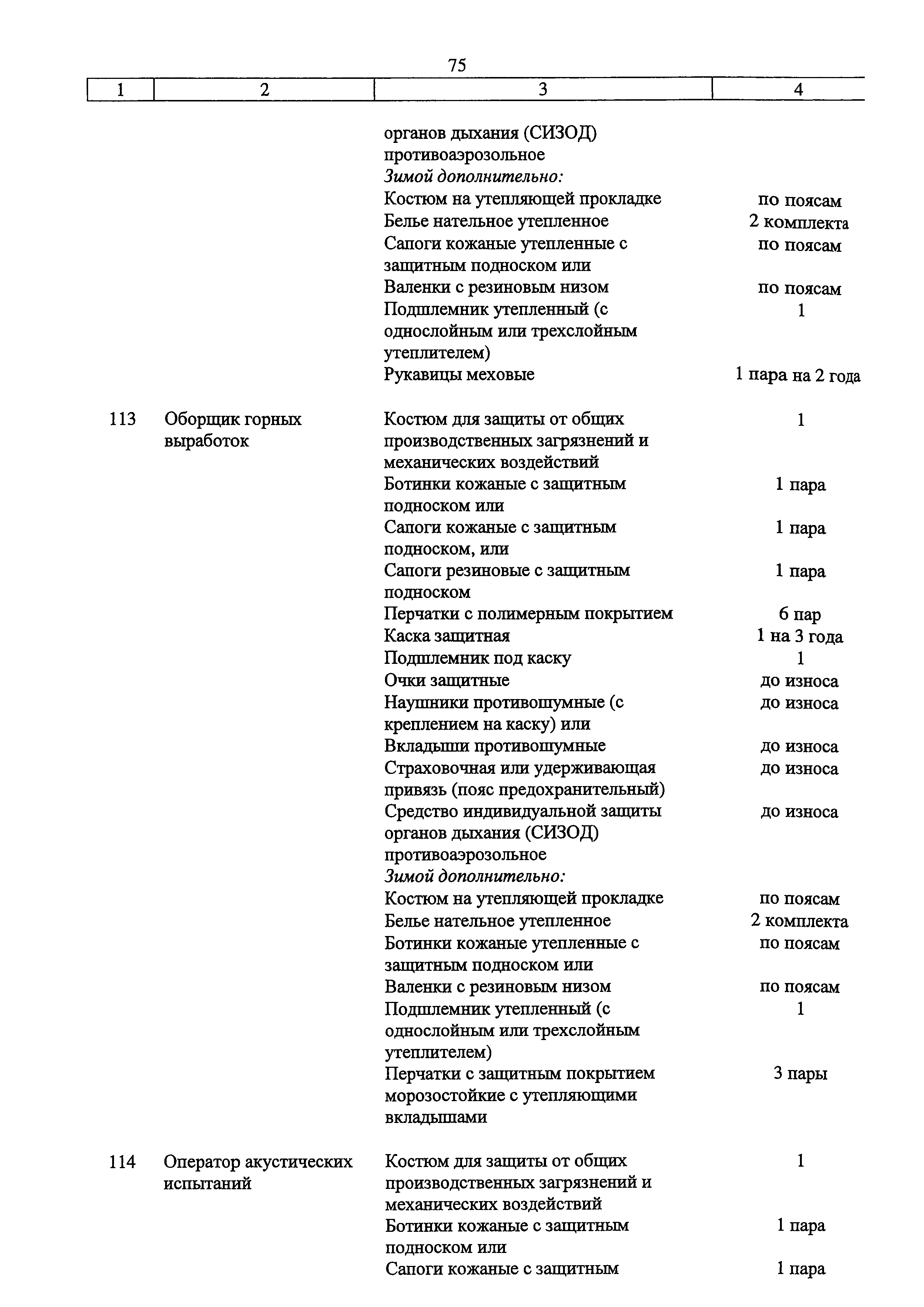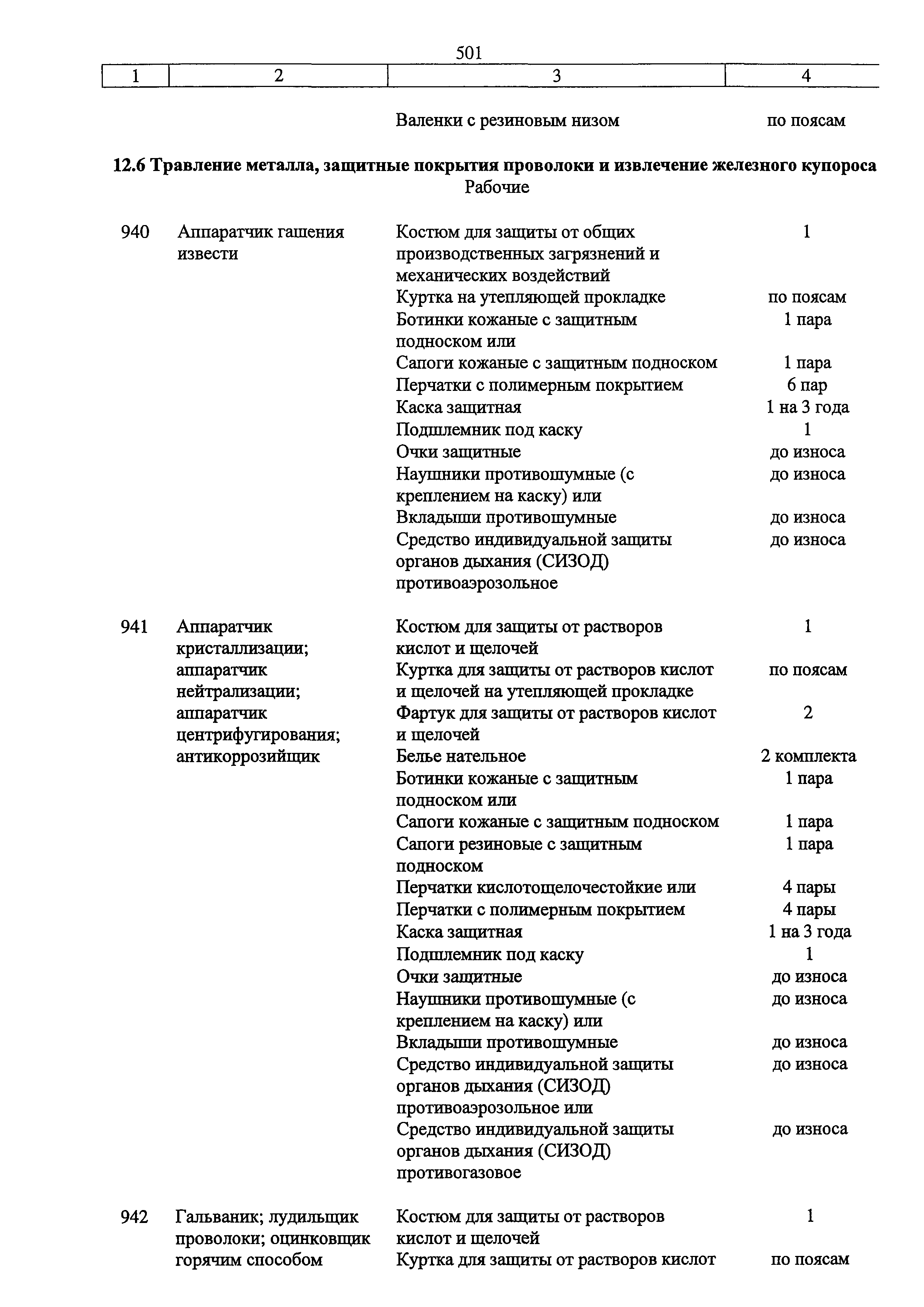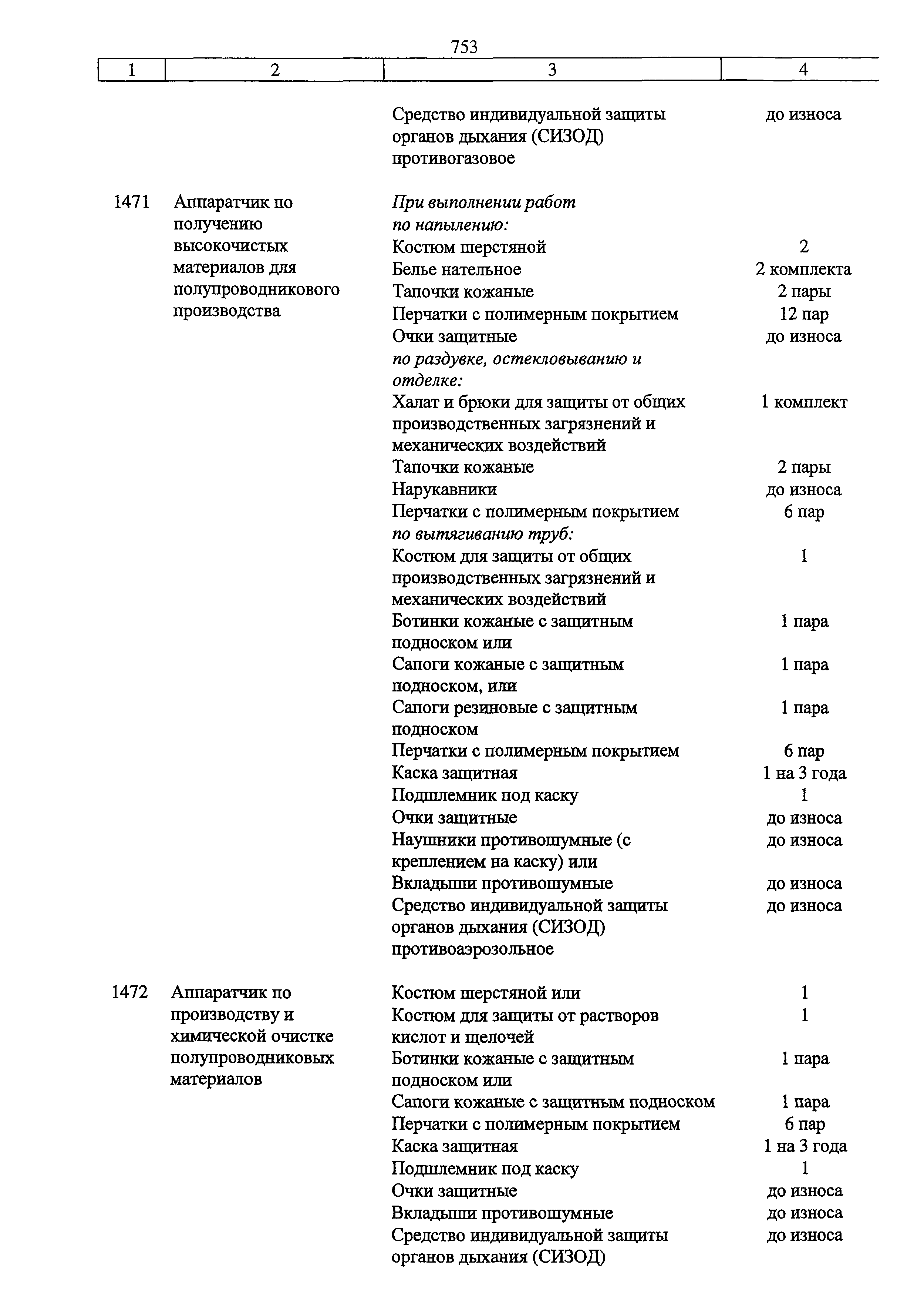 Типовые нормы бесплатной выдачи специальной одежды, специальной обуви и других средств индивидуальной защиты работникам горной и металлургической промышленности и металлургических производств других отраслей промышленности, занятым на работах с вредными и (или) опасными условиями труда, а также на работах, выполняемых в особых температурных условиях или связанных с загрязнением| Статус: | действует | | Название рус.: | Типовые нормы бесплатной выдачи специальной одежды, специальной обуви и других средств индивидуальной защиты работникам горной и металлургической промышленности и металлургических производств других отраслей промышленности, занятым на работах с вредными и (или) опасными условиями труда, а также на работах, выполняемых в особых температурных условиях или связанных с загрязнением | | Дата добавления в базу: | 01.02.2017 | | Дата актуализации: | 01.01.2021 | | Дата введения: | 14.02.2014 | | Область применения: | Нормы утверждаются локальными нормативными актами работодателя на основании результатов аттестации рабочих мест по условиям труда и могут быть включены в коллективный и (или) трудовой договор с указанием типовых норм, по сравнению с которыми улучшается обеспечение работников специальной одеждой, специальной обувью и другими средствами индивидуальной защиты. | | Оглавление: | I Горнодобывающая промышленность 1 Подземные горные работы (шахты) 2 Открытые горные работы и шахтная поверхность 3 Работа на гидравлических установках или с промывочными приборами 4 Дражные работы II Дробление, обогащение, брикетирование, обжиг, агломерация, извлечение металлов и сплавов III Черная металлургия 1 Коксохимическое производство 1.1 Углеподготовительные цеха 1.2 Углеобогатительные цеха 1.3 Производство каменноугольного кокса 1.4 Производство кристаллического нафталина, кумароновой смолы, смолоперерабатывающие цеха 1.5 Производство пиридиновых и фенольно-крезольных продуктов 1.6 Цеха улавливания химических продуктов и газовые цеха 1.7 Цеха ректификации сырого бензола 1.8 Цеха очистки коксового газа от сероводорода 1.9 Производство пекового кокса 1.10 Производство термоантрацита 2 Доменное производство 3 Сталеплавильное производство 3.1 Установки непрерывной разливки стали 4 Производство ферросплавов 4.1 Электролитическое производство 4.2 Производство электролитического хрома 4.3 Производство феррованадия 4.4 Подготовка шихты, обжиг руд и концентратов 4.5 Разливка и разделка ферросплавов 4.6 Обжиг извести 4.7 Общие профессии и должности ферросплавного производства 5 Прокатное производство 6 Производство труб (прокатка, сварка и волочение) 7 Колесопрокатное и бандажное производства 8 Валопрокатное производство 9 Производство рельсовых скреплений 10 Производство баллонов 11 Труболитейное производство 12 Производство метизов 12.1 Производство металлических канатов, сеток, пружин и пружинной ленты, щеток, цепей, колючей проволоки и других метизов 12.2 Волочение проволоки, калибровка и шлифовка металла 12.3 Изготовление волок 12.4 Холодноштамповочные и кузнечно-прессовые работы 12.5 Термическая обработка 12.6 Травление металла, защитные покрытия проволоки и извлечение железного купороса 12.7 Производство металлических электродов и порошковой проволоки 13 Производство огнеупоров 13.1 Огнеупоры 13.2 Карборундовые стержни 13.3 Высокоогнеупорные окислы 14 Ремонт 