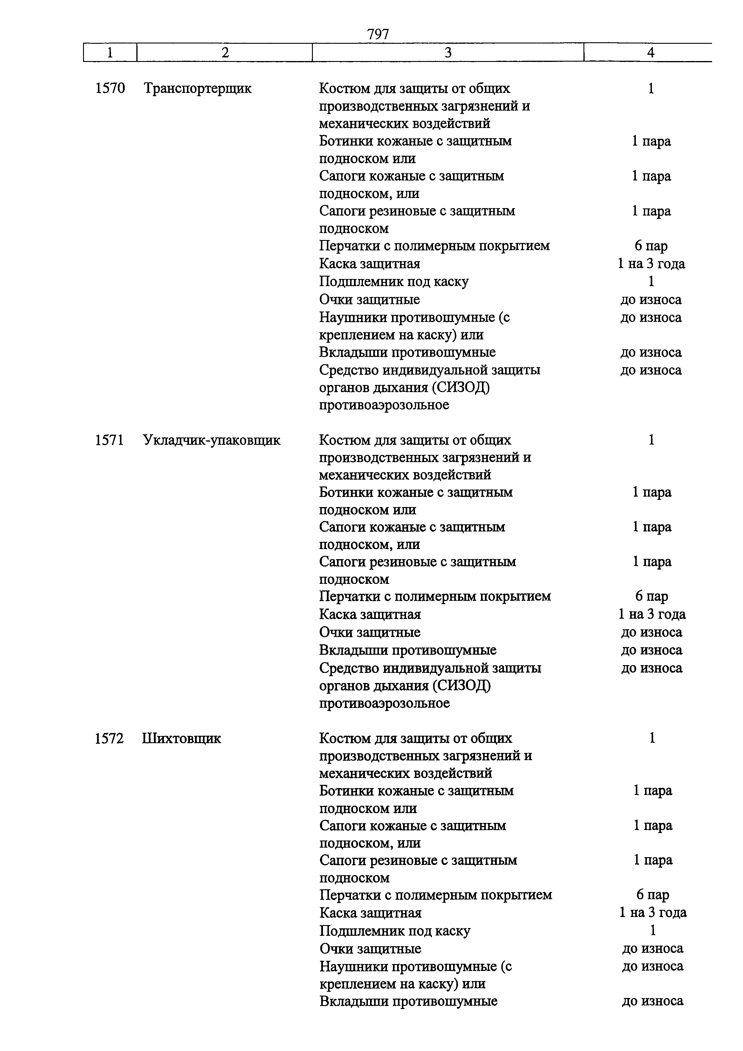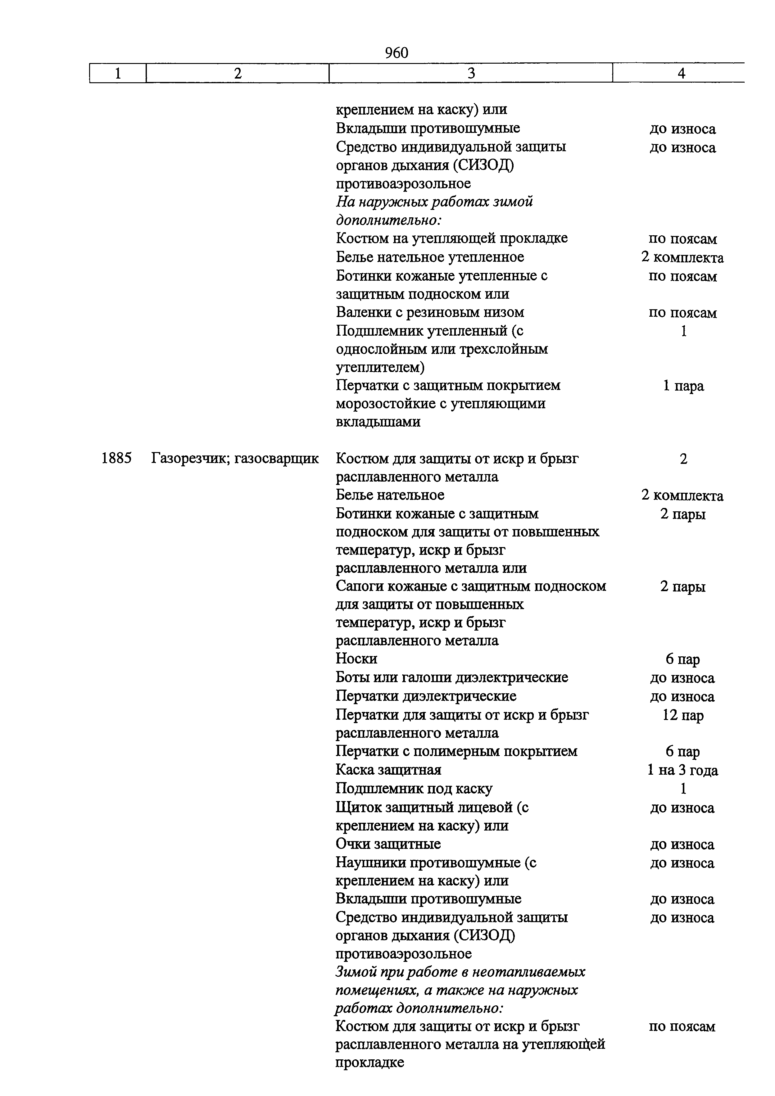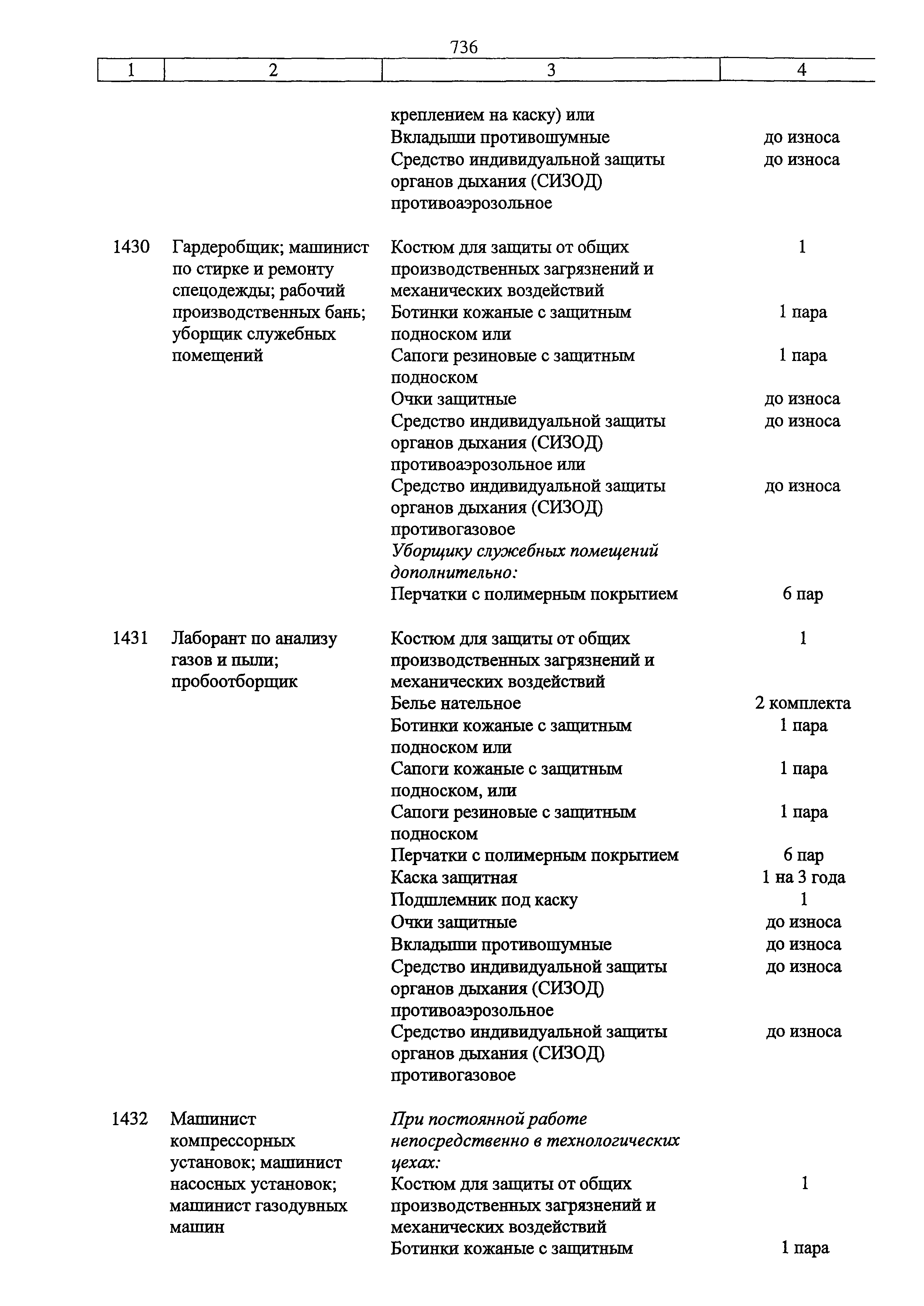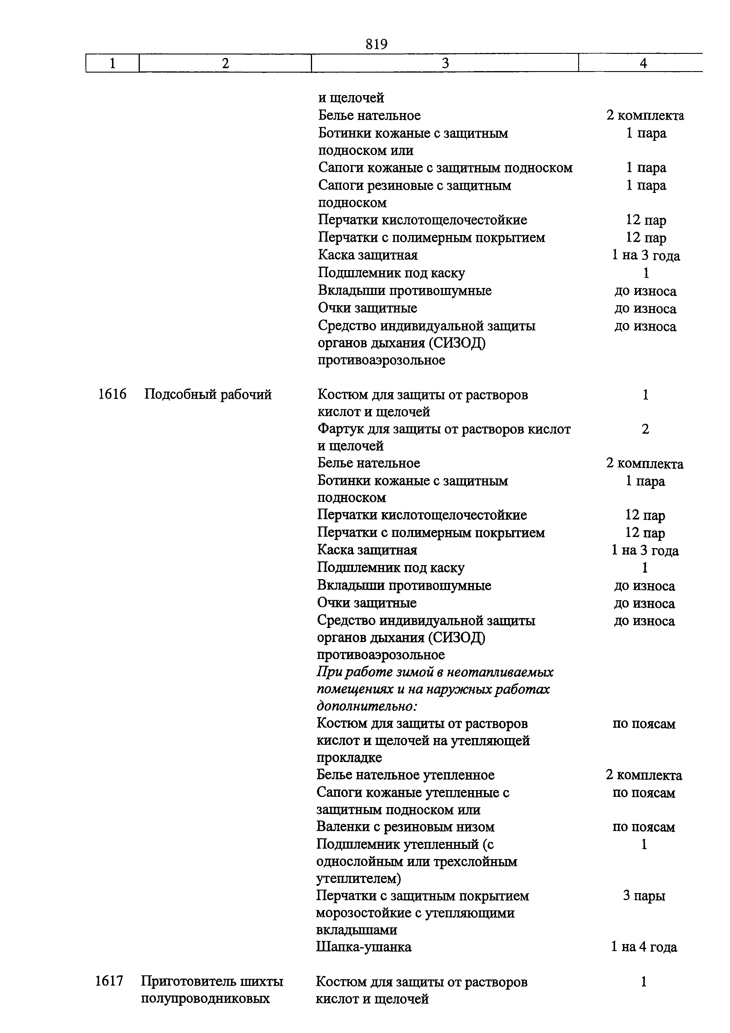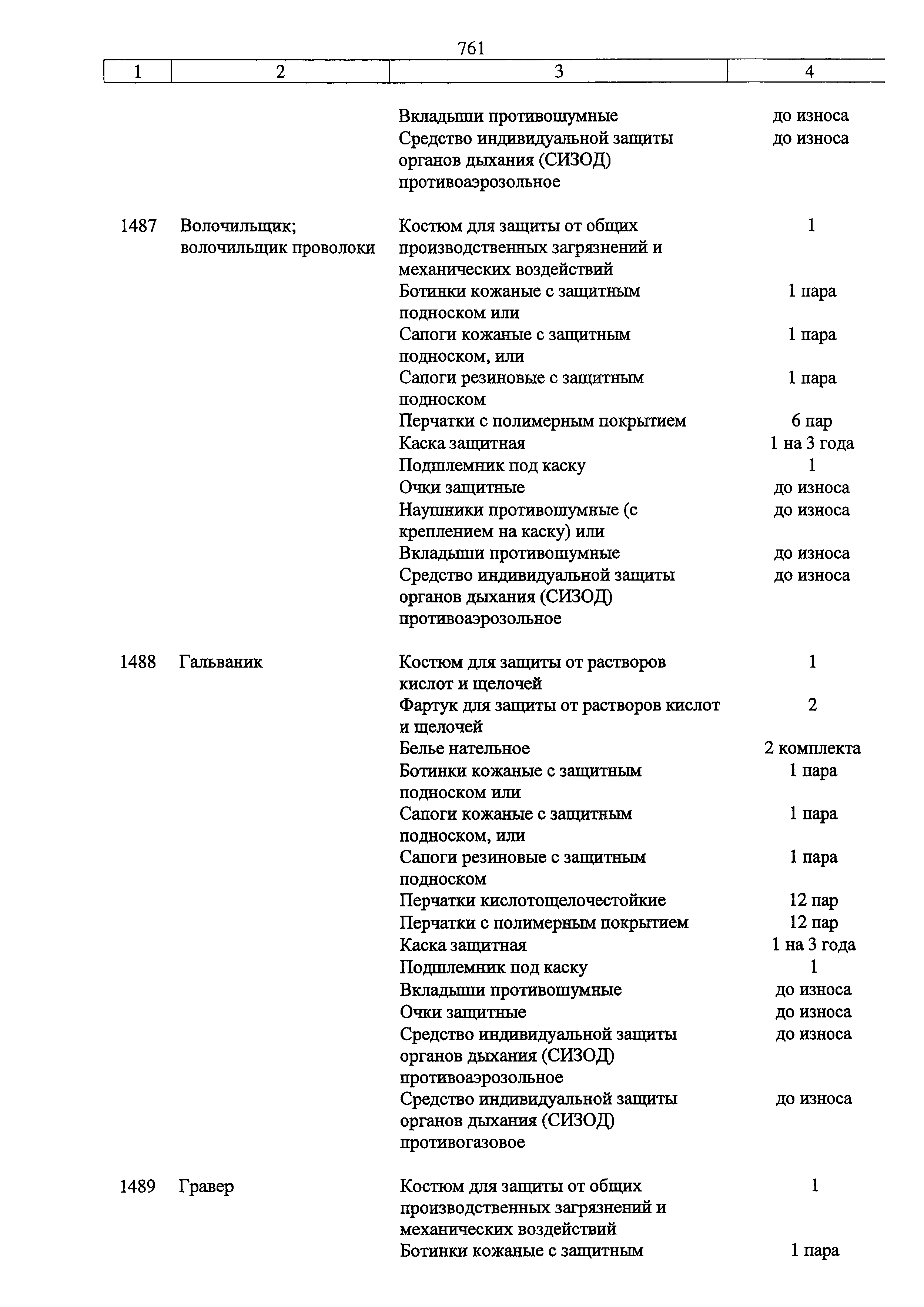 Типовые нормы бесплатной выдачи специальной одежды, специальной обуви и других средств индивидуальной защиты работникам горной и металлургической промышленности и металлургических производств других отраслей промышленности, занятым на работах с вредными и (или) опасными условиями труда, а также на работах, выполняемых в особых температурных условиях или связанных с загрязнением| Статус: | действует | | Название рус.: | Типовые нормы бесплатной выдачи специальной одежды, специальной обуви и других средств индивидуальной защиты работникам горной и металлургической промышленности и металлургических производств других отраслей промышленности, занятым на работах с вредными и (или) опасными условиями труда, а также на работах, выполняемых в особых температурных условиях или связанных с загрязнением | | Дата добавления в базу: | 01.02.2017 | | Дата актуализации: | 01.01.2021 | | Дата введения: | 14.02.2014 | | Область применения: | Нормы утверждаются локальными нормативными актами работодателя на основании результатов аттестации рабочих мест по условиям труда и могут быть включены в коллективный и (или) трудовой договор с указанием типовых норм, по сравнению с которыми улучшается обеспечение работников специальной одеждой, специальной обувью и другими средствами индивидуальной защиты. | | Оглавление: | I Горнодобывающая промышленность 1 Подземные горные работы (шахты) 2 Открытые горные работы и шахтная поверхность 3 Работа на гидравлических установках или с промывочными приборами 4 Дражные работы II Дробление, обогащение, брикетирование, обжиг, агломерация, извлечение металлов и сплавов III Черная металлургия 1 Коксохимическое производство 1.1 Углеподготовительные цеха 1.2 Углеобогатительные цеха 1.3 Производство каменноугольного кокса 1.4 Производство кристаллического нафталина, кумароновой смолы, смолоперерабатывающие цеха 1.5 Производство пиридиновых и фенольно-крезольных продуктов 1.6 Цеха улавливания химических продуктов и газовые цеха 1.7 Цеха ректификации сырого бензола 1.8 Цеха очистки коксового газа от сероводорода 1.9 Производство пекового кокса 1.10 Производство термоантрацита 2 Доменное производство 3 Сталеплавильное производство 3.1 Установки непрерывной разливки стали 4 Производство ферросплавов 4.1 Электролитическое производство 4.2 Производство электролитического хрома 4.3 Производство феррованадия 4.4 Подготовка шихты, обжиг руд и концентратов 4.5 Разливка и разделка ферросплавов 4.6 Обжиг извести 4.7 Общие профессии и должности ферросплавного производства 5 Прокатное производство 6 Производство труб (прокатка, сварка и волочение) 7 Колесопрокатное и бандажное производства 8 Валопрокатное производство 9 Производство рельсовых скреплений 10 Производство баллонов 11 Труболитейное производство 12 Производство метизов 12.1 Производство металлических канатов, сеток, пружин и пружинной ленты, щеток, цепей, колючей проволоки и других метизов 12.2 Волочение проволоки, калибровка и шлифовка металла 12.3 Изготовление волок 12.4 Холодноштамповочные и кузнечно-прессовые работы 12.5 Термическая обработка 12.6 Травление металла, защитные покрытия проволоки и извлечение железного купороса 12.7 Производство металлических электродов и порошковой проволоки 13 Производство огнеупоров 13.1 Огнеупоры 13.2 Карборундовые стержни 13.3 Высокоогнеупорные окислы 14 Ремонт 