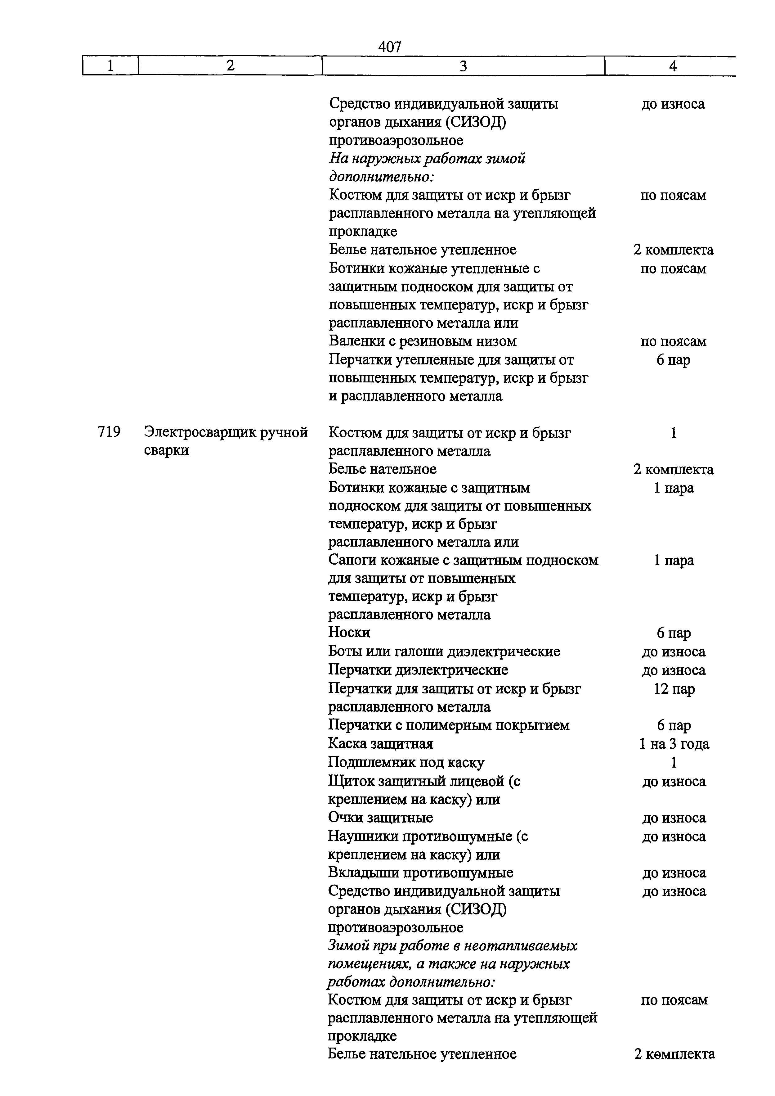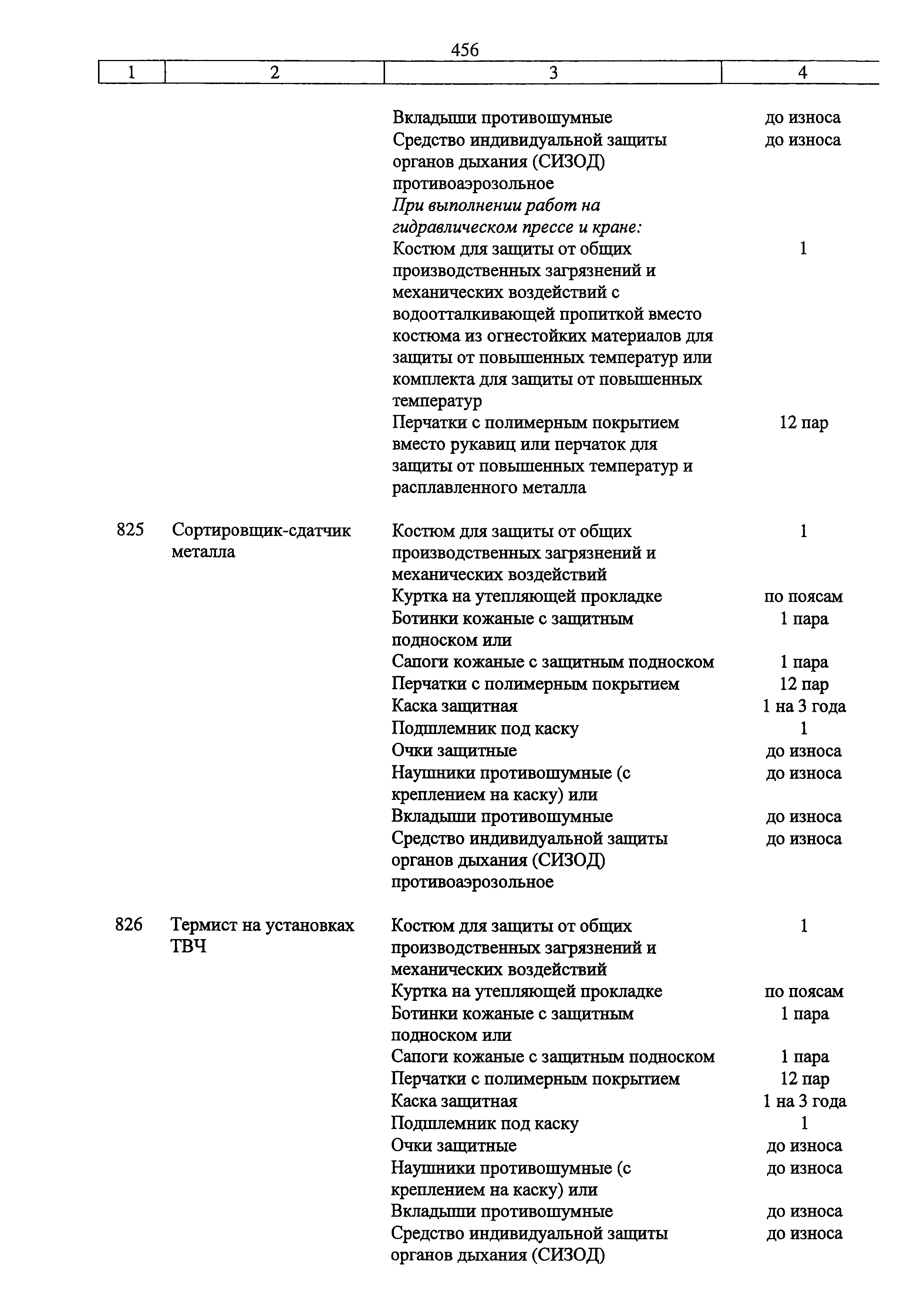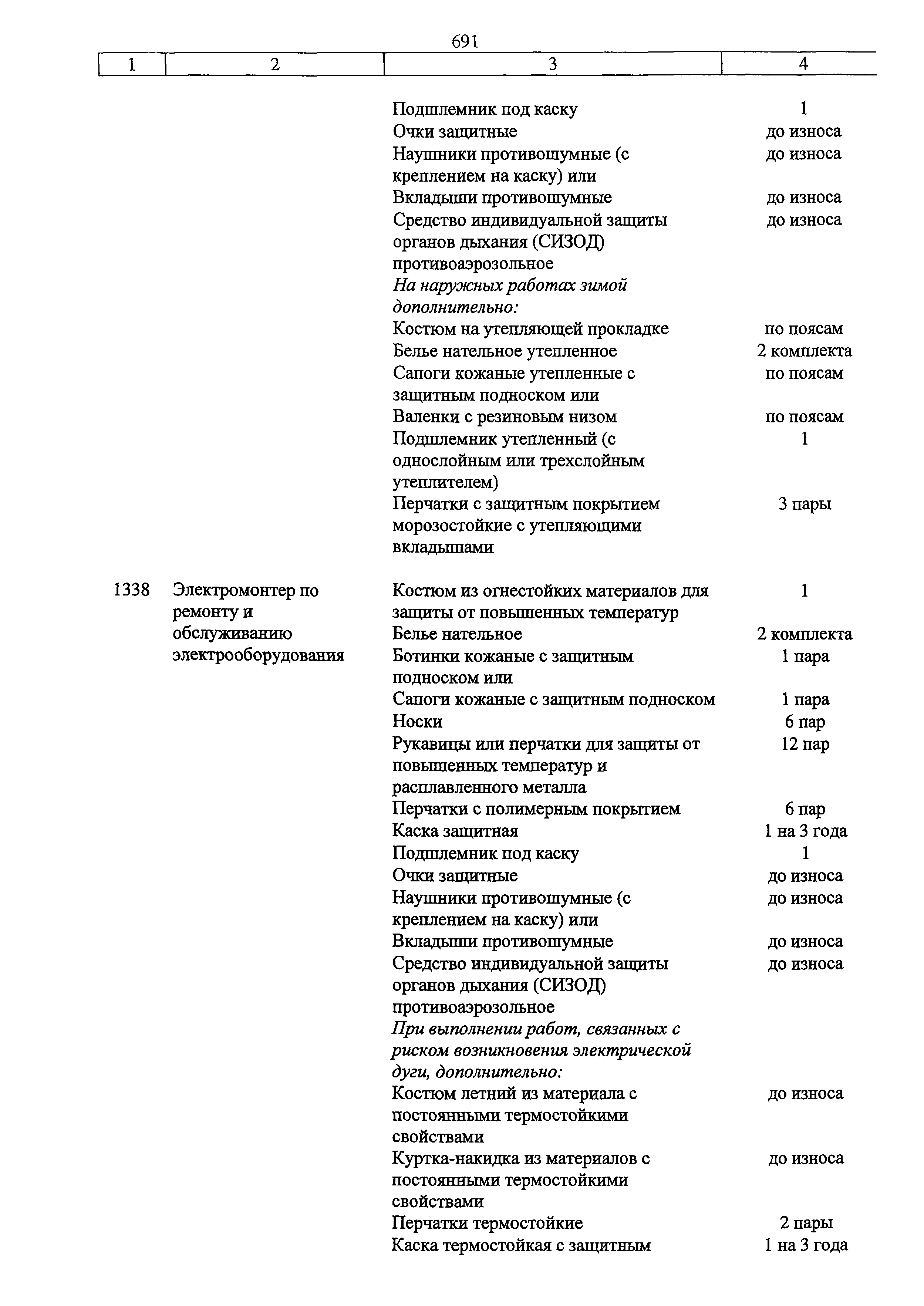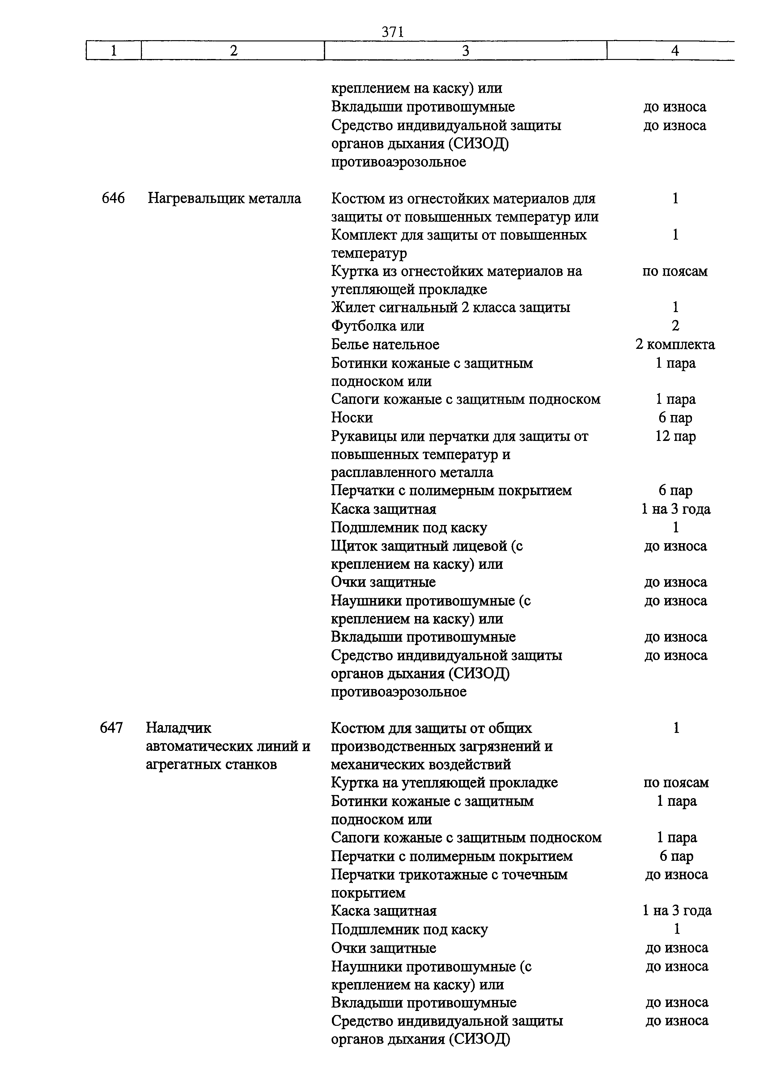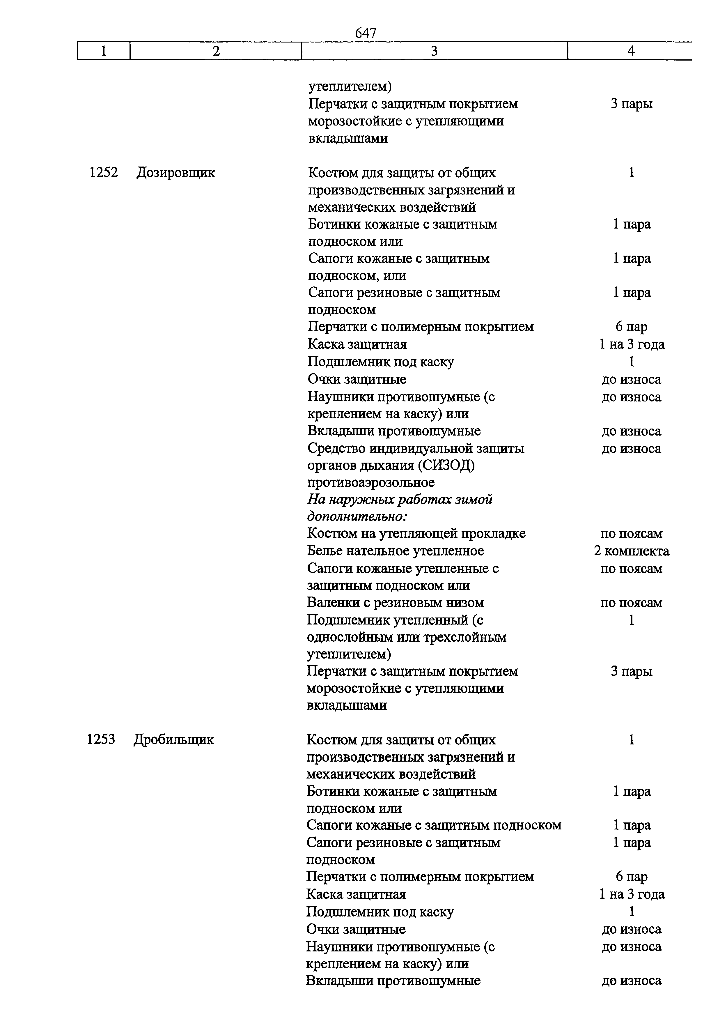 Типовые нормы бесплатной выдачи специальной одежды, специальной обуви и других средств индивидуальной защиты работникам горной и металлургической промышленности и металлургических производств других отраслей промышленности, занятым на работах с вредными и (или) опасными условиями труда, а также на работах, выполняемых в особых температурных условиях или связанных с загрязнением| Статус: | действует | | Название рус.: | Типовые нормы бесплатной выдачи специальной одежды, специальной обуви и других средств индивидуальной защиты работникам горной и металлургической промышленности и металлургических производств других отраслей промышленности, занятым на работах с вредными и (или) опасными условиями труда, а также на работах, выполняемых в особых температурных условиях или связанных с загрязнением | | Дата добавления в базу: | 01.02.2017 | | Дата актуализации: | 01.01.2021 | | Дата введения: | 14.02.2014 | | Область применения: | Нормы утверждаются локальными нормативными актами работодателя на основании результатов аттестации рабочих мест по условиям труда и могут быть включены в коллективный и (или) трудовой договор с указанием типовых норм, по сравнению с которыми улучшается обеспечение работников специальной одеждой, специальной обувью и другими средствами индивидуальной защиты. | | Оглавление: | I Горнодобывающая промышленность 1 Подземные горные работы (шахты) 2 Открытые горные работы и шахтная поверхность 3 Работа на гидравлических установках или с промывочными приборами 4 Дражные работы II Дробление, обогащение, брикетирование, обжиг, агломерация, извлечение металлов и сплавов III Черная металлургия 1 Коксохимическое производство 1.1 Углеподготовительные цеха 1.2 Углеобогатительные цеха 1.3 Производство каменноугольного кокса 1.4 Производство кристаллического нафталина, кумароновой смолы, смолоперерабатывающие цеха 1.5 Производство пиридиновых и фенольно-крезольных продуктов 1.6 Цеха улавливания химических продуктов и газовые цеха 1.7 Цеха ректификации сырого бензола 1.8 Цеха очистки коксового газа от сероводорода 1.9 Производство пекового кокса 1.10 Производство термоантрацита 2 Доменное производство 3 Сталеплавильное производство 3.1 Установки непрерывной разливки стали 4 Производство ферросплавов 4.1 Электролитическое производство 4.2 Производство электролитического хрома 4.3 Производство феррованадия 4.4 Подготовка шихты, обжиг руд и концентратов 4.5 Разливка и разделка ферросплавов 4.6 Обжиг извести 4.7 Общие профессии и должности ферросплавного производства 5 Прокатное производство 6 Производство труб (прокатка, сварка и волочение) 7 Колесопрокатное и бандажное производства 8 Валопрокатное производство 9 Производство рельсовых скреплений 10 Производство баллонов 11 Труболитейное производство 12 Производство метизов 12.1 Производство металлических канатов, сеток, пружин и пружинной ленты, щеток, цепей, колючей проволоки и других метизов 12.2 Волочение проволоки, калибровка и шлифовка металла 12.3 Изготовление волок 12.4 Холодноштамповочные и кузнечно-прессовые работы 12.5 Термическая обработка 12.6 Травление металла, защитные покрытия проволоки и извлечение железного купороса 12.7 Производство металлических электродов и порошковой проволоки 13 Производство огнеупоров 13.1 Огнеупоры 13.2 Карборундовые стержни 13.3 Высокоогнеупорные окислы 14 Ремонт 