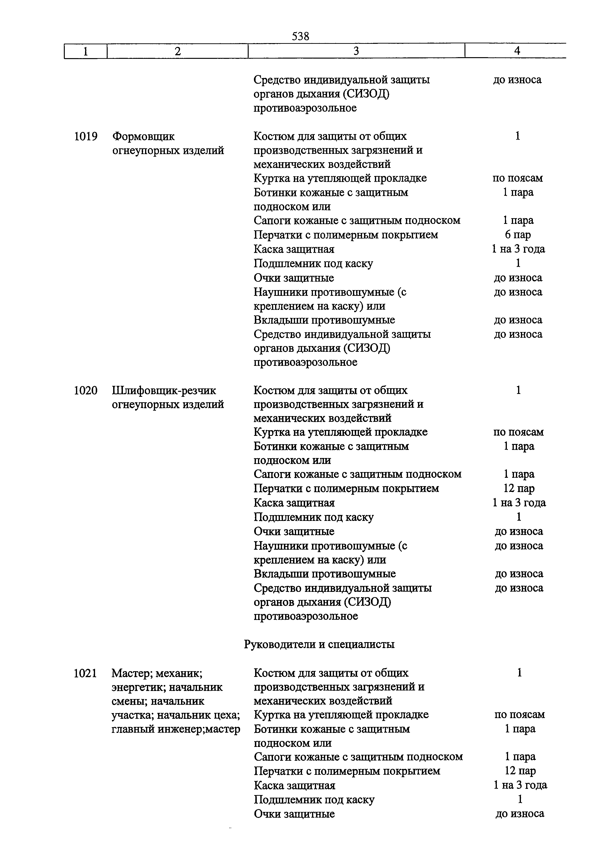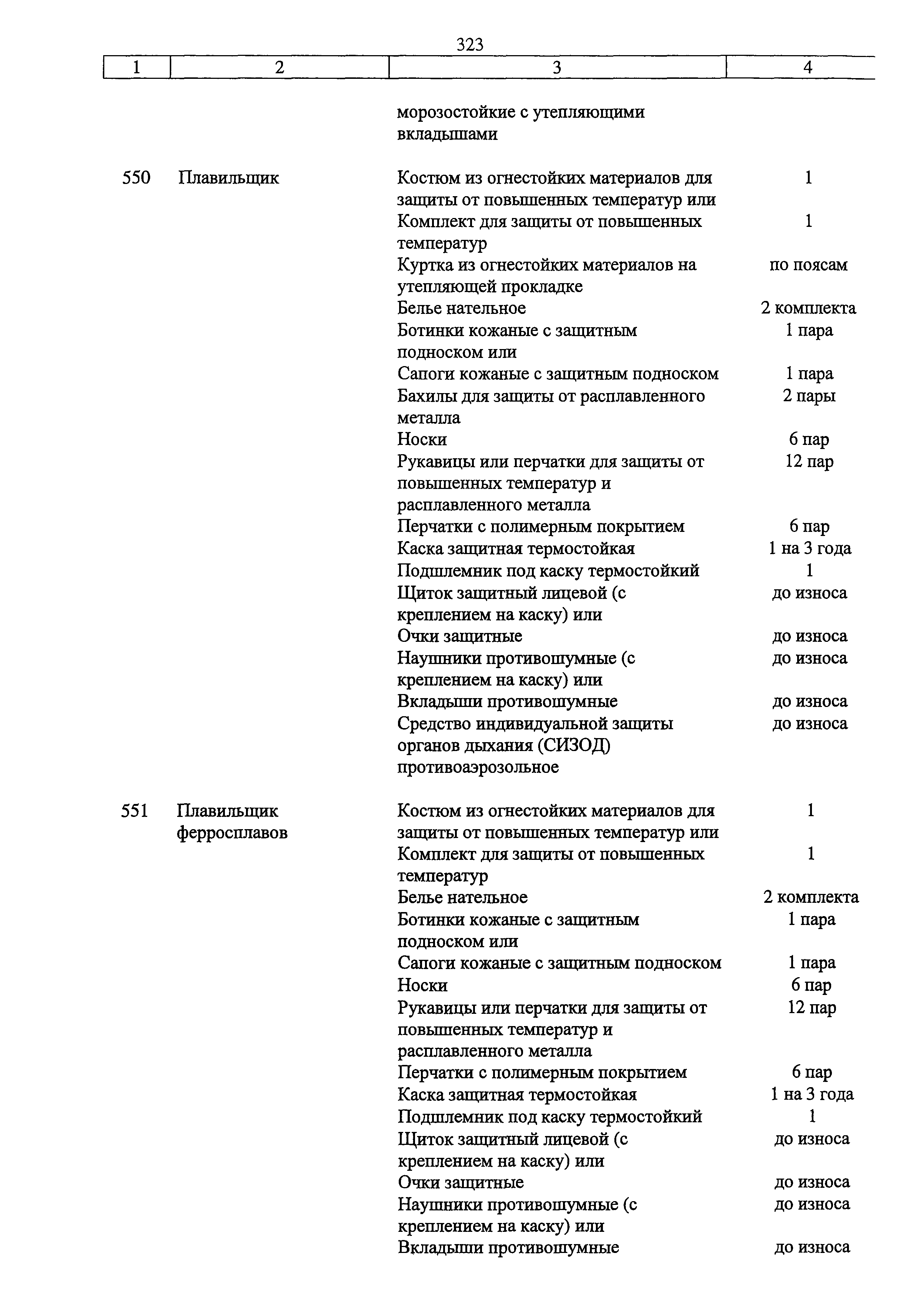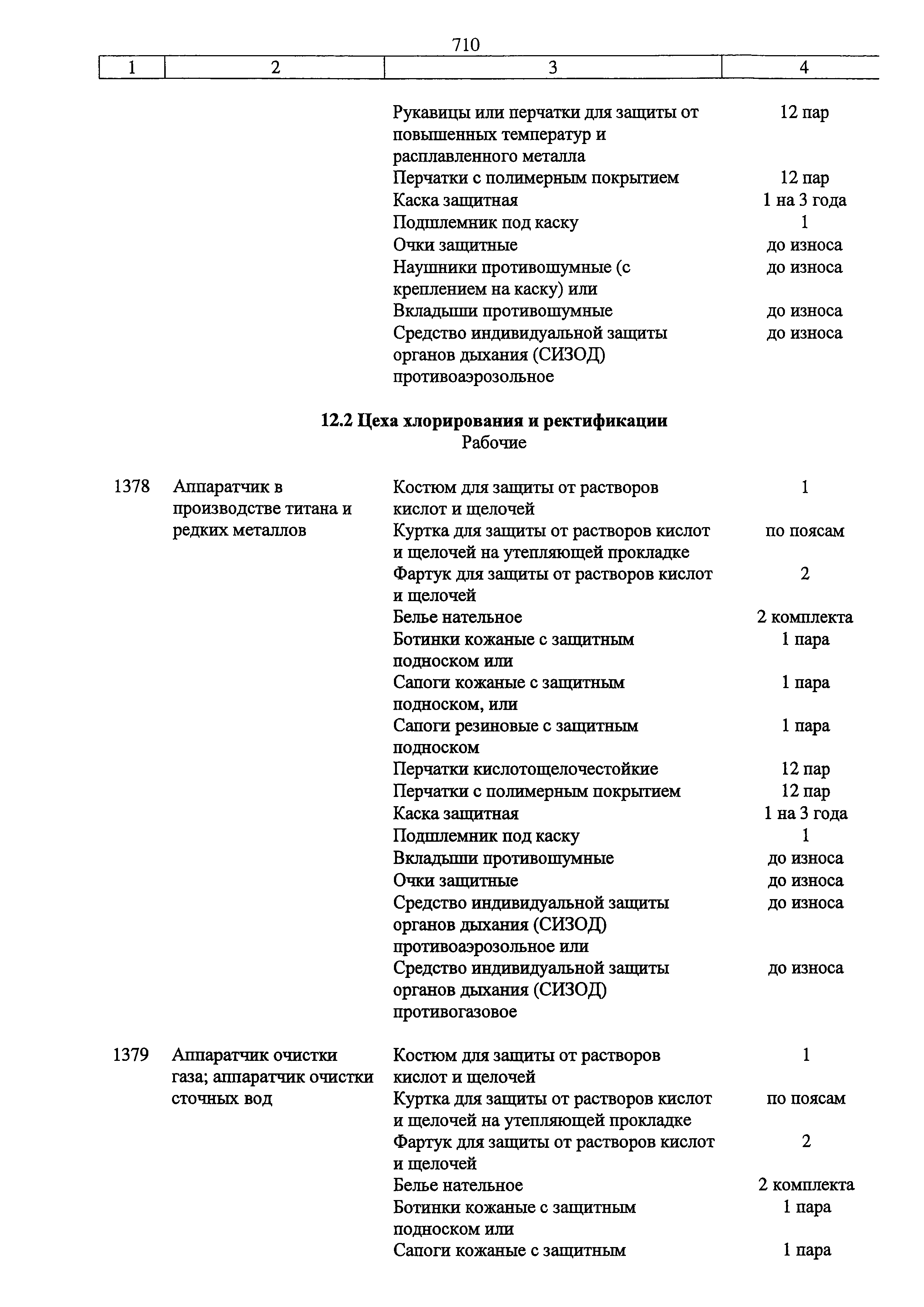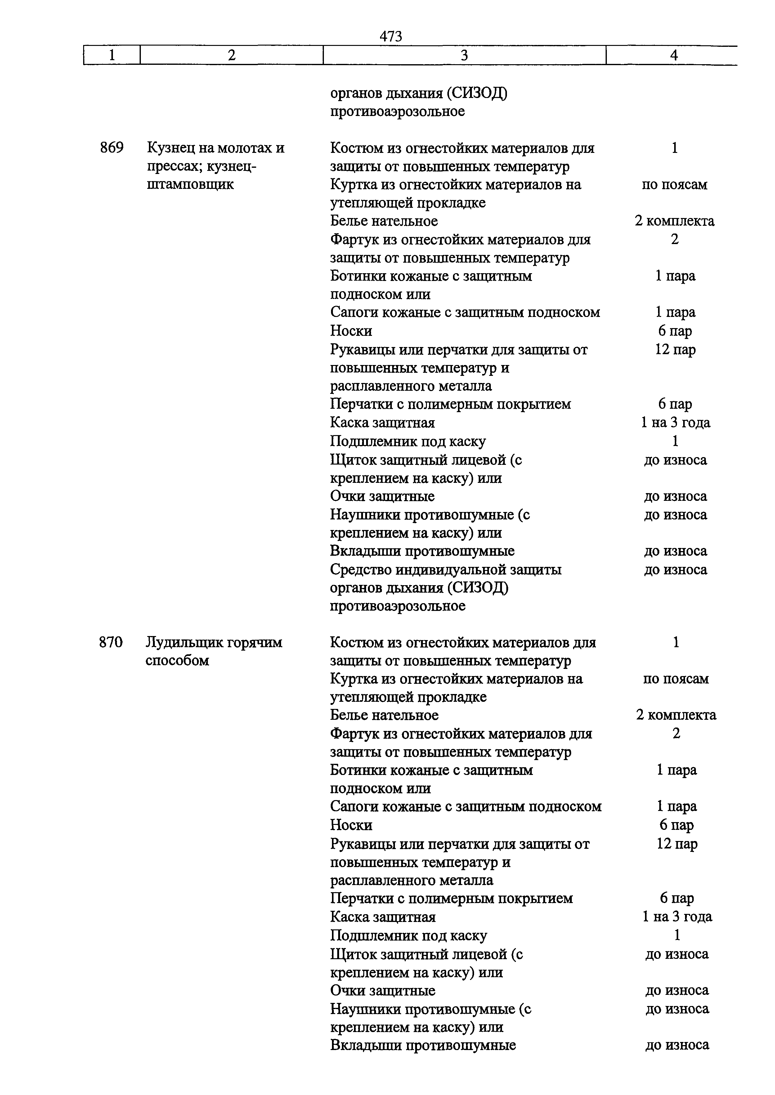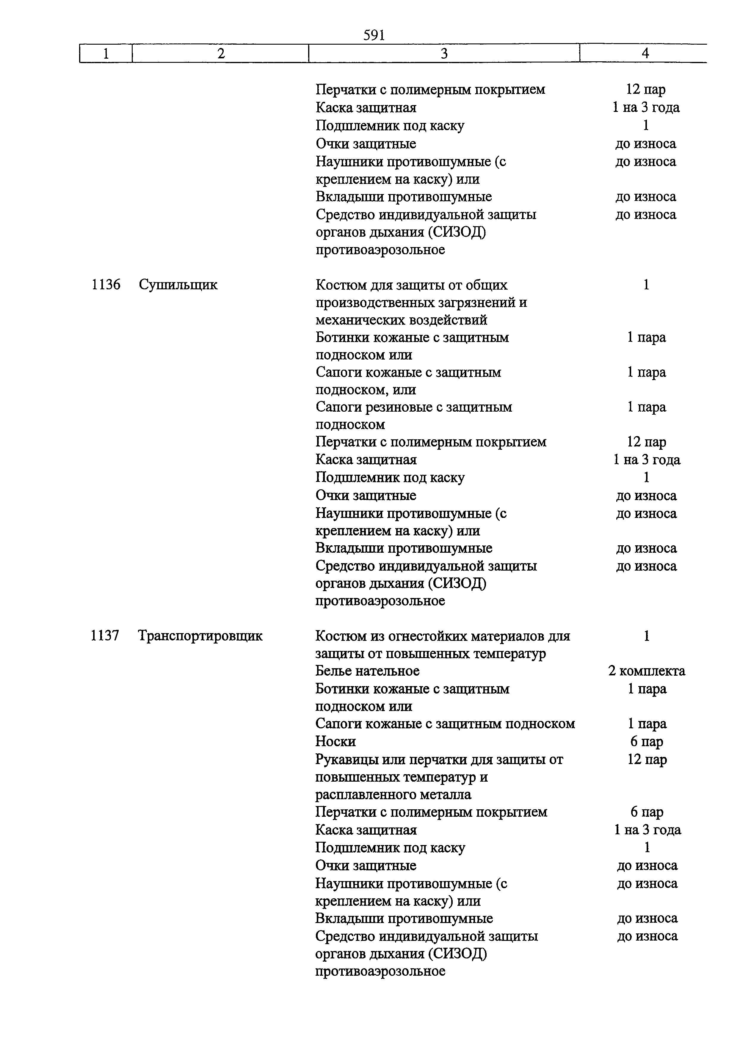 Типовые нормы бесплатной выдачи специальной одежды, специальной обуви и других средств индивидуальной защиты работникам горной и металлургической промышленности и металлургических производств других отраслей промышленности, занятым на работах с вредными и (или) опасными условиями труда, а также на работах, выполняемых в особых температурных условиях или связанных с загрязнением| Статус: | действует | | Название рус.: | Типовые нормы бесплатной выдачи специальной одежды, специальной обуви и других средств индивидуальной защиты работникам горной и металлургической промышленности и металлургических производств других отраслей промышленности, занятым на работах с вредными и (или) опасными условиями труда, а также на работах, выполняемых в особых температурных условиях или связанных с загрязнением | | Дата добавления в базу: | 01.02.2017 | | Дата актуализации: | 01.01.2021 | | Дата введения: | 14.02.2014 | | Область применения: | Нормы утверждаются локальными нормативными актами работодателя на основании результатов аттестации рабочих мест по условиям труда и могут быть включены в коллективный и (или) трудовой договор с указанием типовых норм, по сравнению с которыми улучшается обеспечение работников специальной одеждой, специальной обувью и другими средствами индивидуальной защиты. | | Оглавление: | I Горнодобывающая промышленность 1 Подземные горные работы (шахты) 2 Открытые горные работы и шахтная поверхность 3 Работа на гидравлических установках или с промывочными приборами 4 Дражные работы II Дробление, обогащение, брикетирование, обжиг, агломерация, извлечение металлов и сплавов III Черная металлургия 1 Коксохимическое производство 1.1 Углеподготовительные цеха 1.2 Углеобогатительные цеха 1.3 Производство каменноугольного кокса 1.4 Производство кристаллического нафталина, кумароновой смолы, смолоперерабатывающие цеха 1.5 Производство пиридиновых и фенольно-крезольных продуктов 1.6 Цеха улавливания химических продуктов и газовые цеха 1.7 Цеха ректификации сырого бензола 1.8 Цеха очистки коксового газа от сероводорода 1.9 Производство пекового кокса 1.10 Производство термоантрацита 2 Доменное производство 3 Сталеплавильное производство 3.1 Установки непрерывной разливки стали 4 Производство ферросплавов 4.1 Электролитическое производство 4.2 Производство электролитического хрома 4.3 Производство феррованадия 4.4 Подготовка шихты, обжиг руд и концентратов 4.5 Разливка и разделка ферросплавов 4.6 Обжиг извести 4.7 Общие профессии и должности ферросплавного производства 5 Прокатное производство 6 Производство труб (прокатка, сварка и волочение) 7 Колесопрокатное и бандажное производства 8 Валопрокатное производство 9 Производство рельсовых скреплений 10 Производство баллонов 11 Труболитейное производство 12 Производство метизов 12.1 Производство металлических канатов, сеток, пружин и пружинной ленты, щеток, цепей, колючей проволоки и других метизов 12.2 Волочение проволоки, калибровка и шлифовка металла 12.3 Изготовление волок 12.4 Холодноштамповочные и кузнечно-прессовые работы 12.5 Термическая обработка 12.6 Травление металла, защитные покрытия проволоки и извлечение железного купороса 12.7 Производство металлических электродов и порошковой проволоки 13 Производство огнеупоров 13.1 Огнеупоры 13.2 Карборундовые стержни 13.3 Высокоогнеупорные окислы 14 Ремонт 