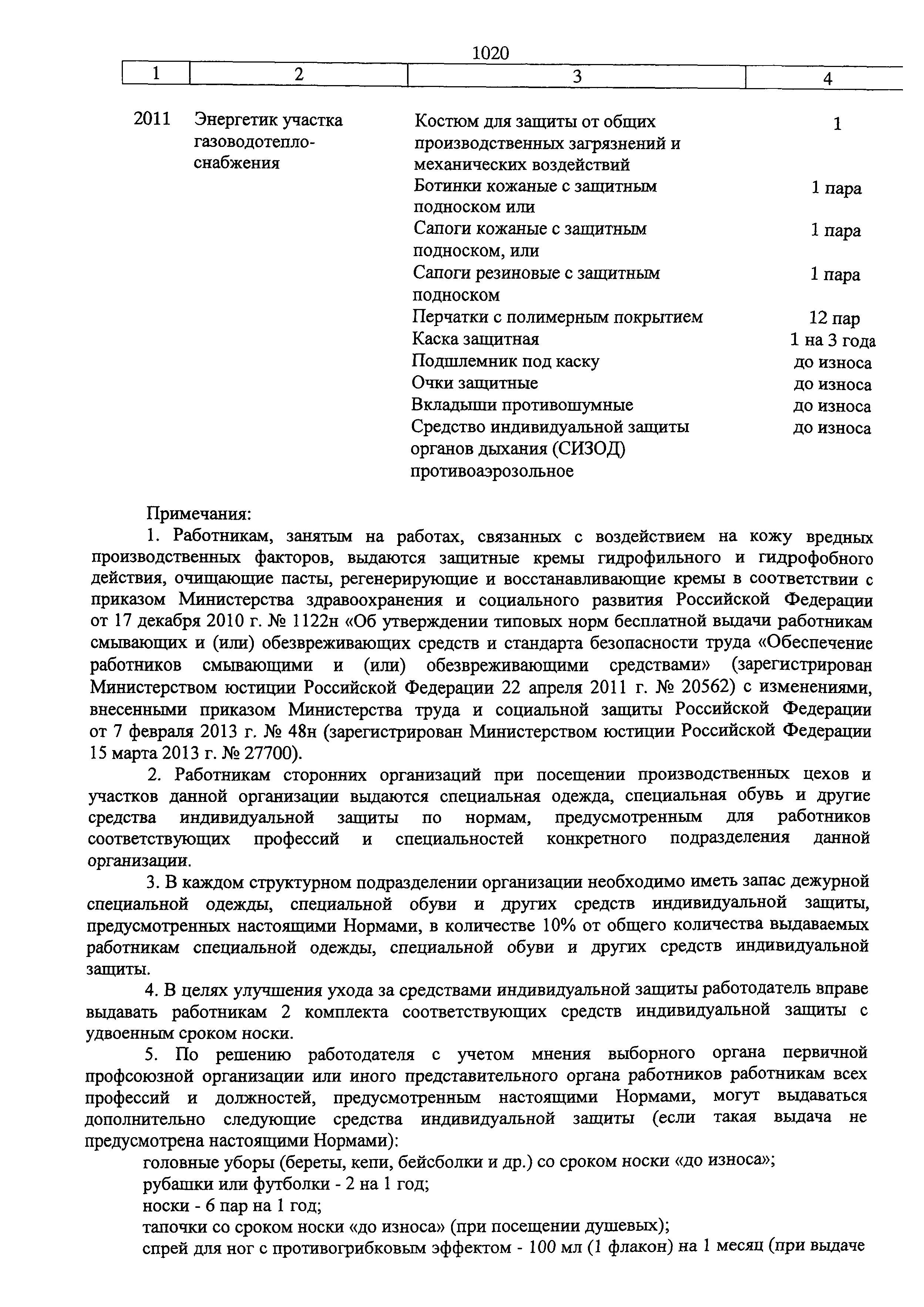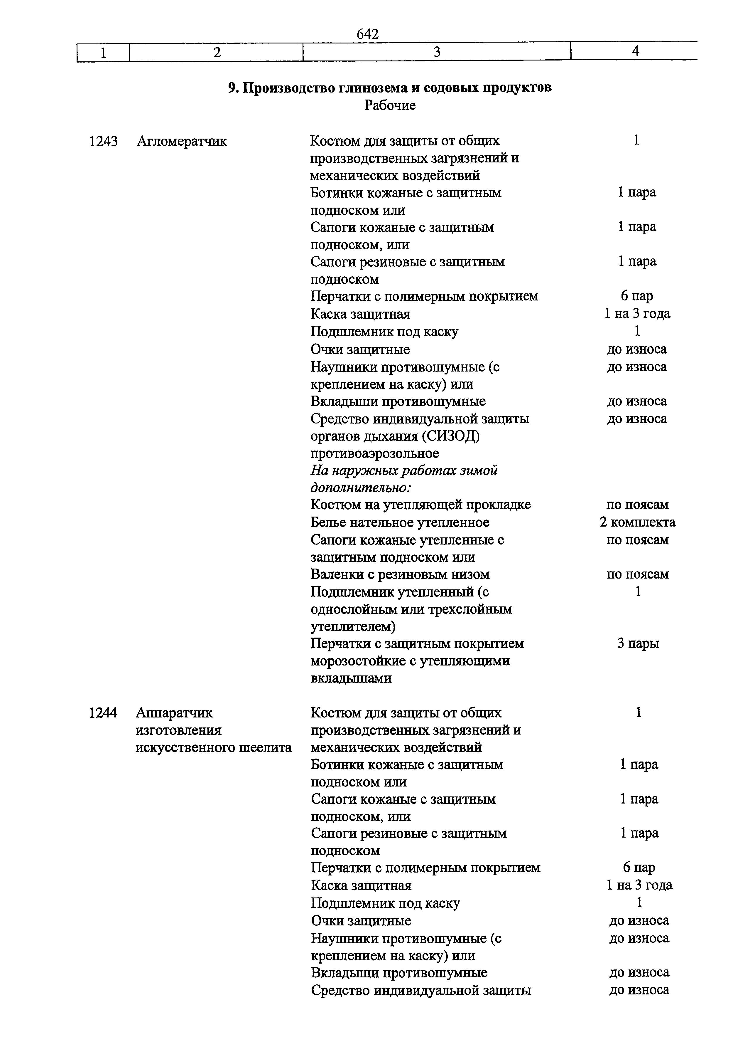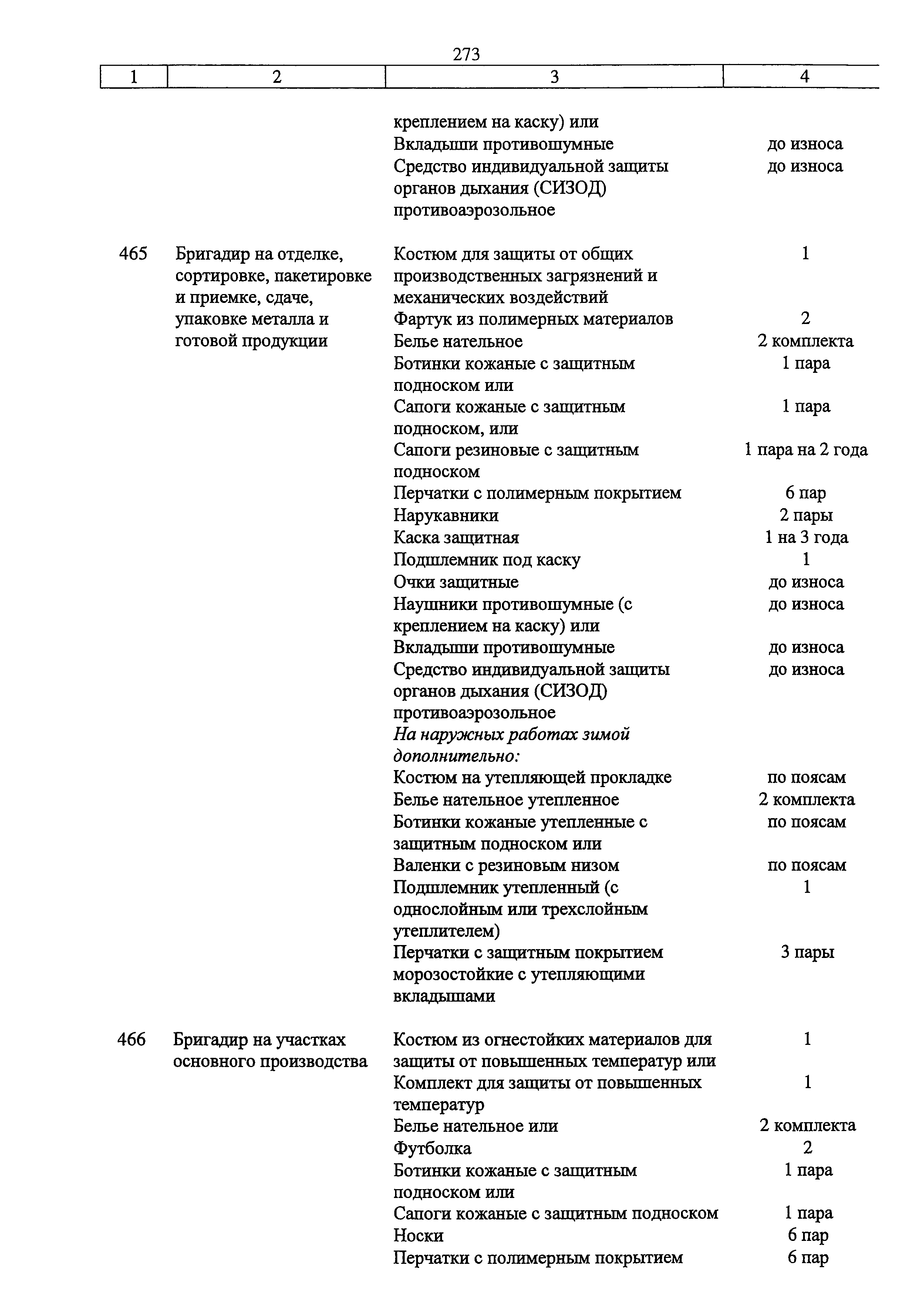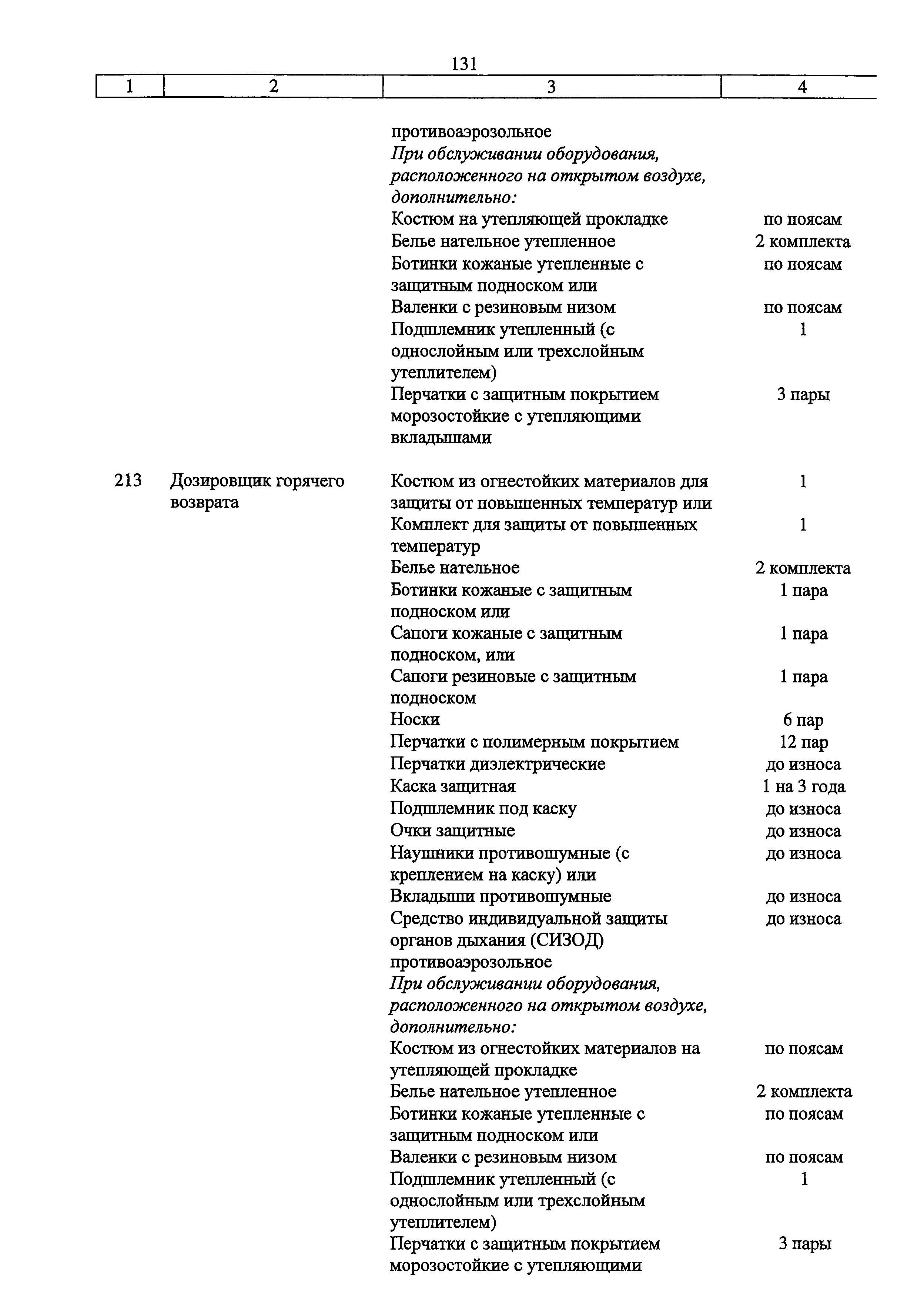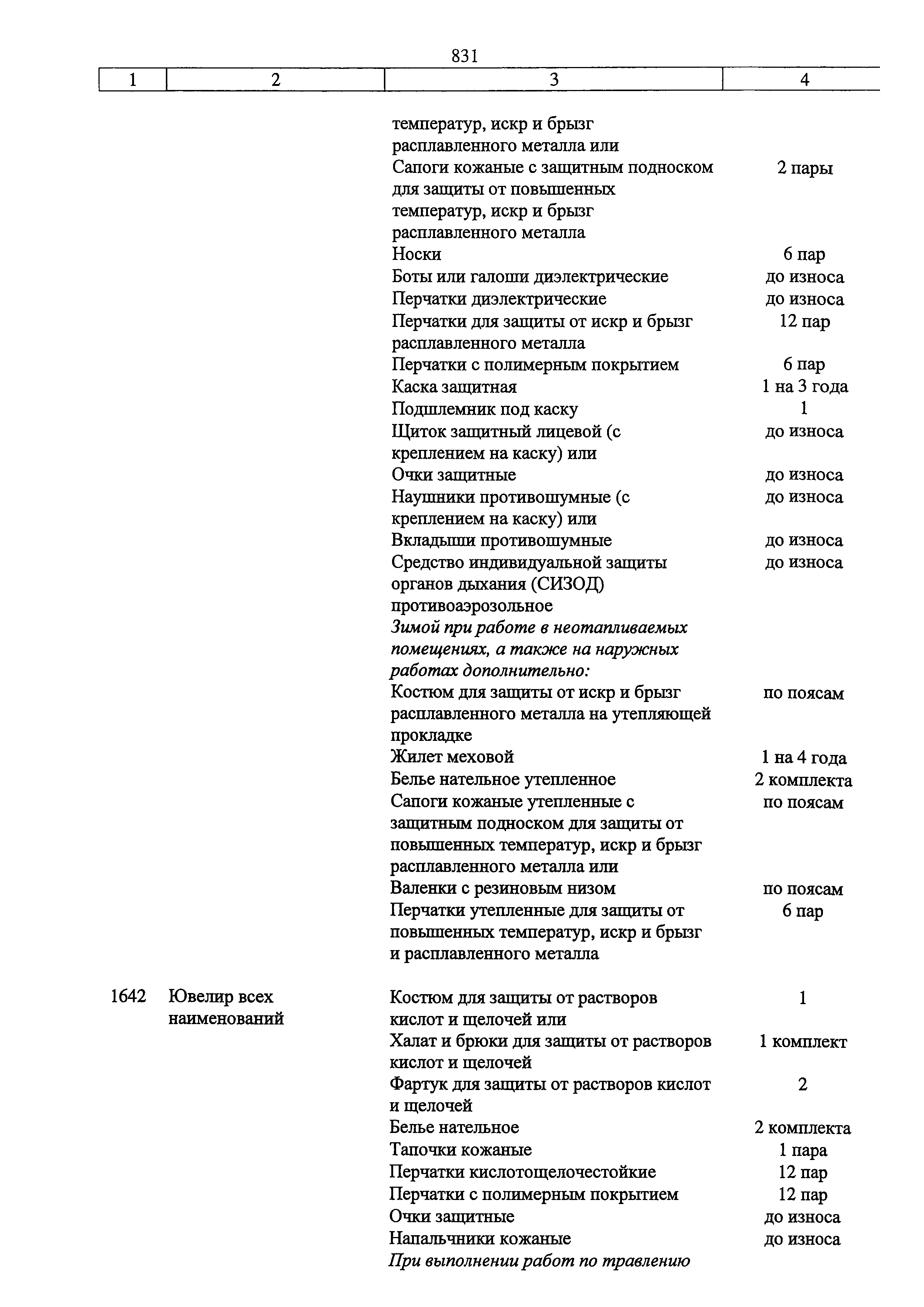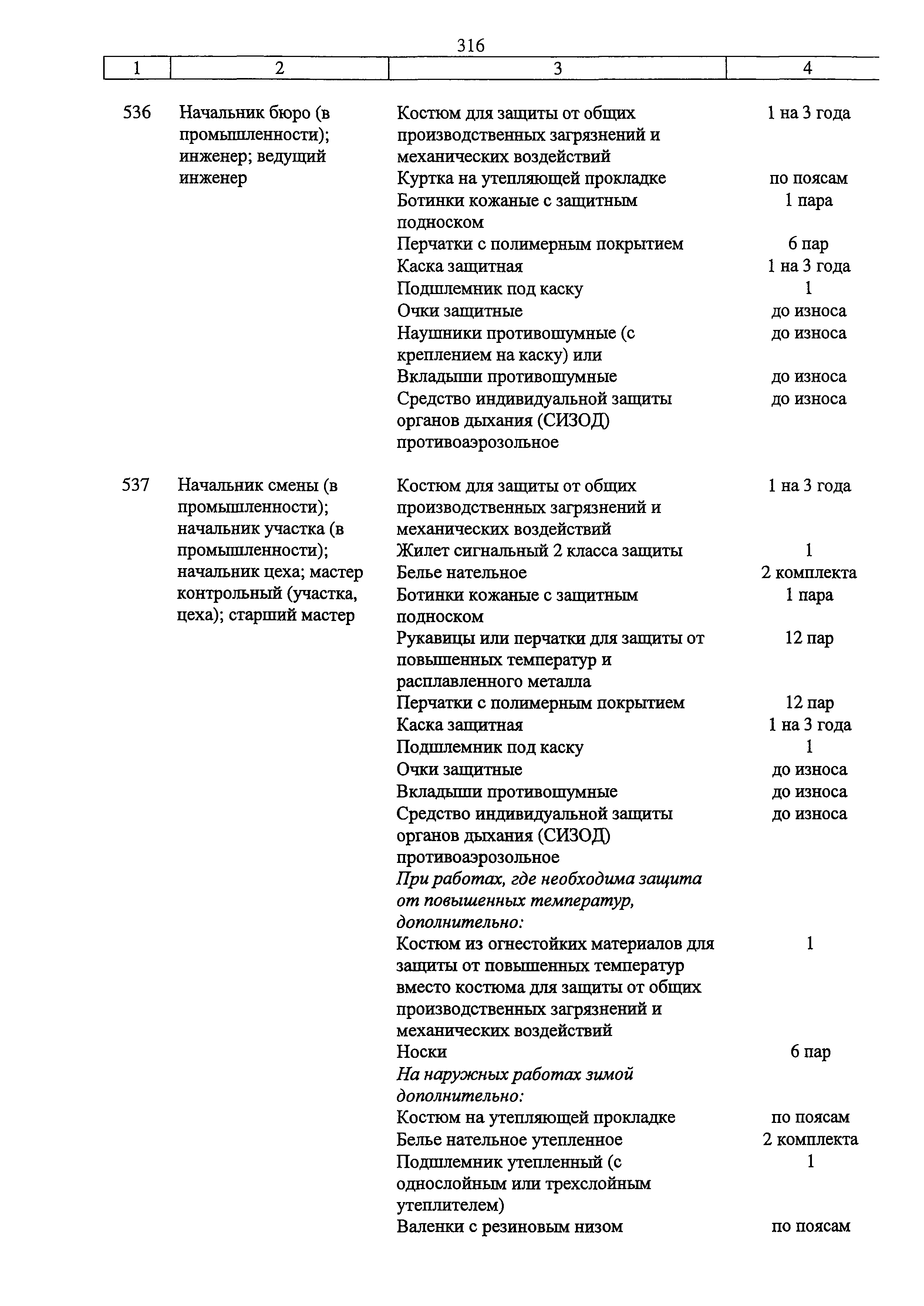 Типовые нормы бесплатной выдачи специальной одежды, специальной обуви и других средств индивидуальной защиты работникам горной и металлургической промышленности и металлургических производств других отраслей промышленности, занятым на работах с вредными и (или) опасными условиями труда, а также на работах, выполняемых в особых температурных условиях или связанных с загрязнением| Статус: | действует | | Название рус.: | Типовые нормы бесплатной выдачи специальной одежды, специальной обуви и других средств индивидуальной защиты работникам горной и металлургической промышленности и металлургических производств других отраслей промышленности, занятым на работах с вредными и (или) опасными условиями труда, а также на работах, выполняемых в особых температурных условиях или связанных с загрязнением | | Дата добавления в базу: | 01.02.2017 | | Дата актуализации: | 01.01.2021 | | Дата введения: | 14.02.2014 | | Область применения: | Нормы утверждаются локальными нормативными актами работодателя на основании результатов аттестации рабочих мест по условиям труда и могут быть включены в коллективный и (или) трудовой договор с указанием типовых норм, по сравнению с которыми улучшается обеспечение работников специальной одеждой, специальной обувью и другими средствами индивидуальной защиты. | | Оглавление: | I Горнодобывающая промышленность 1 Подземные горные работы (шахты) 2 Открытые горные работы и шахтная поверхность 3 Работа на гидравлических установках или с промывочными приборами 4 Дражные работы II Дробление, обогащение, брикетирование, обжиг, агломерация, извлечение металлов и сплавов III Черная металлургия 1 Коксохимическое производство 1.1 Углеподготовительные цеха 1.2 Углеобогатительные цеха 1.3 Производство каменноугольного кокса 1.4 Производство кристаллического нафталина, кумароновой смолы, смолоперерабатывающие цеха 1.5 Производство пиридиновых и фенольно-крезольных продуктов 1.6 Цеха улавливания химических продуктов и газовые цеха 1.7 Цеха ректификации сырого бензола 1.8 Цеха очистки коксового газа от сероводорода 1.9 Производство пекового кокса 1.10 Производство термоантрацита 2 Доменное производство 3 Сталеплавильное производство 3.1 Установки непрерывной разливки стали 4 Производство ферросплавов 4.1 Электролитическое производство 4.2 Производство электролитического хрома 4.3 Производство феррованадия 4.4 Подготовка шихты, обжиг руд и концентратов 4.5 Разливка и разделка ферросплавов 4.6 Обжиг извести 4.7 Общие профессии и должности ферросплавного производства 5 Прокатное производство 6 Производство труб (прокатка, сварка и волочение) 7 Колесопрокатное и бандажное производства 8 Валопрокатное производство 9 Производство рельсовых скреплений 10 Производство баллонов 11 Труболитейное производство 12 Производство метизов 12.1 Производство металлических канатов, сеток, пружин и пружинной ленты, щеток, цепей, колючей проволоки и других метизов 12.2 Волочение проволоки, калибровка и шлифовка металла 12.3 Изготовление волок 12.4 Холодноштамповочные и кузнечно-прессовые работы 12.5 Термическая обработка 12.6 Травление металла, защитные покрытия проволоки и извлечение железного купороса 12.7 Производство металлических электродов и порошковой проволоки 13 Производство огнеупоров 13.1 Огнеупоры 13.2 Карборундовые стержни 13.3 Высокоогнеупорные окислы 14 Ремонт 