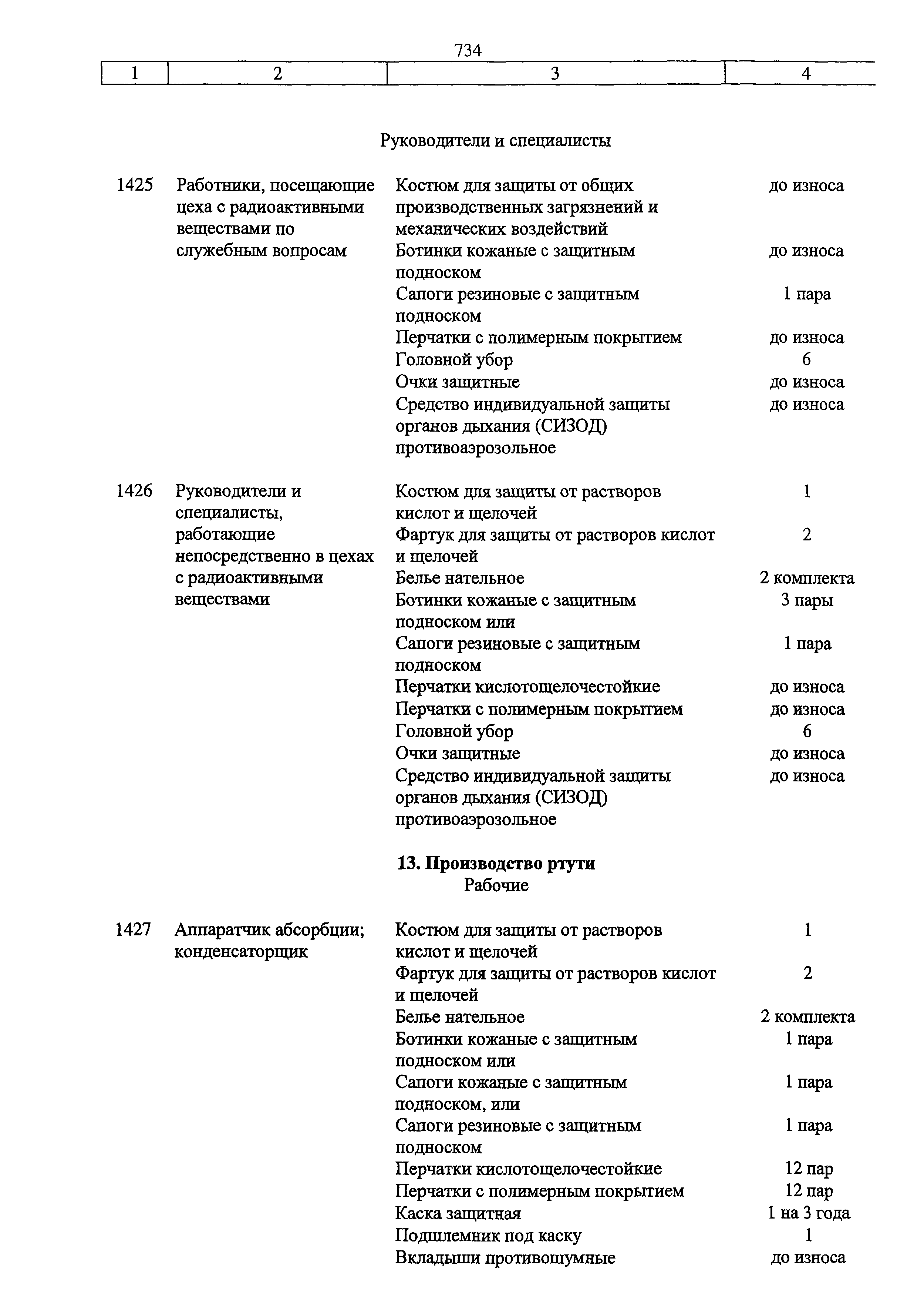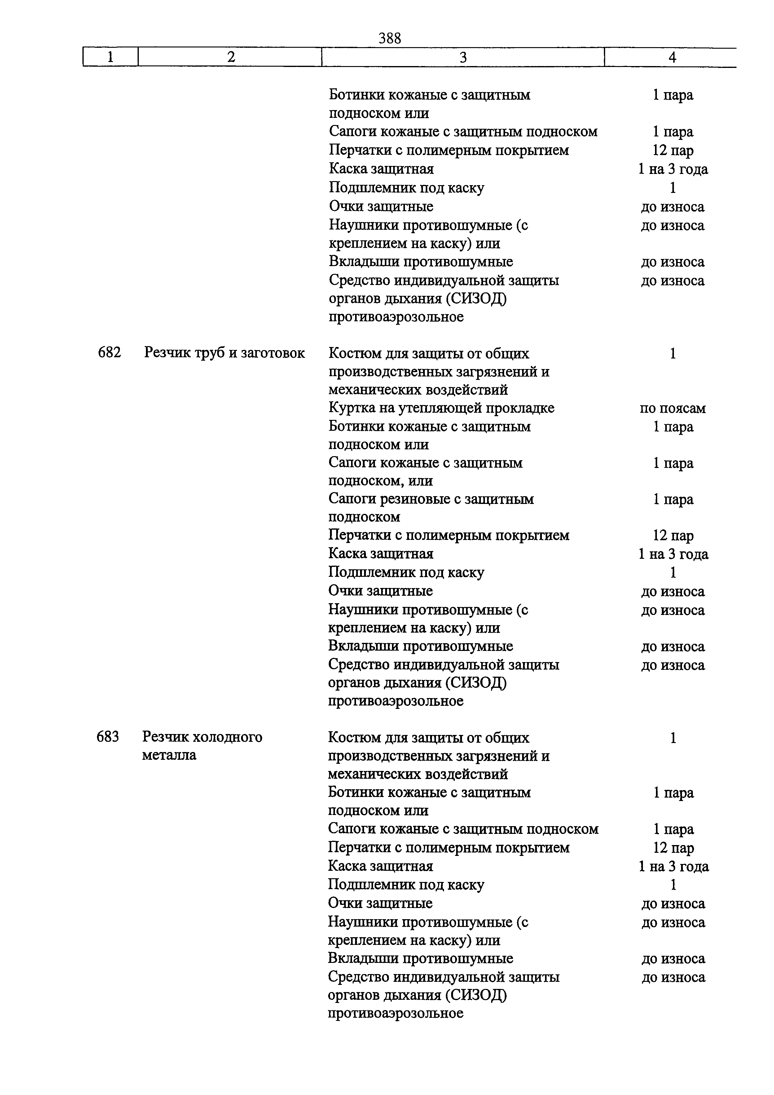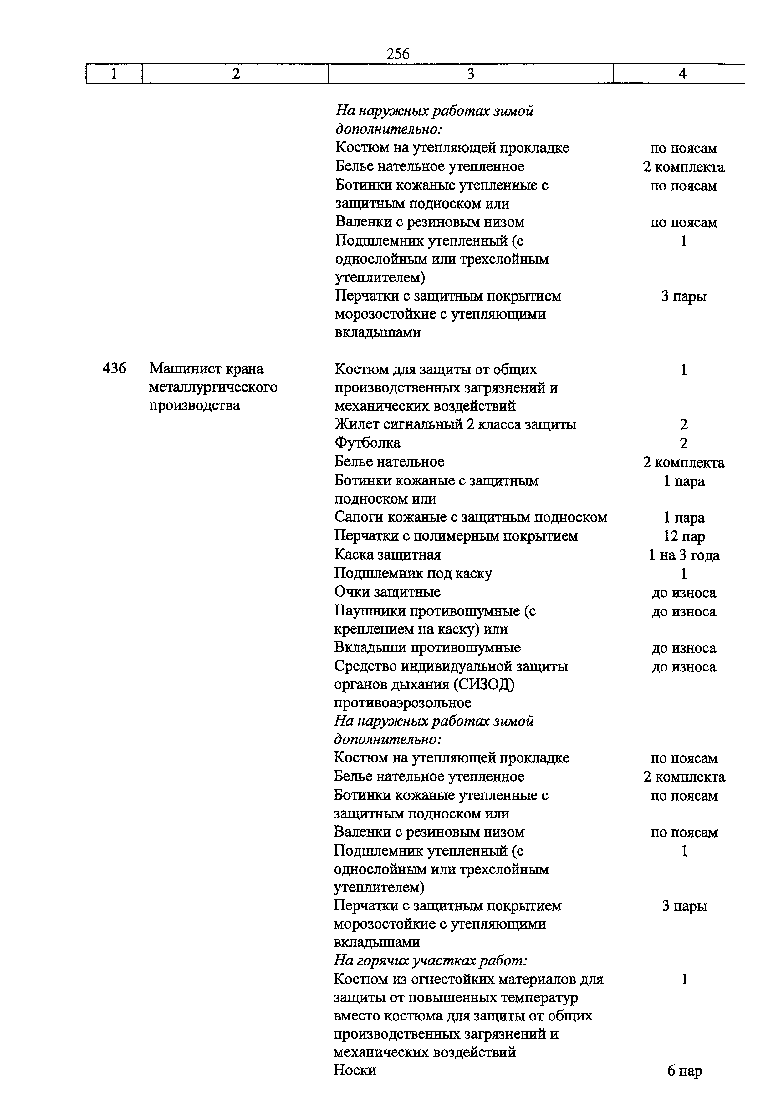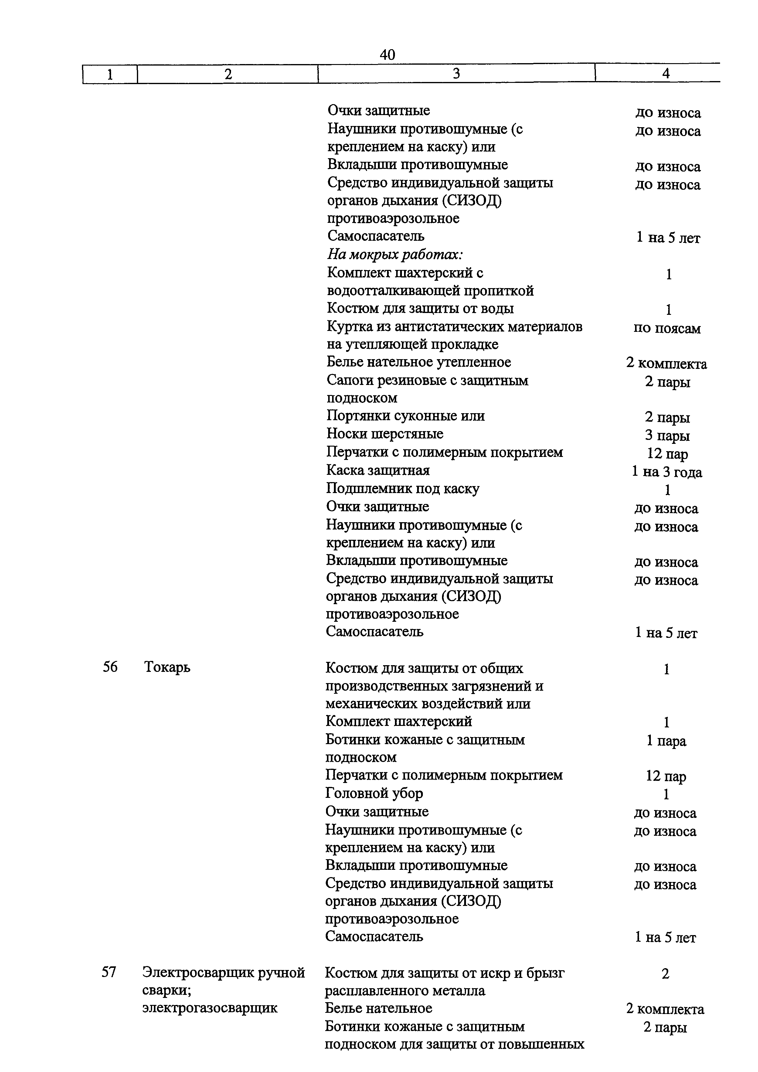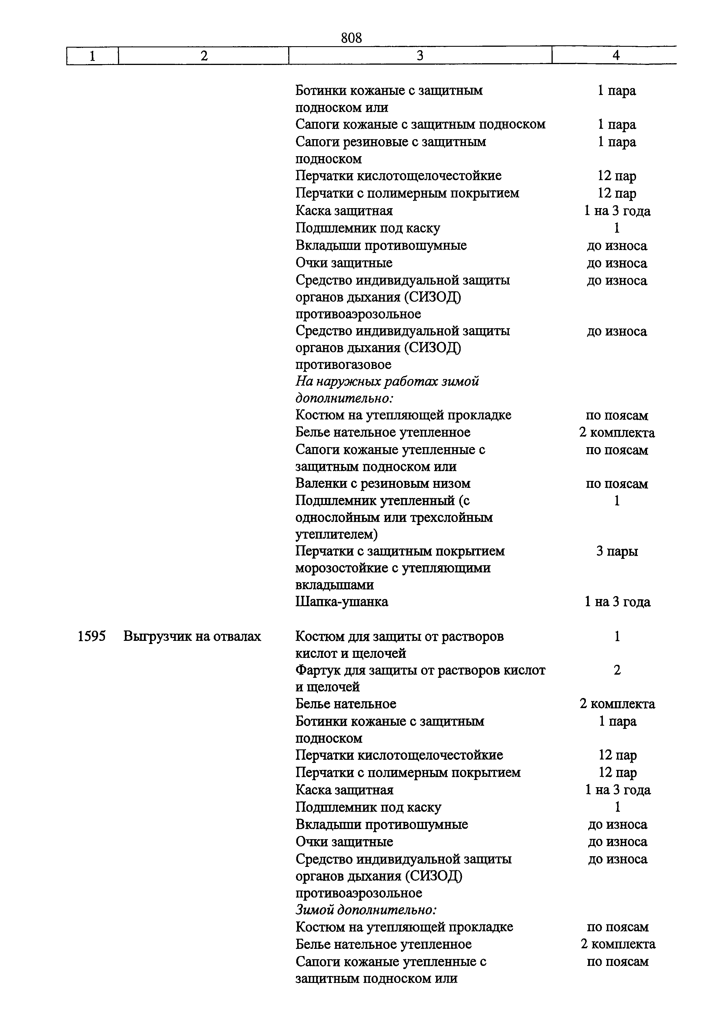 Типовые нормы бесплатной выдачи специальной одежды, специальной обуви и других средств индивидуальной защиты работникам горной и металлургической промышленности и металлургических производств других отраслей промышленности, занятым на работах с вредными и (или) опасными условиями труда, а также на работах, выполняемых в особых температурных условиях или связанных с загрязнением| Статус: | действует | | Название рус.: | Типовые нормы бесплатной выдачи специальной одежды, специальной обуви и других средств индивидуальной защиты работникам горной и металлургической промышленности и металлургических производств других отраслей промышленности, занятым на работах с вредными и (или) опасными условиями труда, а также на работах, выполняемых в особых температурных условиях или связанных с загрязнением | | Дата добавления в базу: | 01.02.2017 | | Дата актуализации: | 01.01.2021 | | Дата введения: | 14.02.2014 | | Область применения: | Нормы утверждаются локальными нормативными актами работодателя на основании результатов аттестации рабочих мест по условиям труда и могут быть включены в коллективный и (или) трудовой договор с указанием типовых норм, по сравнению с которыми улучшается обеспечение работников специальной одеждой, специальной обувью и другими средствами индивидуальной защиты. | | Оглавление: | I Горнодобывающая промышленность 1 Подземные горные работы (шахты) 2 Открытые горные работы и шахтная поверхность 3 Работа на гидравлических установках или с промывочными приборами 4 Дражные работы II Дробление, обогащение, брикетирование, обжиг, агломерация, извлечение металлов и сплавов III Черная металлургия 1 Коксохимическое производство 1.1 Углеподготовительные цеха 1.2 Углеобогатительные цеха 1.3 Производство каменноугольного кокса 1.4 Производство кристаллического нафталина, кумароновой смолы, смолоперерабатывающие цеха 1.5 Производство пиридиновых и фенольно-крезольных продуктов 1.6 Цеха улавливания химических продуктов и газовые цеха 1.7 Цеха ректификации сырого бензола 1.8 Цеха очистки коксового газа от сероводорода 1.9 Производство пекового кокса 1.10 Производство термоантрацита 2 Доменное производство 3 Сталеплавильное производство 3.1 Установки непрерывной разливки стали 4 Производство ферросплавов 4.1 Электролитическое производство 4.2 Производство электролитического хрома 4.3 Производство феррованадия 4.4 Подготовка шихты, обжиг руд и концентратов 4.5 Разливка и разделка ферросплавов 4.6 Обжиг извести 4.7 Общие профессии и должности ферросплавного производства 5 Прокатное производство 6 Производство труб (прокатка, сварка и волочение) 7 Колесопрокатное и бандажное производства 8 Валопрокатное производство 9 Производство рельсовых скреплений 10 Производство баллонов 11 Труболитейное производство 12 Производство метизов 12.1 Производство металлических канатов, сеток, пружин и пружинной ленты, щеток, цепей, колючей проволоки и других метизов 12.2 Волочение проволоки, калибровка и шлифовка металла 12.3 Изготовление волок 12.4 Холодноштамповочные и кузнечно-прессовые работы 12.5 Термическая обработка 12.6 Травление металла, защитные покрытия проволоки и извлечение железного купороса 12.7 Производство металлических электродов и порошковой проволоки 13 Производство огнеупоров 13.1 Огнеупоры 13.2 Карборундовые стержни 13.3 Высокоогнеупорные окислы 14 Ремонт 
