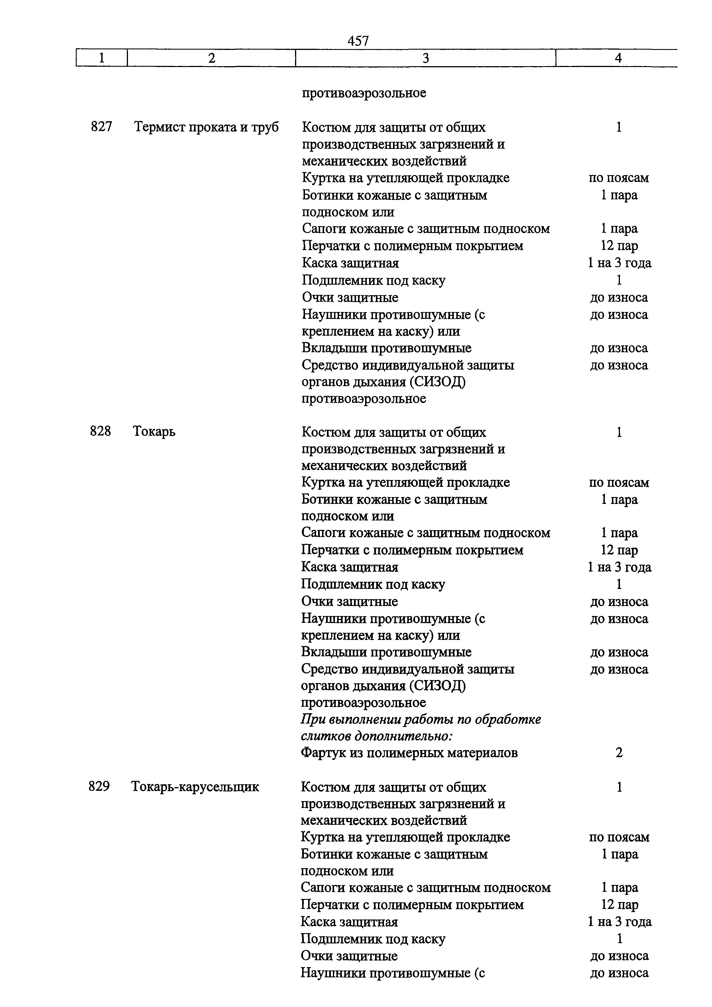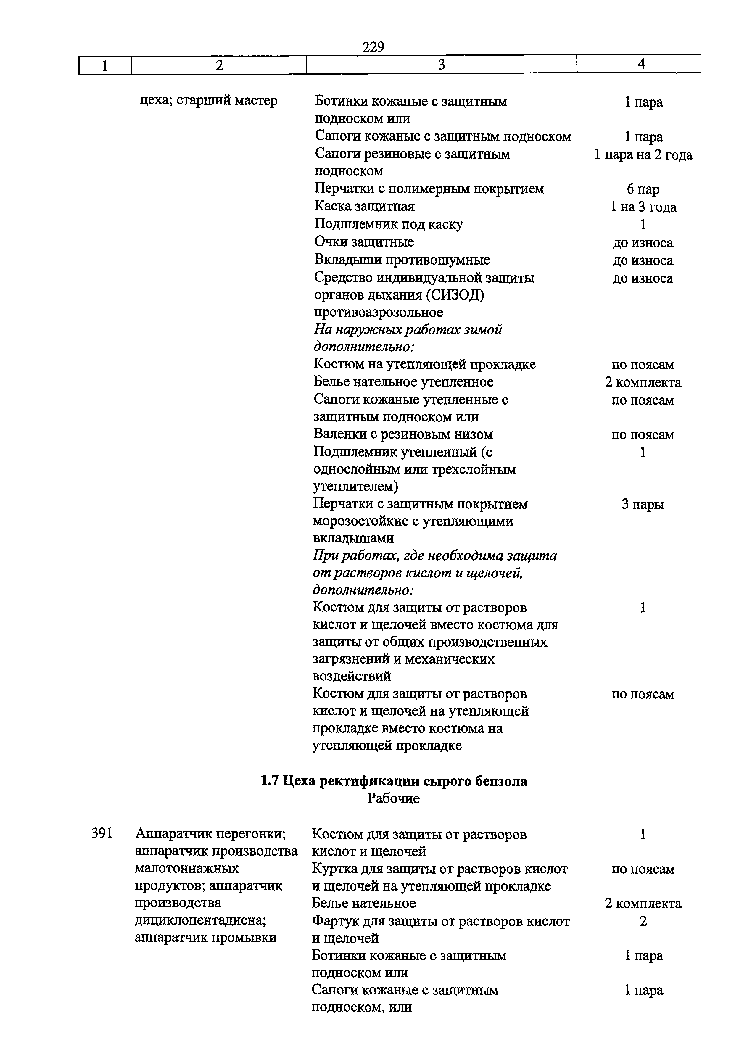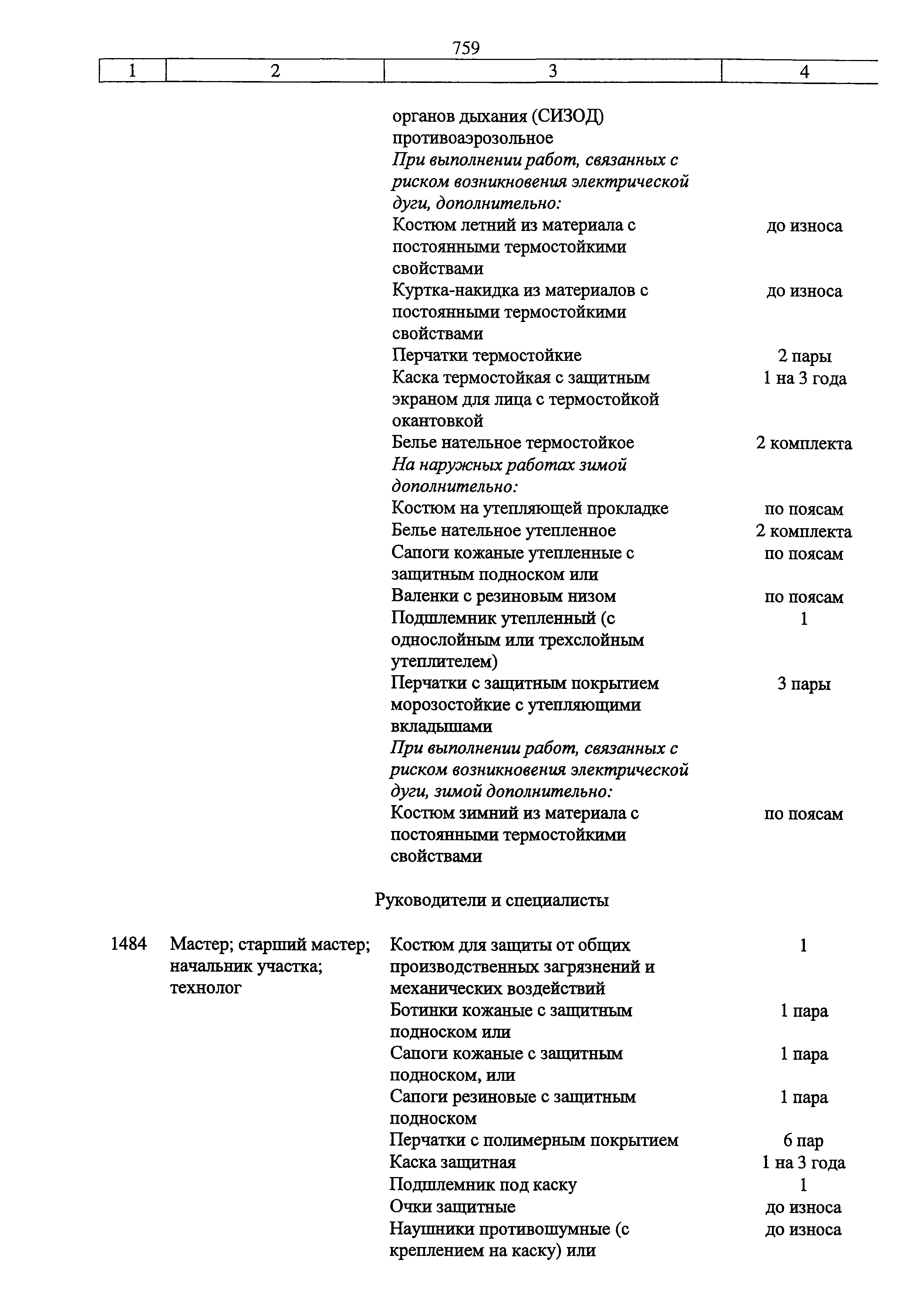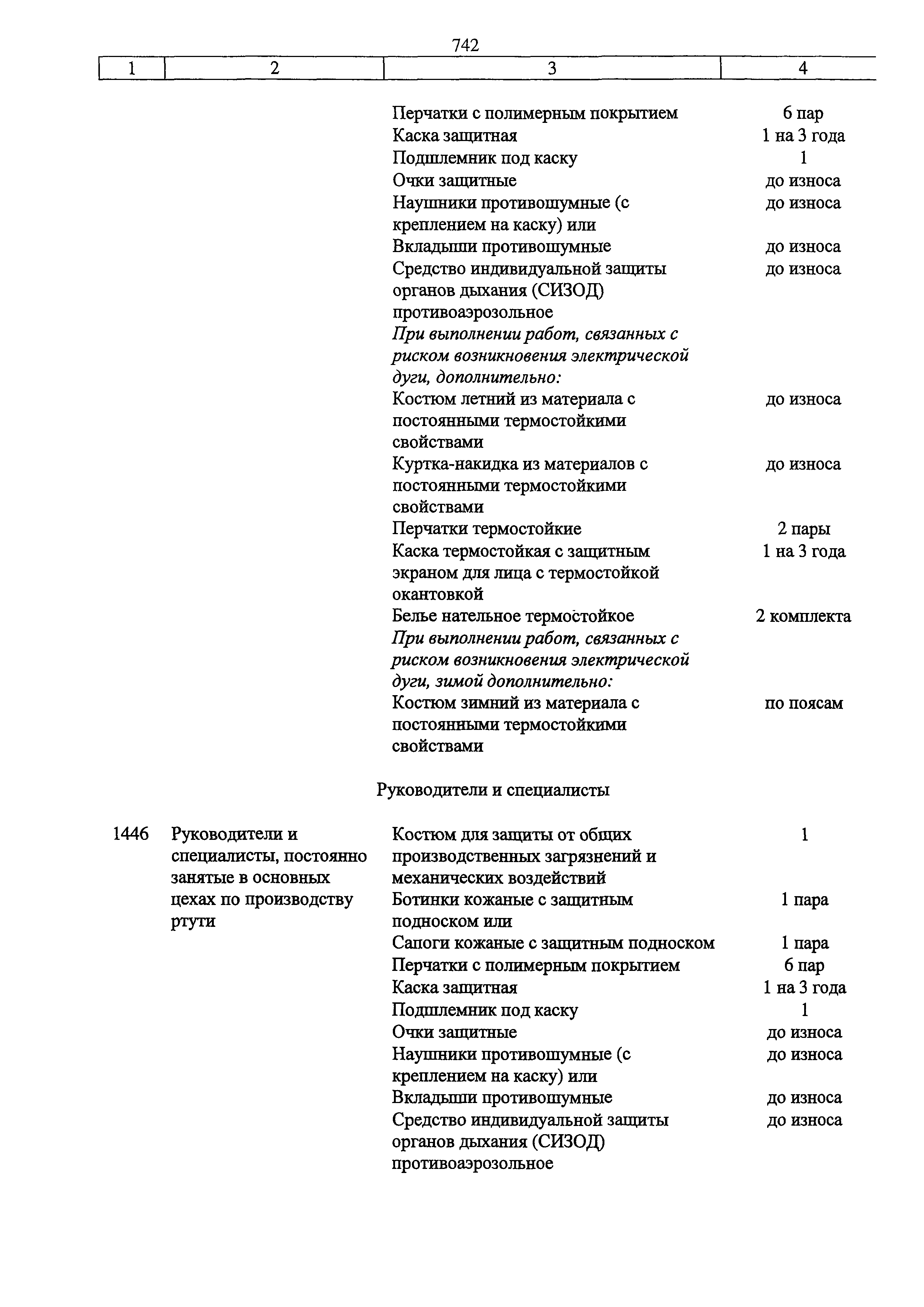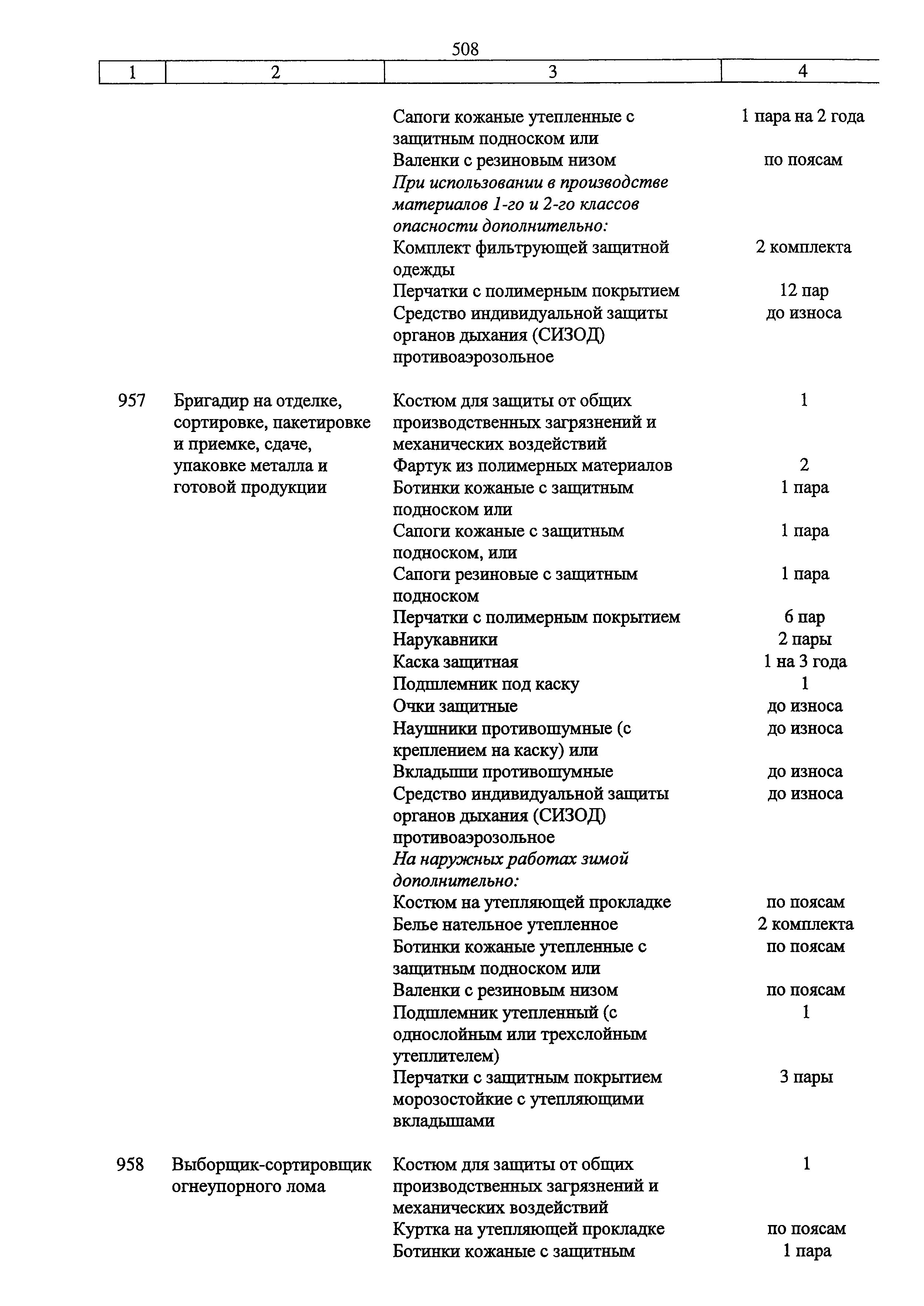 Типовые нормы бесплатной выдачи специальной одежды, специальной обуви и других средств индивидуальной защиты работникам горной и металлургической промышленности и металлургических производств других отраслей промышленности, занятым на работах с вредными и (или) опасными условиями труда, а также на работах, выполняемых в особых температурных условиях или связанных с загрязнением| Статус: | действует | | Название рус.: | Типовые нормы бесплатной выдачи специальной одежды, специальной обуви и других средств индивидуальной защиты работникам горной и металлургической промышленности и металлургических производств других отраслей промышленности, занятым на работах с вредными и (или) опасными условиями труда, а также на работах, выполняемых в особых температурных условиях или связанных с загрязнением | | Дата добавления в базу: | 01.02.2017 | | Дата актуализации: | 01.01.2021 | | Дата введения: | 14.02.2014 | | Область применения: | Нормы утверждаются локальными нормативными актами работодателя на основании результатов аттестации рабочих мест по условиям труда и могут быть включены в коллективный и (или) трудовой договор с указанием типовых норм, по сравнению с которыми улучшается обеспечение работников специальной одеждой, специальной обувью и другими средствами индивидуальной защиты. | | Оглавление: | I Горнодобывающая промышленность 1 Подземные горные работы (шахты) 2 Открытые горные работы и шахтная поверхность 3 Работа на гидравлических установках или с промывочными приборами 4 Дражные работы II Дробление, обогащение, брикетирование, обжиг, агломерация, извлечение металлов и сплавов III Черная металлургия 1 Коксохимическое производство 1.1 Углеподготовительные цеха 1.2 Углеобогатительные цеха 1.3 Производство каменноугольного кокса 1.4 Производство кристаллического нафталина, кумароновой смолы, смолоперерабатывающие цеха 1.5 Производство пиридиновых и фенольно-крезольных продуктов 1.6 Цеха улавливания химических продуктов и газовые цеха 1.7 Цеха ректификации сырого бензола 1.8 Цеха очистки коксового газа от сероводорода 1.9 Производство пекового кокса 1.10 Производство термоантрацита 2 Доменное производство 3 Сталеплавильное производство 3.1 Установки непрерывной разливки стали 4 Производство ферросплавов 4.1 Электролитическое производство 4.2 Производство электролитического хрома 4.3 Производство феррованадия 4.4 Подготовка шихты, обжиг руд и концентратов 4.5 Разливка и разделка ферросплавов 4.6 Обжиг извести 4.7 Общие профессии и должности ферросплавного производства 5 Прокатное производство 6 Производство труб (прокатка, сварка и волочение) 7 Колесопрокатное и бандажное производства 8 Валопрокатное производство 9 Производство рельсовых скреплений 10 Производство баллонов 11 Труболитейное производство 12 Производство метизов 12.1 Производство металлических канатов, сеток, пружин и пружинной ленты, щеток, цепей, колючей проволоки и других метизов 12.2 Волочение проволоки, калибровка и шлифовка металла 12.3 Изготовление волок 12.4 Холодноштамповочные и кузнечно-прессовые работы 12.5 Термическая обработка 12.6 Травление металла, защитные покрытия проволоки и извлечение железного купороса 12.7 Производство металлических электродов и порошковой проволоки 13 Производство огнеупоров 13.1 Огнеупоры 13.2 Карборундовые стержни 13.3 Высокоогнеупорные окислы 14 Ремонт 