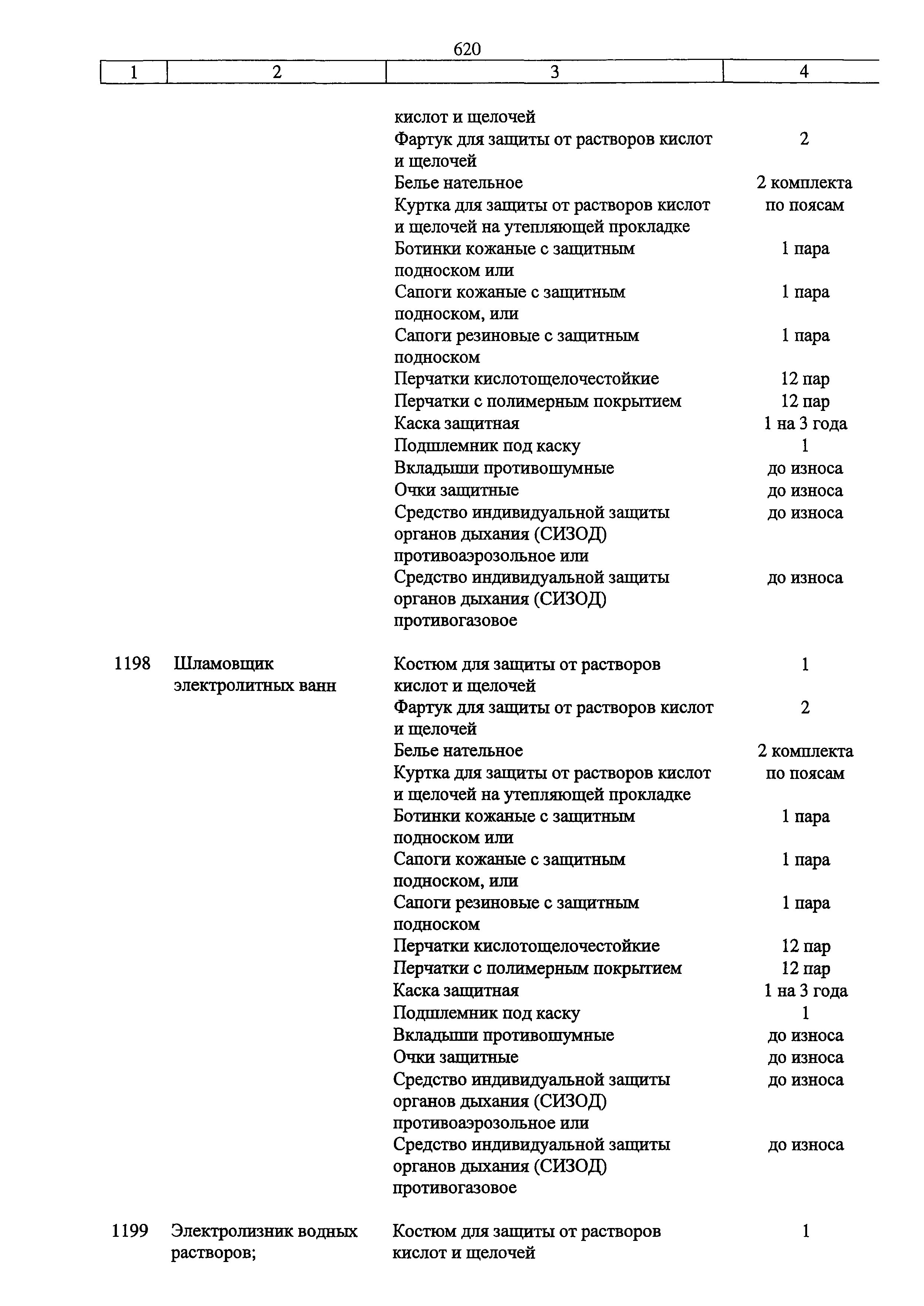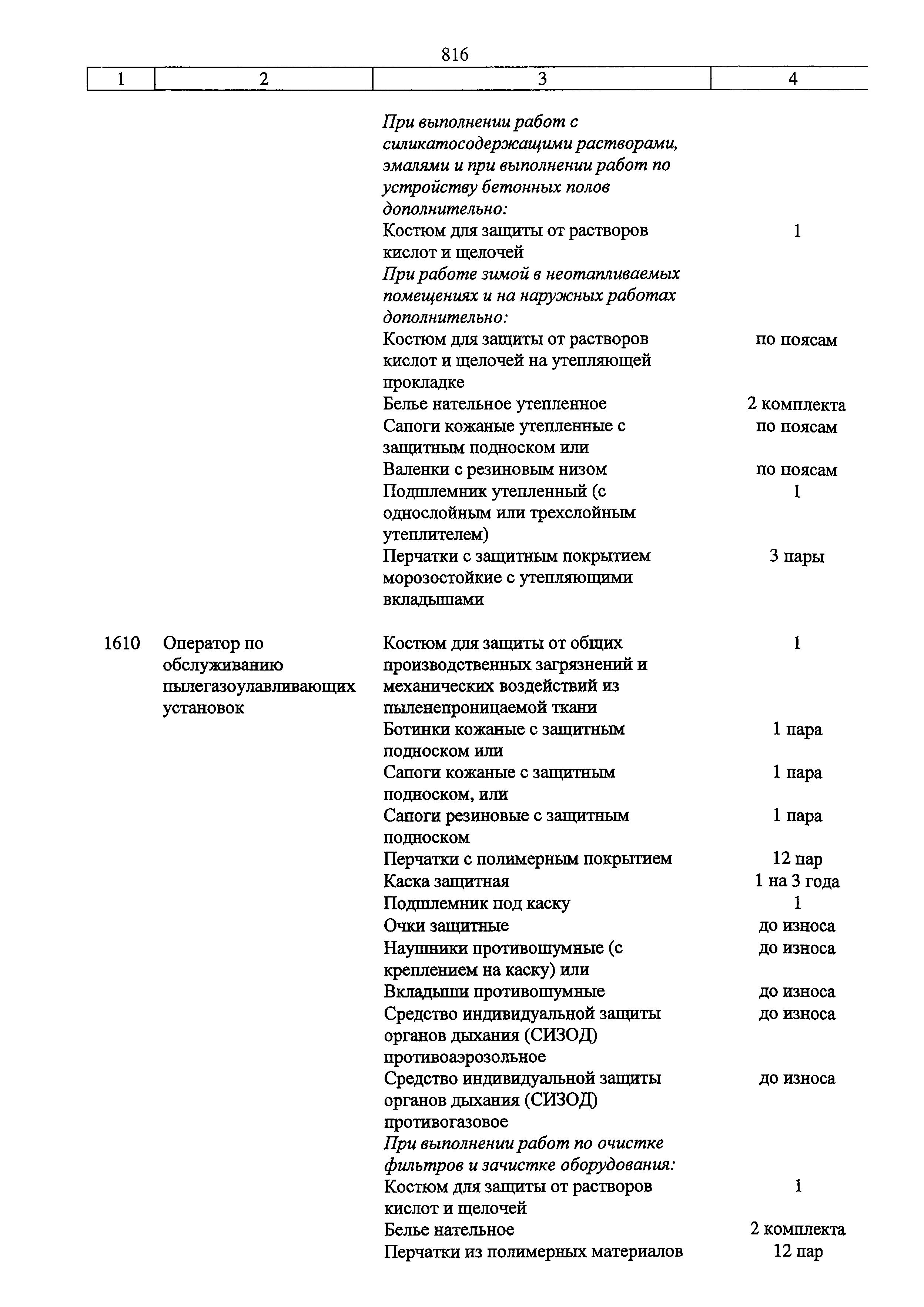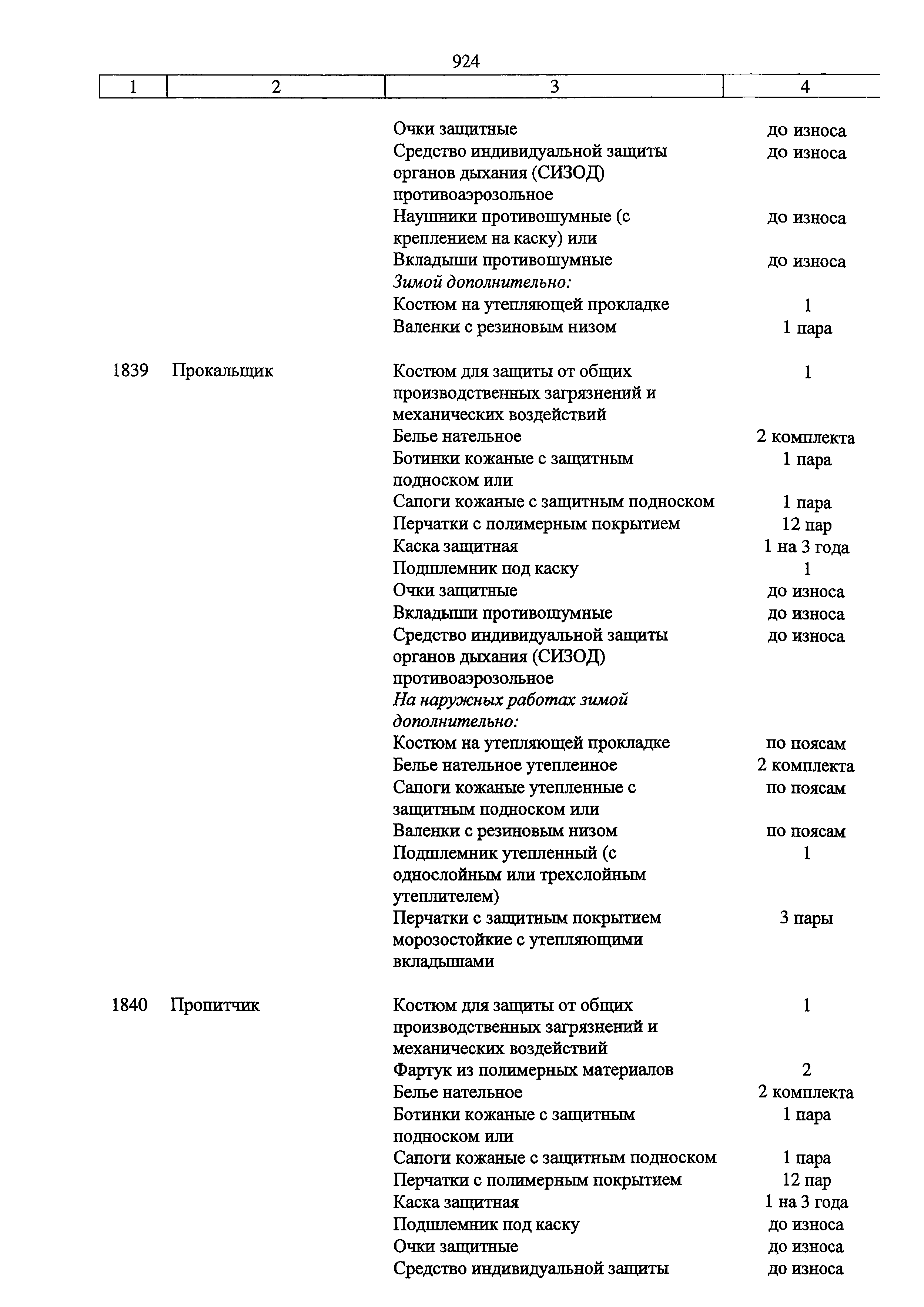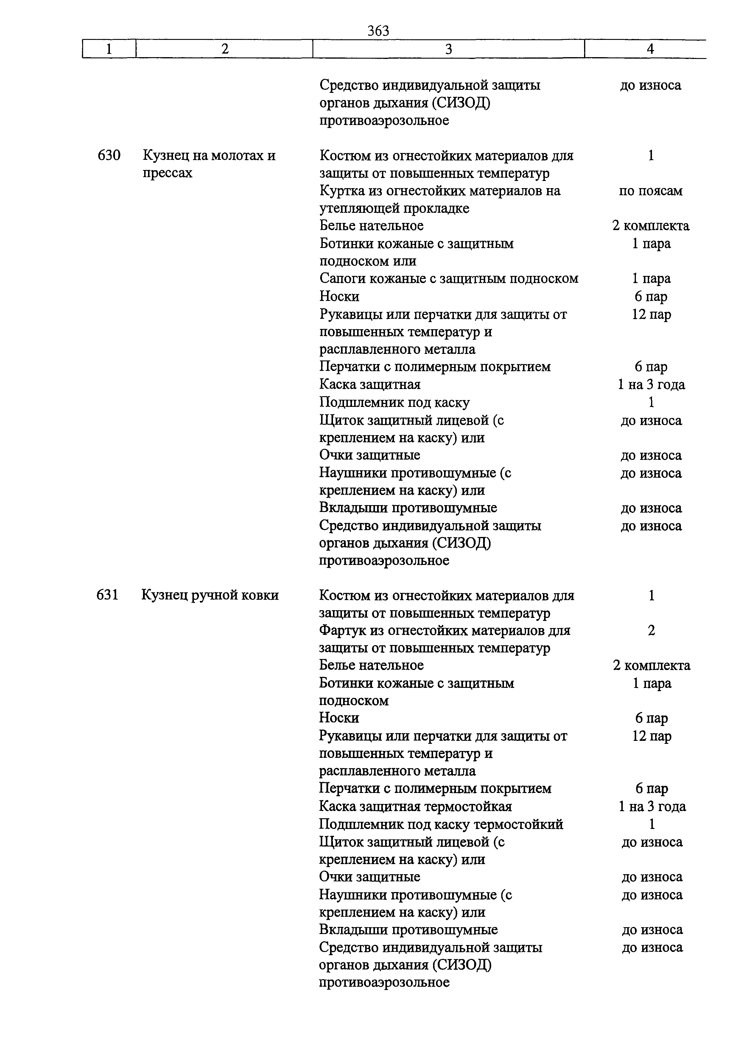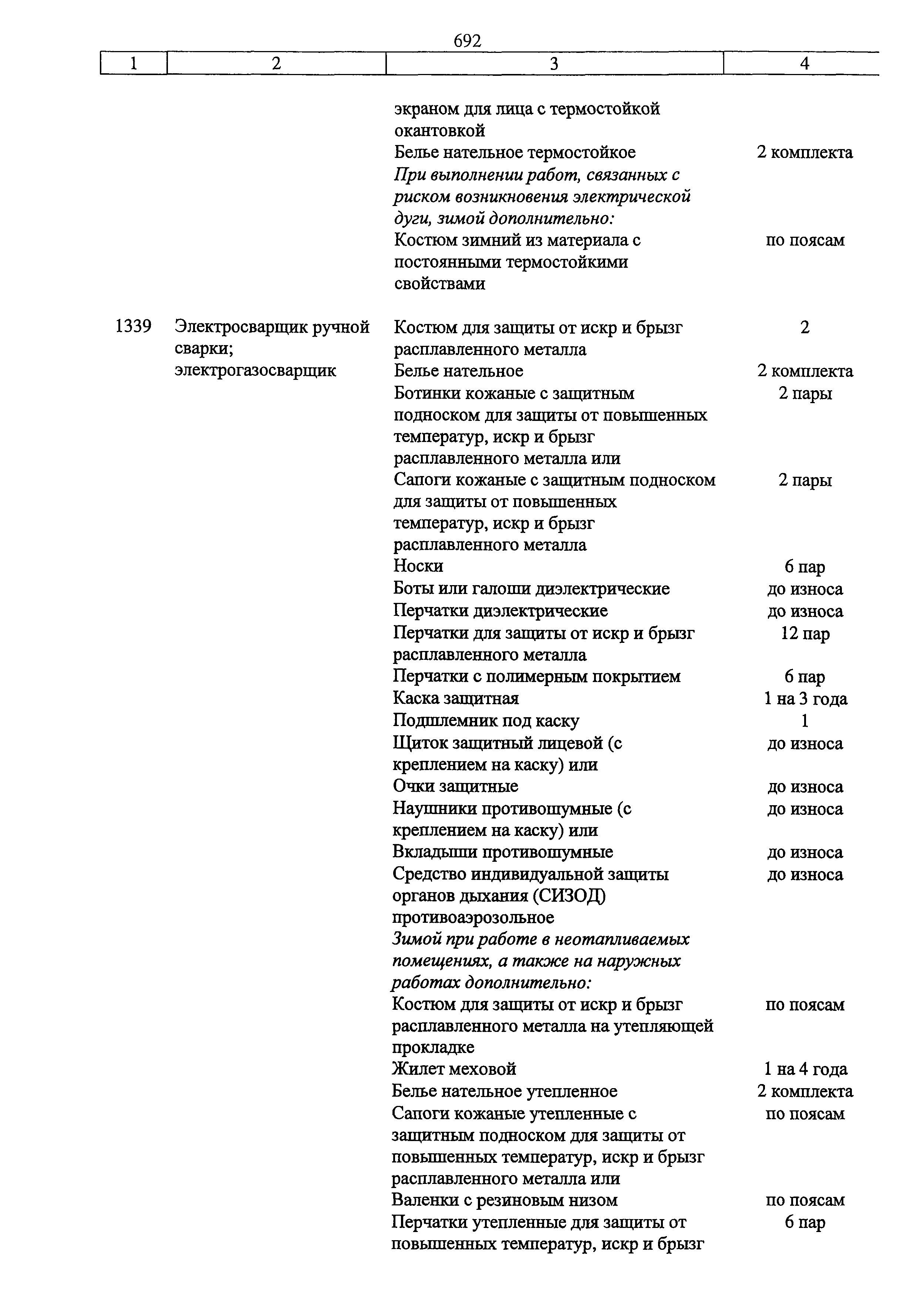Типовые нормы бесплатной выдачи специальной одежды, специальной обуви и других средств индивидуальной защиты работникам горной и металлургической промышленности и металлургических производств других отраслей промышленности, занятым на работах с вредными и (или) опасными условиями труда, а также на работах, выполняемых в особых температурных условиях или связанных с загрязнением| Статус: | действует | | Название рус.: | Типовые нормы бесплатной выдачи специальной одежды, специальной обуви и других средств индивидуальной защиты работникам горной и металлургической промышленности и металлургических производств других отраслей промышленности, занятым на работах с вредными и (или) опасными условиями труда, а также на работах, выполняемых в особых температурных условиях или связанных с загрязнением | | Дата добавления в базу: | 01.02.2017 | | Дата актуализации: | 01.01.2021 | | Дата введения: | 14.02.2014 | | Область применения: | Нормы утверждаются локальными нормативными актами работодателя на основании результатов аттестации рабочих мест по условиям труда и могут быть включены в коллективный и (или) трудовой договор с указанием типовых норм, по сравнению с которыми улучшается обеспечение работников специальной одеждой, специальной обувью и другими средствами индивидуальной защиты. | | Оглавление: | I Горнодобывающая промышленность 1 Подземные горные работы (шахты) 2 Открытые горные работы и шахтная поверхность 3 Работа на гидравлических установках или с промывочными приборами 4 Дражные работы II Дробление, обогащение, брикетирование, обжиг, агломерация, извлечение металлов и сплавов III Черная металлургия 1 Коксохимическое производство 1.1 Углеподготовительные цеха 1.2 Углеобогатительные цеха 1.3 Производство каменноугольного кокса 1.4 Производство кристаллического нафталина, кумароновой смолы, смолоперерабатывающие цеха 1.5 Производство пиридиновых и фенольно-крезольных продуктов 1.6 Цеха улавливания химических продуктов и газовые цеха 1.7 Цеха ректификации сырого бензола 1.8 Цеха очистки коксового газа от сероводорода 1.9 Производство пекового кокса 1.10 Производство термоантрацита 2 Доменное производство 3 Сталеплавильное производство 3.1 Установки непрерывной разливки стали 4 Производство ферросплавов 4.1 Электролитическое производство 4.2 Производство электролитического хрома 4.3 Производство феррованадия 4.4 Подготовка шихты, обжиг руд и концентратов 4.5 Разливка и разделка ферросплавов 4.6 Обжиг извести 4.7 Общие профессии и должности ферросплавного производства 5 Прокатное производство 6 Производство труб (прокатка, сварка и волочение) 7 Колесопрокатное и бандажное производства 8 Валопрокатное производство 9 Производство рельсовых скреплений 10 Производство баллонов 11 Труболитейное производство 12 Производство метизов 12.1 Производство металлических канатов, сеток, пружин и пружинной ленты, щеток, цепей, колючей проволоки и других метизов 12.2 Волочение проволоки, калибровка и шлифовка металла 12.3 Изготовление волок 12.4 Холодноштамповочные и кузнечно-прессовые работы 12.5 Термическая обработка 12.6 Травление металла, защитные покрытия проволоки и извлечение железного купороса 12.7 Производство металлических электродов и порошковой проволоки 13 Производство огнеупоров 13.1 Огнеупоры 13.2 Карборундовые стержни 13.3 Высокоогнеупорные окислы 14 Ремонт 