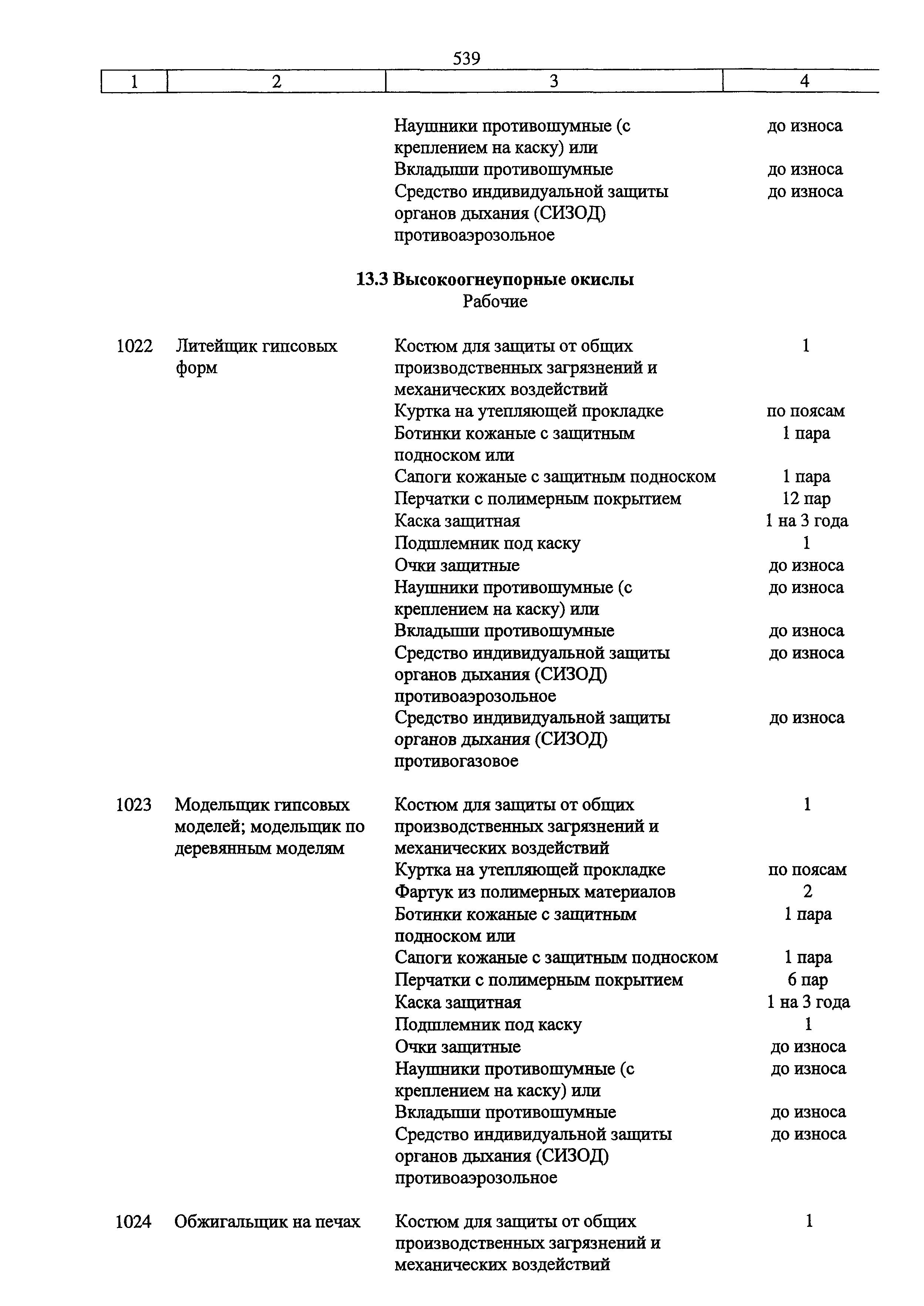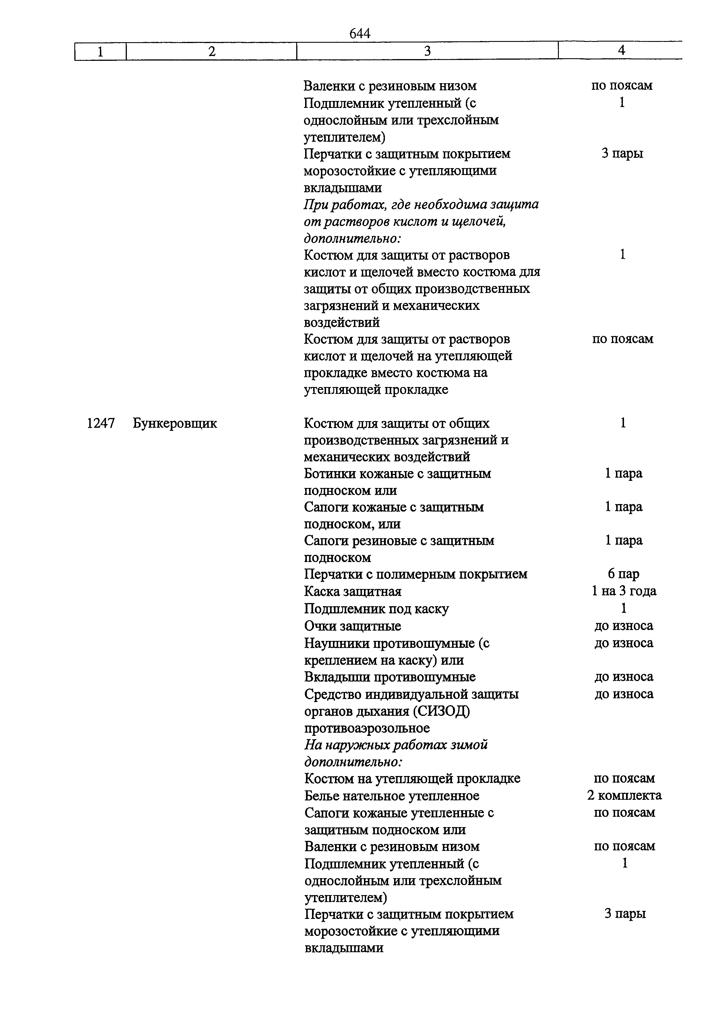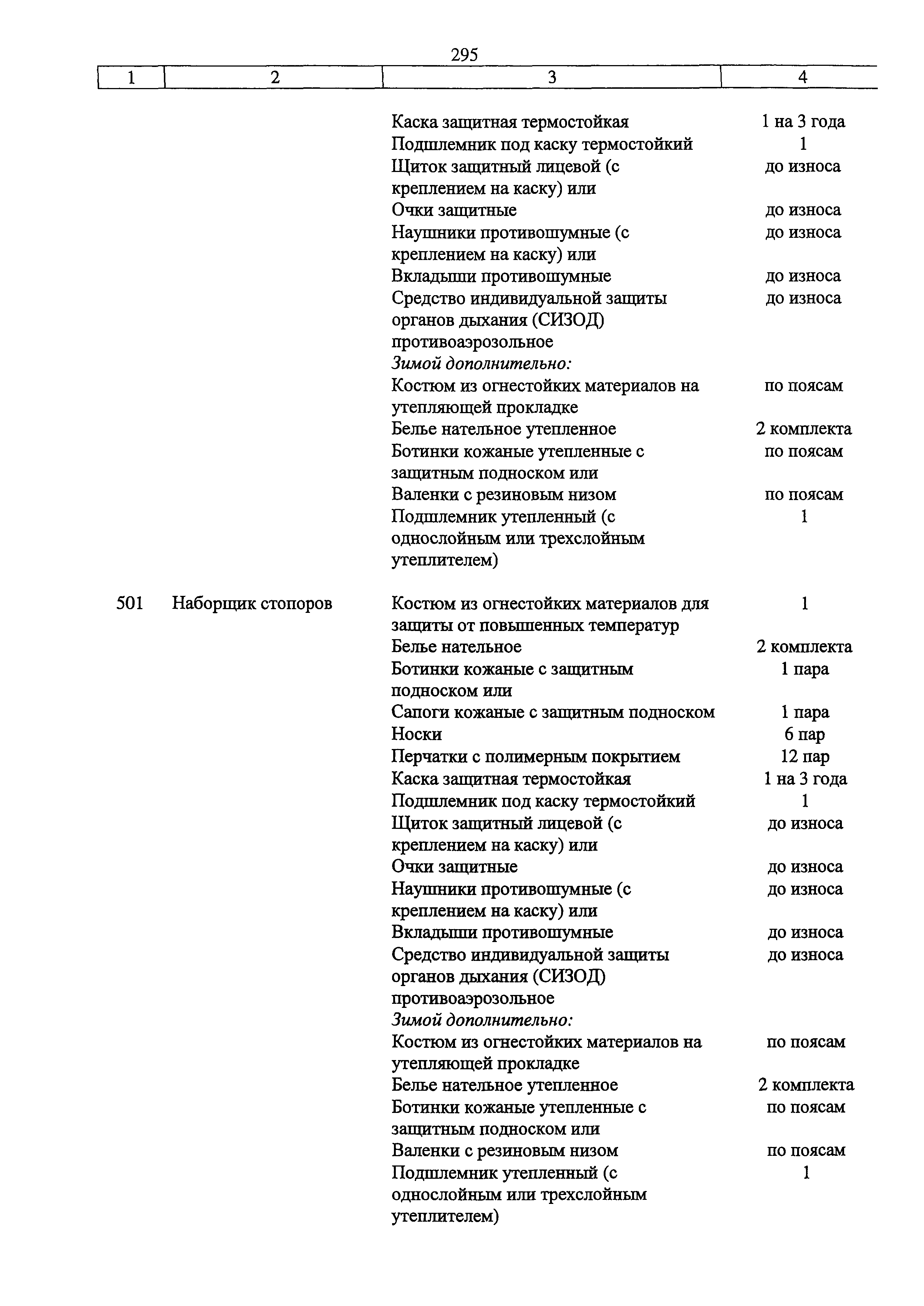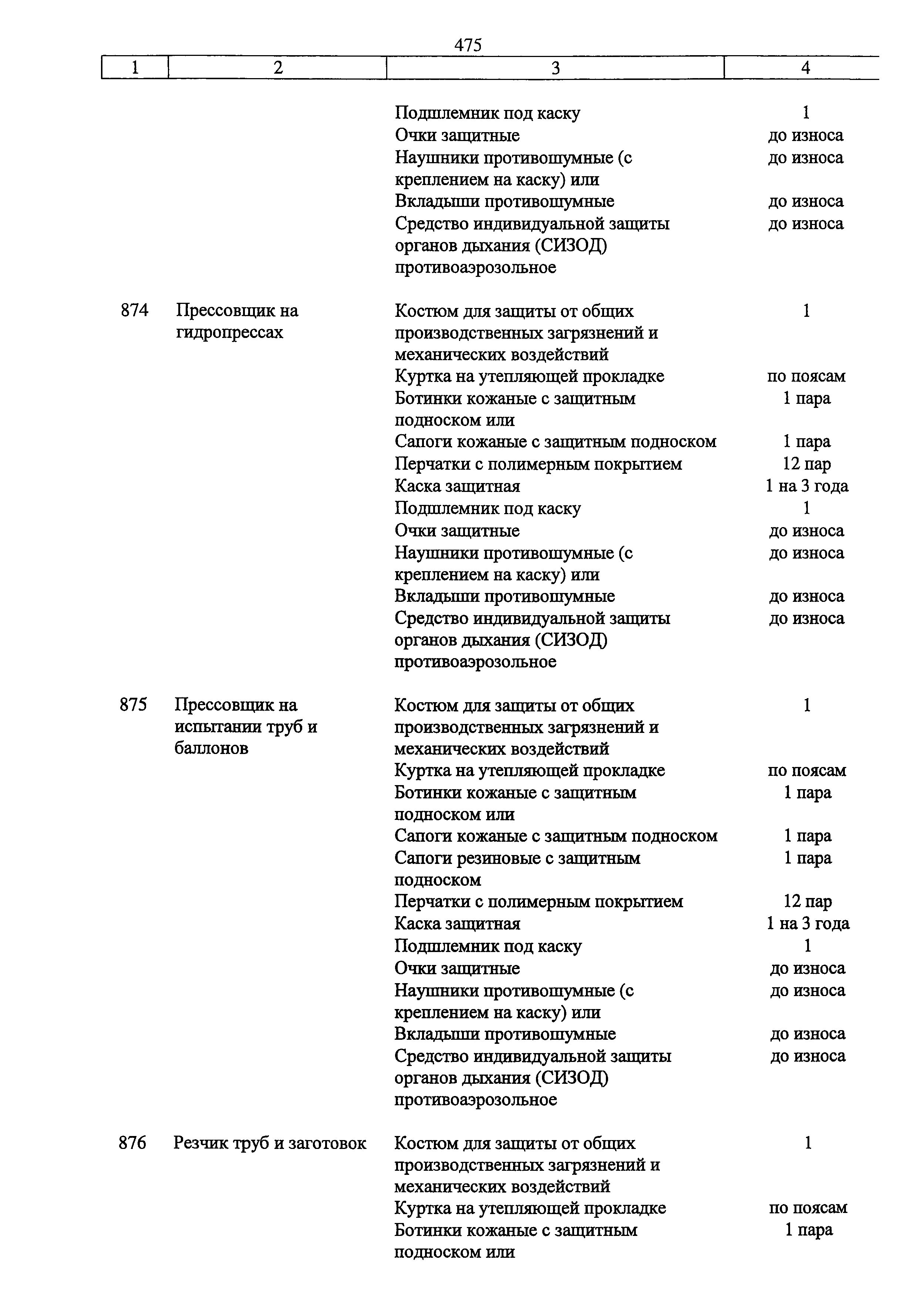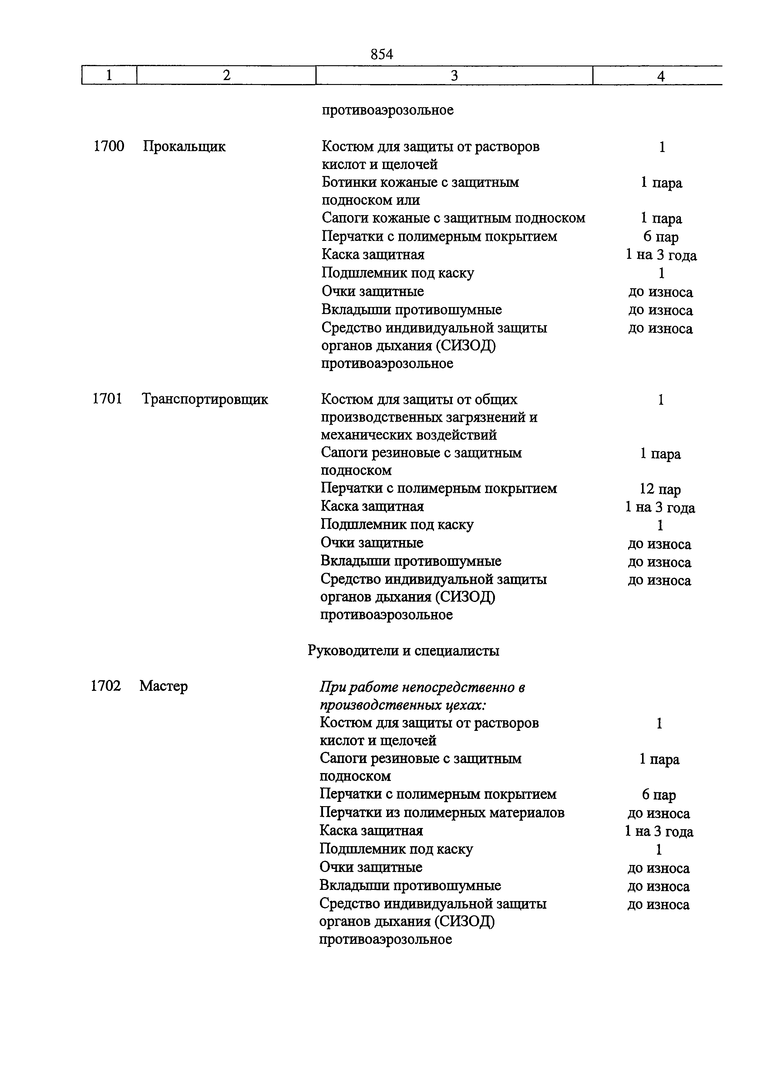 Типовые нормы бесплатной выдачи специальной одежды, специальной обуви и других средств индивидуальной защиты работникам горной и металлургической промышленности и металлургических производств других отраслей промышленности, занятым на работах с вредными и (или) опасными условиями труда, а также на работах, выполняемых в особых температурных условиях или связанных с загрязнением| Статус: | действует | | Название рус.: | Типовые нормы бесплатной выдачи специальной одежды, специальной обуви и других средств индивидуальной защиты работникам горной и металлургической промышленности и металлургических производств других отраслей промышленности, занятым на работах с вредными и (или) опасными условиями труда, а также на работах, выполняемых в особых температурных условиях или связанных с загрязнением | | Дата добавления в базу: | 01.02.2017 | | Дата актуализации: | 01.01.2021 | | Дата введения: | 14.02.2014 | | Область применения: | Нормы утверждаются локальными нормативными актами работодателя на основании результатов аттестации рабочих мест по условиям труда и могут быть включены в коллективный и (или) трудовой договор с указанием типовых норм, по сравнению с которыми улучшается обеспечение работников специальной одеждой, специальной обувью и другими средствами индивидуальной защиты. | | Оглавление: | I Горнодобывающая промышленность 1 Подземные горные работы (шахты) 2 Открытые горные работы и шахтная поверхность 3 Работа на гидравлических установках или с промывочными приборами 4 Дражные работы II Дробление, обогащение, брикетирование, обжиг, агломерация, извлечение металлов и сплавов III Черная металлургия 1 Коксохимическое производство 1.1 Углеподготовительные цеха 1.2 Углеобогатительные цеха 1.3 Производство каменноугольного кокса 1.4 Производство кристаллического нафталина, кумароновой смолы, смолоперерабатывающие цеха 1.5 Производство пиридиновых и фенольно-крезольных продуктов 1.6 Цеха улавливания химических продуктов и газовые цеха 1.7 Цеха ректификации сырого бензола 1.8 Цеха очистки коксового газа от сероводорода 1.9 Производство пекового кокса 1.10 Производство термоантрацита 2 Доменное производство 3 Сталеплавильное производство 3.1 Установки непрерывной разливки стали 4 Производство ферросплавов 4.1 Электролитическое производство 4.2 Производство электролитического хрома 4.3 Производство феррованадия 4.4 Подготовка шихты, обжиг руд и концентратов 4.5 Разливка и разделка ферросплавов 4.6 Обжиг извести 4.7 Общие профессии и должности ферросплавного производства 5 Прокатное производство 6 Производство труб (прокатка, сварка и волочение) 7 Колесопрокатное и бандажное производства 8 Валопрокатное производство 9 Производство рельсовых скреплений 10 Производство баллонов 11 Труболитейное производство 12 Производство метизов 12.1 Производство металлических канатов, сеток, пружин и пружинной ленты, щеток, цепей, колючей проволоки и других метизов 12.2 Волочение проволоки, калибровка и шлифовка металла 12.3 Изготовление волок 12.4 Холодноштамповочные и кузнечно-прессовые работы 12.5 Термическая обработка 12.6 Травление металла, защитные покрытия проволоки и извлечение железного купороса 12.7 Производство металлических электродов и порошковой проволоки 13 Производство огнеупоров 13.1 Огнеупоры 13.2 Карборундовые стержни 13.3 Высокоогнеупорные окислы 14 Ремонт 