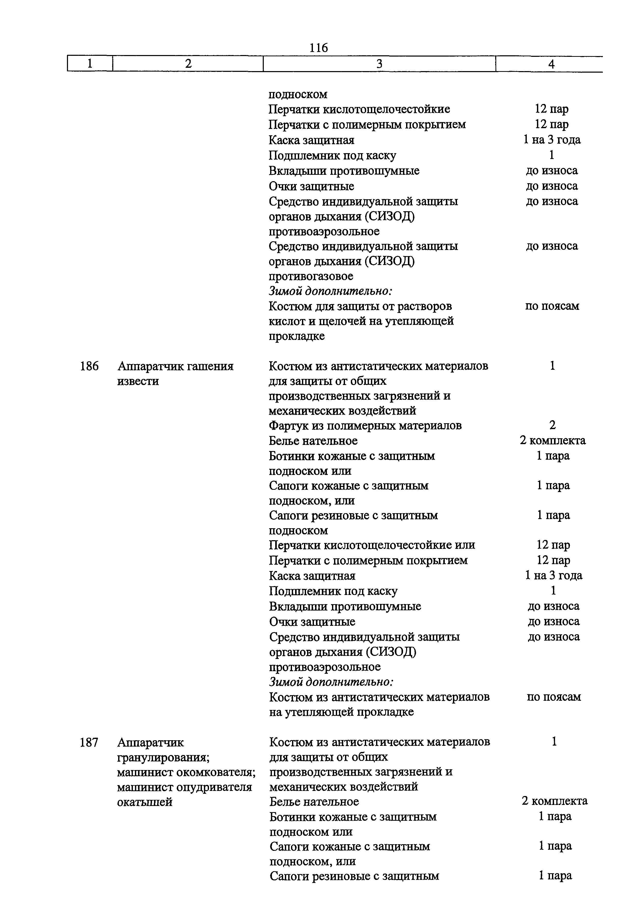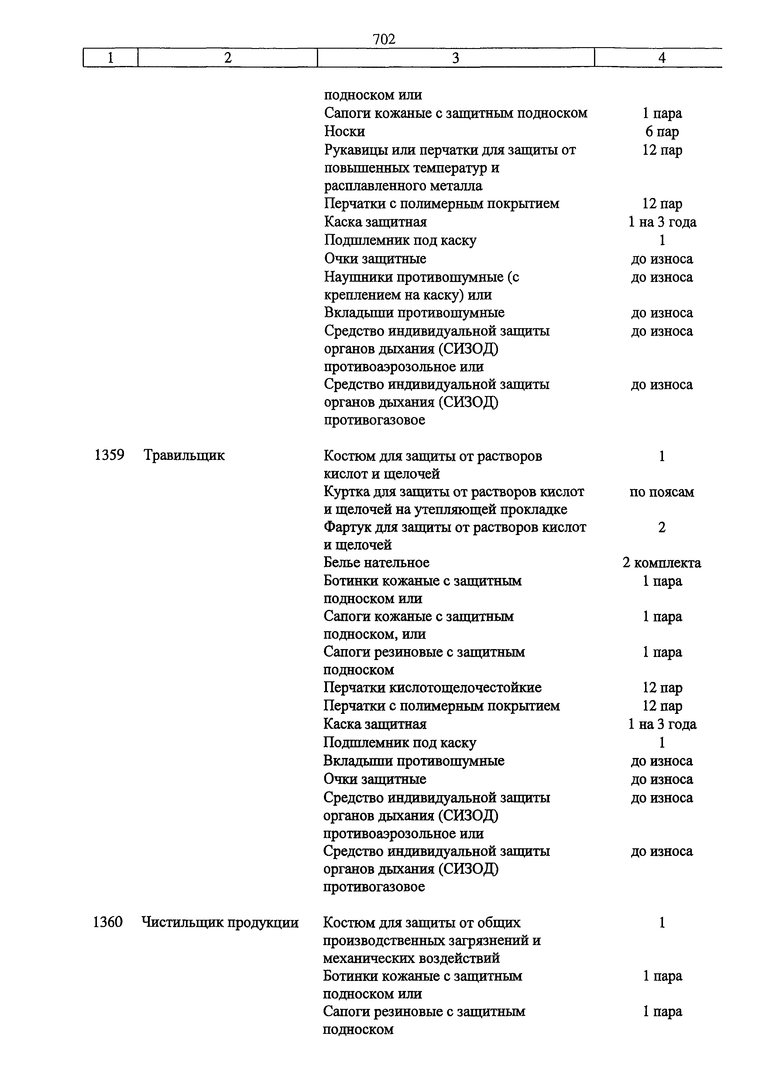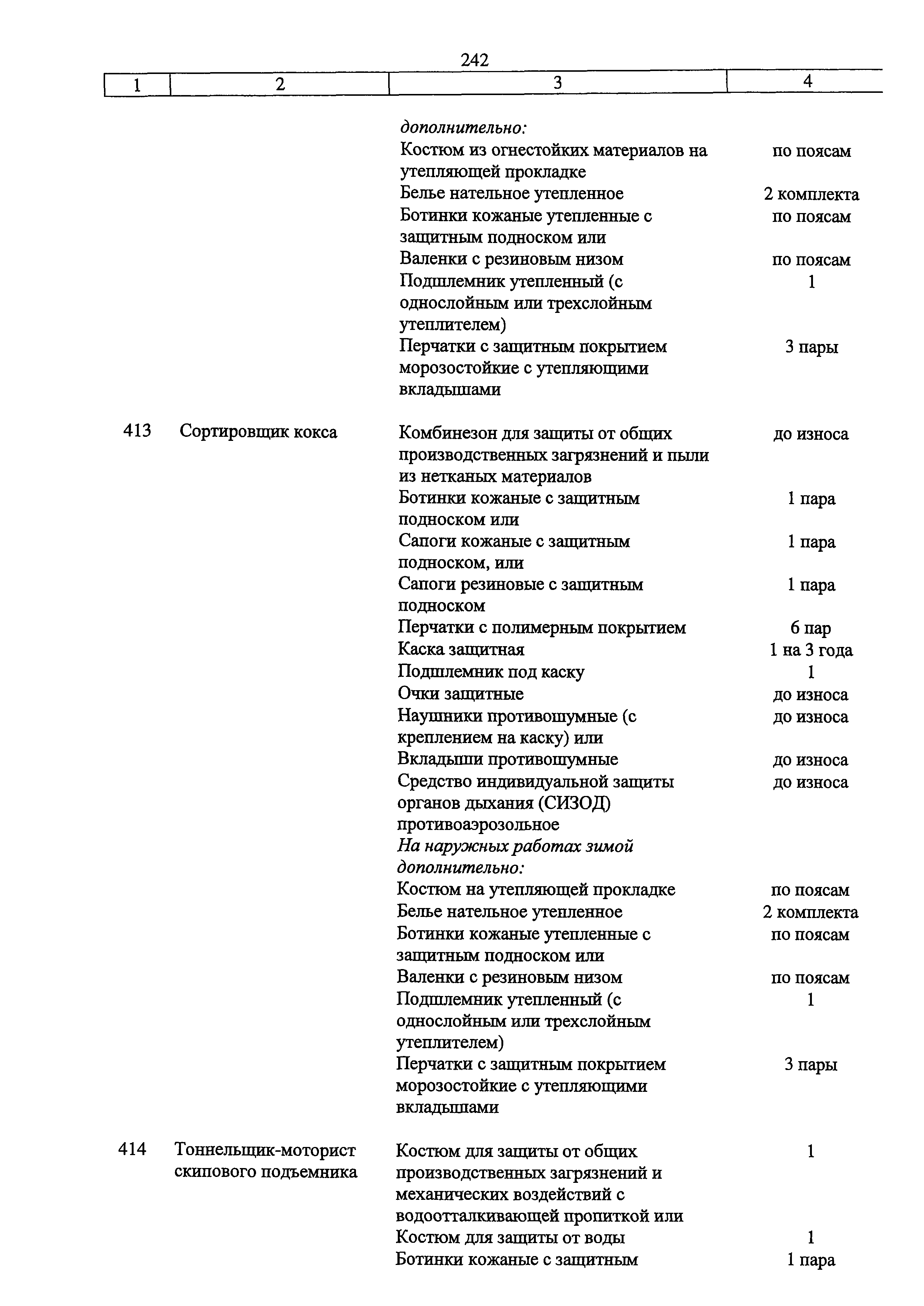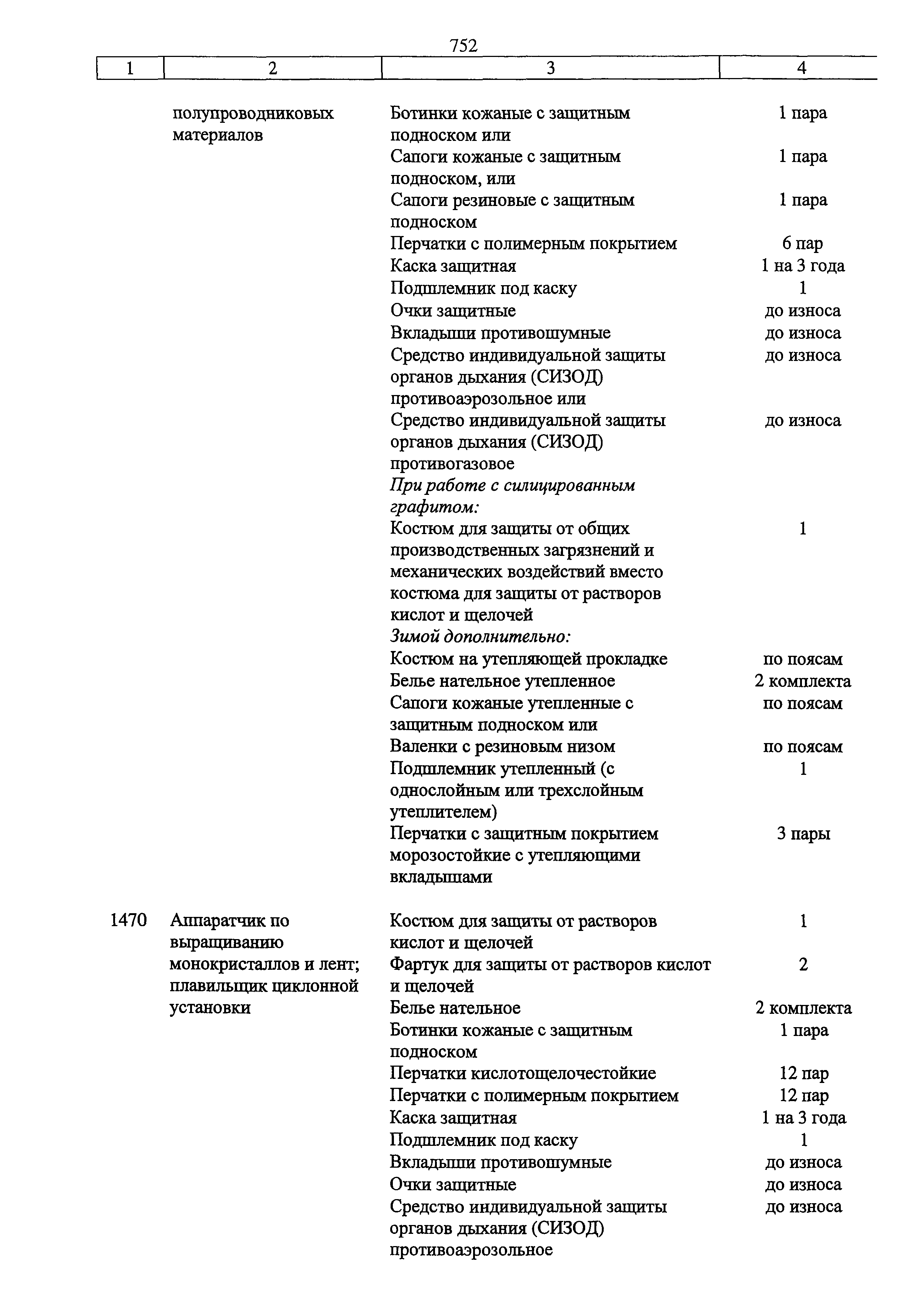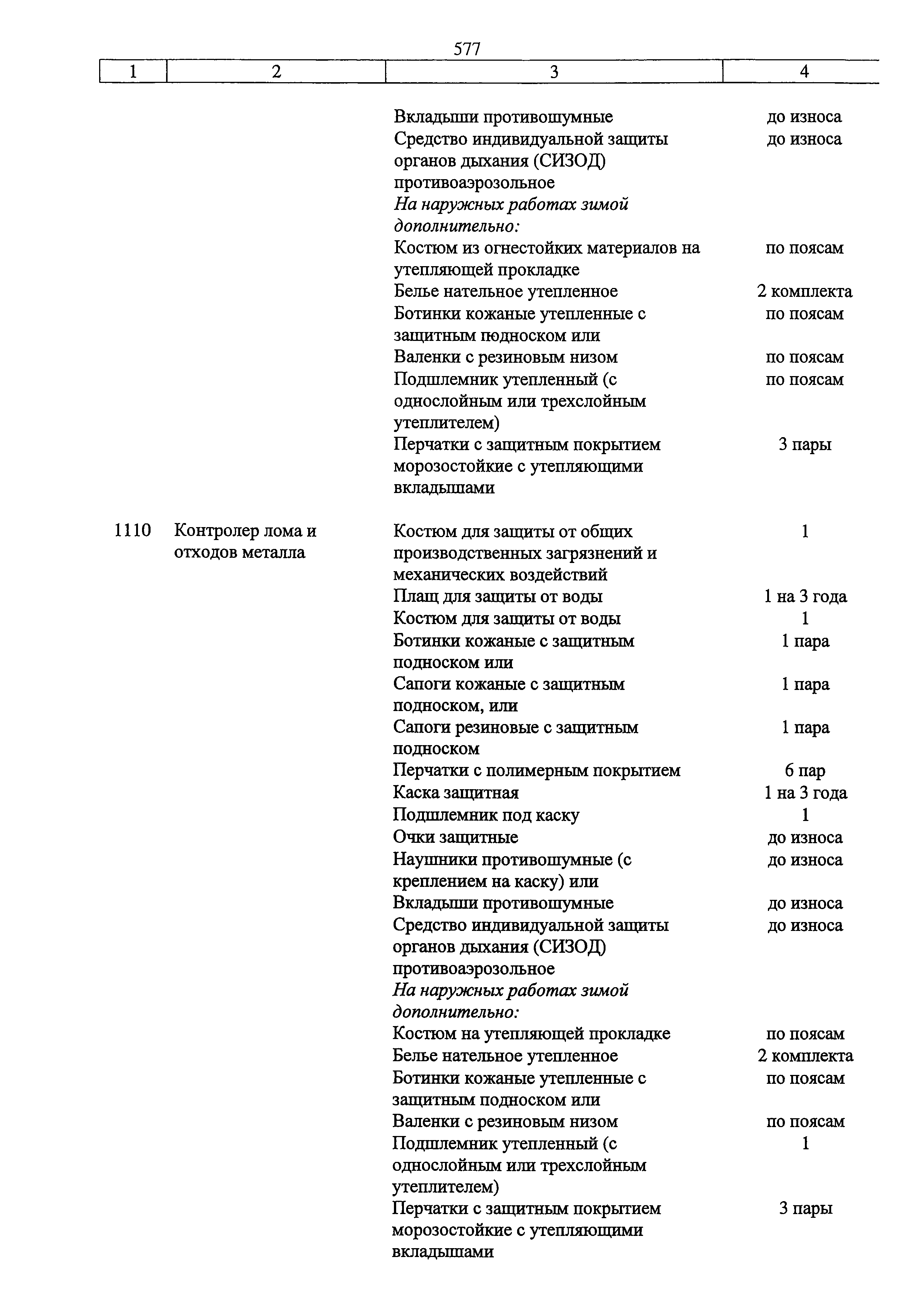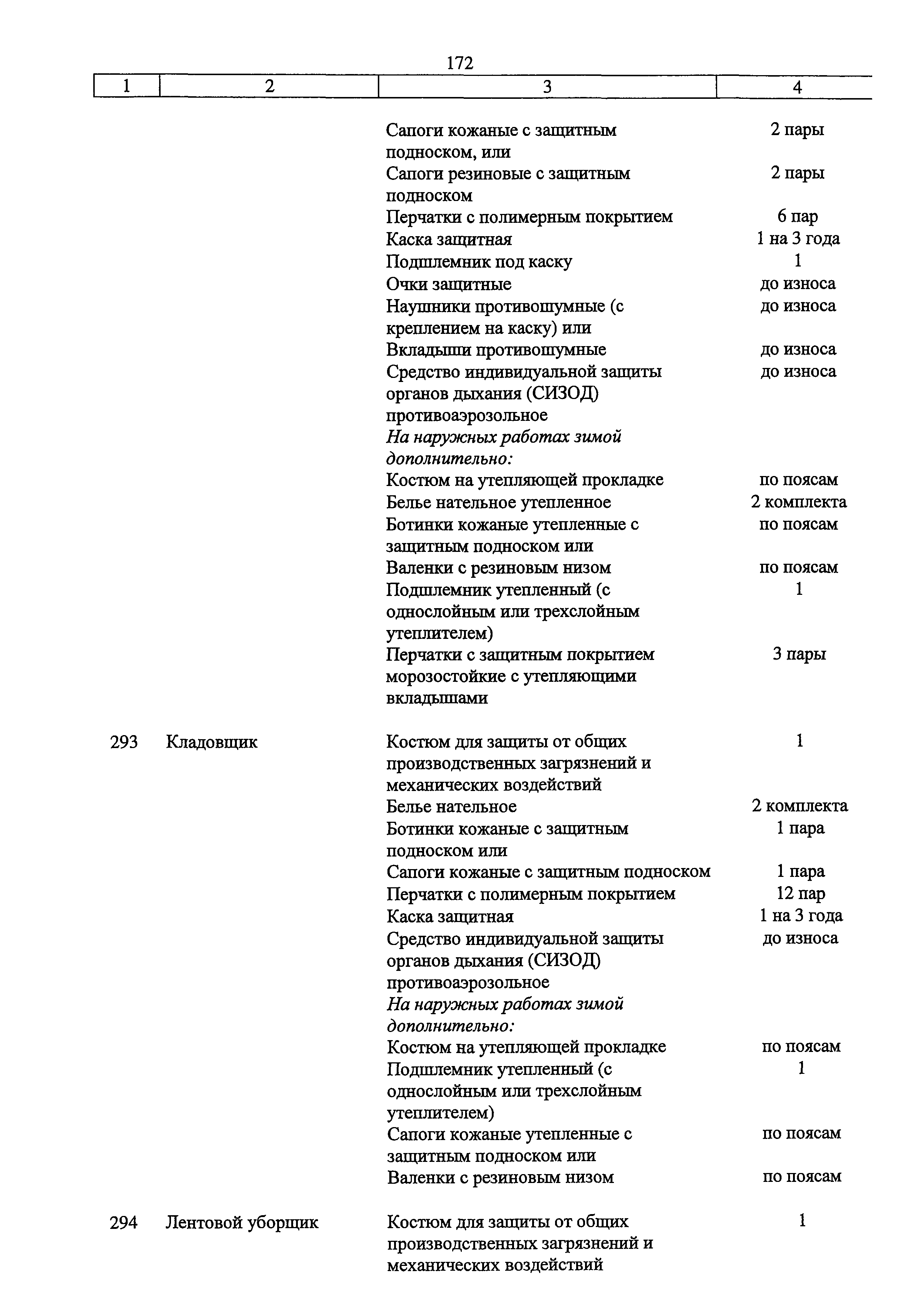 Типовые нормы бесплатной выдачи специальной одежды, специальной обуви и других средств индивидуальной защиты работникам горной и металлургической промышленности и металлургических производств других отраслей промышленности, занятым на работах с вредными и (или) опасными условиями труда, а также на работах, выполняемых в особых температурных условиях или связанных с загрязнением| Статус: | действует | | Название рус.: | Типовые нормы бесплатной выдачи специальной одежды, специальной обуви и других средств индивидуальной защиты работникам горной и металлургической промышленности и металлургических производств других отраслей промышленности, занятым на работах с вредными и (или) опасными условиями труда, а также на работах, выполняемых в особых температурных условиях или связанных с загрязнением | | Дата добавления в базу: | 01.02.2017 | | Дата актуализации: | 01.01.2021 | | Дата введения: | 14.02.2014 | | Область применения: | Нормы утверждаются локальными нормативными актами работодателя на основании результатов аттестации рабочих мест по условиям труда и могут быть включены в коллективный и (или) трудовой договор с указанием типовых норм, по сравнению с которыми улучшается обеспечение работников специальной одеждой, специальной обувью и другими средствами индивидуальной защиты. | | Оглавление: | I Горнодобывающая промышленность 1 Подземные горные работы (шахты) 2 Открытые горные работы и шахтная поверхность 3 Работа на гидравлических установках или с промывочными приборами 4 Дражные работы II Дробление, обогащение, брикетирование, обжиг, агломерация, извлечение металлов и сплавов III Черная металлургия 1 Коксохимическое производство 1.1 Углеподготовительные цеха 1.2 Углеобогатительные цеха 1.3 Производство каменноугольного кокса 1.4 Производство кристаллического нафталина, кумароновой смолы, смолоперерабатывающие цеха 1.5 Производство пиридиновых и фенольно-крезольных продуктов 1.6 Цеха улавливания химических продуктов и газовые цеха 1.7 Цеха ректификации сырого бензола 1.8 Цеха очистки коксового газа от сероводорода 1.9 Производство пекового кокса 1.10 Производство термоантрацита 2 Доменное производство 3 Сталеплавильное производство 3.1 Установки непрерывной разливки стали 4 Производство ферросплавов 4.1 Электролитическое производство 4.2 Производство электролитического хрома 4.3 Производство феррованадия 4.4 Подготовка шихты, обжиг руд и концентратов 4.5 Разливка и разделка ферросплавов 4.6 Обжиг извести 4.7 Общие профессии и должности ферросплавного производства 5 Прокатное производство 6 Производство труб (прокатка, сварка и волочение) 7 Колесопрокатное и бандажное производства 8 Валопрокатное производство 9 Производство рельсовых скреплений 10 Производство баллонов 11 Труболитейное производство 12 Производство метизов 12.1 Производство металлических канатов, сеток, пружин и пружинной ленты, щеток, цепей, колючей проволоки и других метизов 12.2 Волочение проволоки, калибровка и шлифовка металла 12.3 Изготовление волок 12.4 Холодноштамповочные и кузнечно-прессовые работы 12.5 Термическая обработка 12.6 Травление металла, защитные покрытия проволоки и извлечение железного купороса 12.7 Производство металлических электродов и порошковой проволоки 13 Производство огнеупоров 13.1 Огнеупоры 13.2 Карборундовые стержни 13.3 Высокоогнеупорные окислы 14 Ремонт 