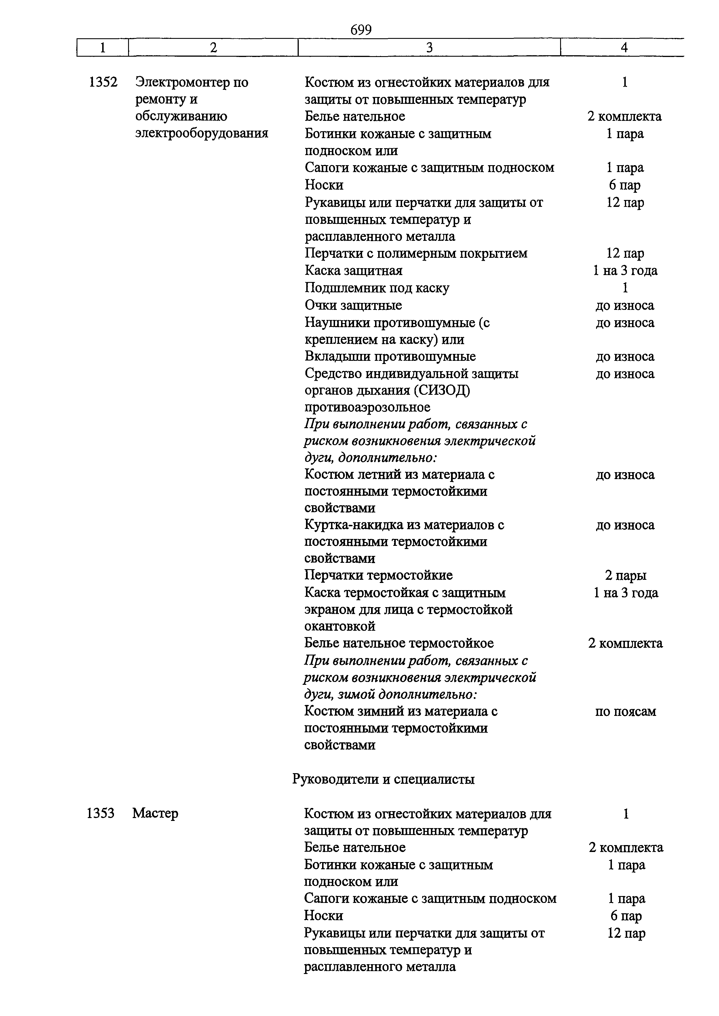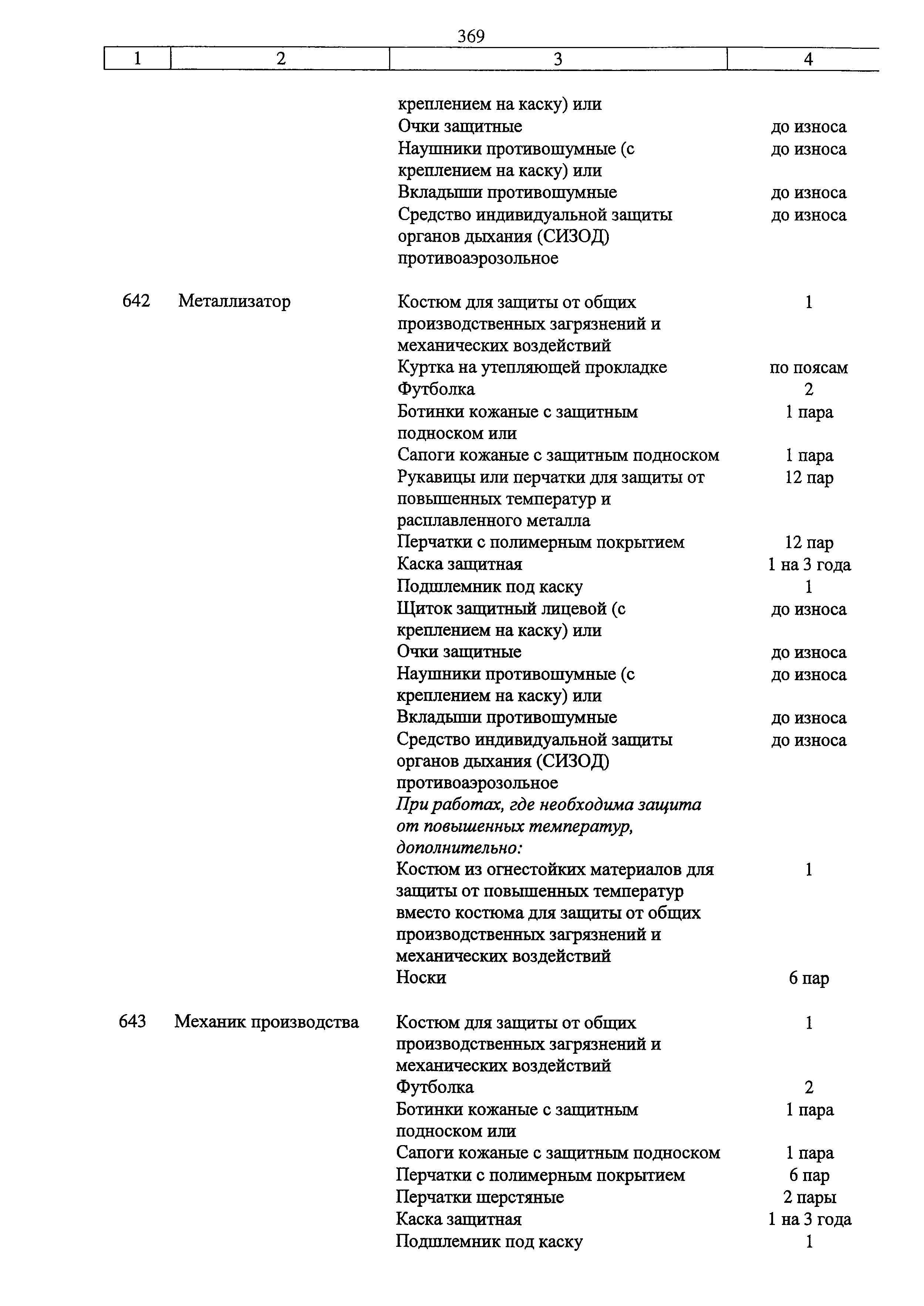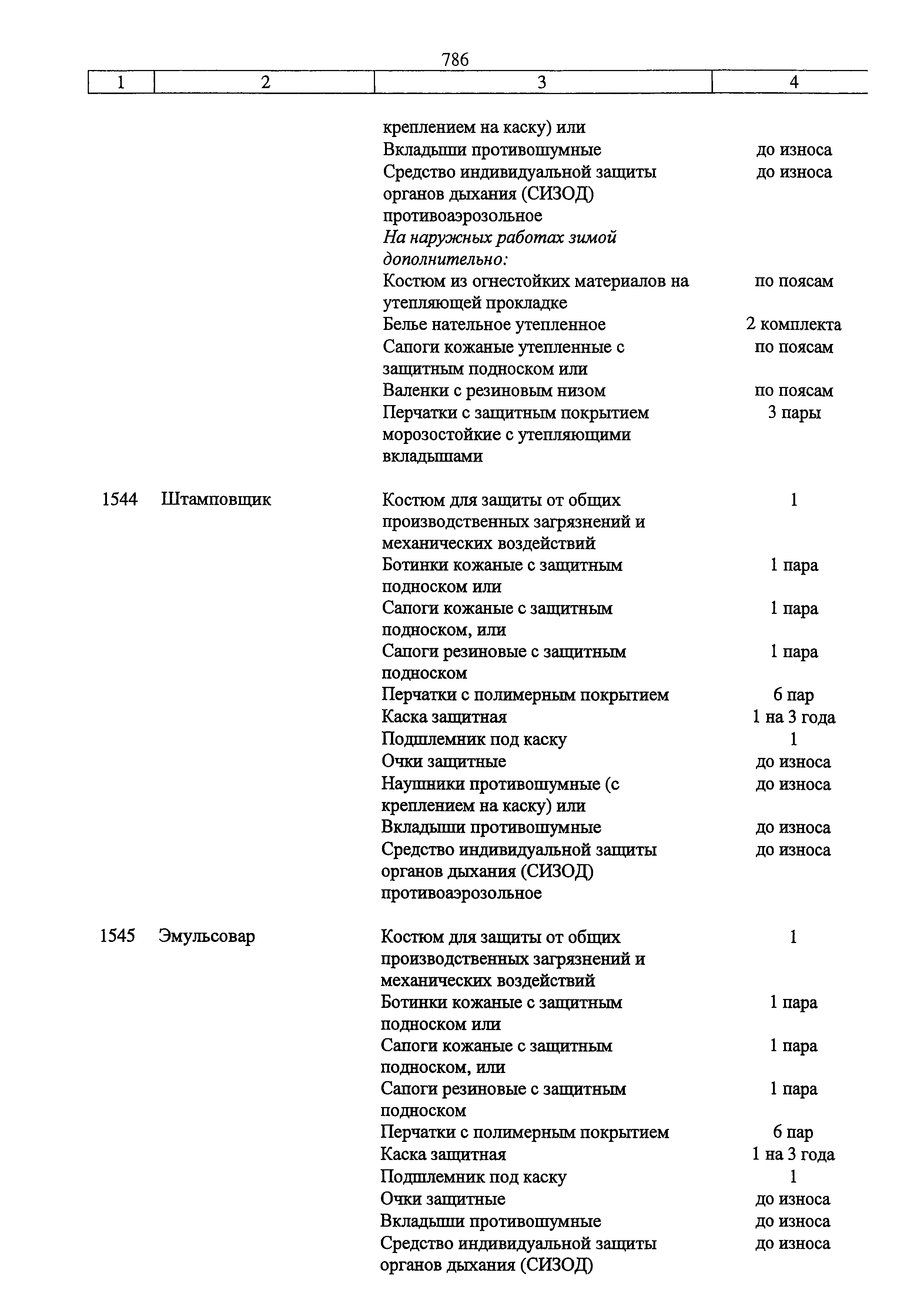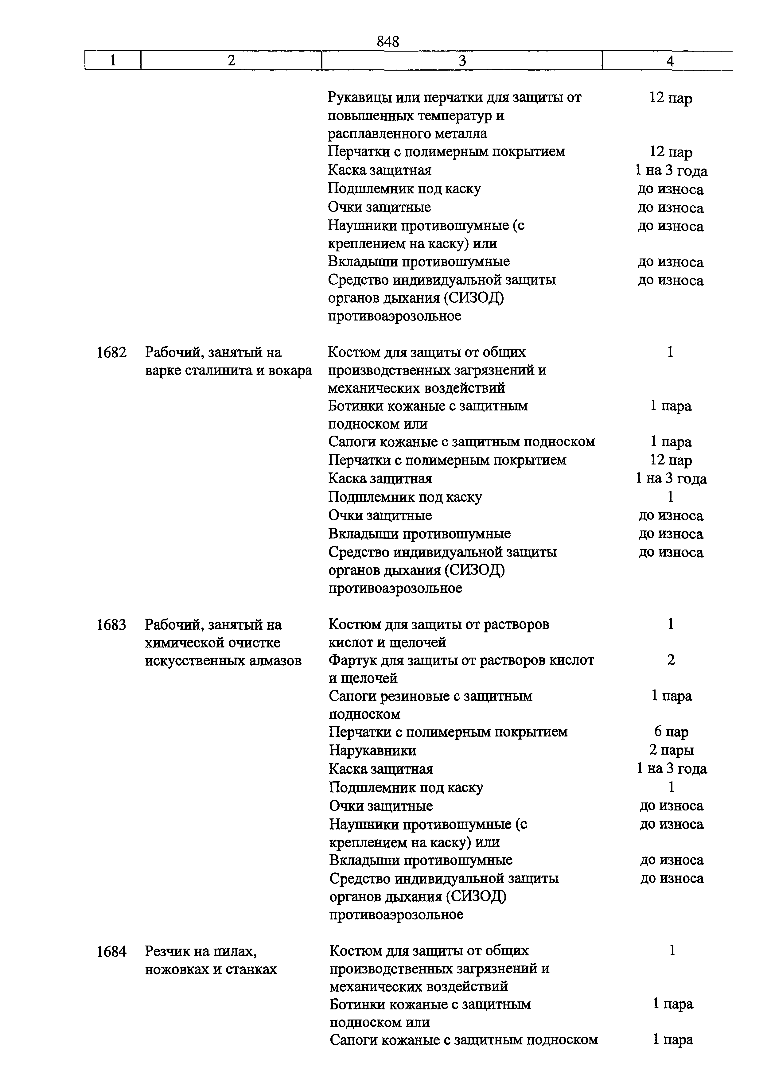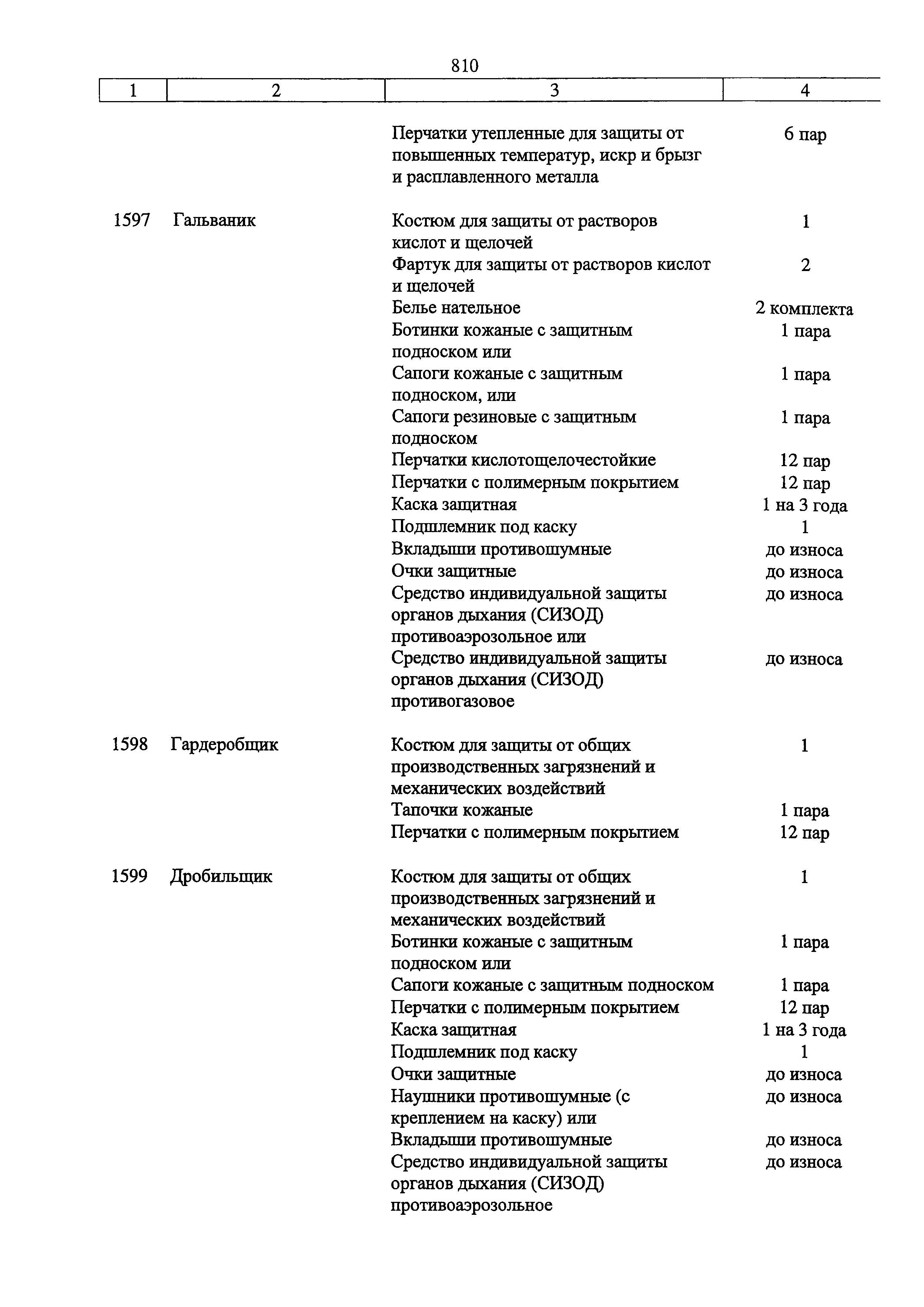 Типовые нормы бесплатной выдачи специальной одежды, специальной обуви и других средств индивидуальной защиты работникам горной и металлургической промышленности и металлургических производств других отраслей промышленности, занятым на работах с вредными и (или) опасными условиями труда, а также на работах, выполняемых в особых температурных условиях или связанных с загрязнением| Статус: | действует | | Название рус.: | Типовые нормы бесплатной выдачи специальной одежды, специальной обуви и других средств индивидуальной защиты работникам горной и металлургической промышленности и металлургических производств других отраслей промышленности, занятым на работах с вредными и (или) опасными условиями труда, а также на работах, выполняемых в особых температурных условиях или связанных с загрязнением | | Дата добавления в базу: | 01.02.2017 | | Дата актуализации: | 01.01.2021 | | Дата введения: | 14.02.2014 | | Область применения: | Нормы утверждаются локальными нормативными актами работодателя на основании результатов аттестации рабочих мест по условиям труда и могут быть включены в коллективный и (или) трудовой договор с указанием типовых норм, по сравнению с которыми улучшается обеспечение работников специальной одеждой, специальной обувью и другими средствами индивидуальной защиты. | | Оглавление: | I Горнодобывающая промышленность 1 Подземные горные работы (шахты) 2 Открытые горные работы и шахтная поверхность 3 Работа на гидравлических установках или с промывочными приборами 4 Дражные работы II Дробление, обогащение, брикетирование, обжиг, агломерация, извлечение металлов и сплавов III Черная металлургия 1 Коксохимическое производство 1.1 Углеподготовительные цеха 1.2 Углеобогатительные цеха 1.3 Производство каменноугольного кокса 1.4 Производство кристаллического нафталина, кумароновой смолы, смолоперерабатывающие цеха 1.5 Производство пиридиновых и фенольно-крезольных продуктов 1.6 Цеха улавливания химических продуктов и газовые цеха 1.7 Цеха ректификации сырого бензола 1.8 Цеха очистки коксового газа от сероводорода 1.9 Производство пекового кокса 1.10 Производство термоантрацита 2 Доменное производство 3 Сталеплавильное производство 3.1 Установки непрерывной разливки стали 4 Производство ферросплавов 4.1 Электролитическое производство 4.2 Производство электролитического хрома 4.3 Производство феррованадия 4.4 Подготовка шихты, обжиг руд и концентратов 4.5 Разливка и разделка ферросплавов 4.6 Обжиг извести 4.7 Общие профессии и должности ферросплавного производства 5 Прокатное производство 6 Производство труб (прокатка, сварка и волочение) 7 Колесопрокатное и бандажное производства 8 Валопрокатное производство 9 Производство рельсовых скреплений 10 Производство баллонов 11 Труболитейное производство 12 Производство метизов 12.1 Производство металлических канатов, сеток, пружин и пружинной ленты, щеток, цепей, колючей проволоки и других метизов 12.2 Волочение проволоки, калибровка и шлифовка металла 12.3 Изготовление волок 12.4 Холодноштамповочные и кузнечно-прессовые работы 12.5 Термическая обработка 12.6 Травление металла, защитные покрытия проволоки и извлечение железного купороса 12.7 Производство металлических электродов и порошковой проволоки 13 Производство огнеупоров 13.1 Огнеупоры 13.2 Карборундовые стержни 13.3 Высокоогнеупорные окислы 14 Ремонт 