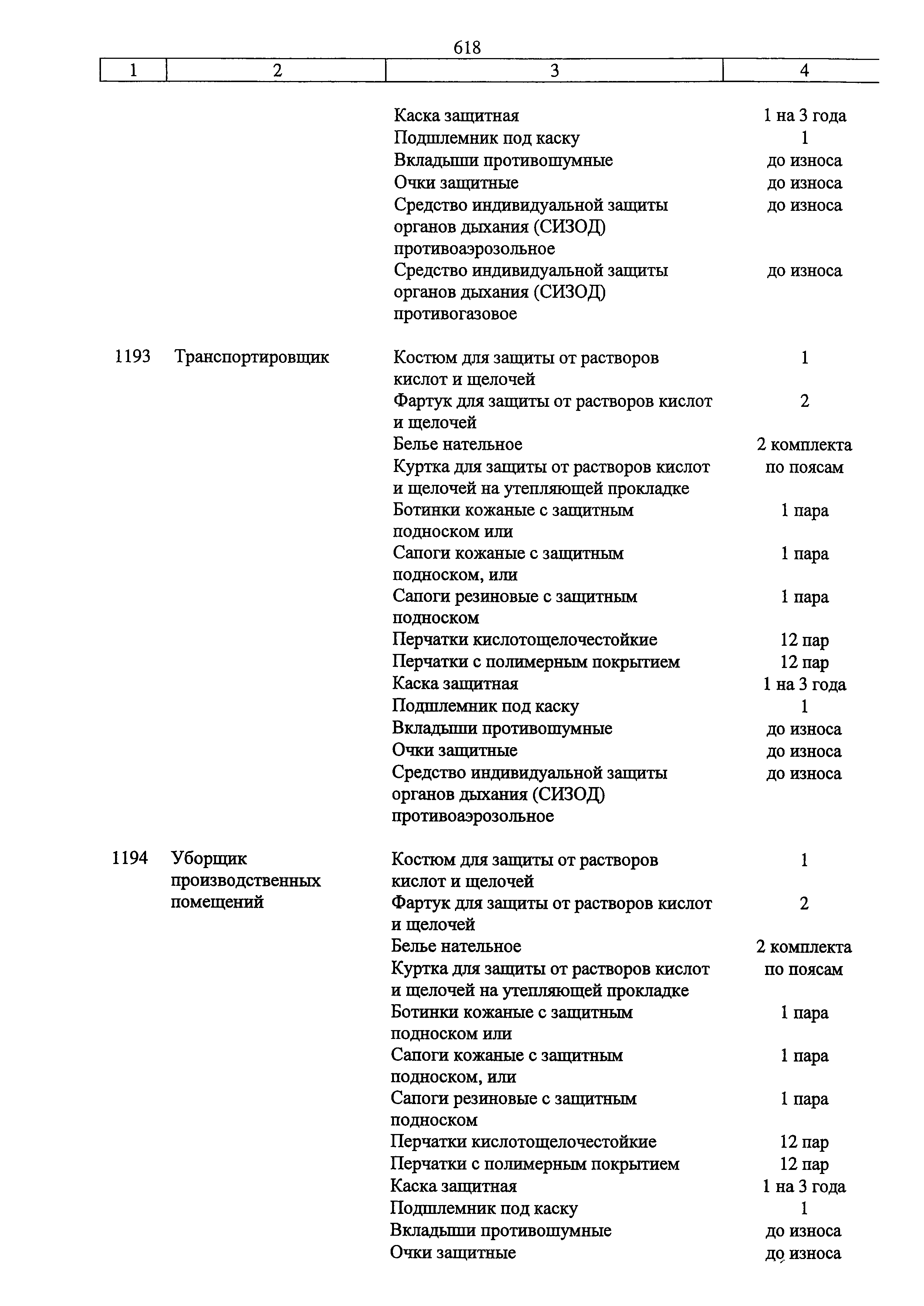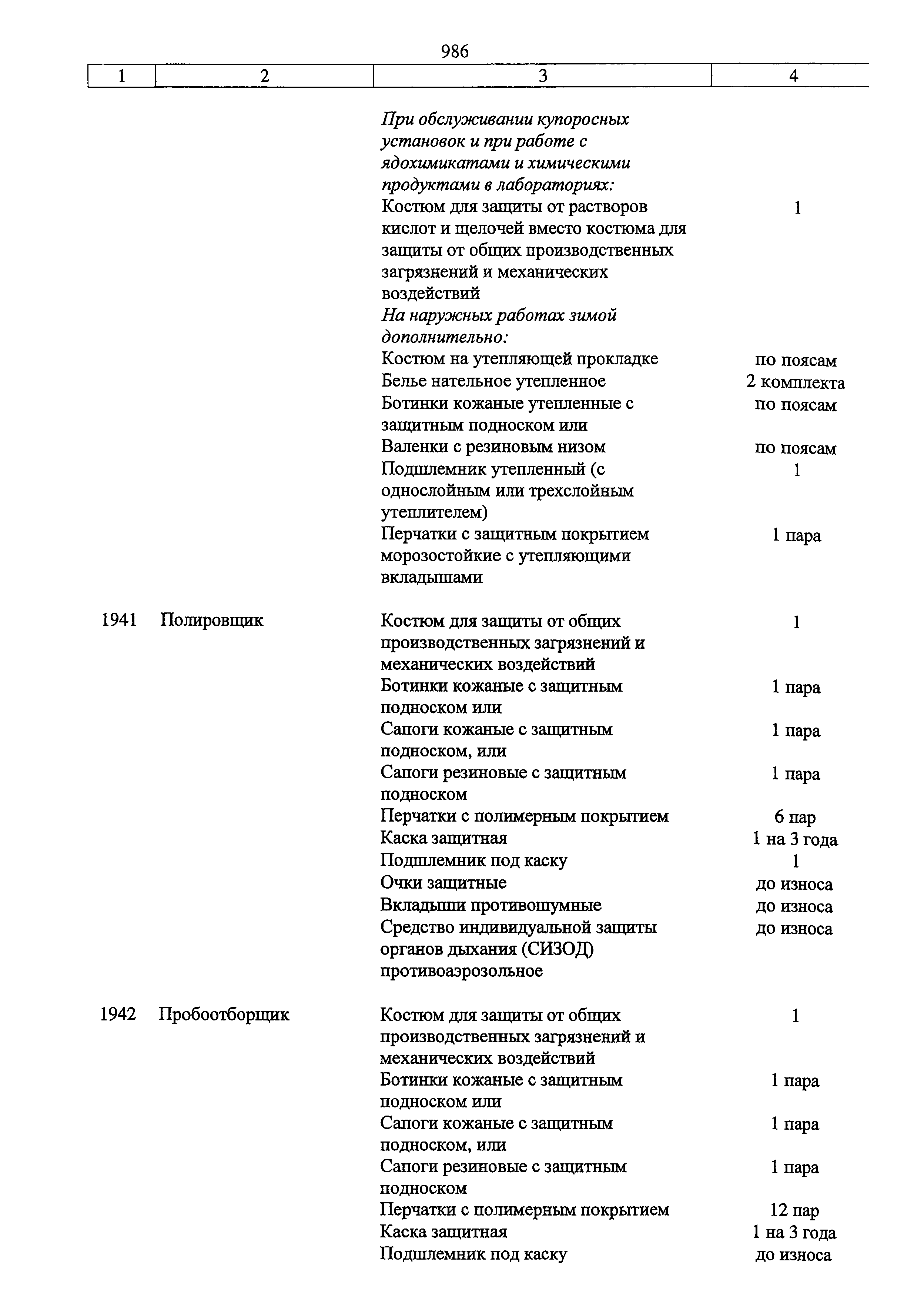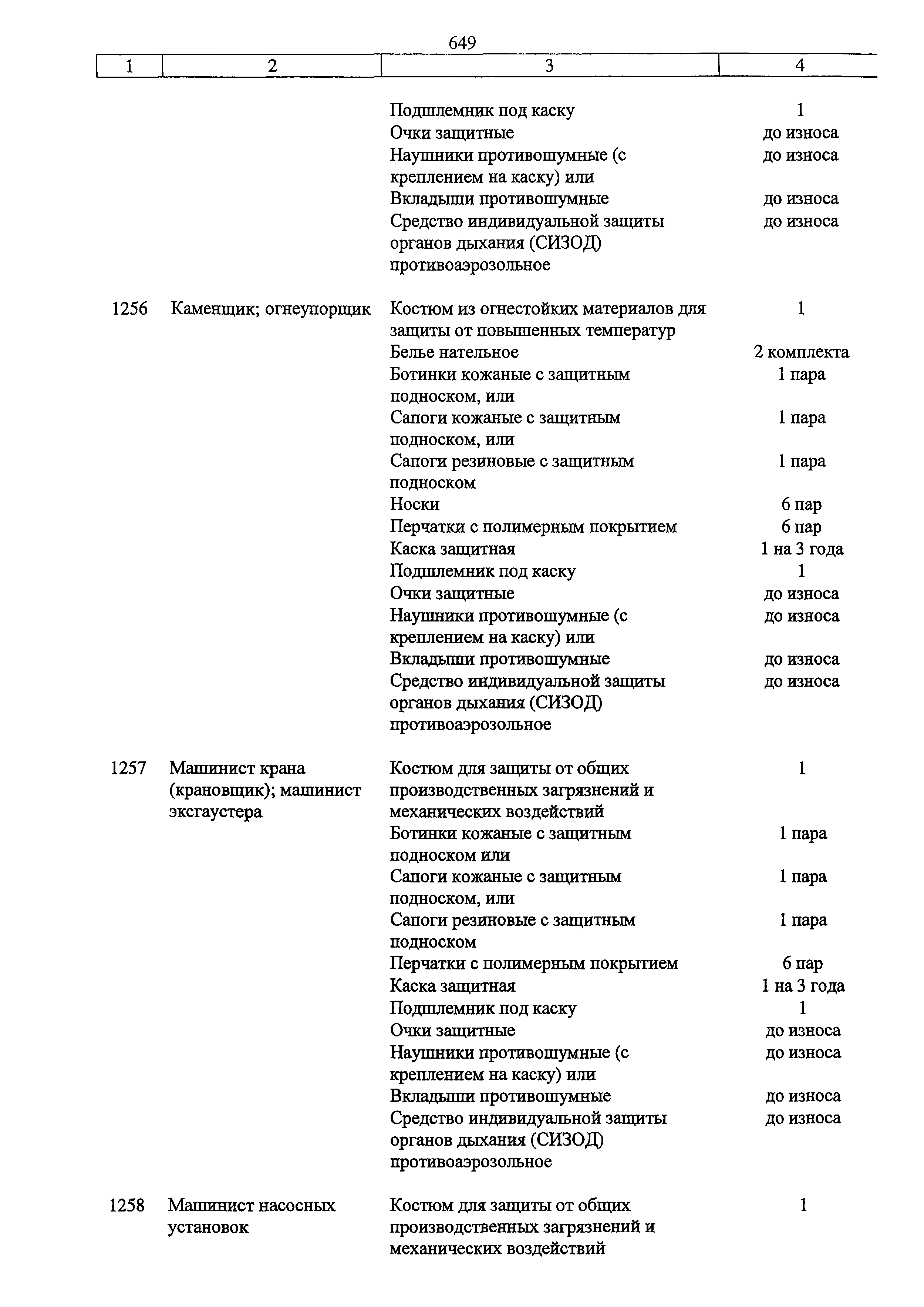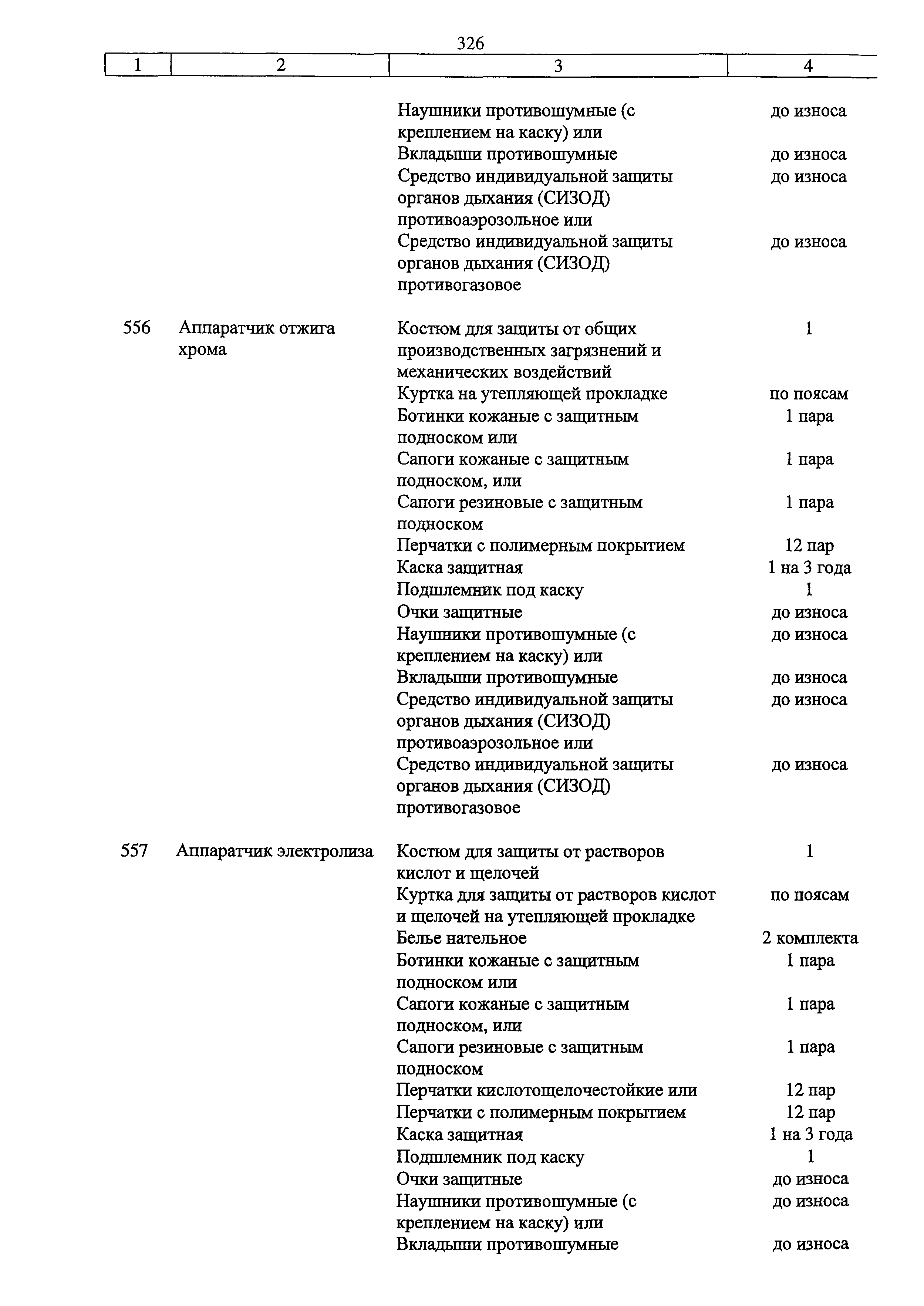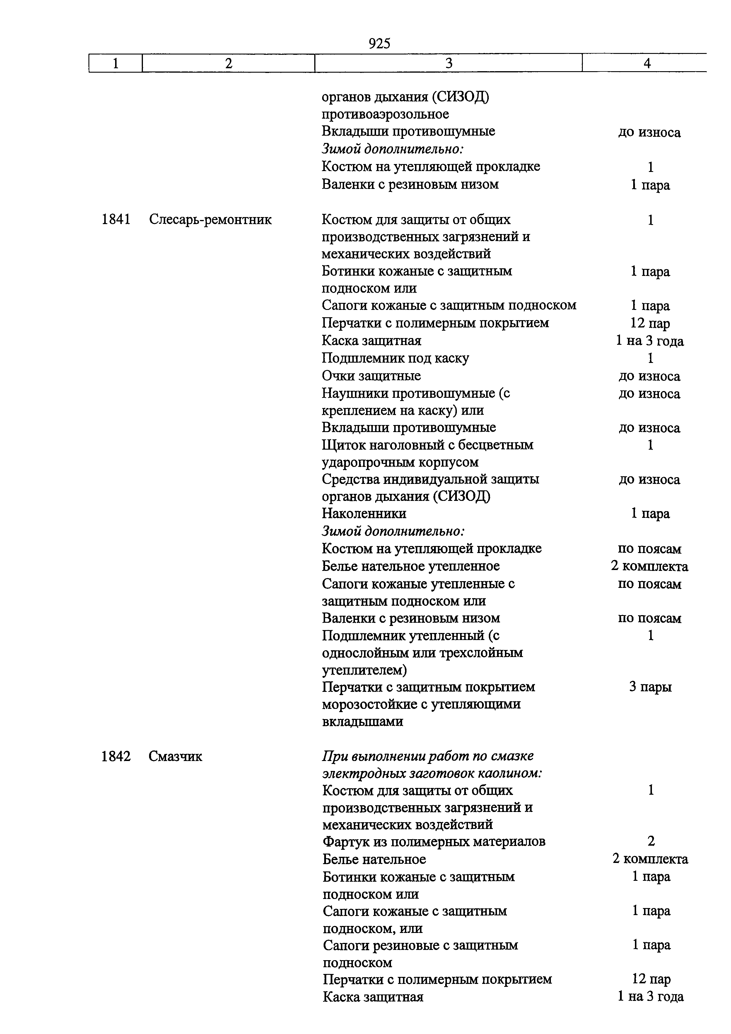 Типовые нормы бесплатной выдачи специальной одежды, специальной обуви и других средств индивидуальной защиты работникам горной и металлургической промышленности и металлургических производств других отраслей промышленности, занятым на работах с вредными и (или) опасными условиями труда, а также на работах, выполняемых в особых температурных условиях или связанных с загрязнением| Статус: | действует | | Название рус.: | Типовые нормы бесплатной выдачи специальной одежды, специальной обуви и других средств индивидуальной защиты работникам горной и металлургической промышленности и металлургических производств других отраслей промышленности, занятым на работах с вредными и (или) опасными условиями труда, а также на работах, выполняемых в особых температурных условиях или связанных с загрязнением | | Дата добавления в базу: | 01.02.2017 | | Дата актуализации: | 01.01.2021 | | Дата введения: | 14.02.2014 | | Область применения: | Нормы утверждаются локальными нормативными актами работодателя на основании результатов аттестации рабочих мест по условиям труда и могут быть включены в коллективный и (или) трудовой договор с указанием типовых норм, по сравнению с которыми улучшается обеспечение работников специальной одеждой, специальной обувью и другими средствами индивидуальной защиты. | | Оглавление: | I Горнодобывающая промышленность 1 Подземные горные работы (шахты) 2 Открытые горные работы и шахтная поверхность 3 Работа на гидравлических установках или с промывочными приборами 4 Дражные работы II Дробление, обогащение, брикетирование, обжиг, агломерация, извлечение металлов и сплавов III Черная металлургия 1 Коксохимическое производство 1.1 Углеподготовительные цеха 1.2 Углеобогатительные цеха 1.3 Производство каменноугольного кокса 1.4 Производство кристаллического нафталина, кумароновой смолы, смолоперерабатывающие цеха 1.5 Производство пиридиновых и фенольно-крезольных продуктов 1.6 Цеха улавливания химических продуктов и газовые цеха 1.7 Цеха ректификации сырого бензола 1.8 Цеха очистки коксового газа от сероводорода 1.9 Производство пекового кокса 1.10 Производство термоантрацита 2 Доменное производство 3 Сталеплавильное производство 3.1 Установки непрерывной разливки стали 4 Производство ферросплавов 4.1 Электролитическое производство 4.2 Производство электролитического хрома 4.3 Производство феррованадия 4.4 Подготовка шихты, обжиг руд и концентратов 4.5 Разливка и разделка ферросплавов 4.6 Обжиг извести 4.7 Общие профессии и должности ферросплавного производства 5 Прокатное производство 6 Производство труб (прокатка, сварка и волочение) 7 Колесопрокатное и бандажное производства 8 Валопрокатное производство 9 Производство рельсовых скреплений 10 Производство баллонов 11 Труболитейное производство 12 Производство метизов 12.1 Производство металлических канатов, сеток, пружин и пружинной ленты, щеток, цепей, колючей проволоки и других метизов 12.2 Волочение проволоки, калибровка и шлифовка металла 12.3 Изготовление волок 12.4 Холодноштамповочные и кузнечно-прессовые работы 12.5 Термическая обработка 12.6 Травление металла, защитные покрытия проволоки и извлечение железного купороса 12.7 Производство металлических электродов и порошковой проволоки 13 Производство огнеупоров 13.1 Огнеупоры 13.2 Карборундовые стержни 13.3 Высокоогнеупорные окислы 14 Ремонт 