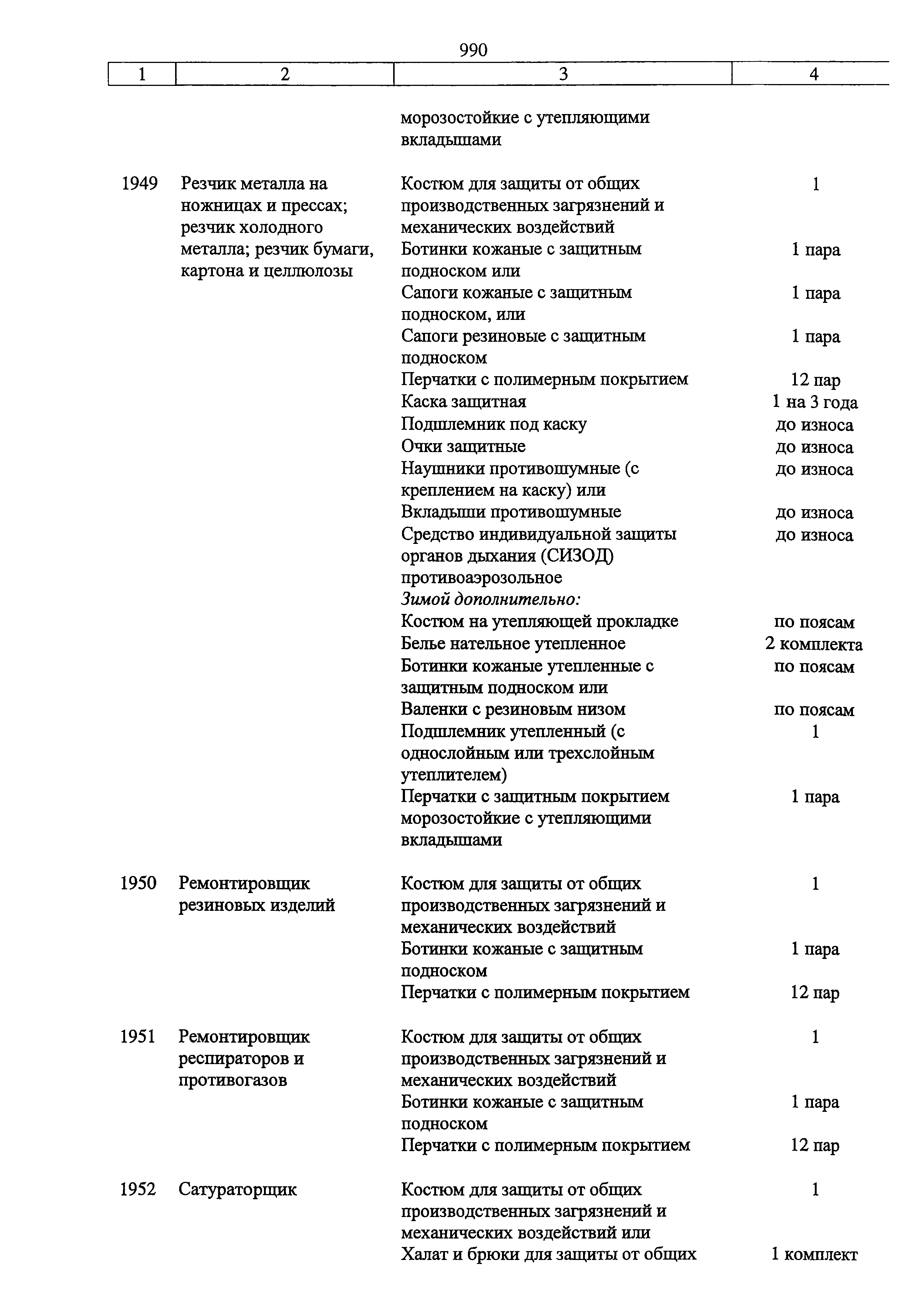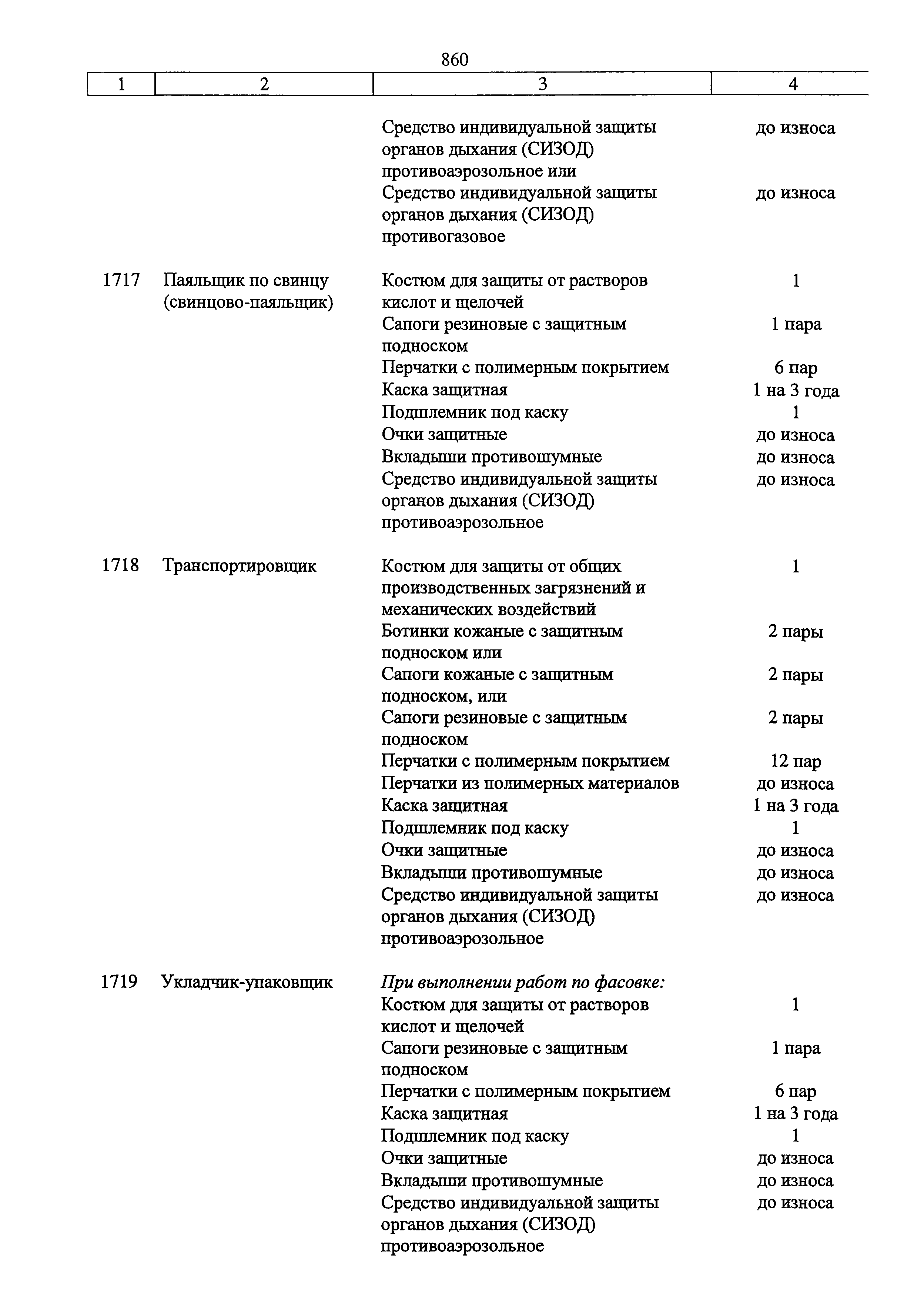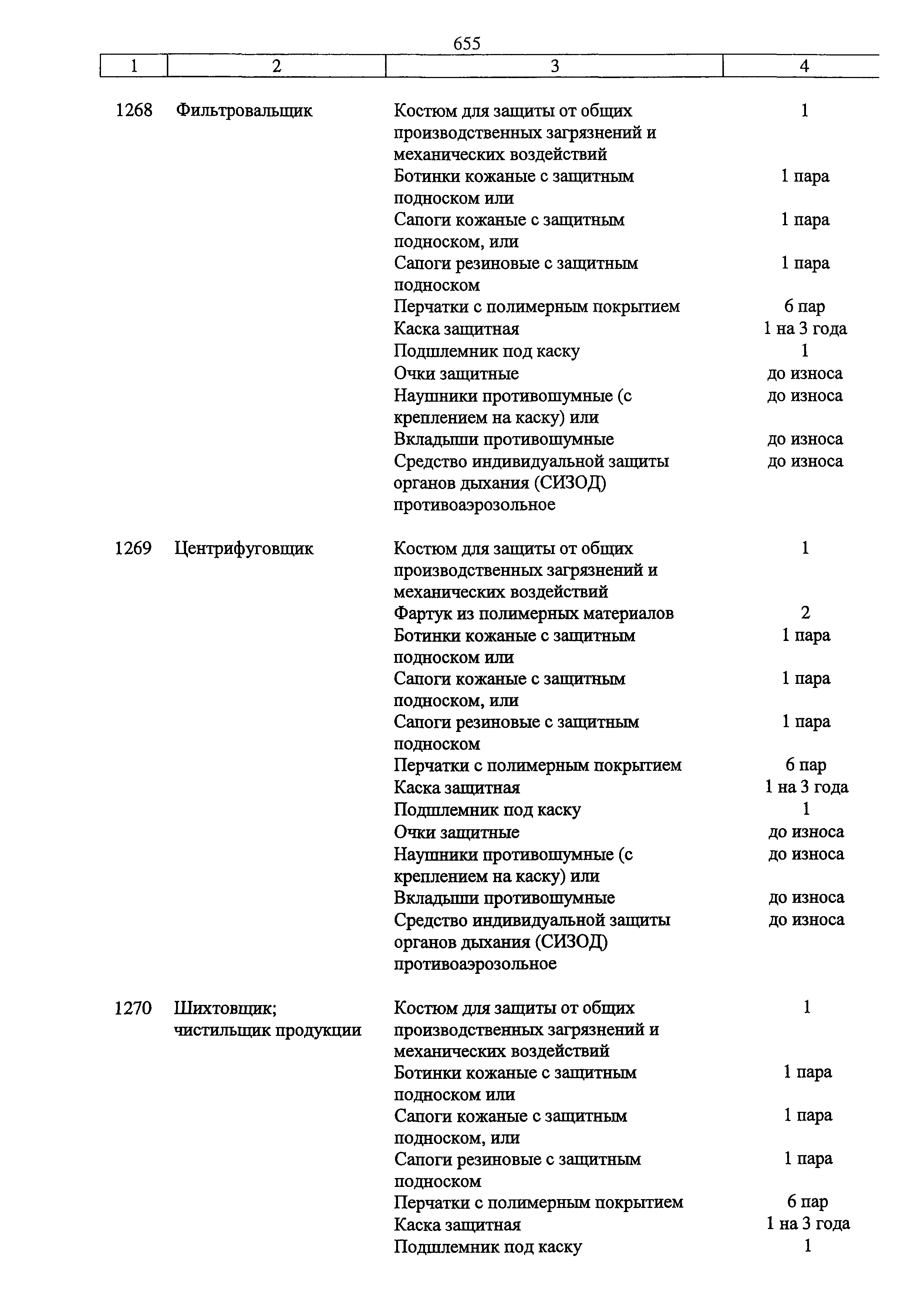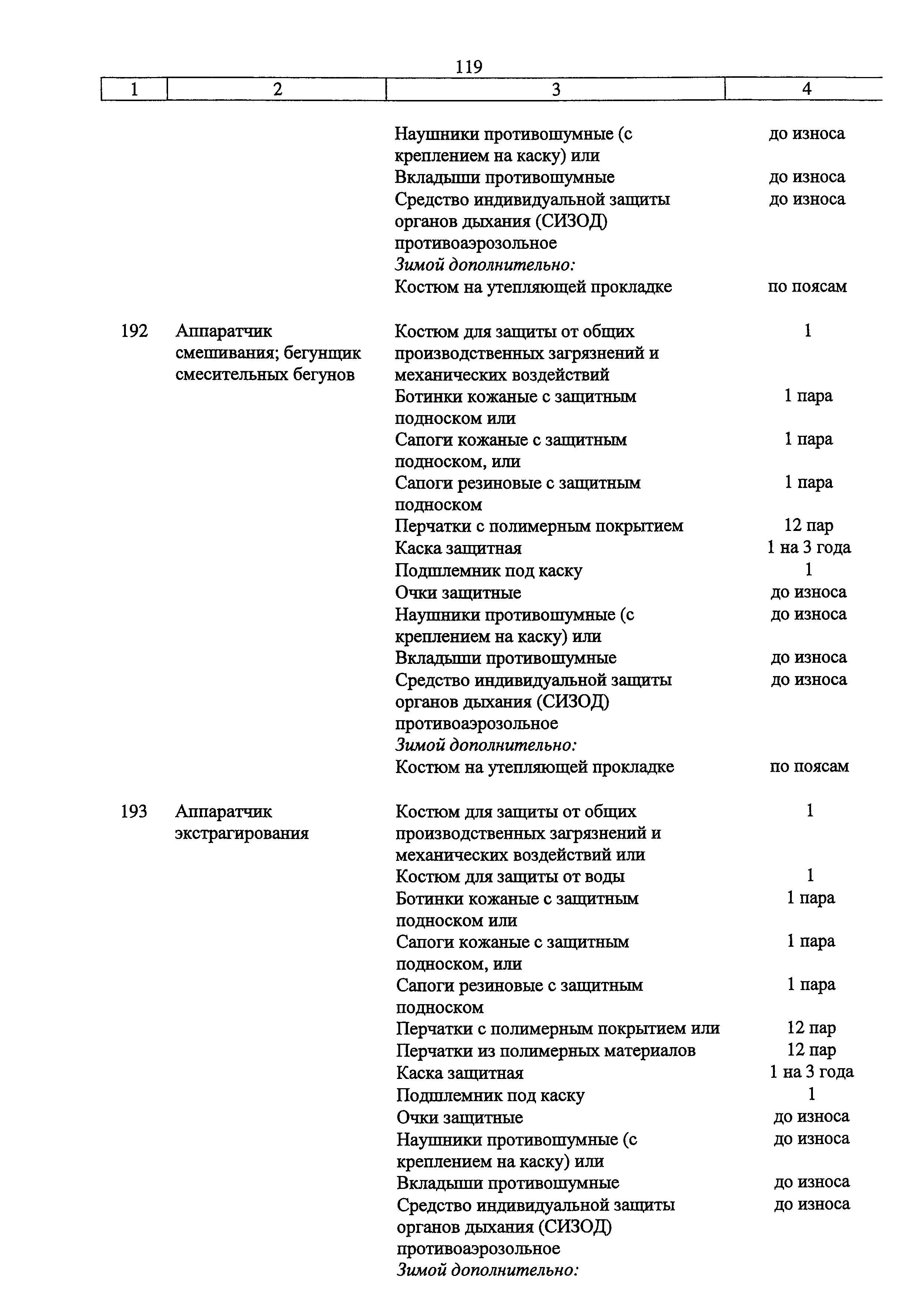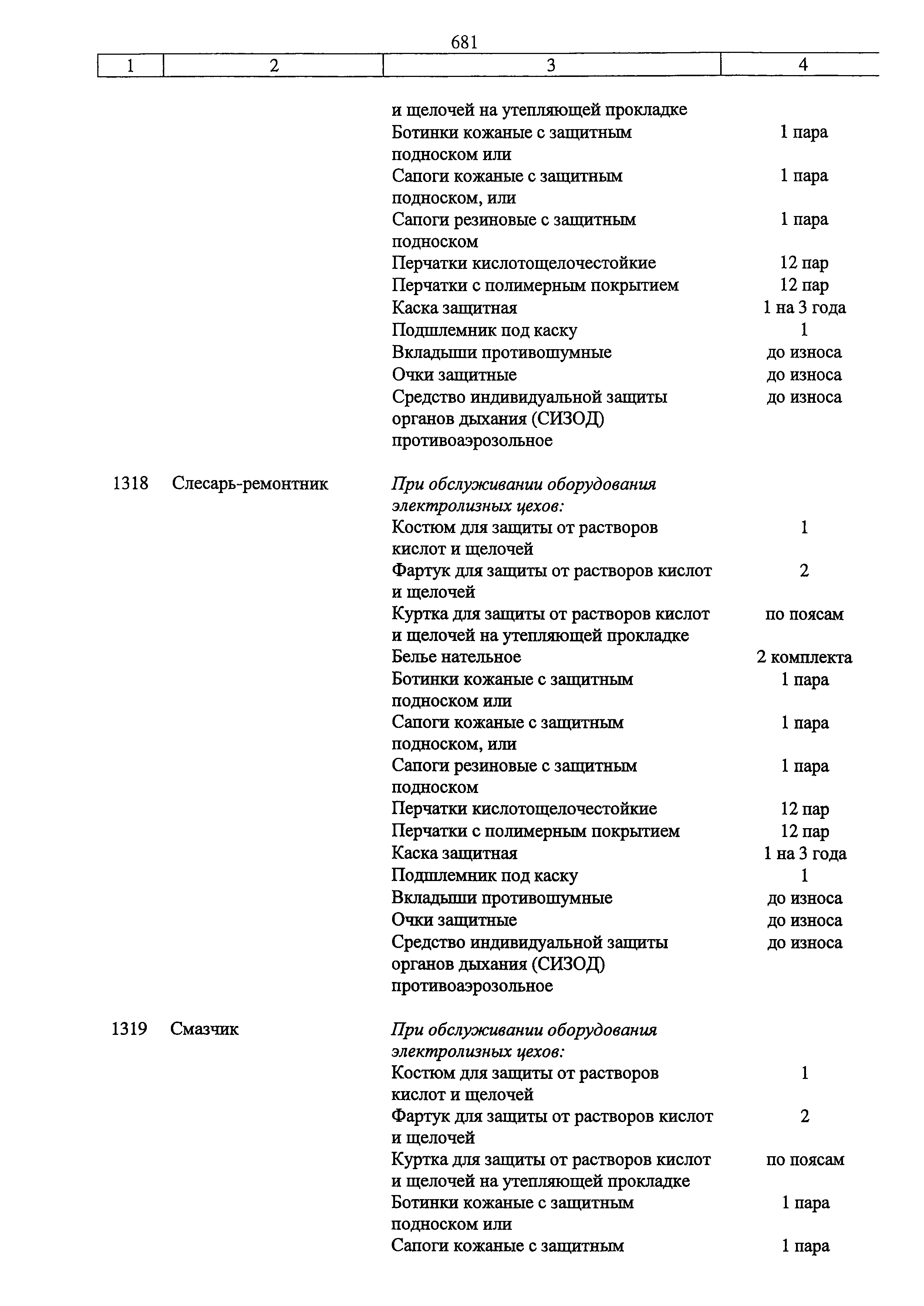 Типовые нормы бесплатной выдачи специальной одежды, специальной обуви и других средств индивидуальной защиты работникам горной и металлургической промышленности и металлургических производств других отраслей промышленности, занятым на работах с вредными и (или) опасными условиями труда, а также на работах, выполняемых в особых температурных условиях или связанных с загрязнением| Статус: | действует | | Название рус.: | Типовые нормы бесплатной выдачи специальной одежды, специальной обуви и других средств индивидуальной защиты работникам горной и металлургической промышленности и металлургических производств других отраслей промышленности, занятым на работах с вредными и (или) опасными условиями труда, а также на работах, выполняемых в особых температурных условиях или связанных с загрязнением | | Дата добавления в базу: | 01.02.2017 | | Дата актуализации: | 01.01.2021 | | Дата введения: | 14.02.2014 | | Область применения: | Нормы утверждаются локальными нормативными актами работодателя на основании результатов аттестации рабочих мест по условиям труда и могут быть включены в коллективный и (или) трудовой договор с указанием типовых норм, по сравнению с которыми улучшается обеспечение работников специальной одеждой, специальной обувью и другими средствами индивидуальной защиты. | | Оглавление: | I Горнодобывающая промышленность 1 Подземные горные работы (шахты) 2 Открытые горные работы и шахтная поверхность 3 Работа на гидравлических установках или с промывочными приборами 4 Дражные работы II Дробление, обогащение, брикетирование, обжиг, агломерация, извлечение металлов и сплавов III Черная металлургия 1 Коксохимическое производство 1.1 Углеподготовительные цеха 1.2 Углеобогатительные цеха 1.3 Производство каменноугольного кокса 1.4 Производство кристаллического нафталина, кумароновой смолы, смолоперерабатывающие цеха 1.5 Производство пиридиновых и фенольно-крезольных продуктов 1.6 Цеха улавливания химических продуктов и газовые цеха 1.7 Цеха ректификации сырого бензола 1.8 Цеха очистки коксового газа от сероводорода 1.9 Производство пекового кокса 1.10 Производство термоантрацита 2 Доменное производство 3 Сталеплавильное производство 3.1 Установки непрерывной разливки стали 4 Производство ферросплавов 4.1 Электролитическое производство 4.2 Производство электролитического хрома 4.3 Производство феррованадия 4.4 Подготовка шихты, обжиг руд и концентратов 4.5 Разливка и разделка ферросплавов 4.6 Обжиг извести 4.7 Общие профессии и должности ферросплавного производства 5 Прокатное производство 6 Производство труб (прокатка, сварка и волочение) 7 Колесопрокатное и бандажное производства 8 Валопрокатное производство 9 Производство рельсовых скреплений 10 Производство баллонов 11 Труболитейное производство 12 Производство метизов 12.1 Производство металлических канатов, сеток, пружин и пружинной ленты, щеток, цепей, колючей проволоки и других метизов 12.2 Волочение проволоки, калибровка и шлифовка металла 12.3 Изготовление волок 12.4 Холодноштамповочные и кузнечно-прессовые работы 12.5 Термическая обработка 12.6 Травление металла, защитные покрытия проволоки и извлечение железного купороса 12.7 Производство металлических электродов и порошковой проволоки 13 Производство огнеупоров 13.1 Огнеупоры 13.2 Карборундовые стержни 13.3 Высокоогнеупорные окислы 14 Ремонт 