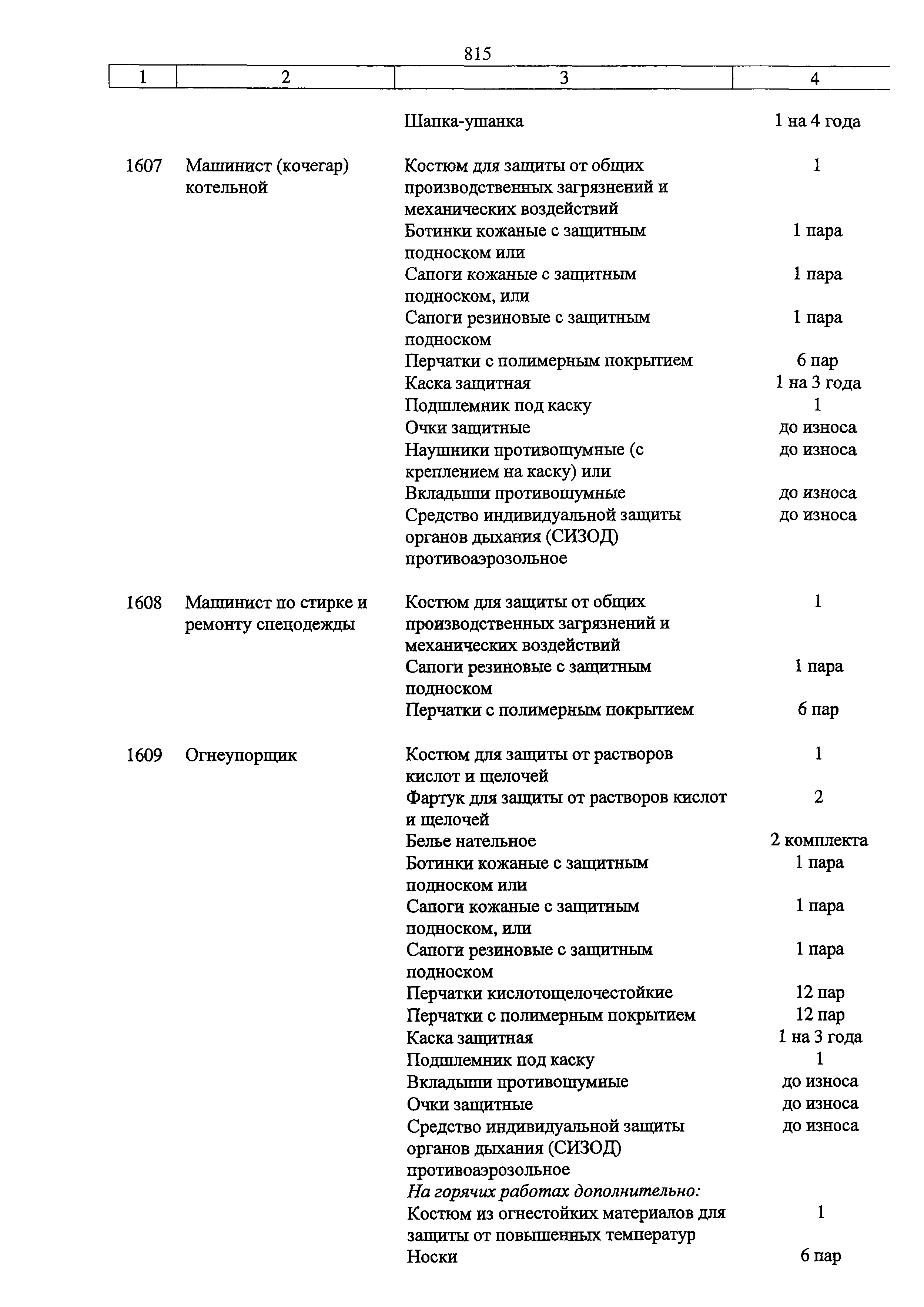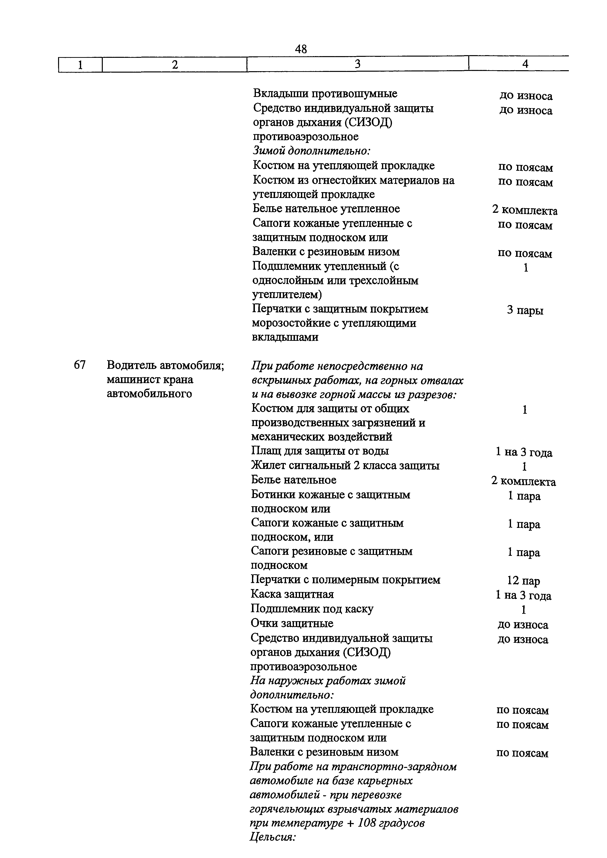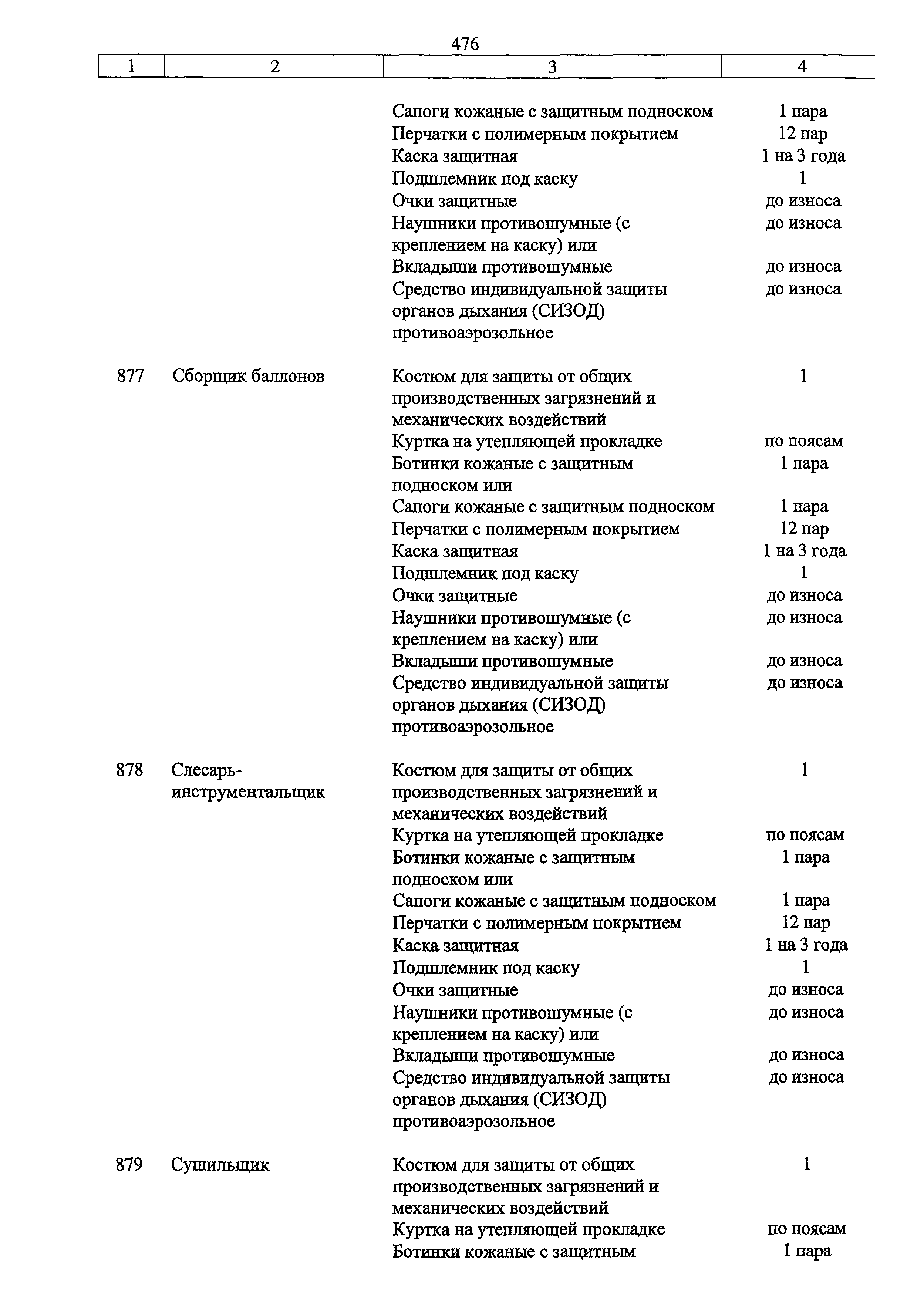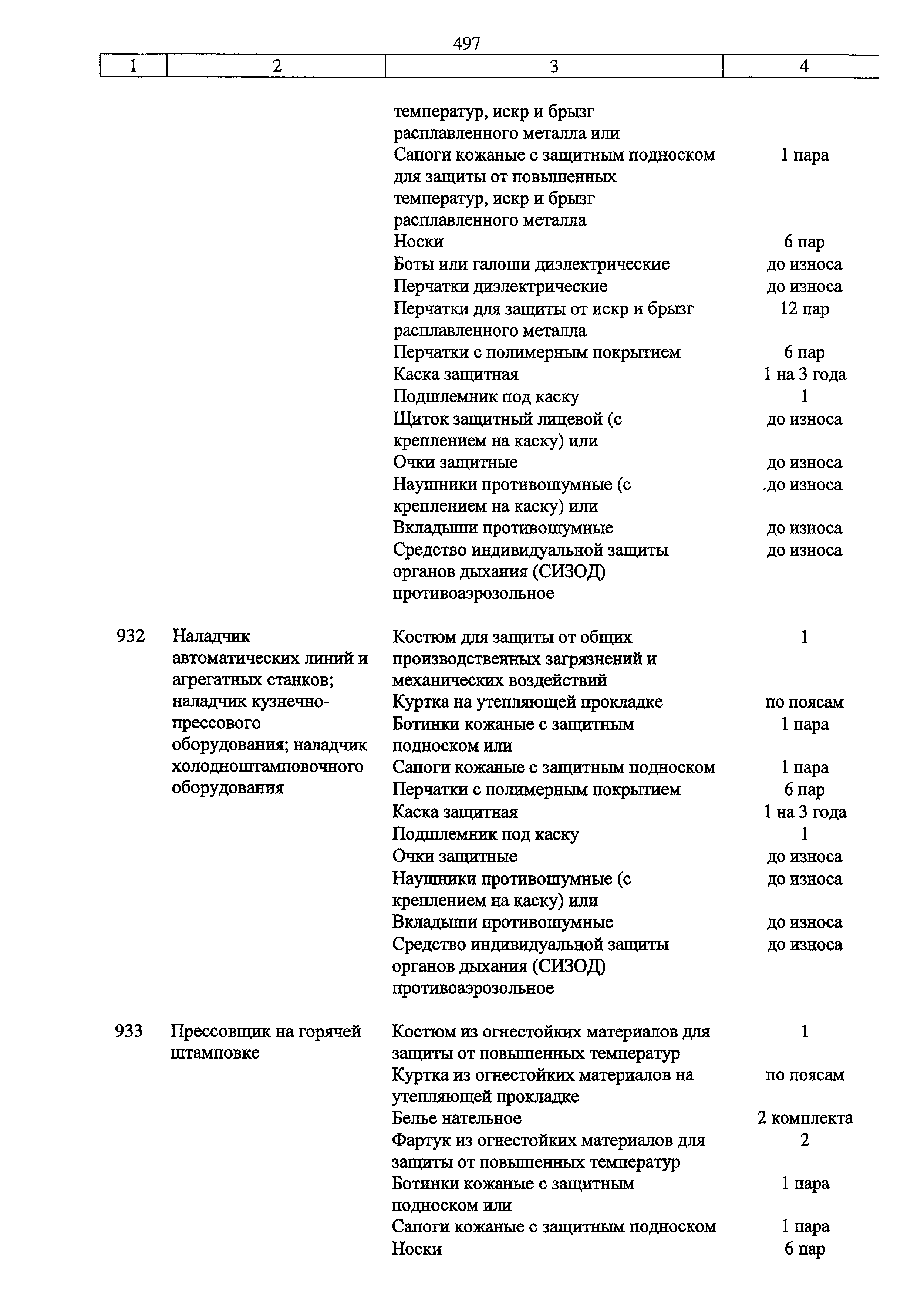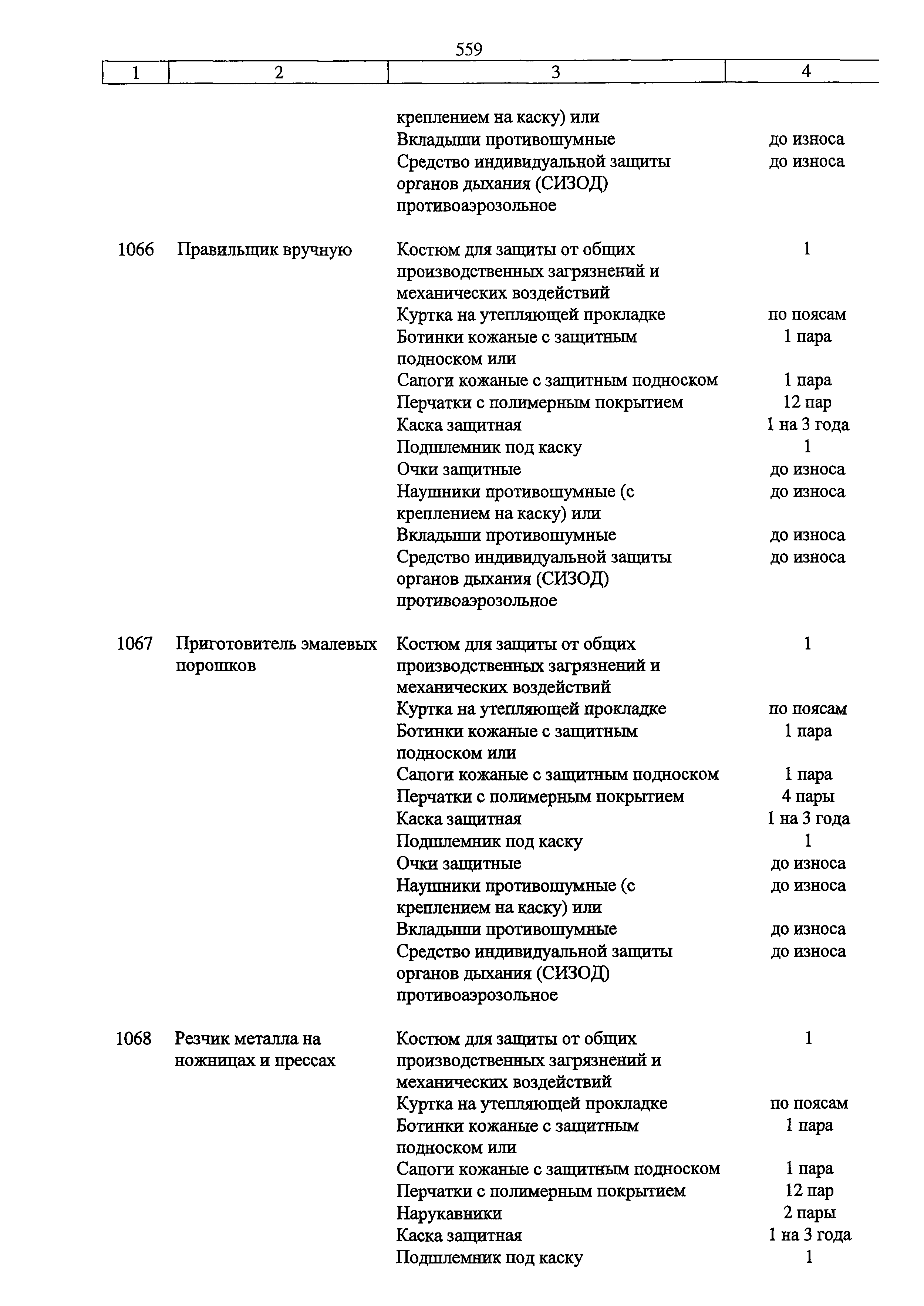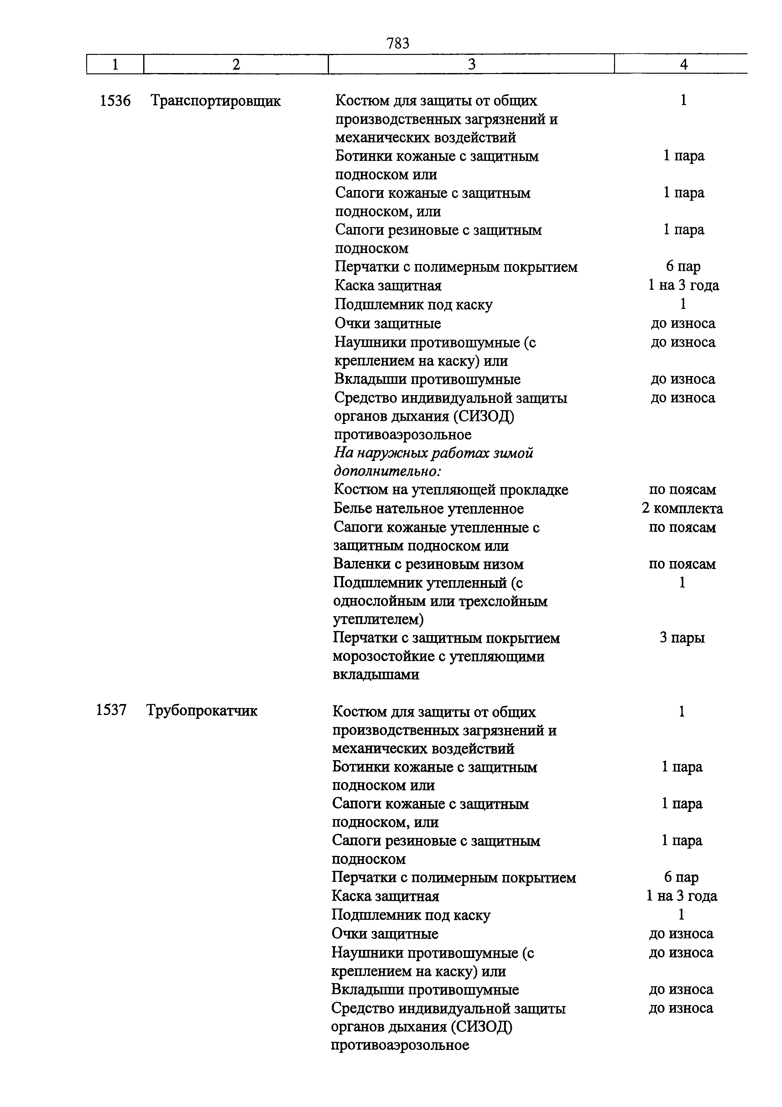 Типовые нормы бесплатной выдачи специальной одежды, специальной обуви и других средств индивидуальной защиты работникам горной и металлургической промышленности и металлургических производств других отраслей промышленности, занятым на работах с вредными и (или) опасными условиями труда, а также на работах, выполняемых в особых температурных условиях или связанных с загрязнением| Статус: | действует | | Название рус.: | Типовые нормы бесплатной выдачи специальной одежды, специальной обуви и других средств индивидуальной защиты работникам горной и металлургической промышленности и металлургических производств других отраслей промышленности, занятым на работах с вредными и (или) опасными условиями труда, а также на работах, выполняемых в особых температурных условиях или связанных с загрязнением | | Дата добавления в базу: | 01.02.2017 | | Дата актуализации: | 01.01.2021 | | Дата введения: | 14.02.2014 | | Область применения: | Нормы утверждаются локальными нормативными актами работодателя на основании результатов аттестации рабочих мест по условиям труда и могут быть включены в коллективный и (или) трудовой договор с указанием типовых норм, по сравнению с которыми улучшается обеспечение работников специальной одеждой, специальной обувью и другими средствами индивидуальной защиты. | | Оглавление: | I Горнодобывающая промышленность 1 Подземные горные работы (шахты) 2 Открытые горные работы и шахтная поверхность 3 Работа на гидравлических установках или с промывочными приборами 4 Дражные работы II Дробление, обогащение, брикетирование, обжиг, агломерация, извлечение металлов и сплавов III Черная металлургия 1 Коксохимическое производство 1.1 Углеподготовительные цеха 1.2 Углеобогатительные цеха 1.3 Производство каменноугольного кокса 1.4 Производство кристаллического нафталина, кумароновой смолы, смолоперерабатывающие цеха 1.5 Производство пиридиновых и фенольно-крезольных продуктов 1.6 Цеха улавливания химических продуктов и газовые цеха 1.7 Цеха ректификации сырого бензола 1.8 Цеха очистки коксового газа от сероводорода 1.9 Производство пекового кокса 1.10 Производство термоантрацита 2 Доменное производство 3 Сталеплавильное производство 3.1 Установки непрерывной разливки стали 4 Производство ферросплавов 4.1 Электролитическое производство 4.2 Производство электролитического хрома 4.3 Производство феррованадия 4.4 Подготовка шихты, обжиг руд и концентратов 4.5 Разливка и разделка ферросплавов 4.6 Обжиг извести 4.7 Общие профессии и должности ферросплавного производства 5 Прокатное производство 6 Производство труб (прокатка, сварка и волочение) 7 Колесопрокатное и бандажное производства 8 Валопрокатное производство 9 Производство рельсовых скреплений 10 Производство баллонов 11 Труболитейное производство 12 Производство метизов 12.1 Производство металлических канатов, сеток, пружин и пружинной ленты, щеток, цепей, колючей проволоки и других метизов 12.2 Волочение проволоки, калибровка и шлифовка металла 12.3 Изготовление волок 12.4 Холодноштамповочные и кузнечно-прессовые работы 12.5 Термическая обработка 12.6 Травление металла, защитные покрытия проволоки и извлечение железного купороса 12.7 Производство металлических электродов и порошковой проволоки 13 Производство огнеупоров 13.1 Огнеупоры 13.2 Карборундовые стержни 13.3 Высокоогнеупорные окислы 14 Ремонт 