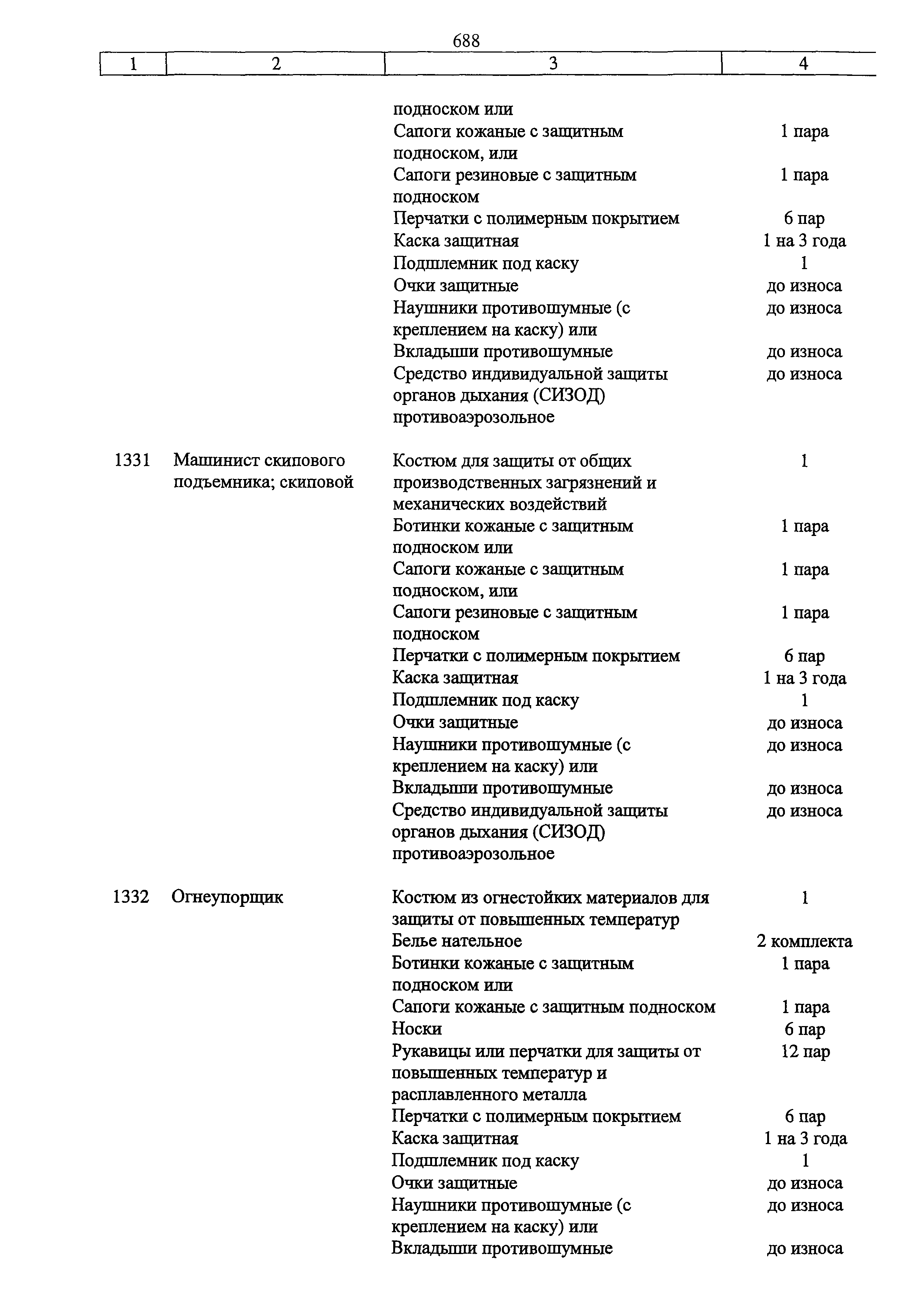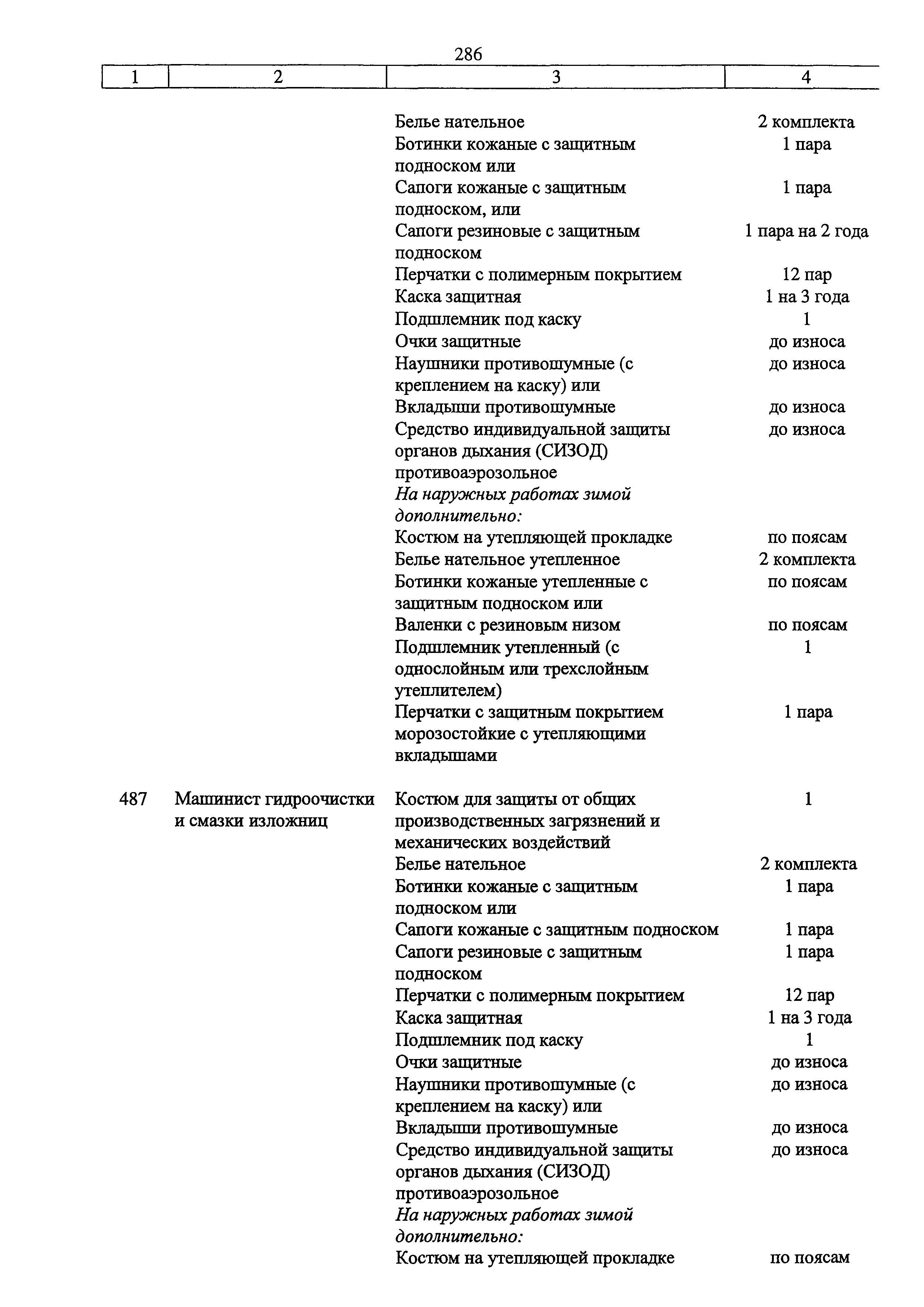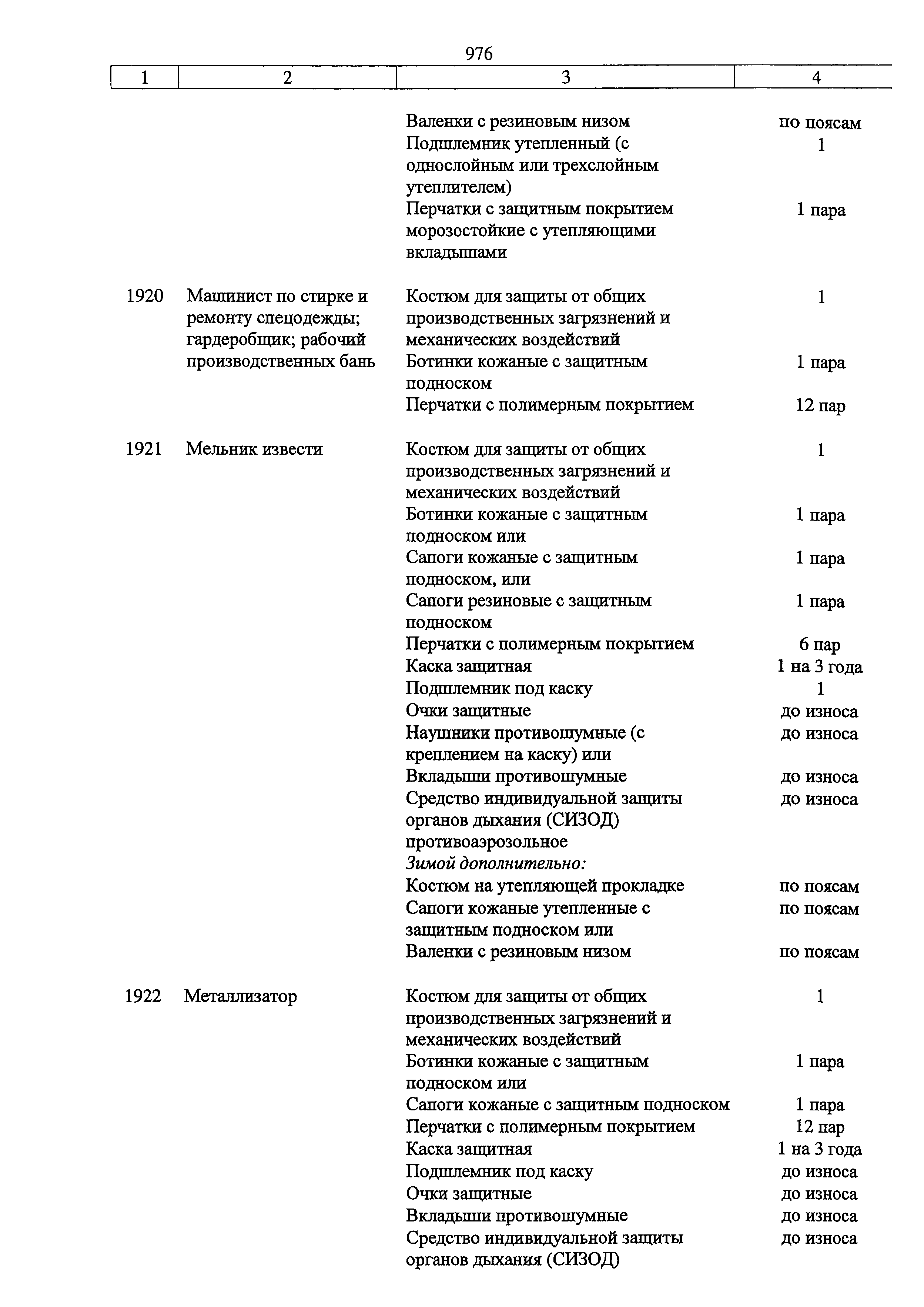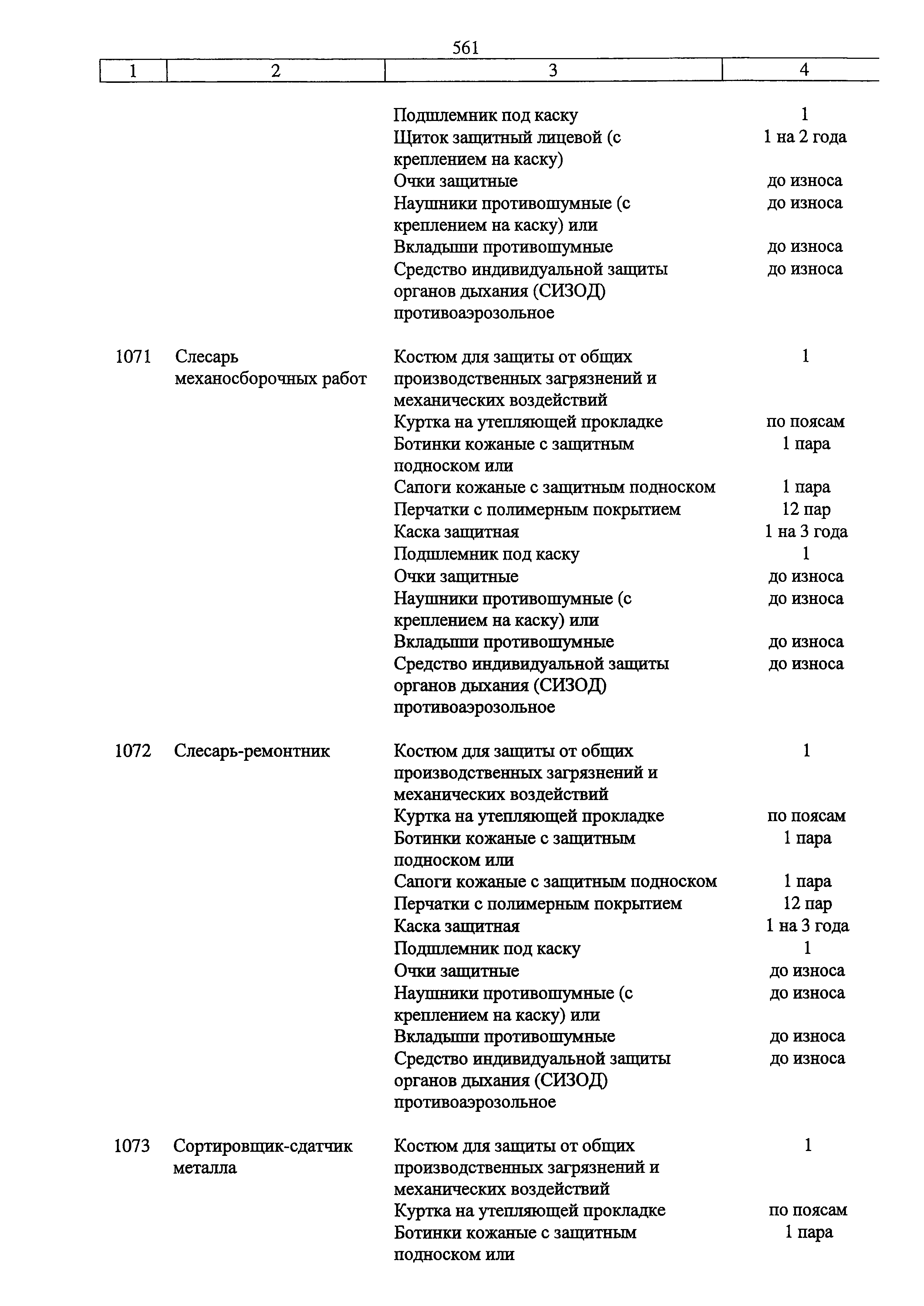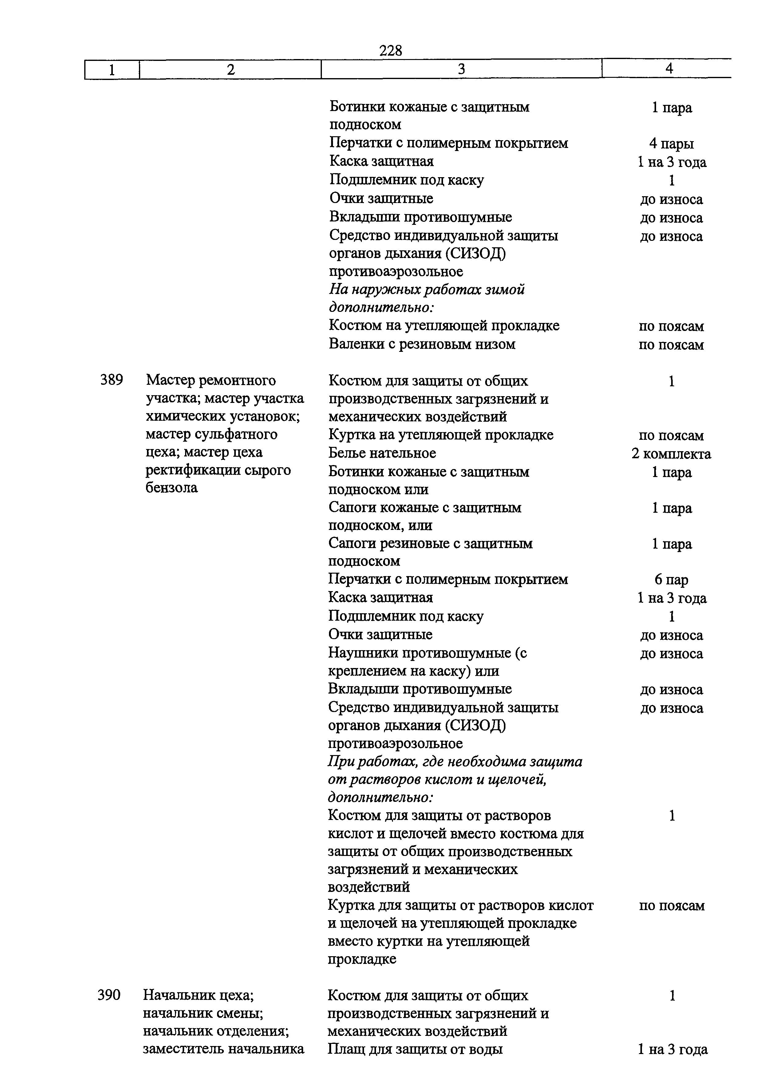 Типовые нормы бесплатной выдачи специальной одежды, специальной обуви и других средств индивидуальной защиты работникам горной и металлургической промышленности и металлургических производств других отраслей промышленности, занятым на работах с вредными и (или) опасными условиями труда, а также на работах, выполняемых в особых температурных условиях или связанных с загрязнением| Статус: | действует | | Название рус.: | Типовые нормы бесплатной выдачи специальной одежды, специальной обуви и других средств индивидуальной защиты работникам горной и металлургической промышленности и металлургических производств других отраслей промышленности, занятым на работах с вредными и (или) опасными условиями труда, а также на работах, выполняемых в особых температурных условиях или связанных с загрязнением | | Дата добавления в базу: | 01.02.2017 | | Дата актуализации: | 01.01.2021 | | Дата введения: | 14.02.2014 | | Область применения: | Нормы утверждаются локальными нормативными актами работодателя на основании результатов аттестации рабочих мест по условиям труда и могут быть включены в коллективный и (или) трудовой договор с указанием типовых норм, по сравнению с которыми улучшается обеспечение работников специальной одеждой, специальной обувью и другими средствами индивидуальной защиты. | | Оглавление: | I Горнодобывающая промышленность 1 Подземные горные работы (шахты) 2 Открытые горные работы и шахтная поверхность 3 Работа на гидравлических установках или с промывочными приборами 4 Дражные работы II Дробление, обогащение, брикетирование, обжиг, агломерация, извлечение металлов и сплавов III Черная металлургия 1 Коксохимическое производство 1.1 Углеподготовительные цеха 1.2 Углеобогатительные цеха 1.3 Производство каменноугольного кокса 1.4 Производство кристаллического нафталина, кумароновой смолы, смолоперерабатывающие цеха 1.5 Производство пиридиновых и фенольно-крезольных продуктов 1.6 Цеха улавливания химических продуктов и газовые цеха 1.7 Цеха ректификации сырого бензола 1.8 Цеха очистки коксового газа от сероводорода 1.9 Производство пекового кокса 1.10 Производство термоантрацита 2 Доменное производство 3 Сталеплавильное производство 3.1 Установки непрерывной разливки стали 4 Производство ферросплавов 4.1 Электролитическое производство 4.2 Производство электролитического хрома 4.3 Производство феррованадия 4.4 Подготовка шихты, обжиг руд и концентратов 4.5 Разливка и разделка ферросплавов 4.6 Обжиг извести 4.7 Общие профессии и должности ферросплавного производства 5 Прокатное производство 6 Производство труб (прокатка, сварка и волочение) 7 Колесопрокатное и бандажное производства 8 Валопрокатное производство 9 Производство рельсовых скреплений 10 Производство баллонов 11 Труболитейное производство 12 Производство метизов 12.1 Производство металлических канатов, сеток, пружин и пружинной ленты, щеток, цепей, колючей проволоки и других метизов 12.2 Волочение проволоки, калибровка и шлифовка металла 12.3 Изготовление волок 12.4 Холодноштамповочные и кузнечно-прессовые работы 12.5 Термическая обработка 12.6 Травление металла, защитные покрытия проволоки и извлечение железного купороса 12.7 Производство металлических электродов и порошковой проволоки 13 Производство огнеупоров 13.1 Огнеупоры 13.2 Карборундовые стержни 13.3 Высокоогнеупорные окислы 14 Ремонт 