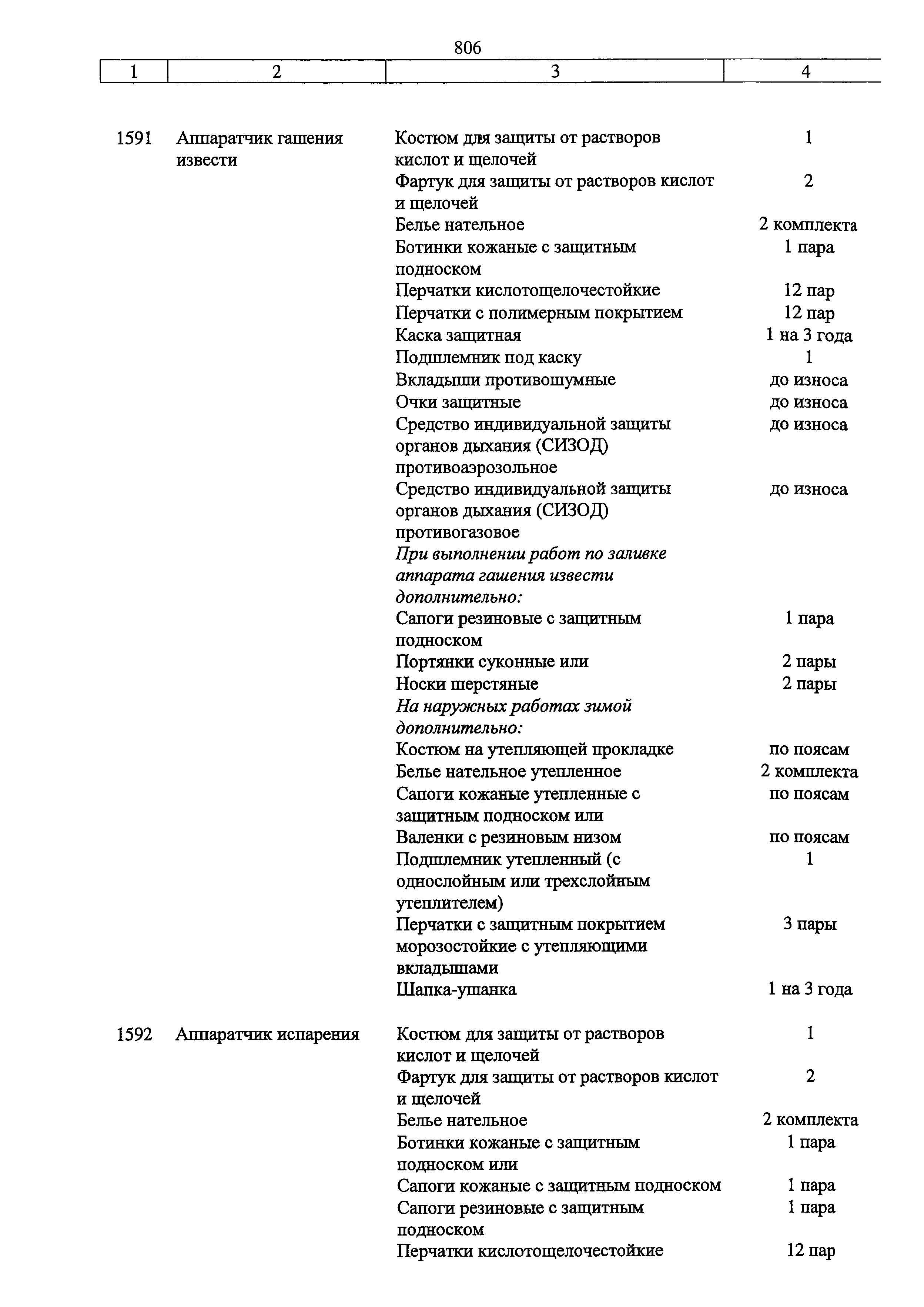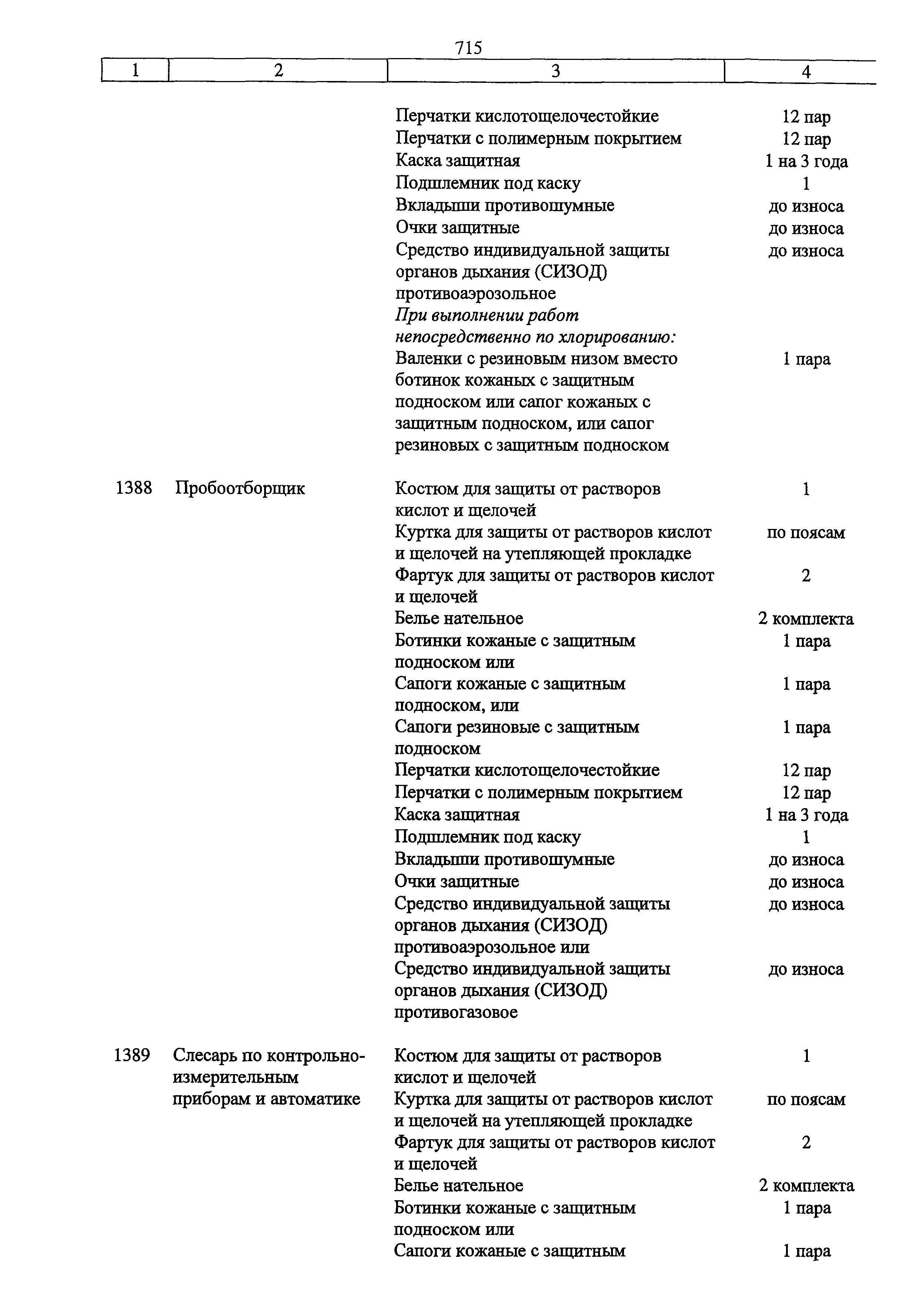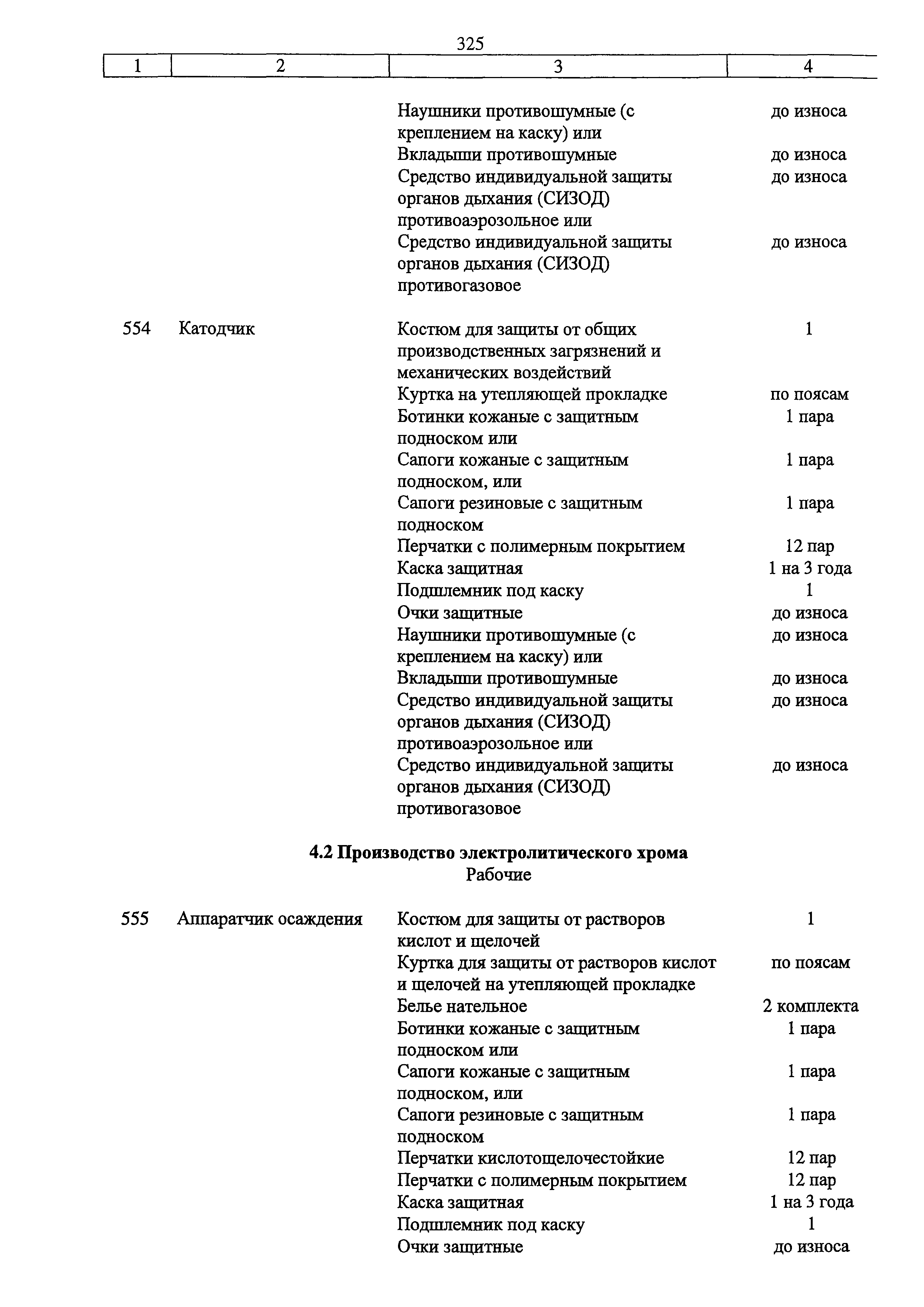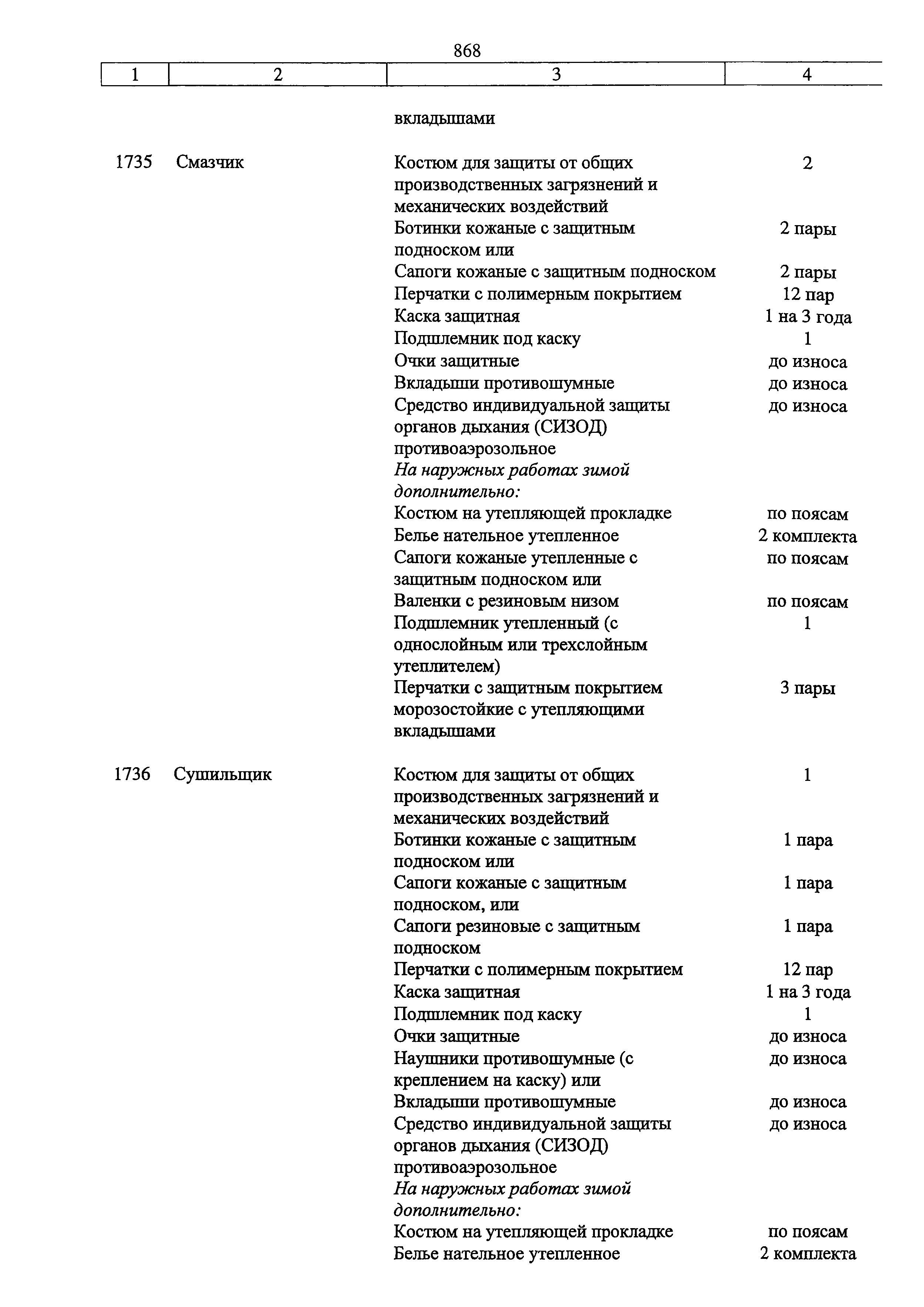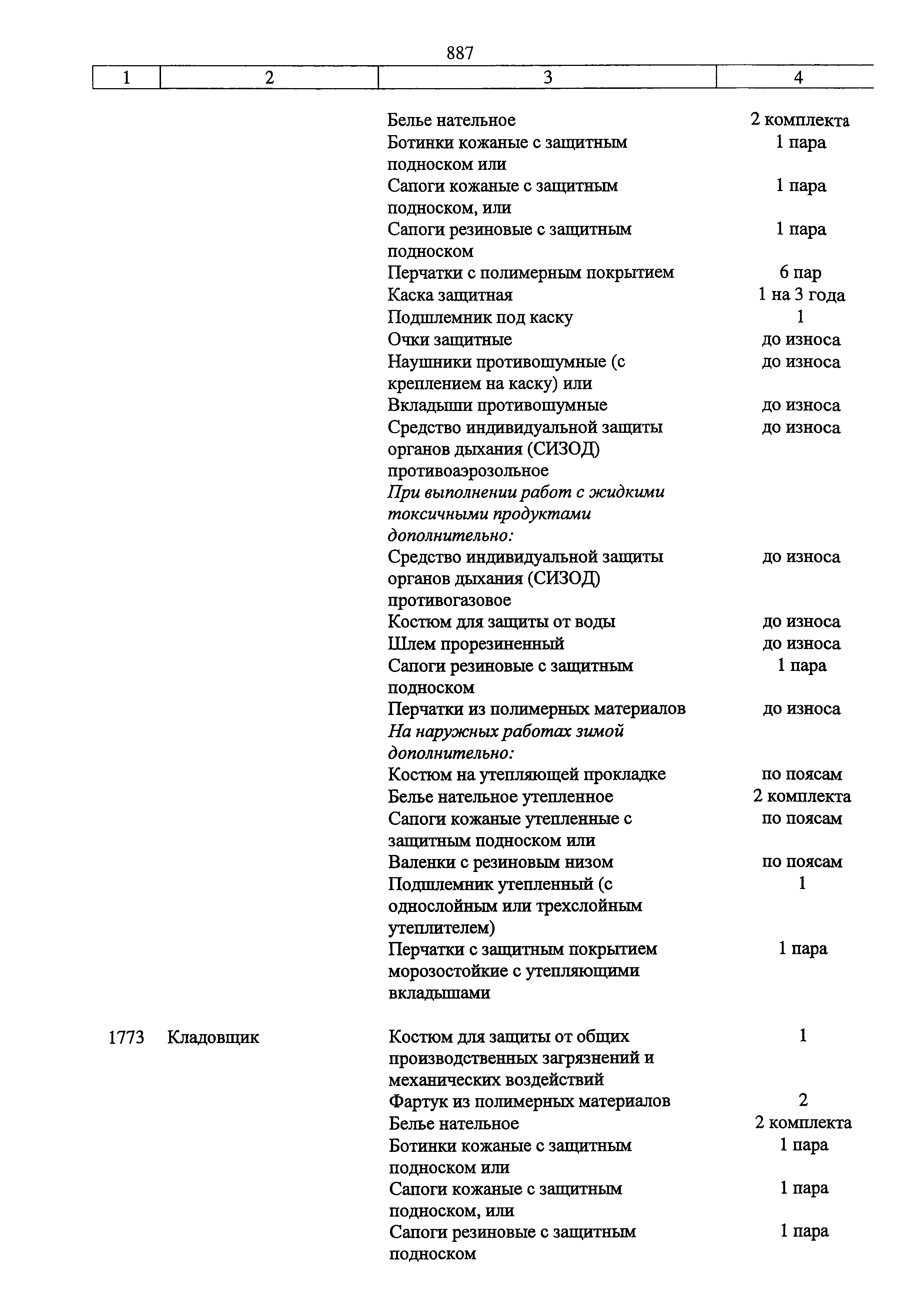 Типовые нормы бесплатной выдачи специальной одежды, специальной обуви и других средств индивидуальной защиты работникам горной и металлургической промышленности и металлургических производств других отраслей промышленности, занятым на работах с вредными и (или) опасными условиями труда, а также на работах, выполняемых в особых температурных условиях или связанных с загрязнением| Статус: | действует | | Название рус.: | Типовые нормы бесплатной выдачи специальной одежды, специальной обуви и других средств индивидуальной защиты работникам горной и металлургической промышленности и металлургических производств других отраслей промышленности, занятым на работах с вредными и (или) опасными условиями труда, а также на работах, выполняемых в особых температурных условиях или связанных с загрязнением | | Дата добавления в базу: | 01.02.2017 | | Дата актуализации: | 01.01.2021 | | Дата введения: | 14.02.2014 | | Область применения: | Нормы утверждаются локальными нормативными актами работодателя на основании результатов аттестации рабочих мест по условиям труда и могут быть включены в коллективный и (или) трудовой договор с указанием типовых норм, по сравнению с которыми улучшается обеспечение работников специальной одеждой, специальной обувью и другими средствами индивидуальной защиты. | | Оглавление: | I Горнодобывающая промышленность 1 Подземные горные работы (шахты) 2 Открытые горные работы и шахтная поверхность 3 Работа на гидравлических установках или с промывочными приборами 4 Дражные работы II Дробление, обогащение, брикетирование, обжиг, агломерация, извлечение металлов и сплавов III Черная металлургия 1 Коксохимическое производство 1.1 Углеподготовительные цеха 1.2 Углеобогатительные цеха 1.3 Производство каменноугольного кокса 1.4 Производство кристаллического нафталина, кумароновой смолы, смолоперерабатывающие цеха 1.5 Производство пиридиновых и фенольно-крезольных продуктов 1.6 Цеха улавливания химических продуктов и газовые цеха 1.7 Цеха ректификации сырого бензола 1.8 Цеха очистки коксового газа от сероводорода 1.9 Производство пекового кокса 1.10 Производство термоантрацита 2 Доменное производство 3 Сталеплавильное производство 3.1 Установки непрерывной разливки стали 4 Производство ферросплавов 4.1 Электролитическое производство 4.2 Производство электролитического хрома 4.3 Производство феррованадия 4.4 Подготовка шихты, обжиг руд и концентратов 4.5 Разливка и разделка ферросплавов 4.6 Обжиг извести 4.7 Общие профессии и должности ферросплавного производства 5 Прокатное производство 6 Производство труб (прокатка, сварка и волочение) 7 Колесопрокатное и бандажное производства 8 Валопрокатное производство 9 Производство рельсовых скреплений 10 Производство баллонов 11 Труболитейное производство 12 Производство метизов 12.1 Производство металлических канатов, сеток, пружин и пружинной ленты, щеток, цепей, колючей проволоки и других метизов 12.2 Волочение проволоки, калибровка и шлифовка металла 12.3 Изготовление волок 12.4 Холодноштамповочные и кузнечно-прессовые работы 12.5 Термическая обработка 12.6 Травление металла, защитные покрытия проволоки и извлечение железного купороса 12.7 Производство металлических электродов и порошковой проволоки 13 Производство огнеупоров 13.1 Огнеупоры 13.2 Карборундовые стержни 13.3 Высокоогнеупорные окислы 14 Ремонт 