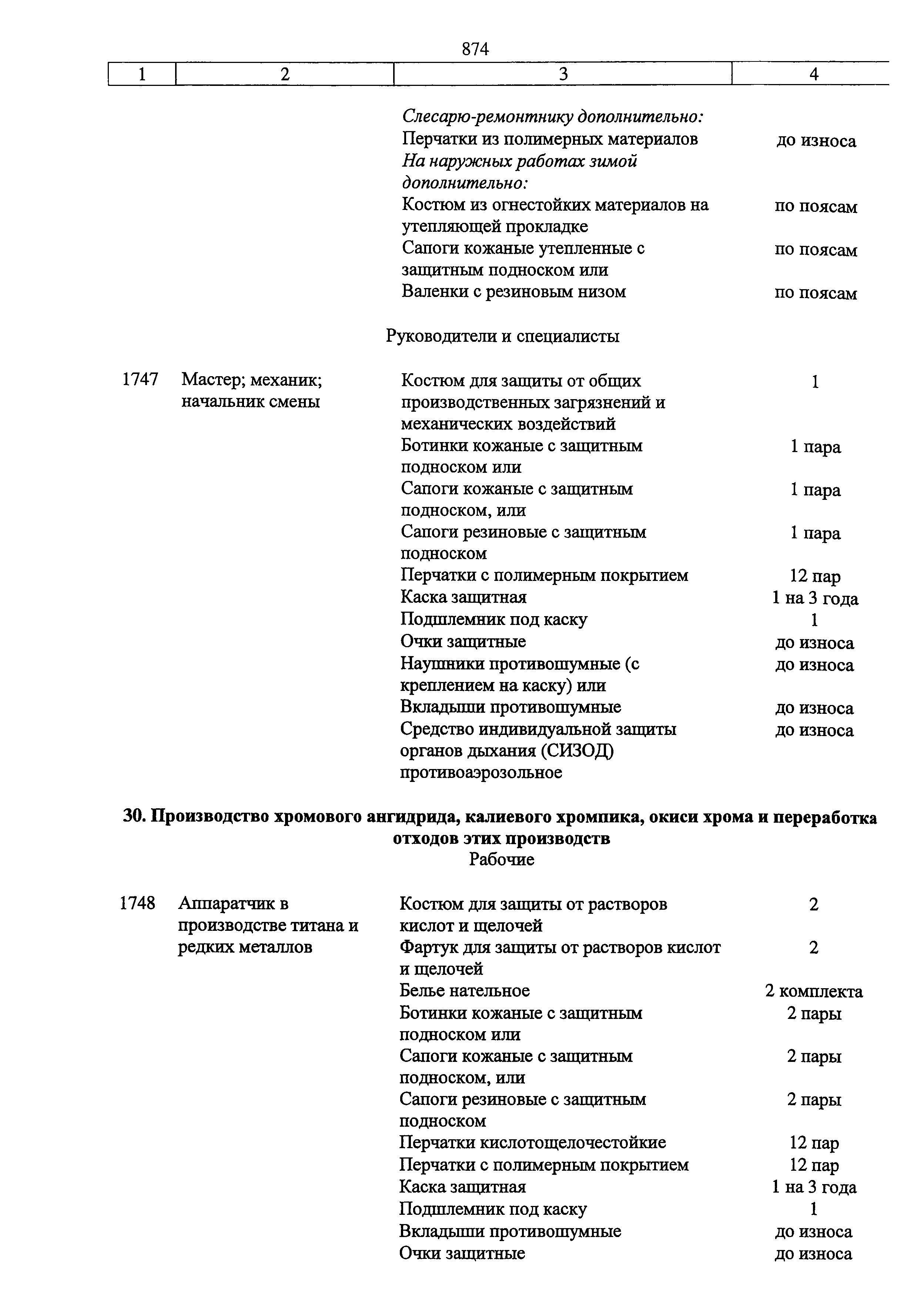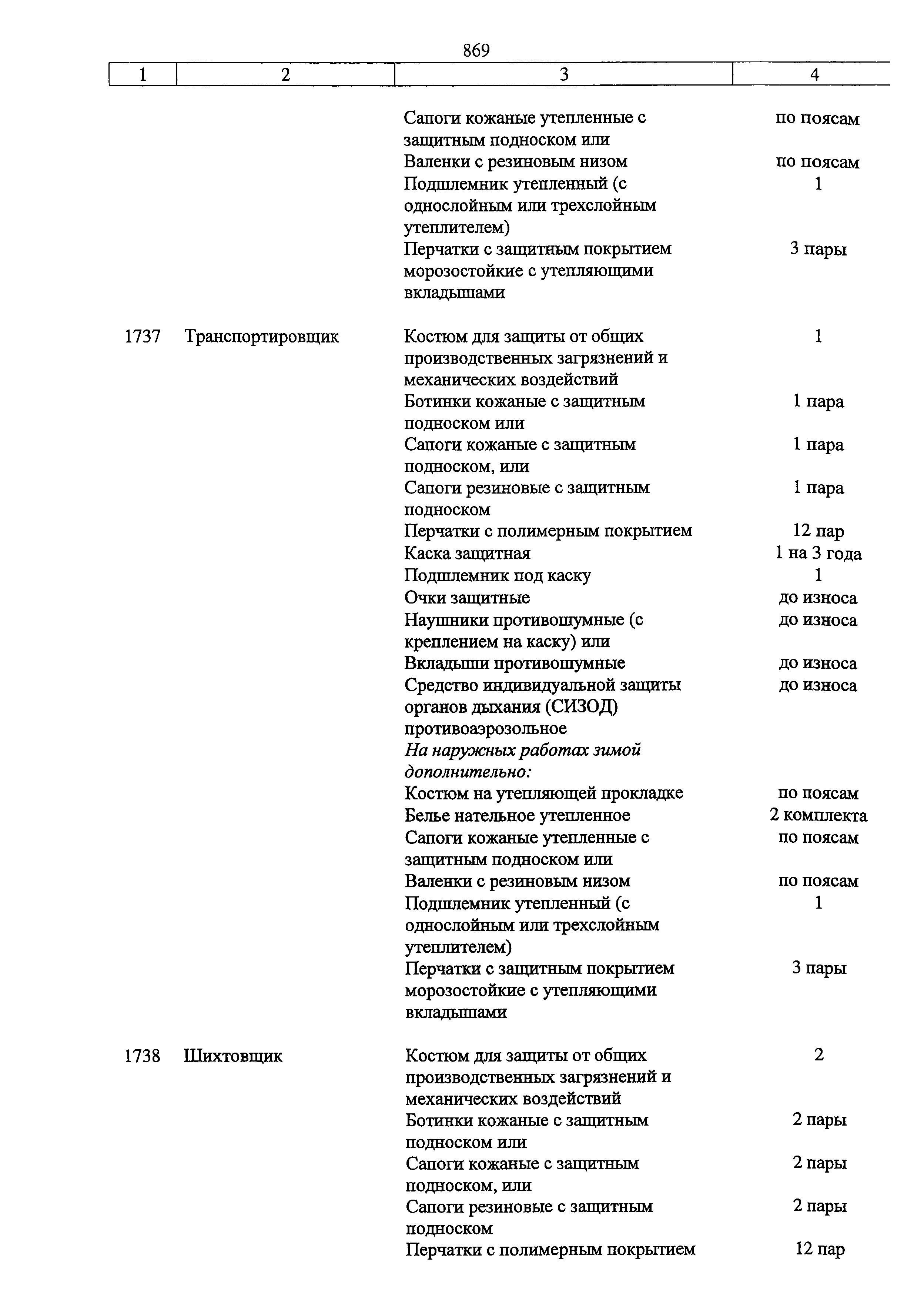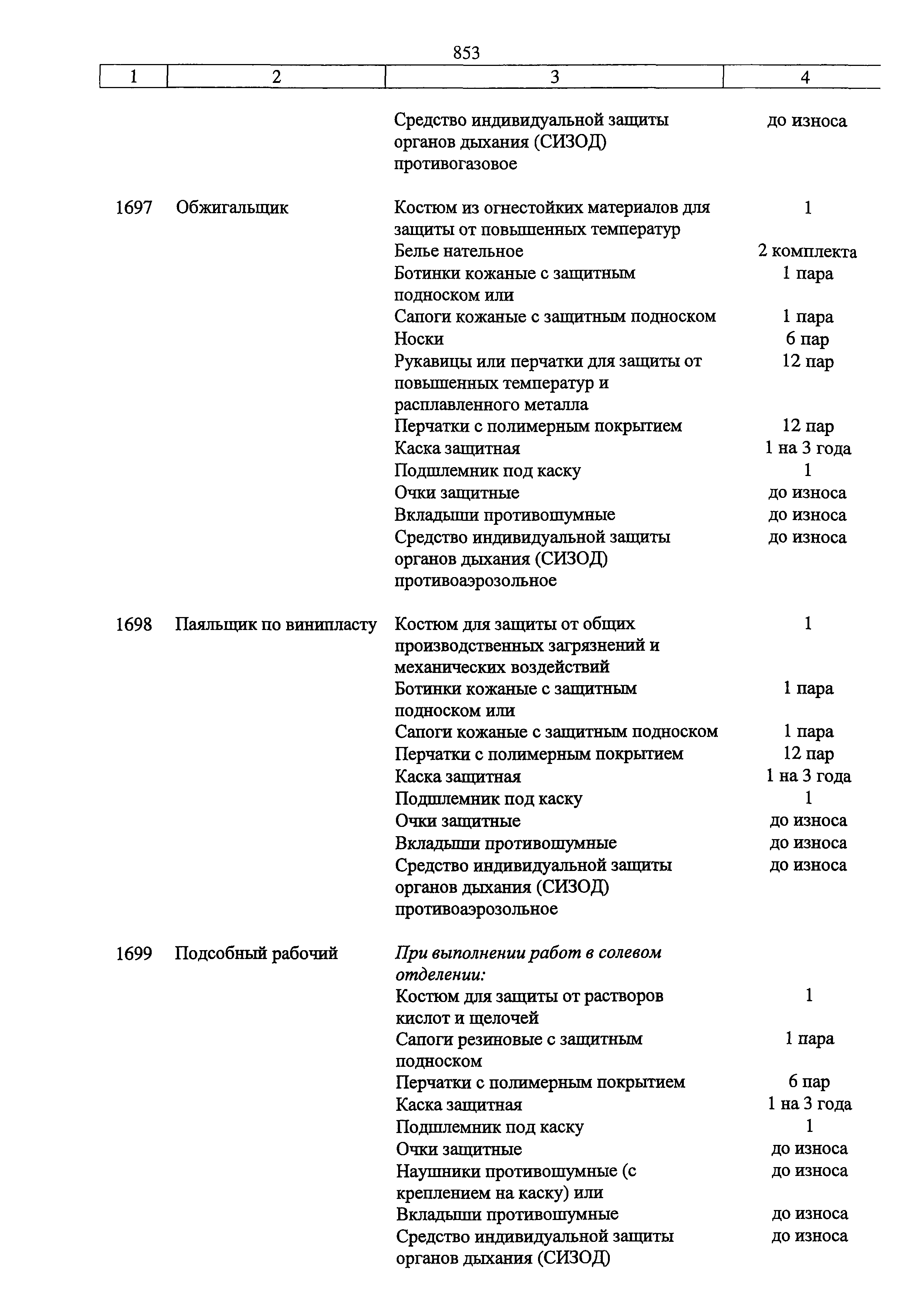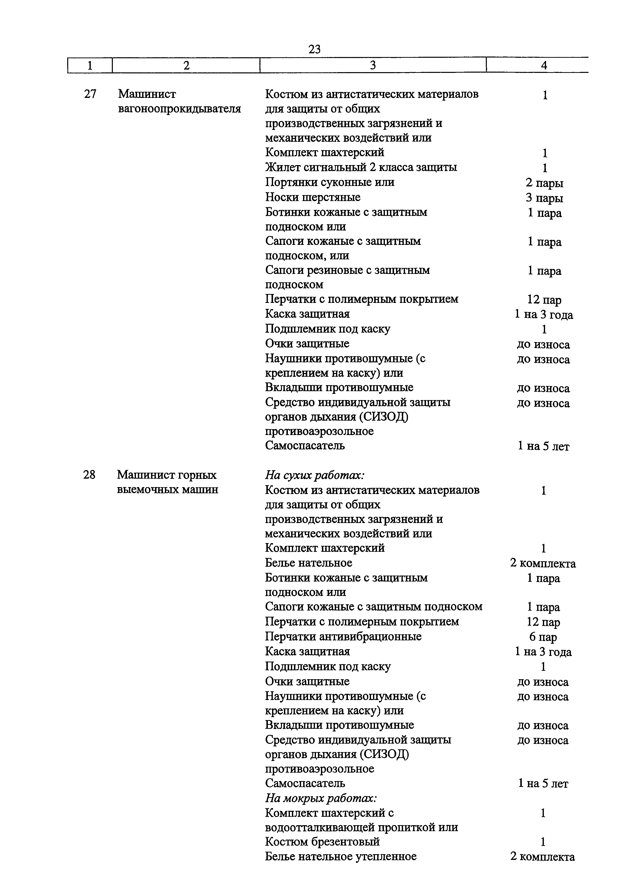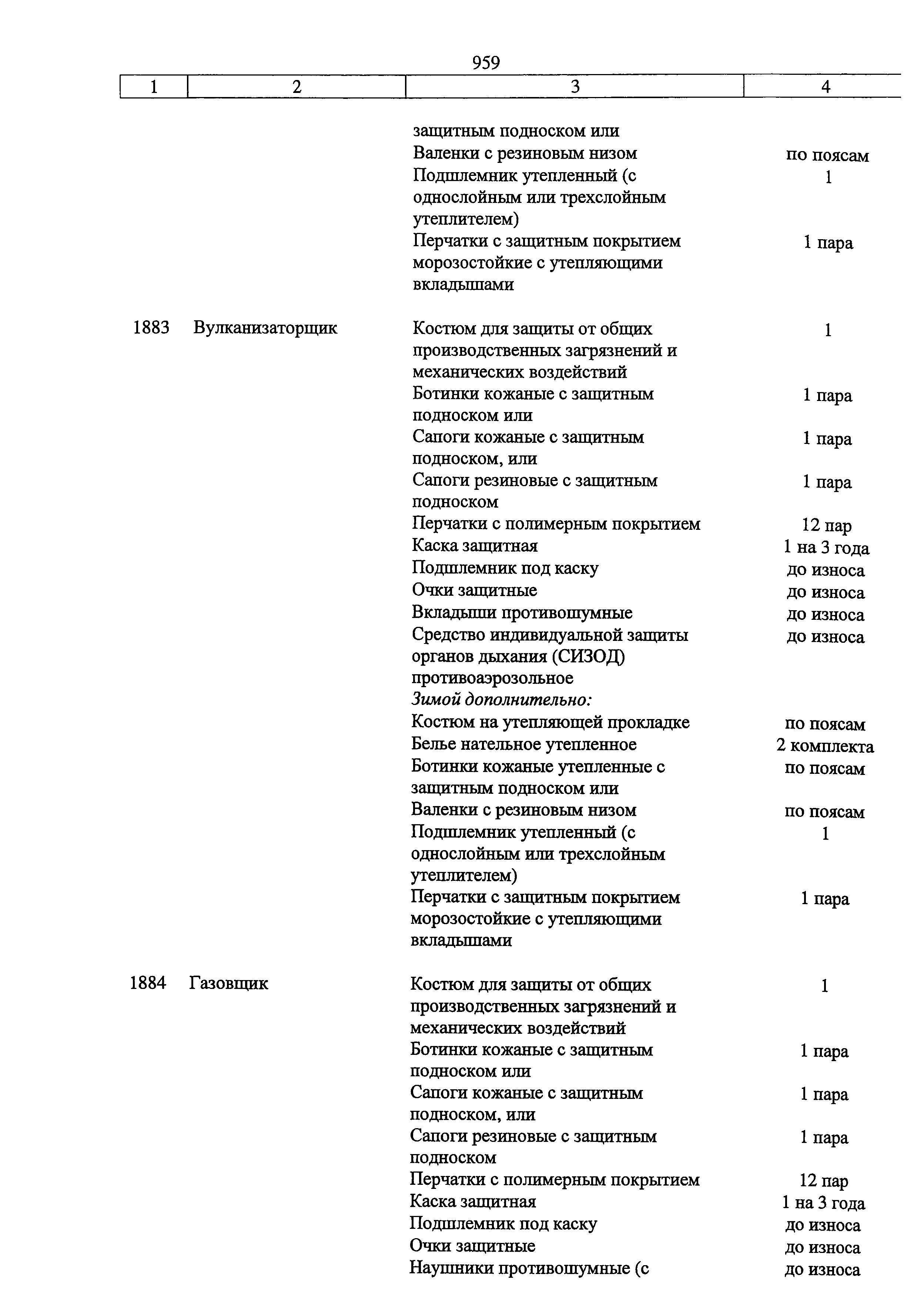 Типовые нормы бесплатной выдачи специальной одежды, специальной обуви и других средств индивидуальной защиты работникам горной и металлургической промышленности и металлургических производств других отраслей промышленности, занятым на работах с вредными и (или) опасными условиями труда, а также на работах, выполняемых в особых температурных условиях или связанных с загрязнением| Статус: | действует | | Название рус.: | Типовые нормы бесплатной выдачи специальной одежды, специальной обуви и других средств индивидуальной защиты работникам горной и металлургической промышленности и металлургических производств других отраслей промышленности, занятым на работах с вредными и (или) опасными условиями труда, а также на работах, выполняемых в особых температурных условиях или связанных с загрязнением | | Дата добавления в базу: | 01.02.2017 | | Дата актуализации: | 01.01.2021 | | Дата введения: | 14.02.2014 | | Область применения: | Нормы утверждаются локальными нормативными актами работодателя на основании результатов аттестации рабочих мест по условиям труда и могут быть включены в коллективный и (или) трудовой договор с указанием типовых норм, по сравнению с которыми улучшается обеспечение работников специальной одеждой, специальной обувью и другими средствами индивидуальной защиты. | | Оглавление: | I Горнодобывающая промышленность 1 Подземные горные работы (шахты) 2 Открытые горные работы и шахтная поверхность 3 Работа на гидравлических установках или с промывочными приборами 4 Дражные работы II Дробление, обогащение, брикетирование, обжиг, агломерация, извлечение металлов и сплавов III Черная металлургия 1 Коксохимическое производство 1.1 Углеподготовительные цеха 1.2 Углеобогатительные цеха 1.3 Производство каменноугольного кокса 1.4 Производство кристаллического нафталина, кумароновой смолы, смолоперерабатывающие цеха 1.5 Производство пиридиновых и фенольно-крезольных продуктов 1.6 Цеха улавливания химических продуктов и газовые цеха 1.7 Цеха ректификации сырого бензола 1.8 Цеха очистки коксового газа от сероводорода 1.9 Производство пекового кокса 1.10 Производство термоантрацита 2 Доменное производство 3 Сталеплавильное производство 3.1 Установки непрерывной разливки стали 4 Производство ферросплавов 4.1 Электролитическое производство 4.2 Производство электролитического хрома 4.3 Производство феррованадия 4.4 Подготовка шихты, обжиг руд и концентратов 4.5 Разливка и разделка ферросплавов 4.6 Обжиг извести 4.7 Общие профессии и должности ферросплавного производства 5 Прокатное производство 6 Производство труб (прокатка, сварка и волочение) 7 Колесопрокатное и бандажное производства 8 Валопрокатное производство 9 Производство рельсовых скреплений 10 Производство баллонов 11 Труболитейное производство 12 Производство метизов 12.1 Производство металлических канатов, сеток, пружин и пружинной ленты, щеток, цепей, колючей проволоки и других метизов 12.2 Волочение проволоки, калибровка и шлифовка металла 12.3 Изготовление волок 12.4 Холодноштамповочные и кузнечно-прессовые работы 12.5 Термическая обработка 12.6 Травление металла, защитные покрытия проволоки и извлечение железного купороса 12.7 Производство металлических электродов и порошковой проволоки 13 Производство огнеупоров 13.1 Огнеупоры 13.2 Карборундовые стержни 13.3 Высокоогнеупорные окислы 14 Ремонт 